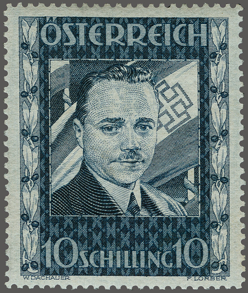 1936: Engelbert Dollfuss, 10 S. schwärzlichviolett / ultramarin, ein postfrisches Prachtexemplar, feine Bleistiftsignatur A. Diena. Mi = € 1'400. (Image 1)