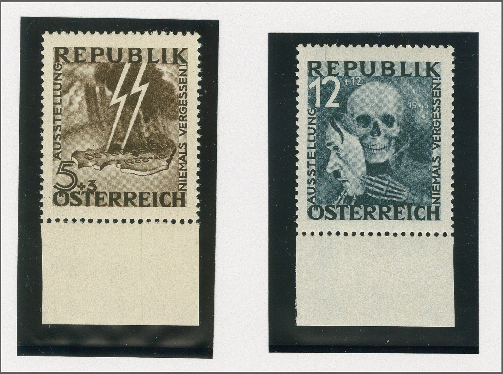 1946: Blitz und Maske vom unteren Bogenrand, nicht verausgabte Werte in postfr. Erhaltung. Mi = € 2'600 / ANK (13),(14) = € 2'600. (Image 1)