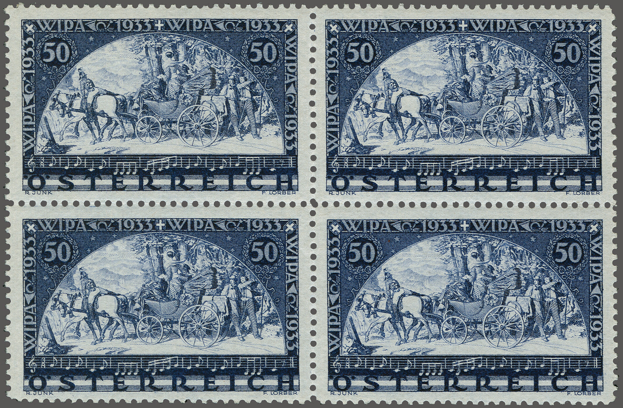 1933: WIPA 50+50 g. schwärzlichviolettultramarin auf gewöhnlichem Papier im postfrischen Viererblock. Eine schöne Einheit Mi = € 2'500. (Image 1)