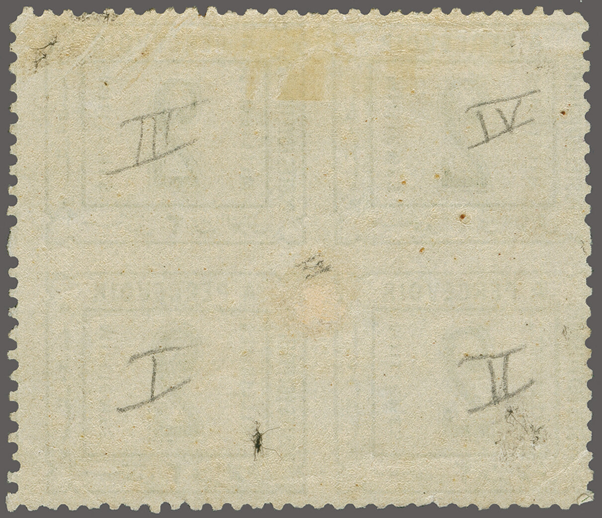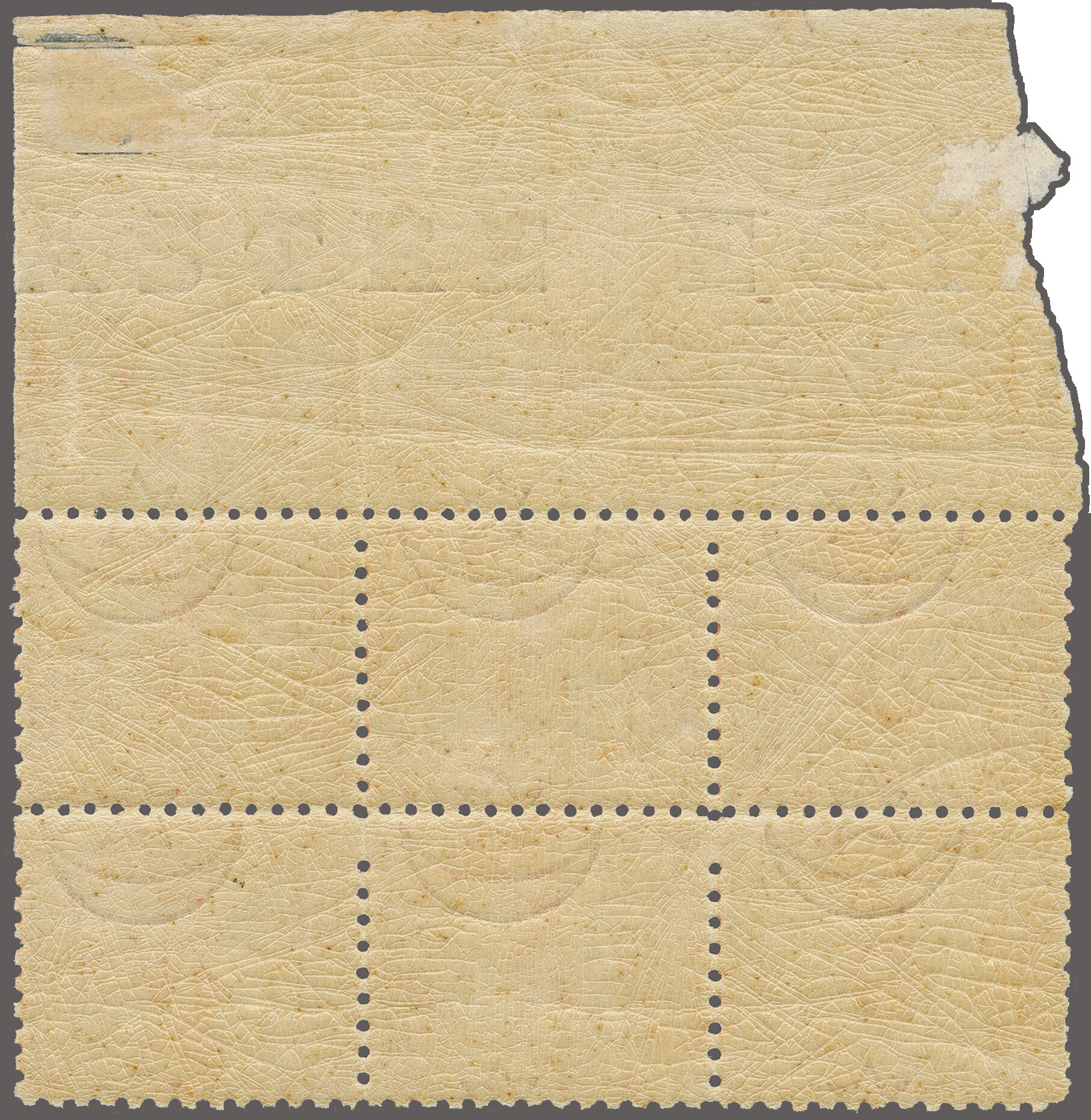splitting, toning and creasing through perforations as is to be expected but exceedingly rare, one of just 2 complete sheets of this value known (the other, ex Carmichael & Todd, sold some years ago), with no other complete sheet of any other