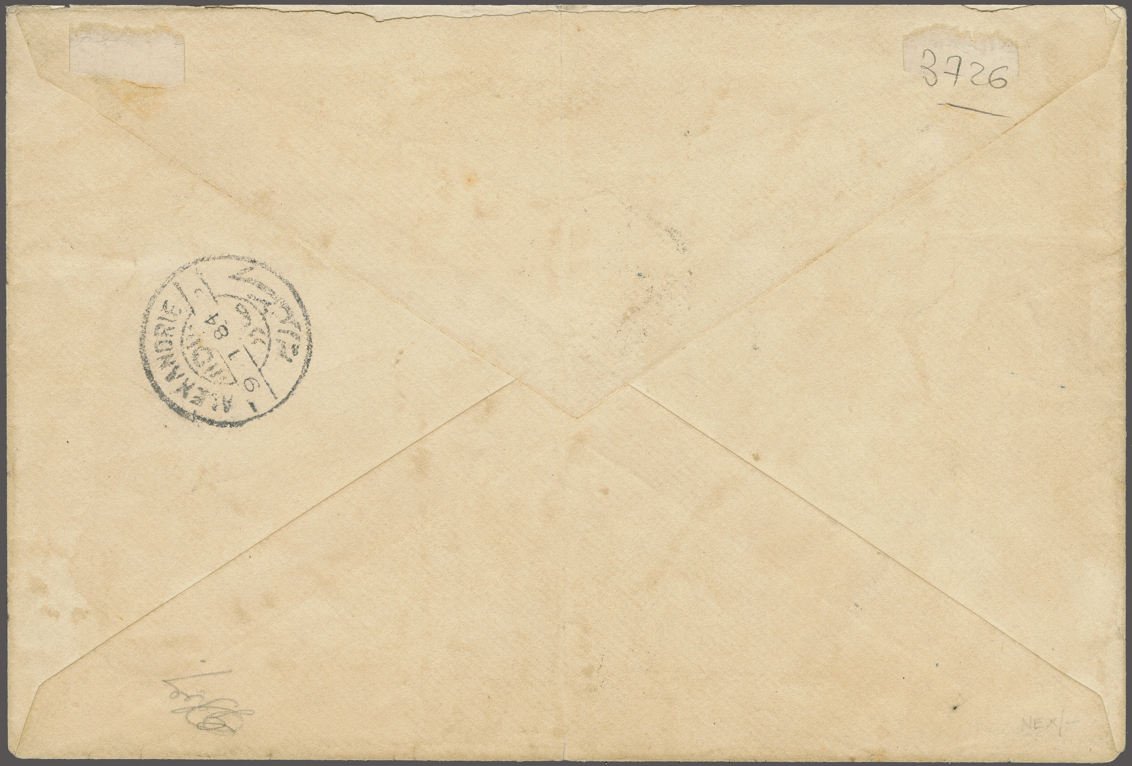 had closed on January 1, 1884 but there was a 'grace' period of 1 month. This is the sole example of the 1884 5 piastre known on letter. Provenance: Collection Georges Gougas (Feb 1973), lot 986; Carmichael & Todd (Image 1)