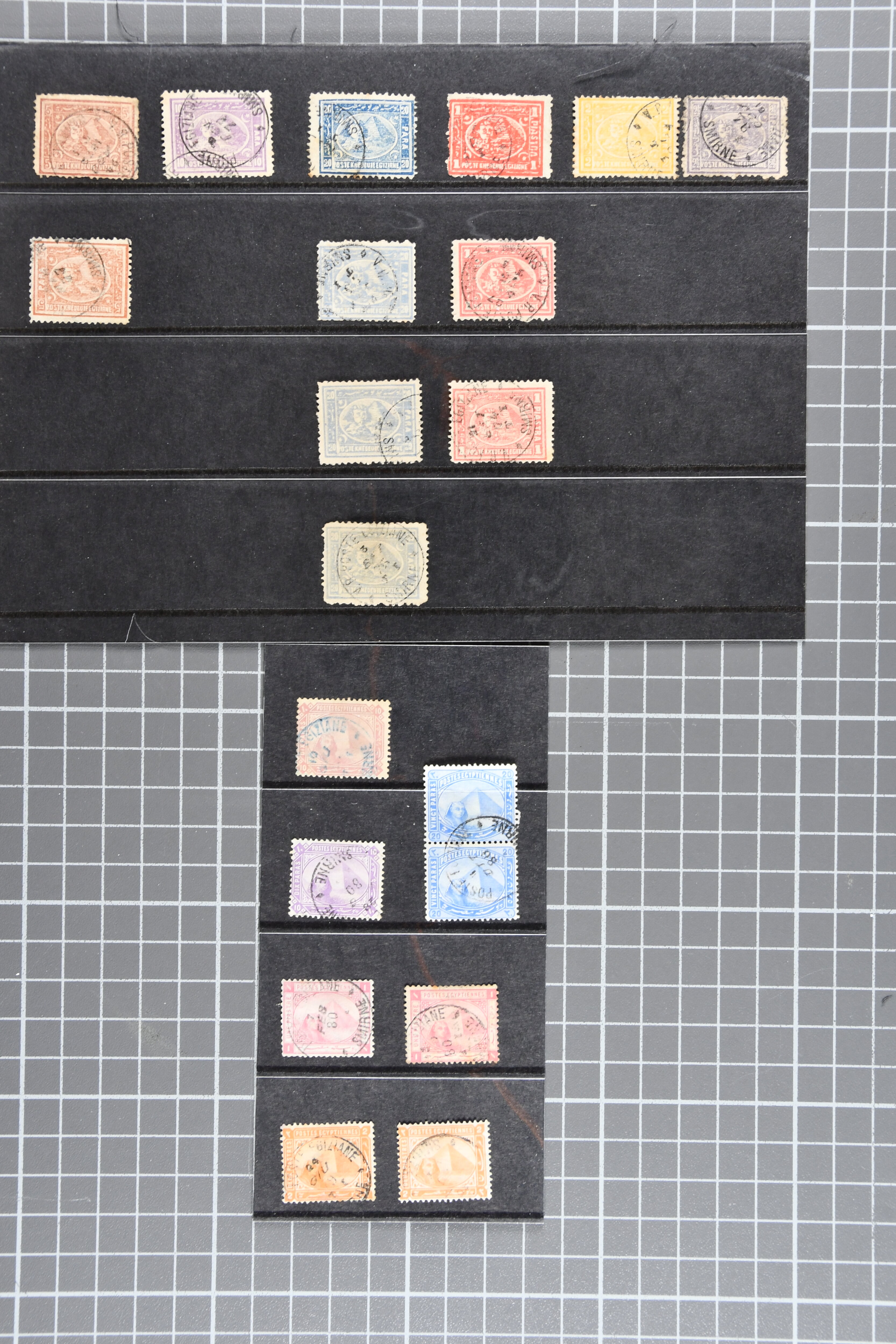 same SMIRNE datestamps (12 stamps) and 1879/1881 issue with small group (7 items) incl. 1881 10 pa. claret cancelled in blue (most unusual on this stamp). (Image 1)