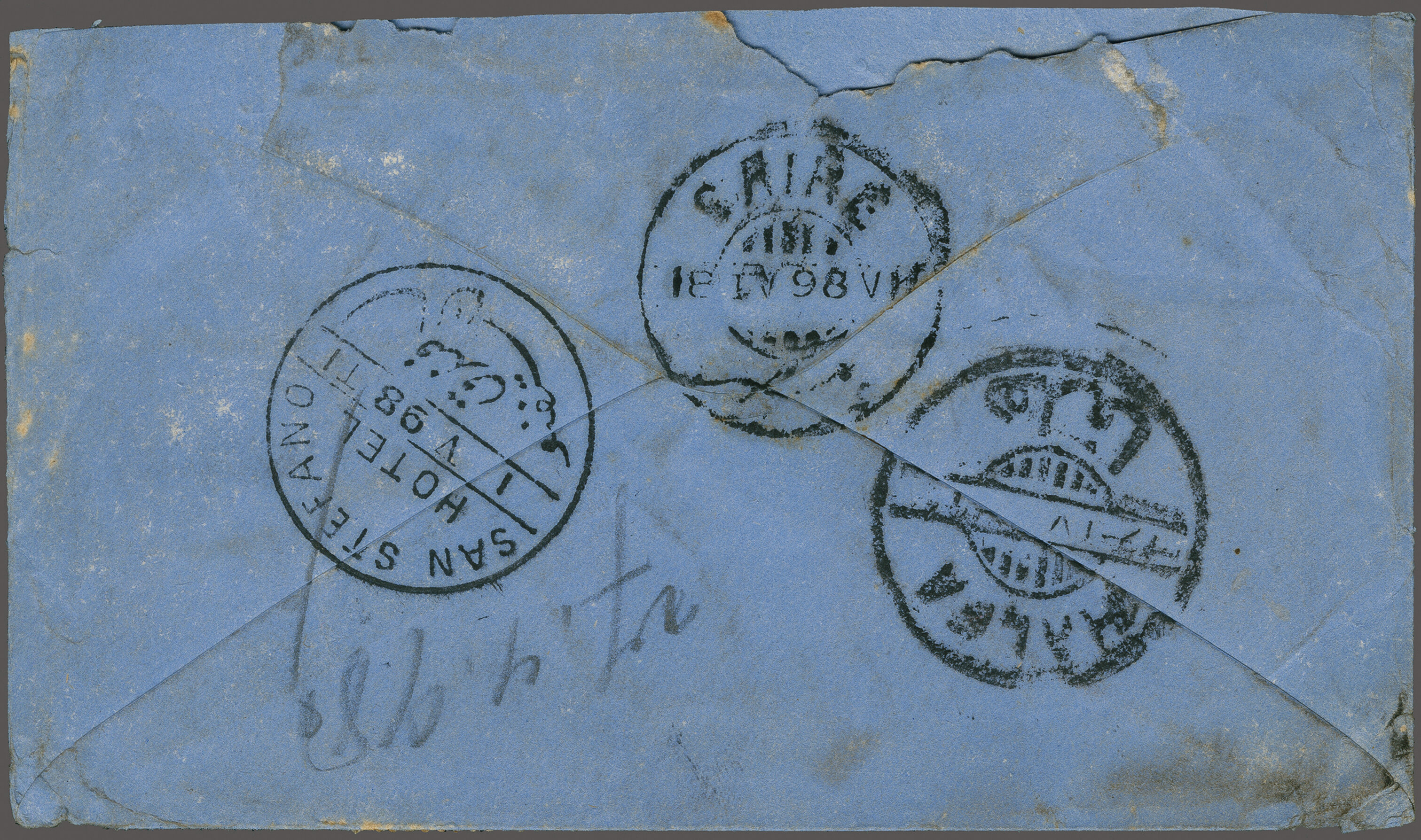 again applied and tied by SAN STEFANO / HOTEL datestamps (May 1). A very unusual cover. (Image 1)