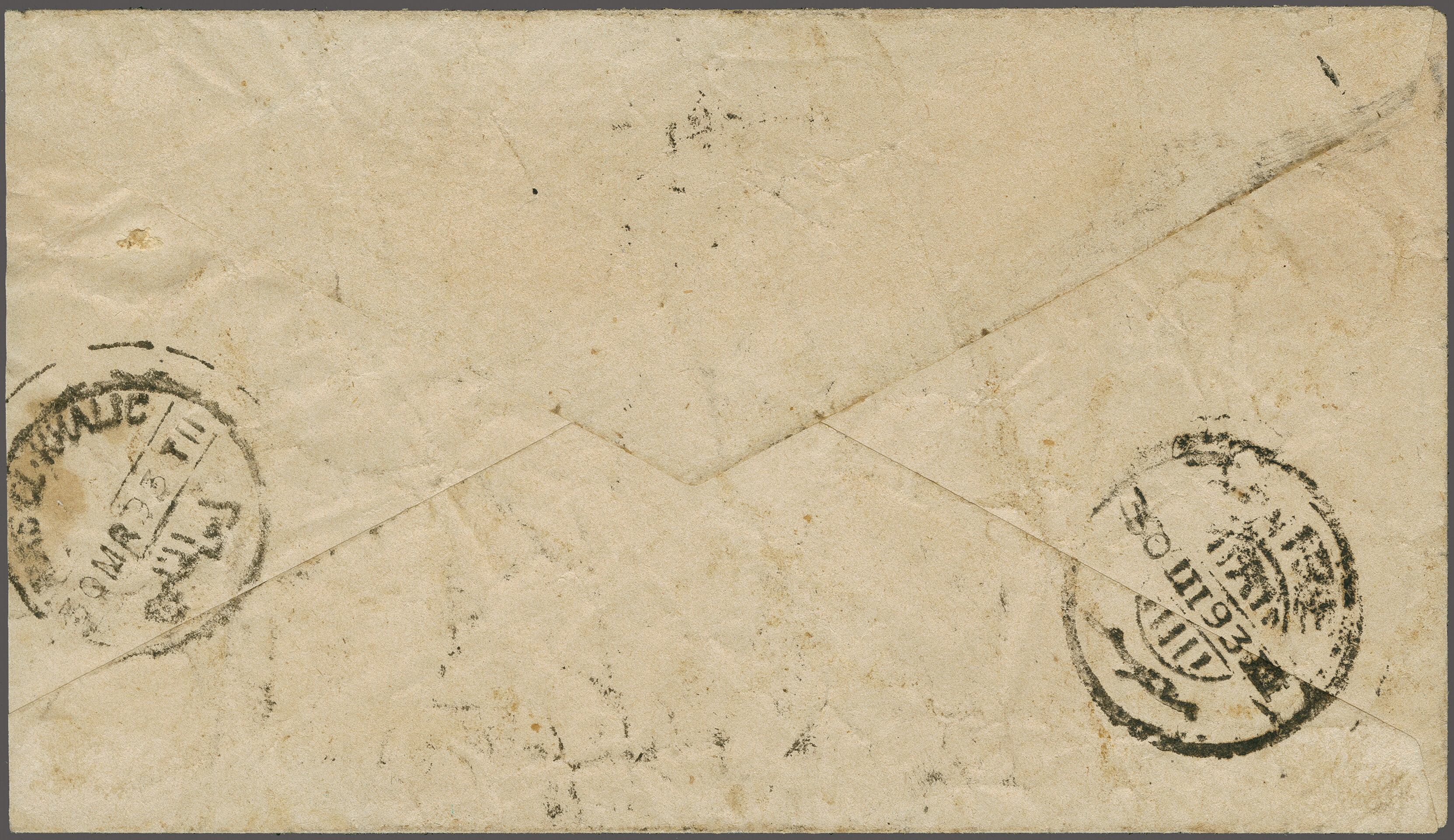 Egyptian Consular Post Offices 1872: Cover from Jeddah to Germany, slittted for disinfection, bearing 1872 1 pi. rose-red tied by erroneously dated "POSTE VICE-REALI EGIZIANE / GEDDA" datestamp (March 2, 71) in black. Struck