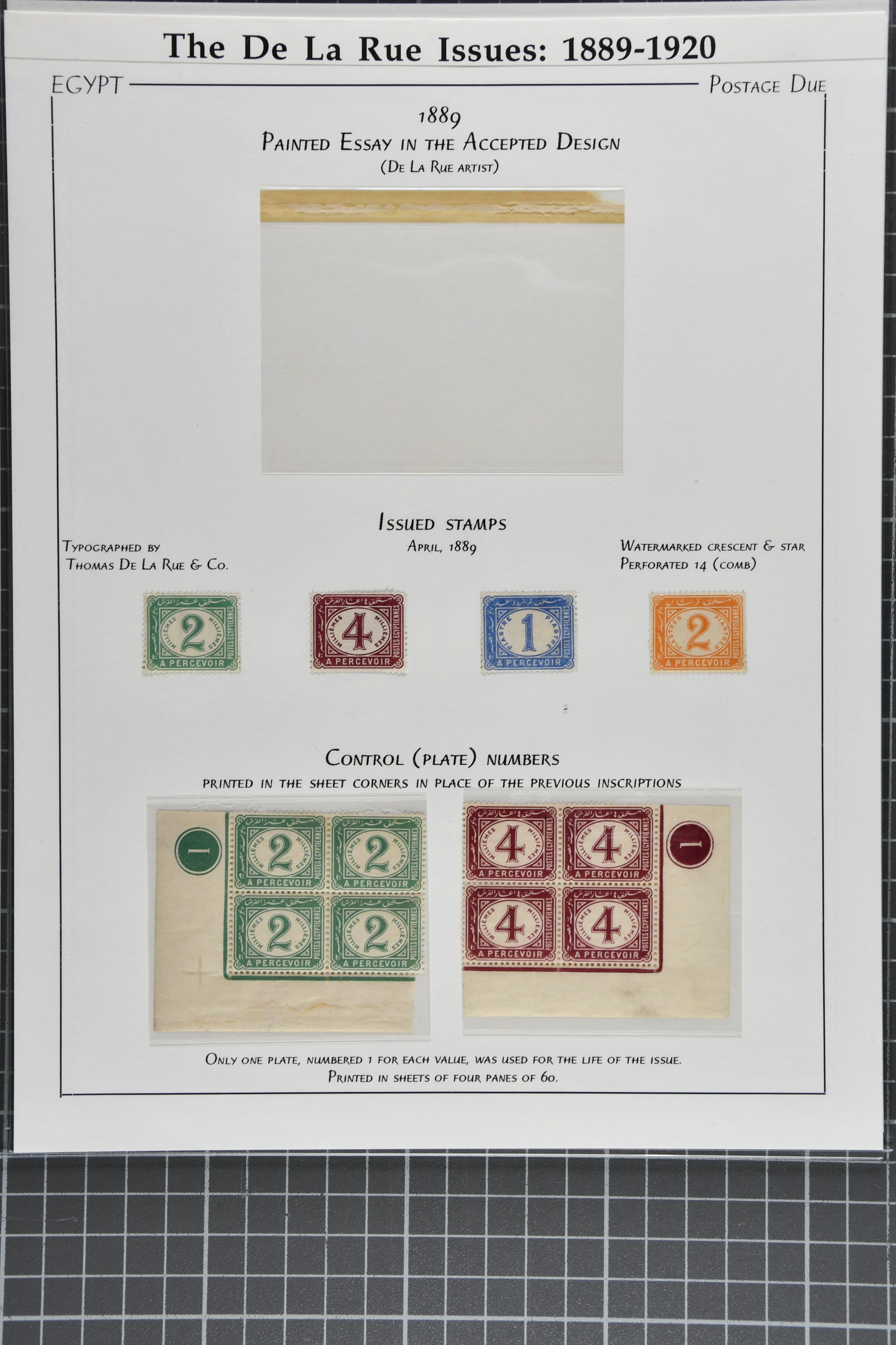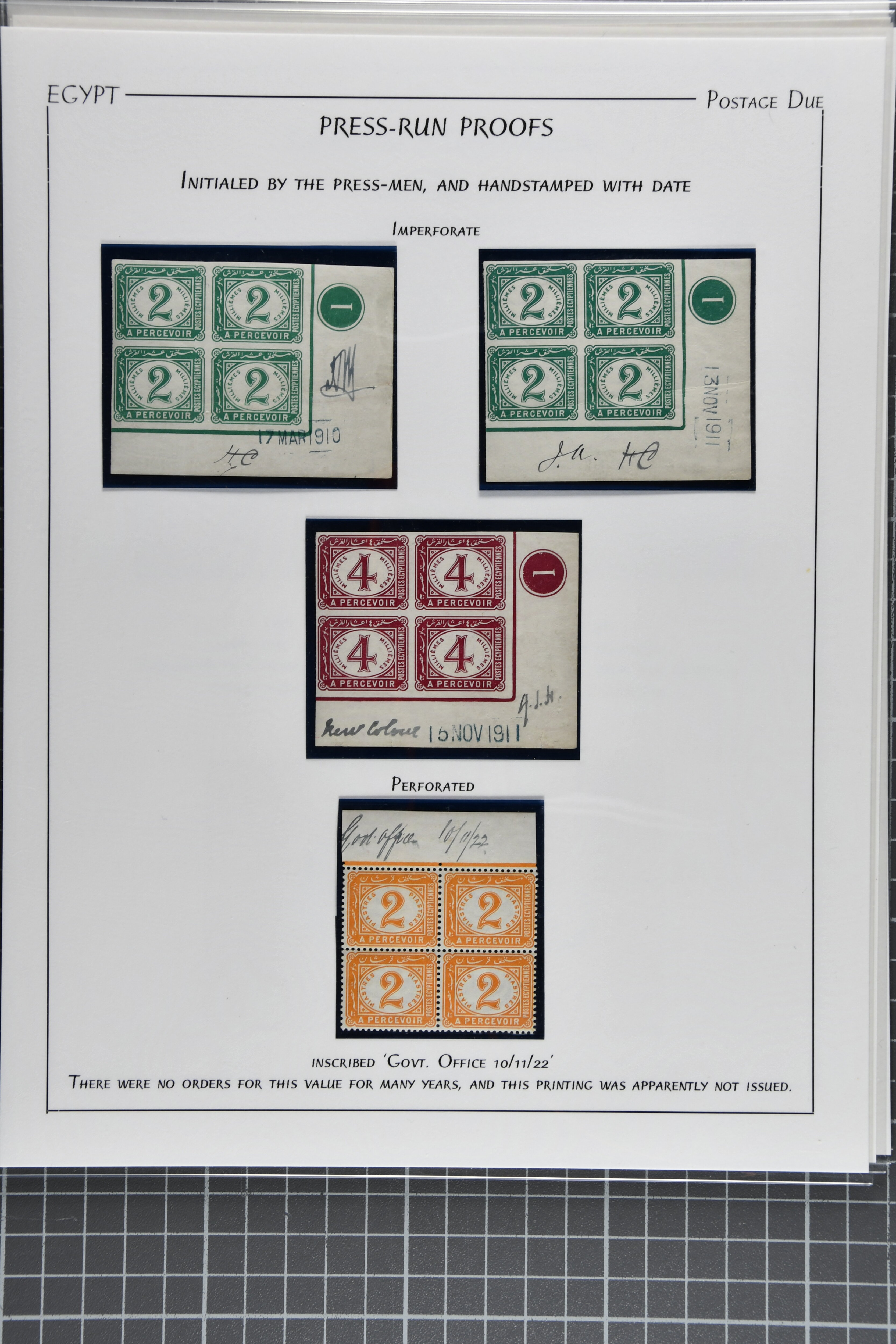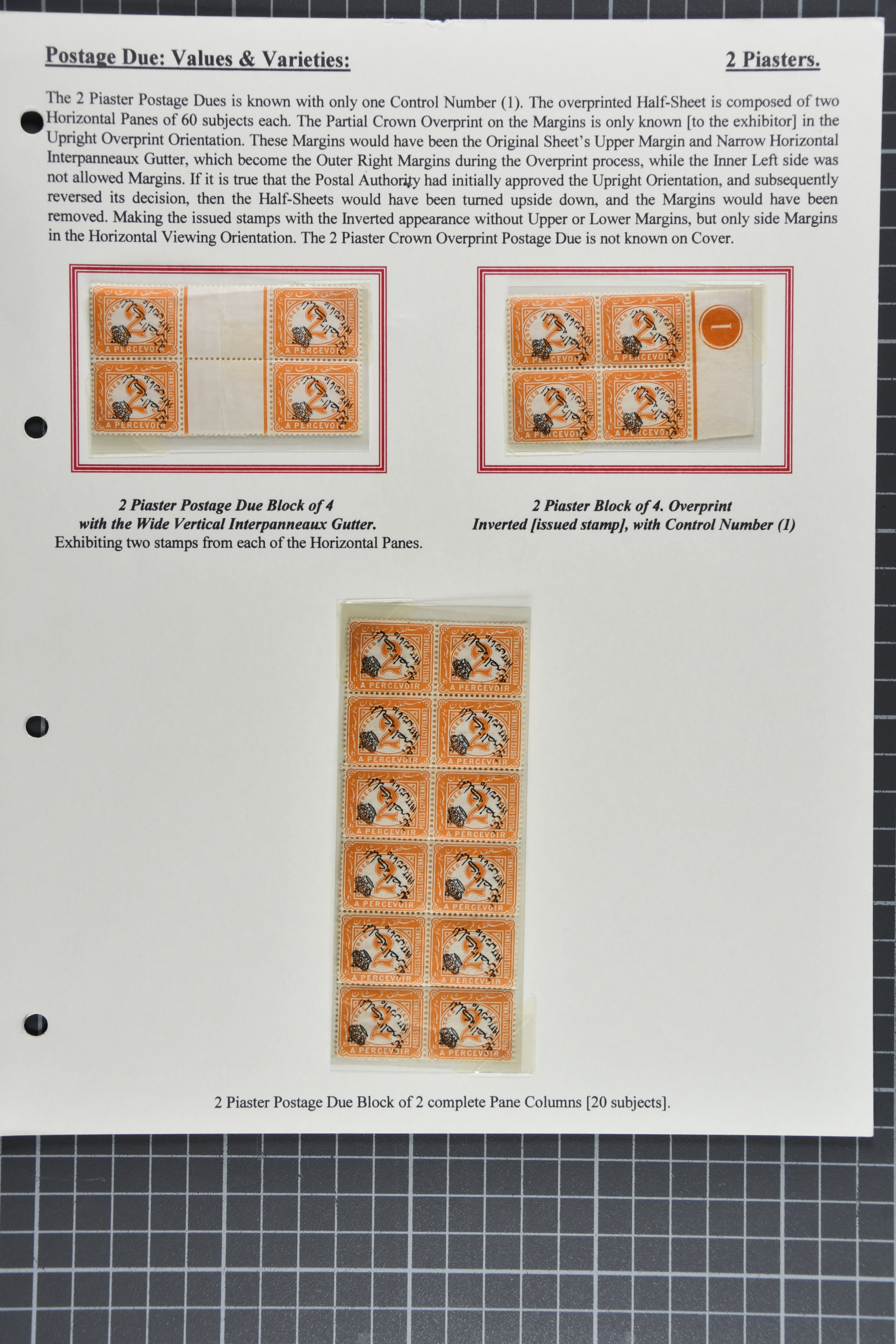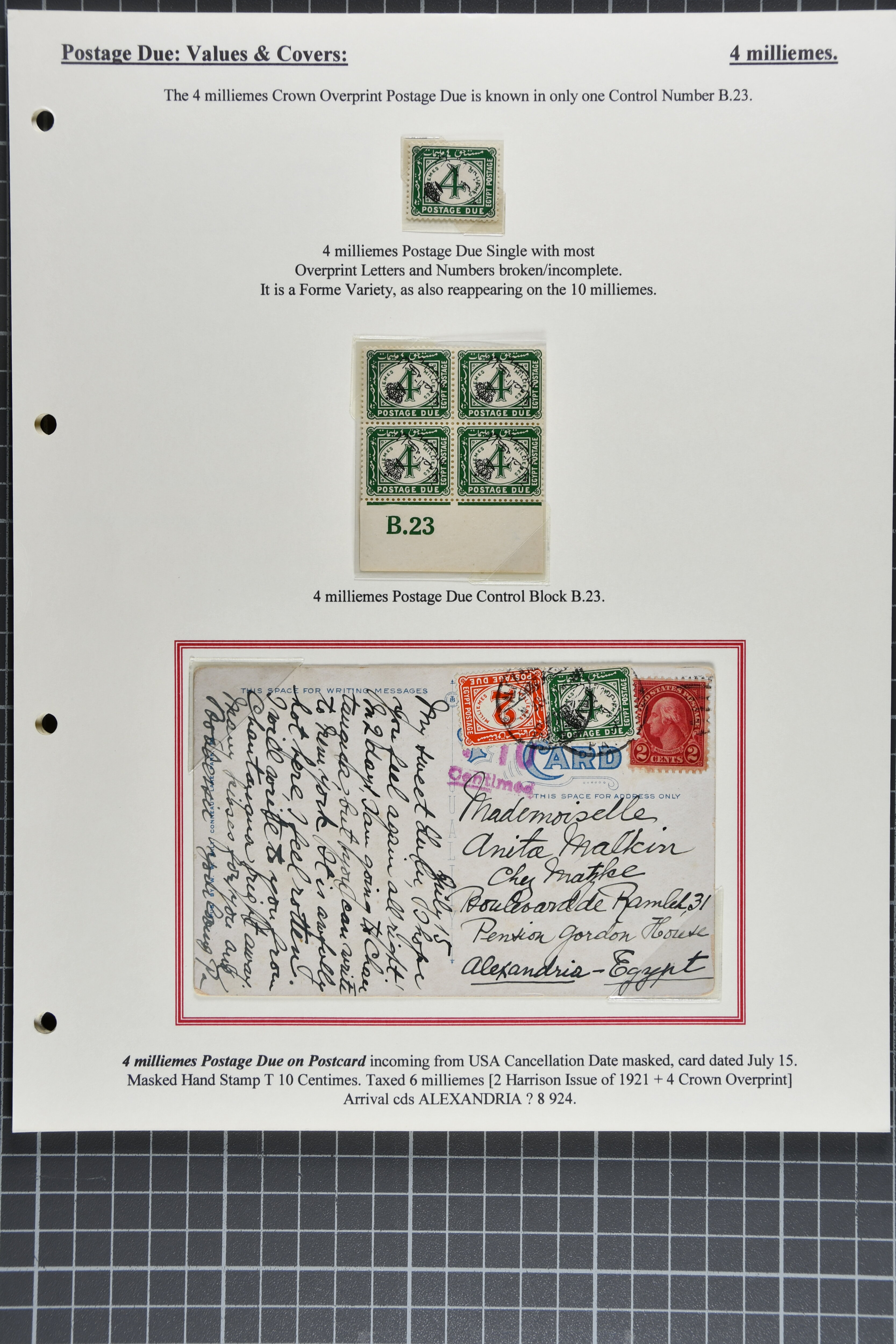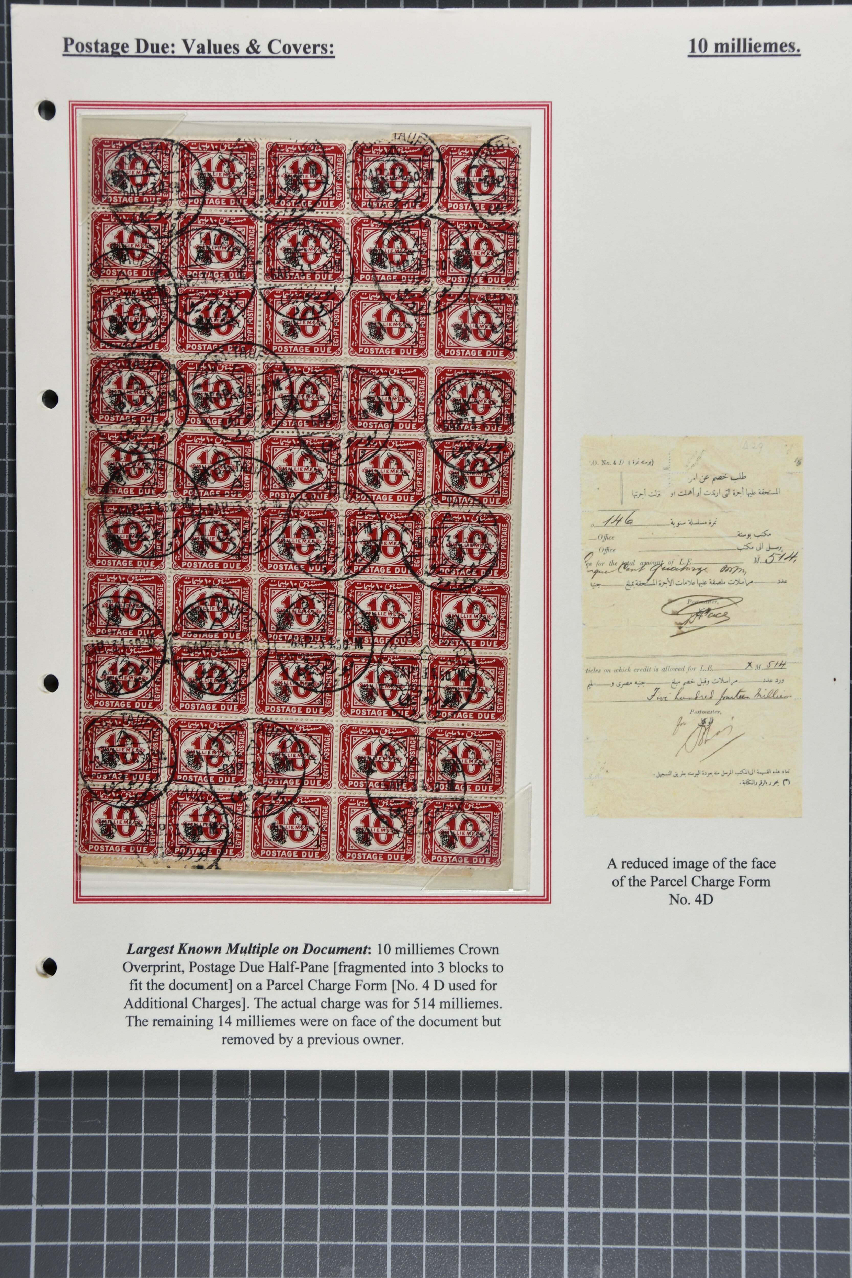 1922 (Oct 10): The Postage Due 'Monarchy' overprint collection on leaves with the astonishing Essay of the overprint upright on the 2 m. scarlet, sheet marginal in a block twenty-four (4 x 6), somewhat toned but