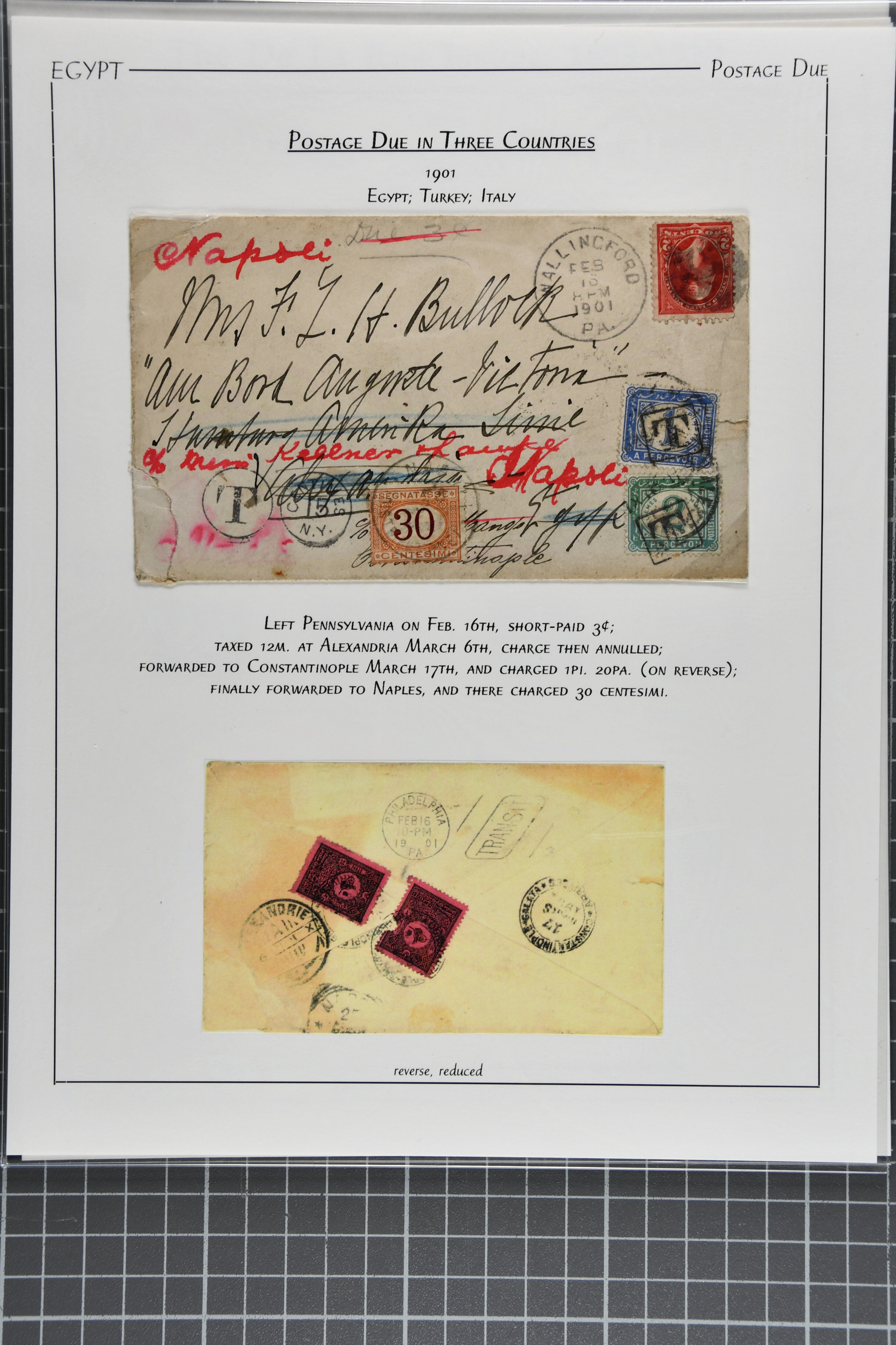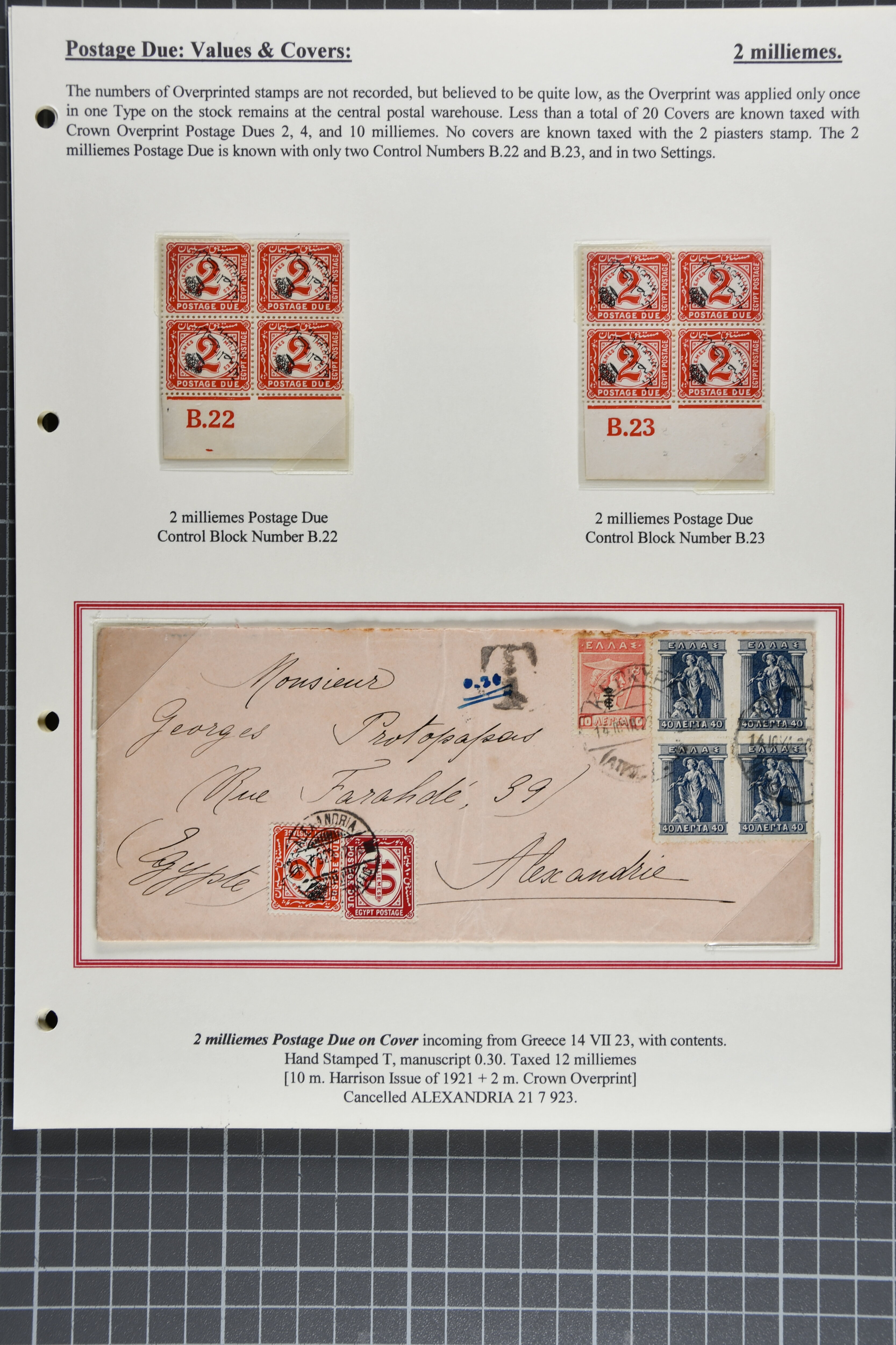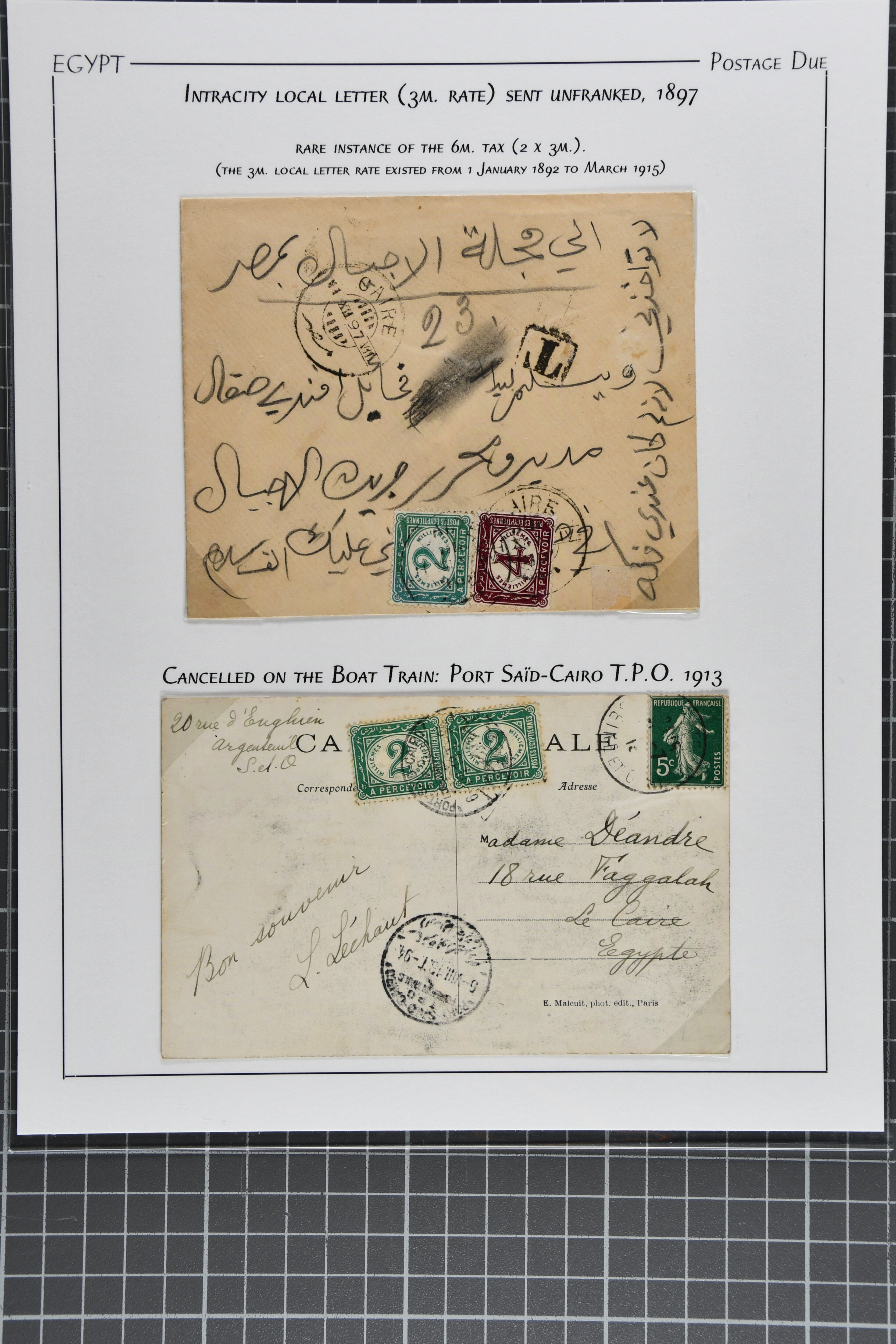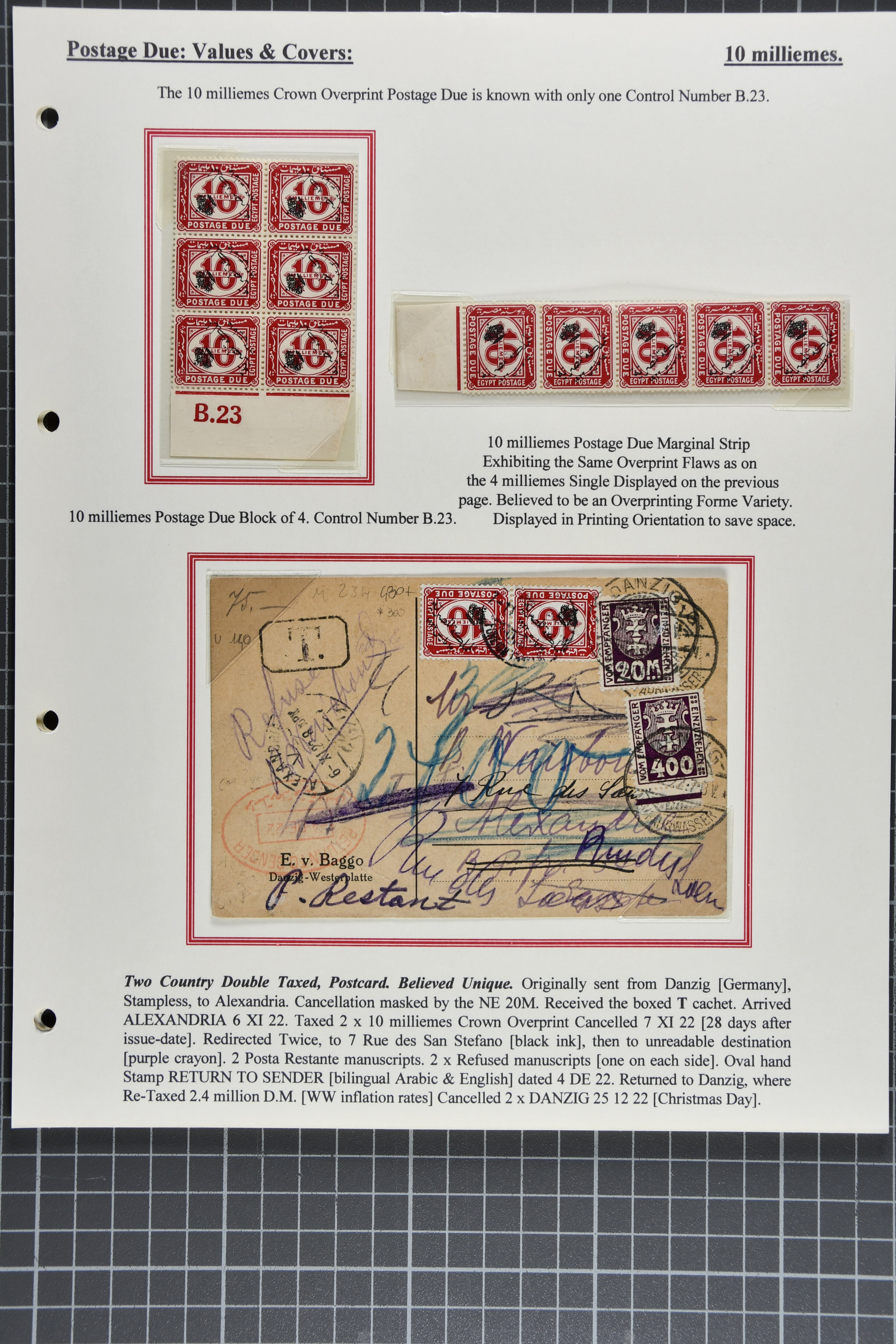 orange multiples and usages of covers/cards on incoming mail from Greece, USA and Danzig. A splendid collection that could be enlarges to form a fine single frame Exhibit Nile Post E253+PD27/30d. (Image 1)