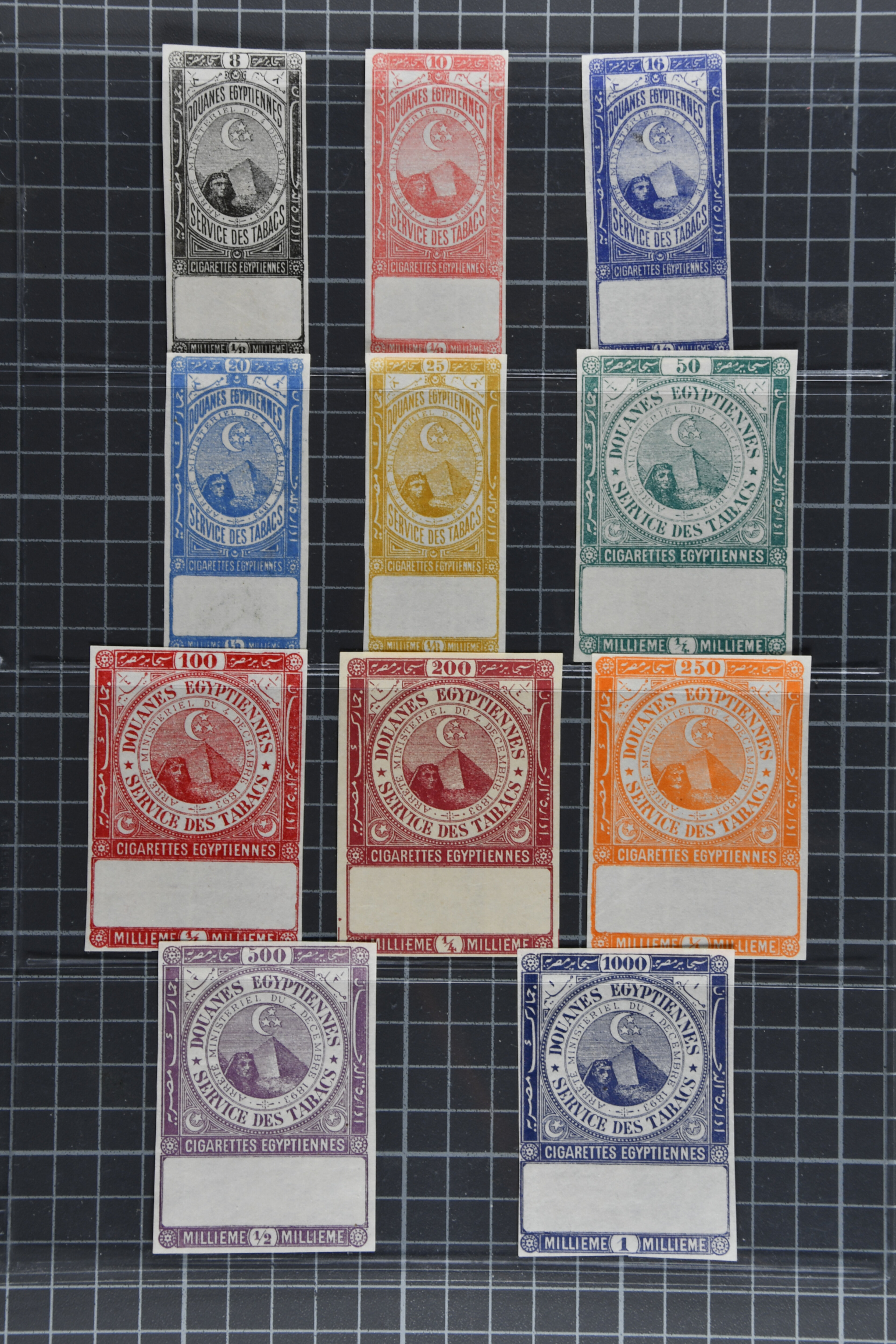 1101 (*) image1894: Cigarette Tax, complete imperforate Proof set of eleven, 8-1000, including unrecorded '250 Cigarettes', exhibition set, probably the only recorded example. (Image 1)
