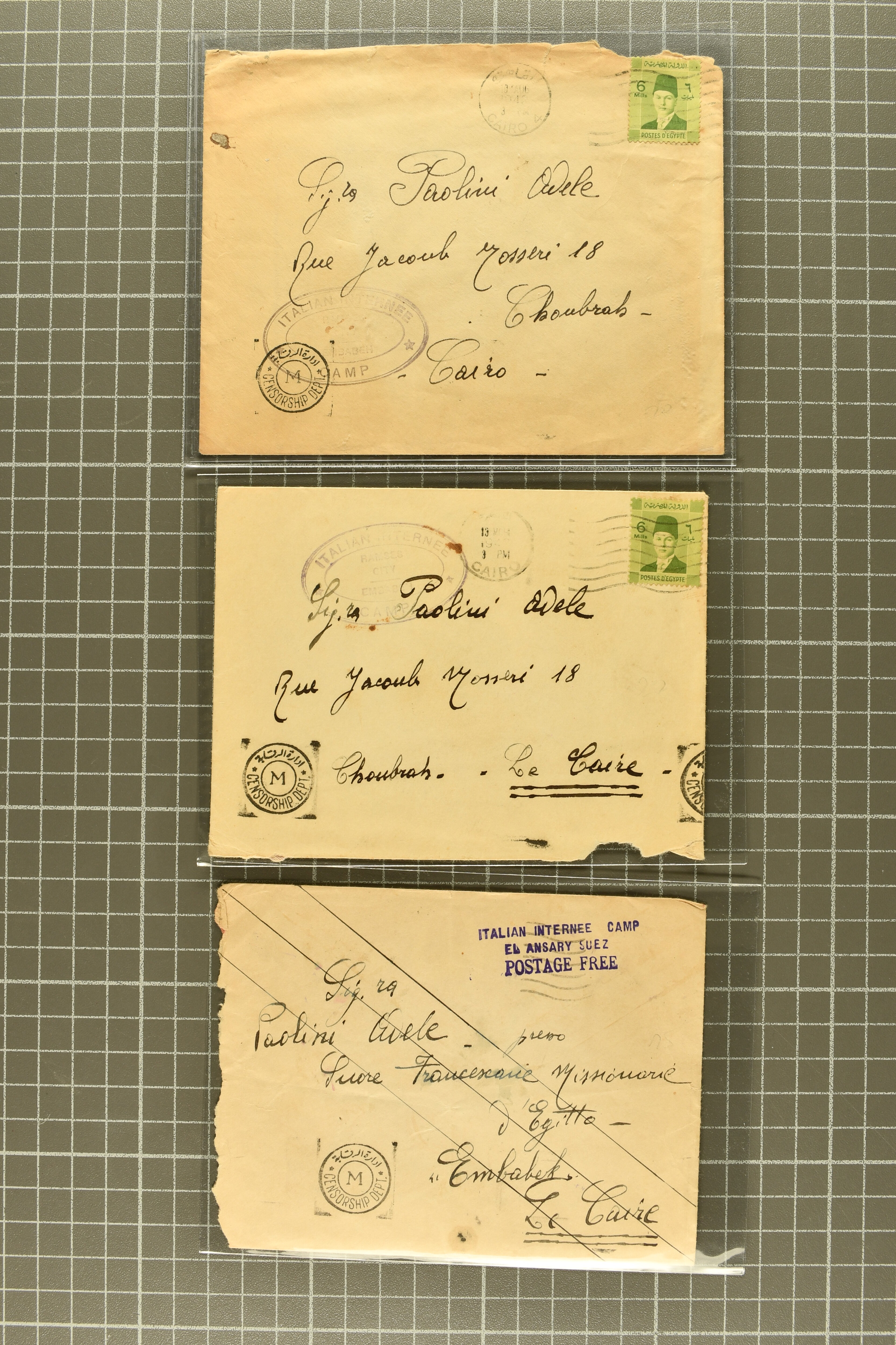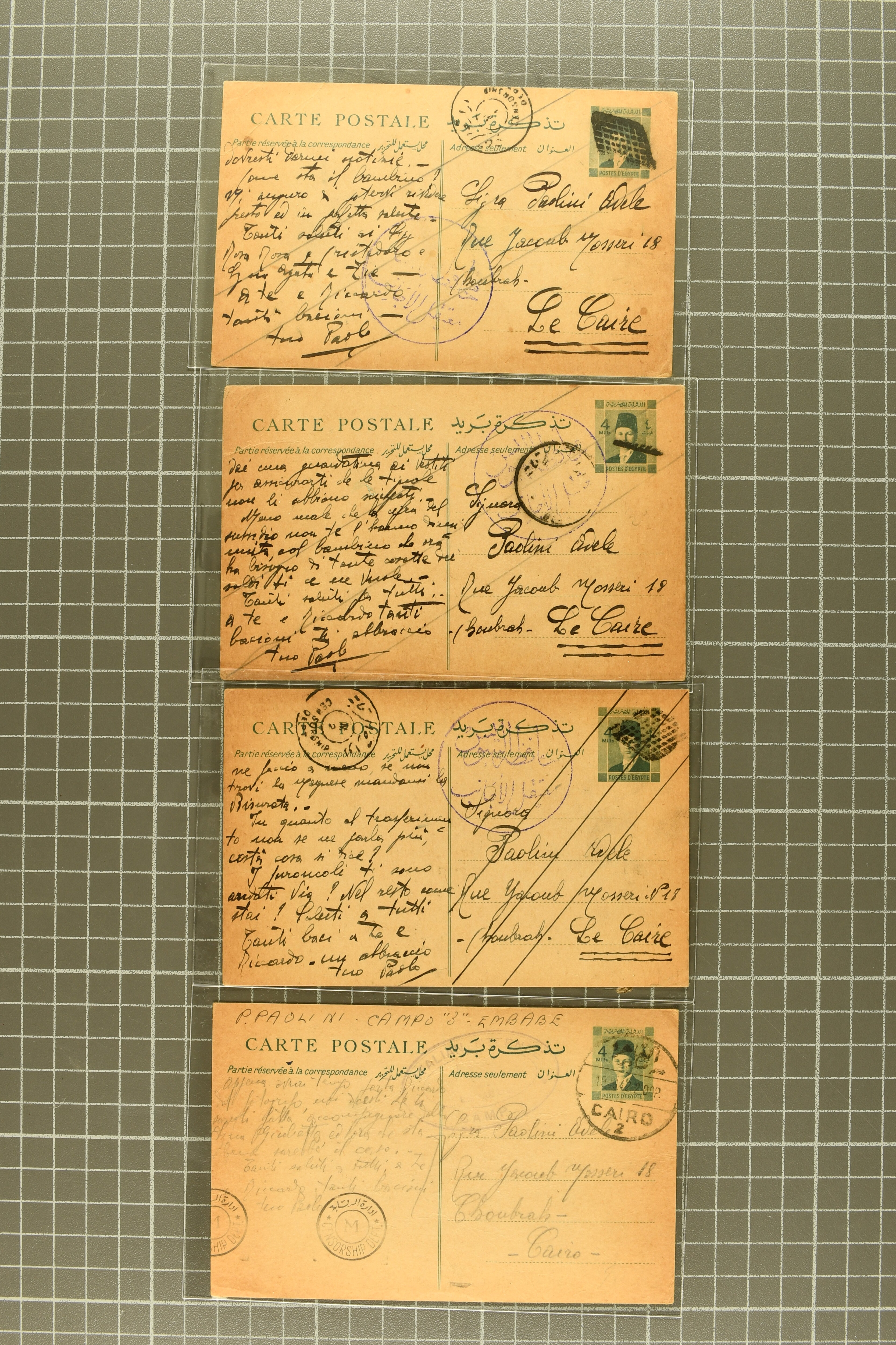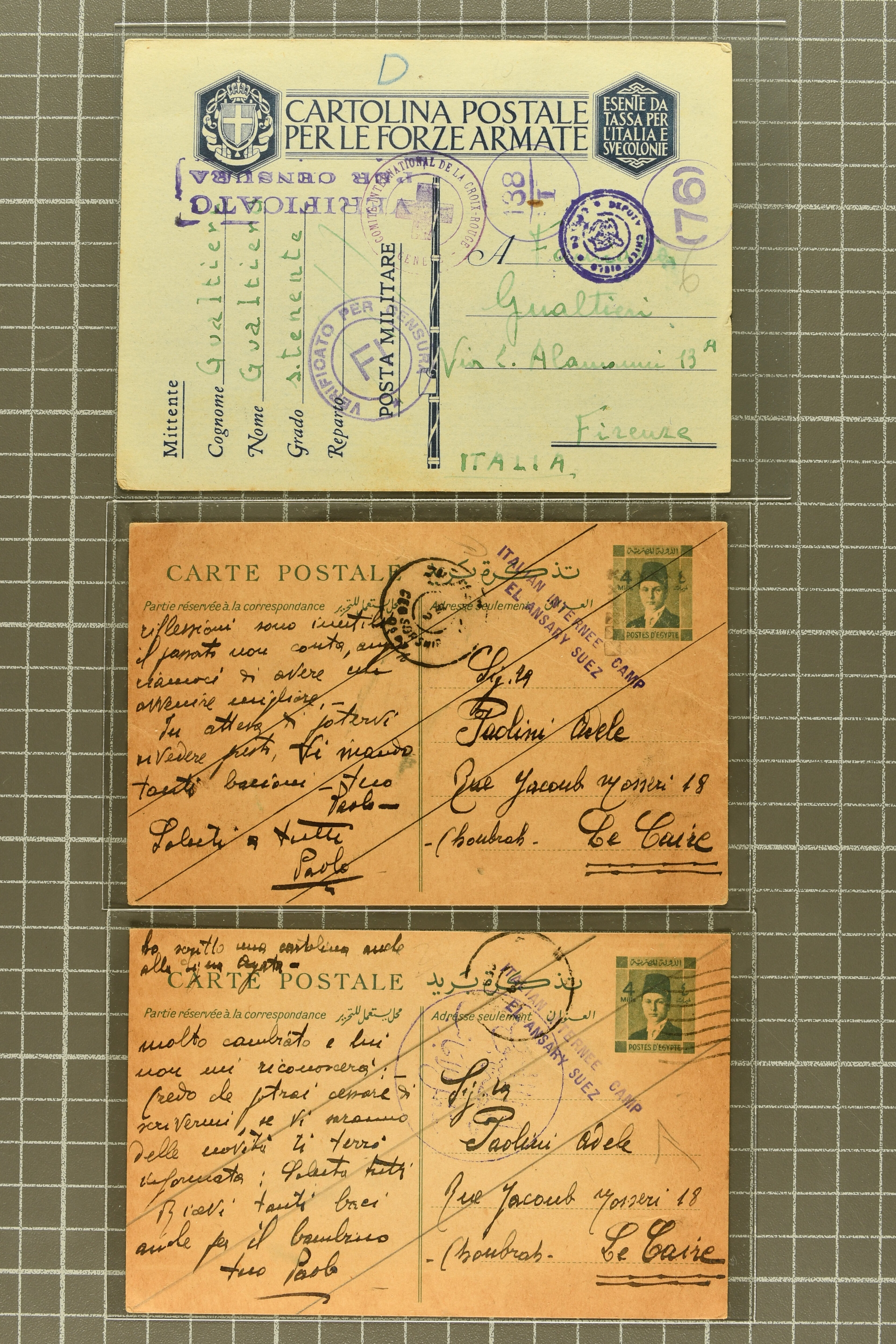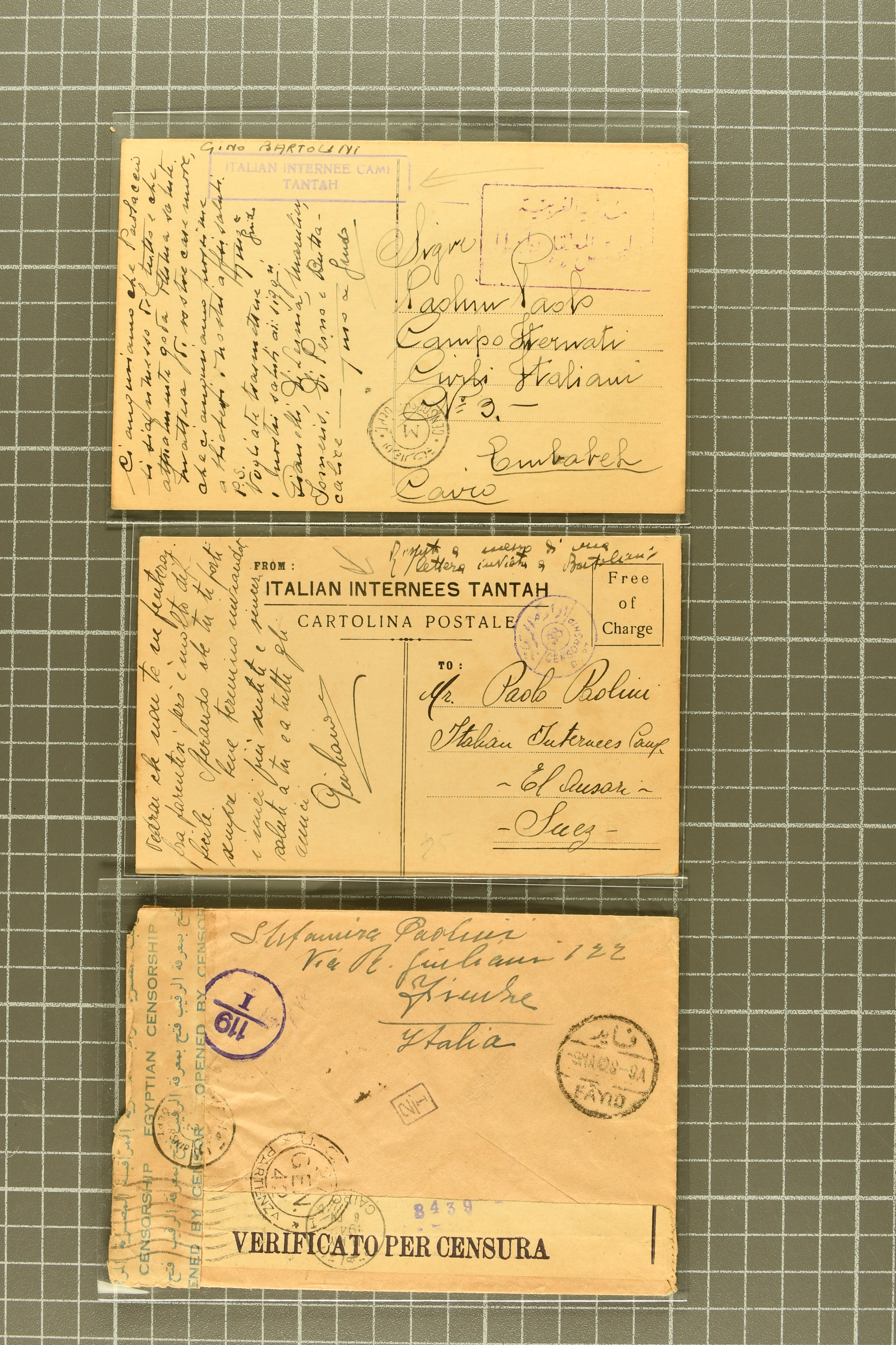 1108 cover image1940/1943: group of 25 covers related to the Italian war prisoners, noted a correspondence on postcards from Suez with handstamps "ITALIAN INTERNEE CAMP" (both oval and two-line types), postcard with violet framed "ITALIAN INTERNEE CAMP TANTAH", some Red Cross mail and bilingual censors, etc., some occasional faults as to be expected, overall in good condition. An interesting lot. (Image 1) (Image 2) (Image 3) (Image 4) (Image 5) (Image 6) (Image 7) (Image 8)
