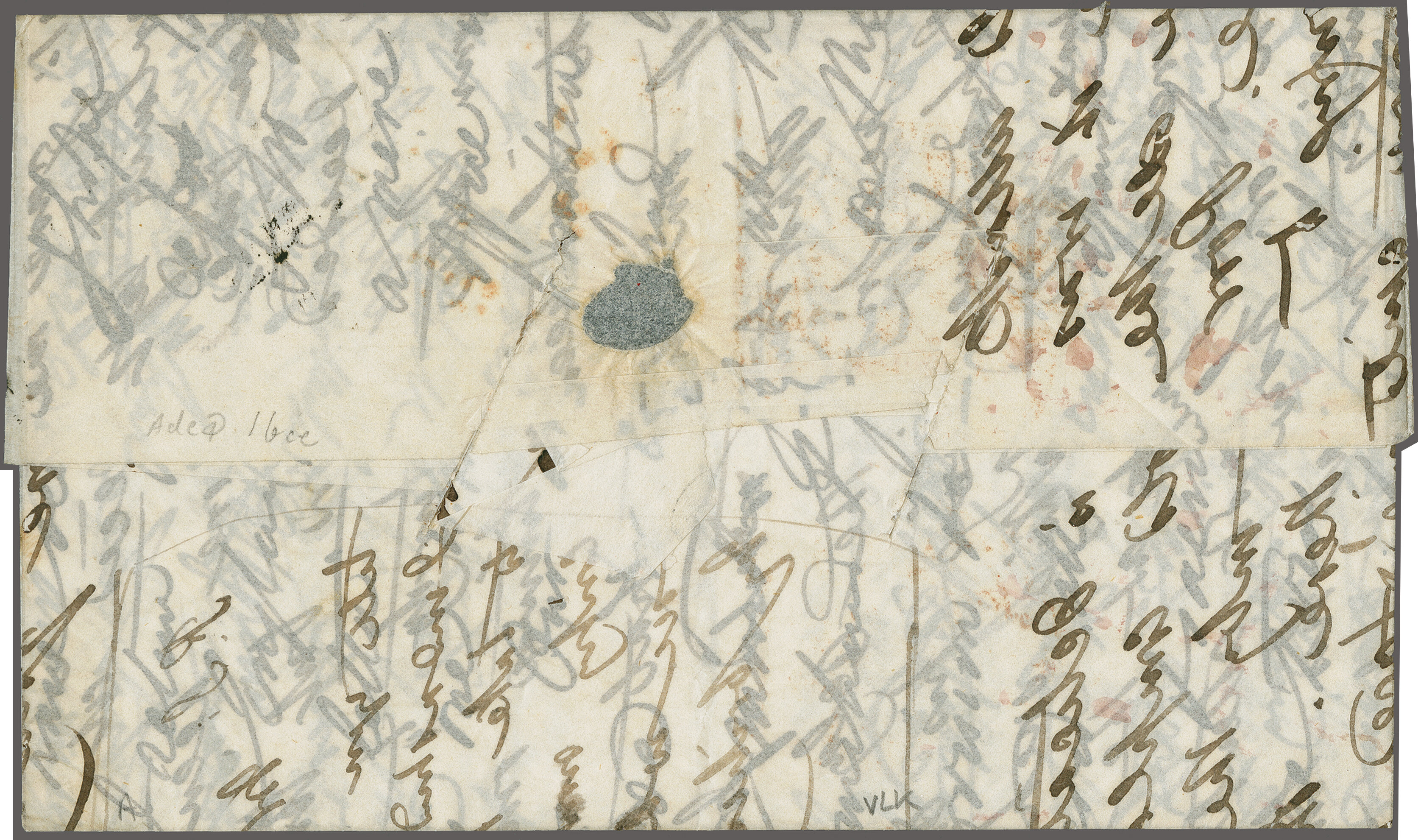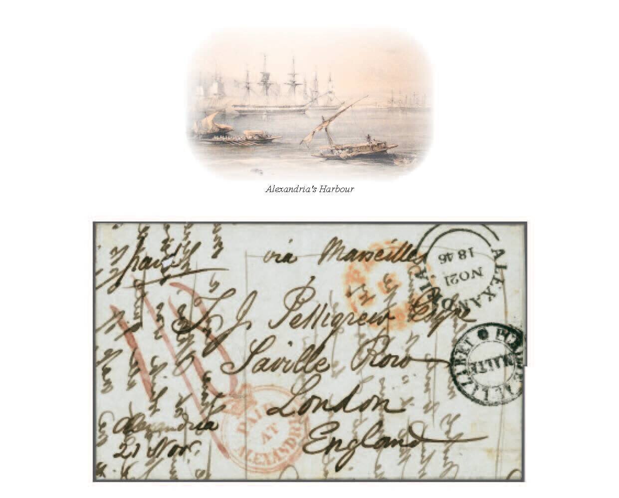 6079 cover imageBritish Post Offices in Egypt 1846 (Nov 21): Disinfected cover with thin paper, directed to London, endorsed "via Marseilles", bearing a fine strike of the rare red Crown circle "♚ / PAID / AT / ALEXANDRIA", reddish "1/8" tax in red manuscript at left, black ALEXANDRIA double arc despatch, two diagonal disinfection slits and "PURIFIÉ AL LAZARET" / MALTE" handstamp, LONDON arrival at top, without any backstamps. Fine and clean condition Gi = £ 3'250. (Image 1) (Image 2) (Image 3)