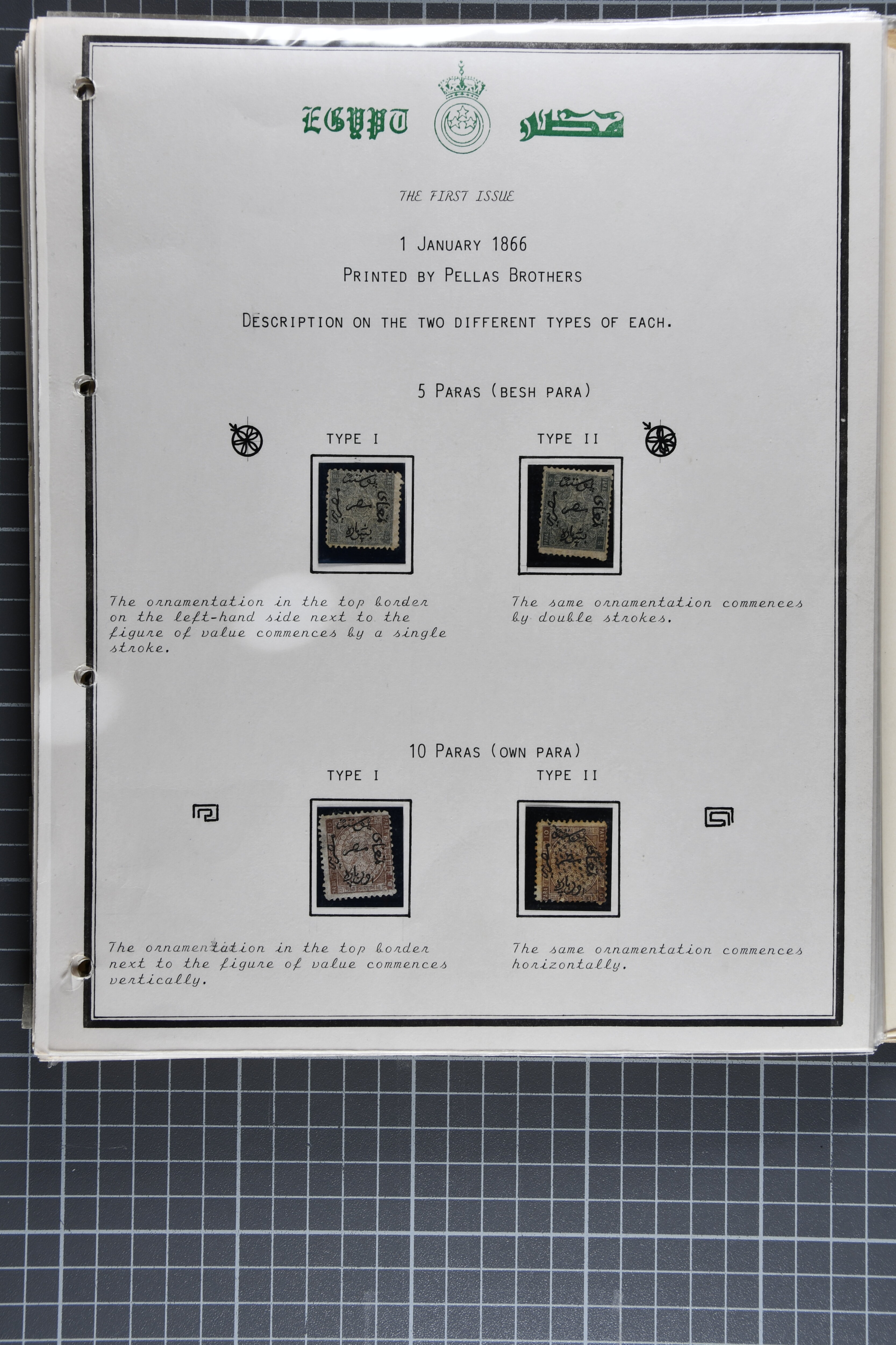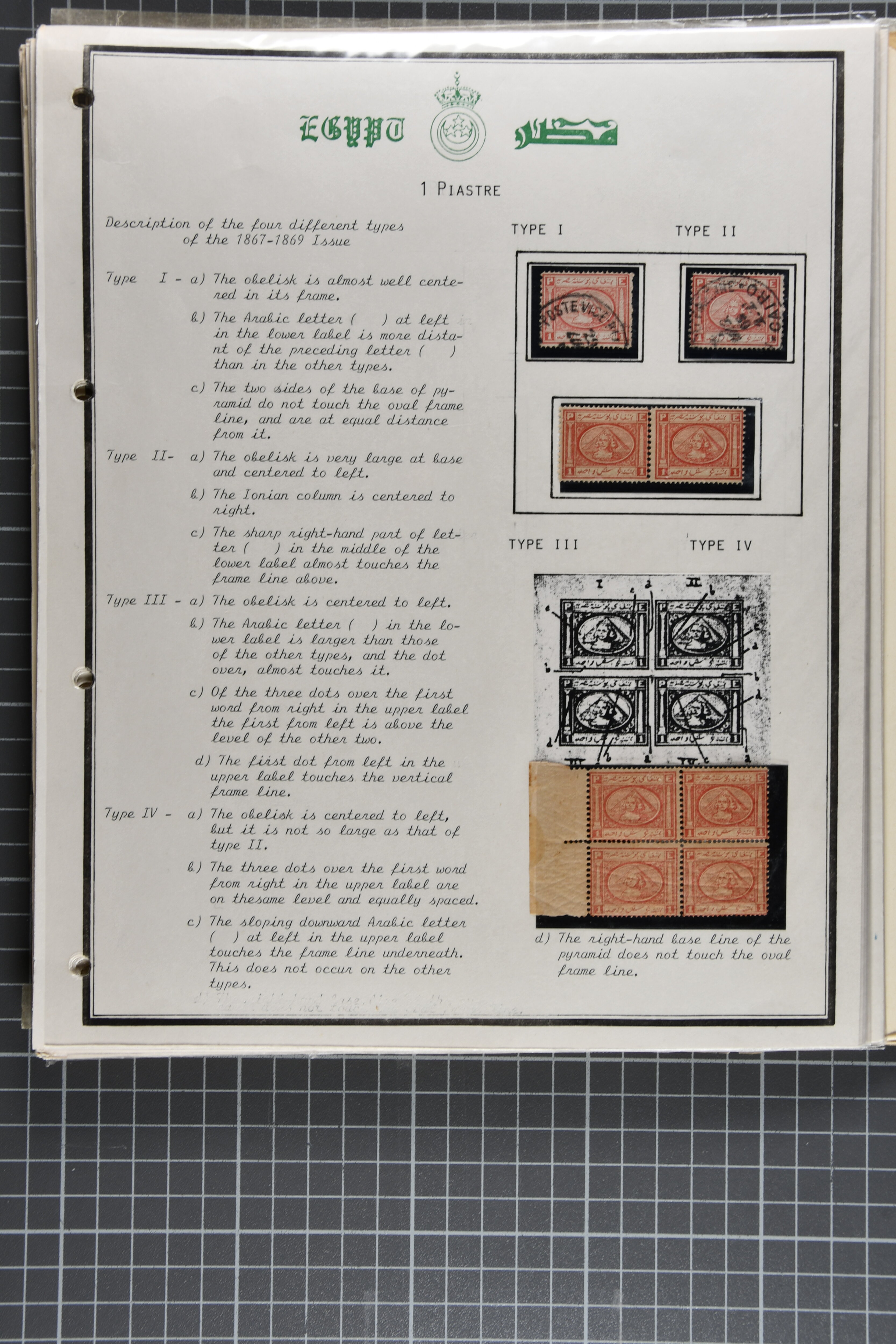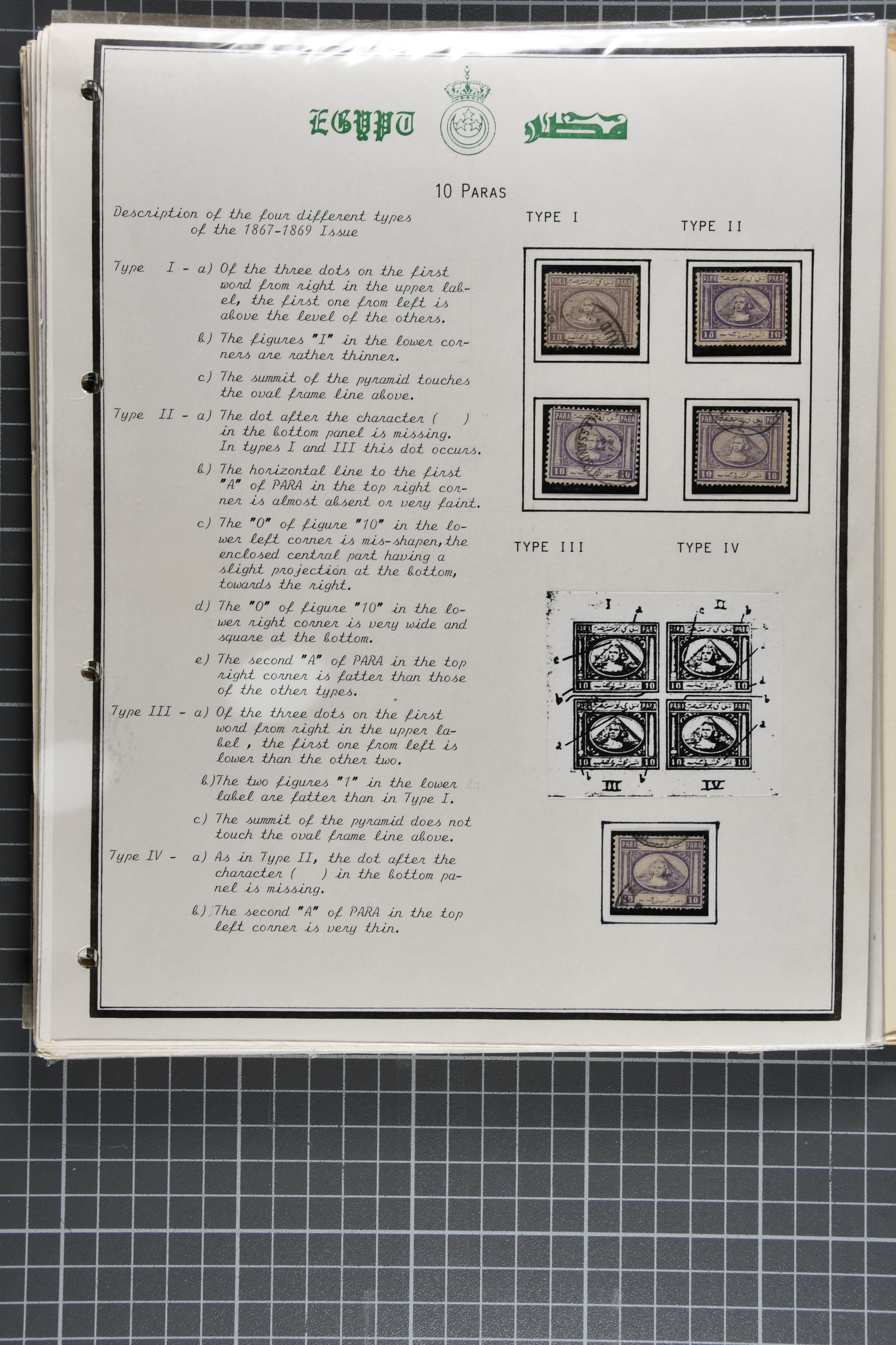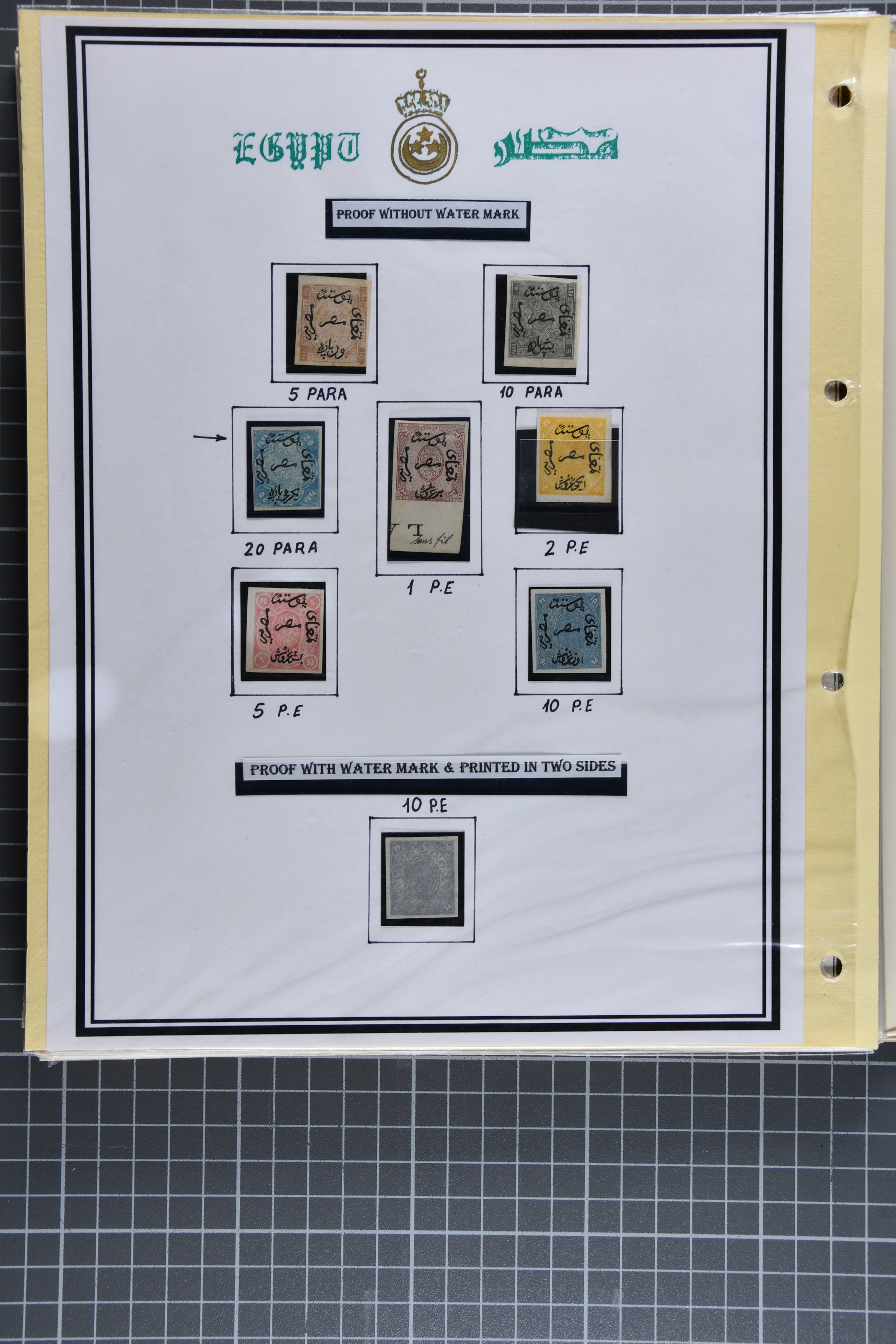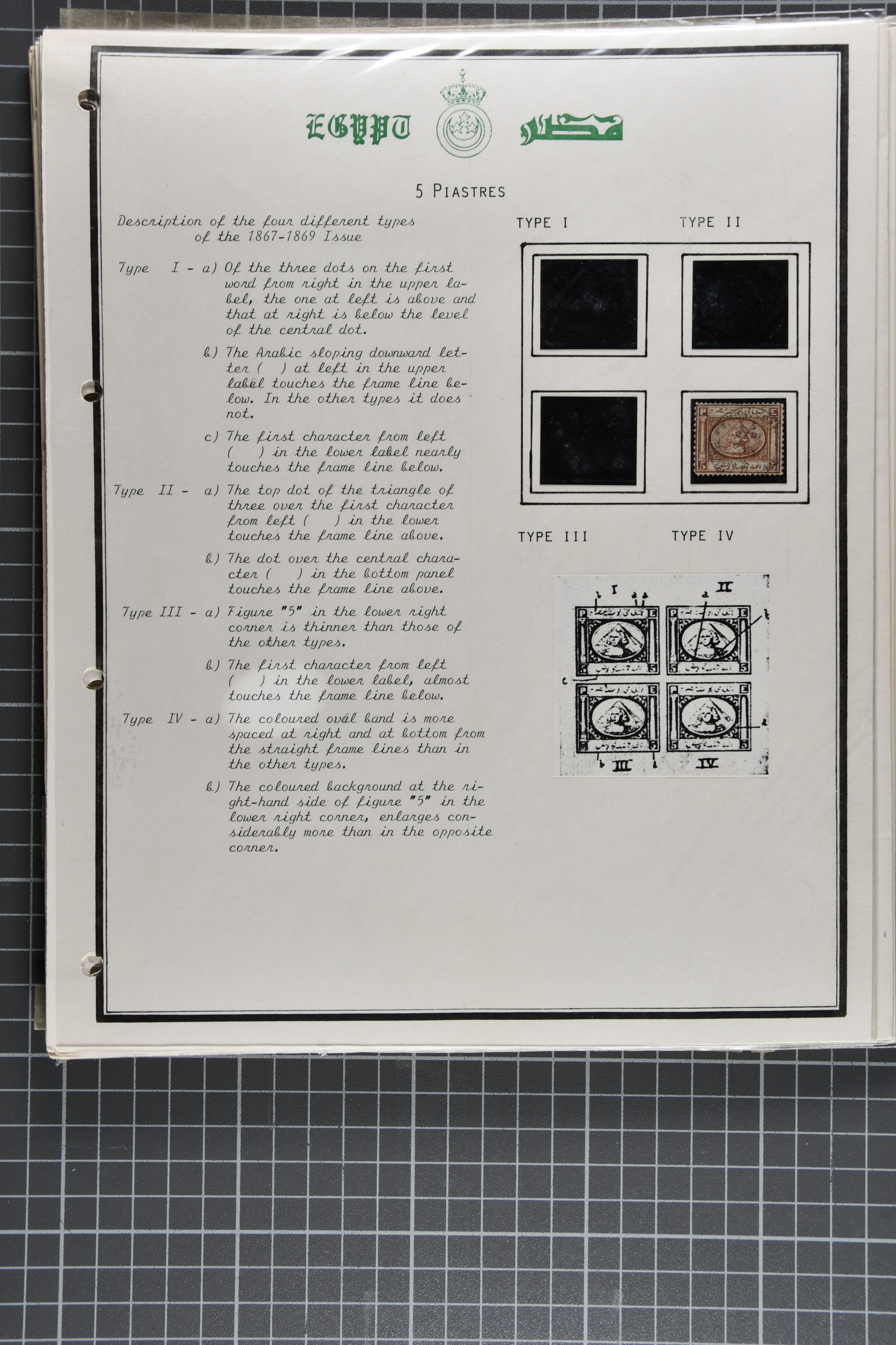 1098 bof image1866/1879: Collection on leaves with set of seven imperf. Pellas Proofs for the first issue, 10 pi. slate background only Proof on wmk'd paper, 1866 First issue 5 pa. unused (2), 10 pa. brown unused and used, 20 pa. blue used (2), 1 pi with very fine usage on cover from Alexandria, 2 pi. used (2), 5 pi. rose unused (cert. BPA), 10 pi. slate unused (cert. RPSL), 1867 range showing the types incl. 1 pi. unused block, 5 pi. brown used, 1872/75 issue used, and unused Bulaq 5 pa. brown block showing two tête-bêche's, 20 pa. grey block, 2 pi. yellow block of four, theerafter large range with cancellation interest etc. (324 items). (Image 1) (Image 2) (Image 3) (Image 4) (Image 5) (Image 6) (Image 7) (Image 8) (Image 9) (Image 10) (Image 11) (Image 12) (Image 13) (Image 14) (Image 15) (Image 16) (Image 17) (Image 18) (Image 19) (Image 20) (Image 21) (Image 22) (Image 23) (Image 24) (Image 25) (Image 26) (Image 27) (Image 28) (Image 29) (Image 30) (Image 31) (Image 32) (Image 33) (Image 34) (Image 35) (Image 36)