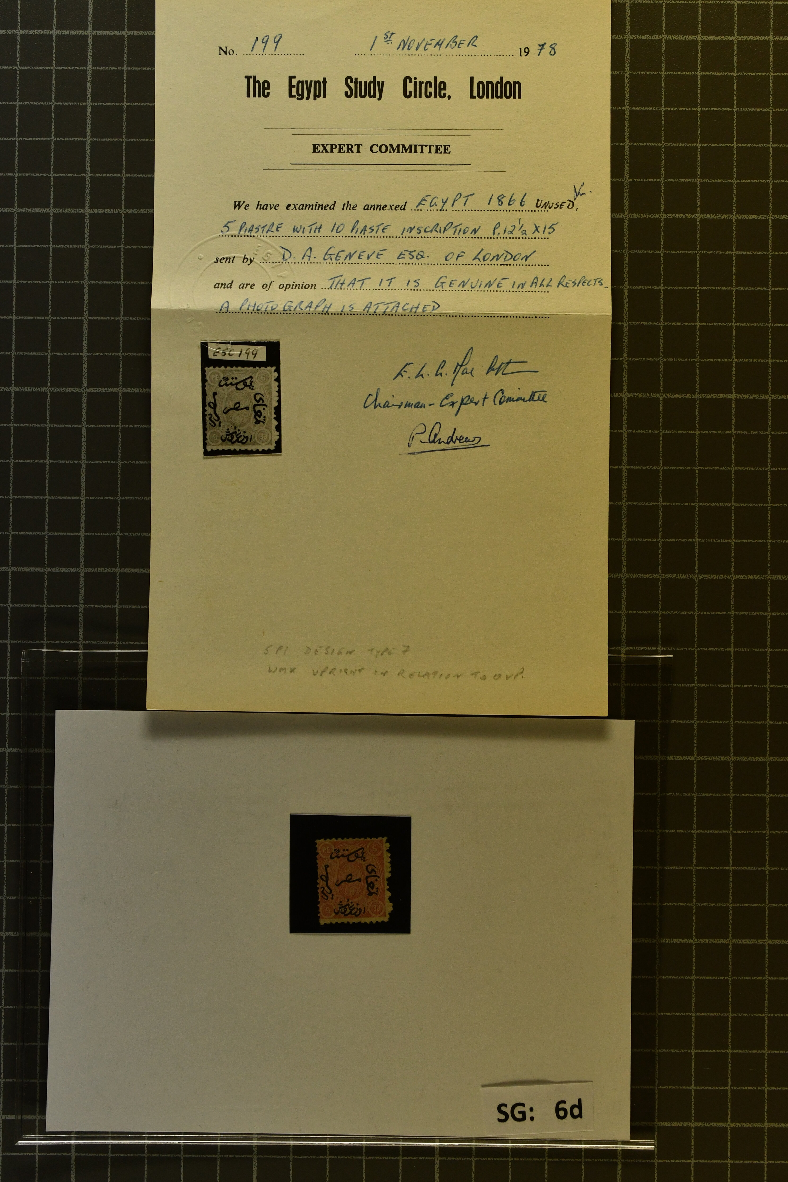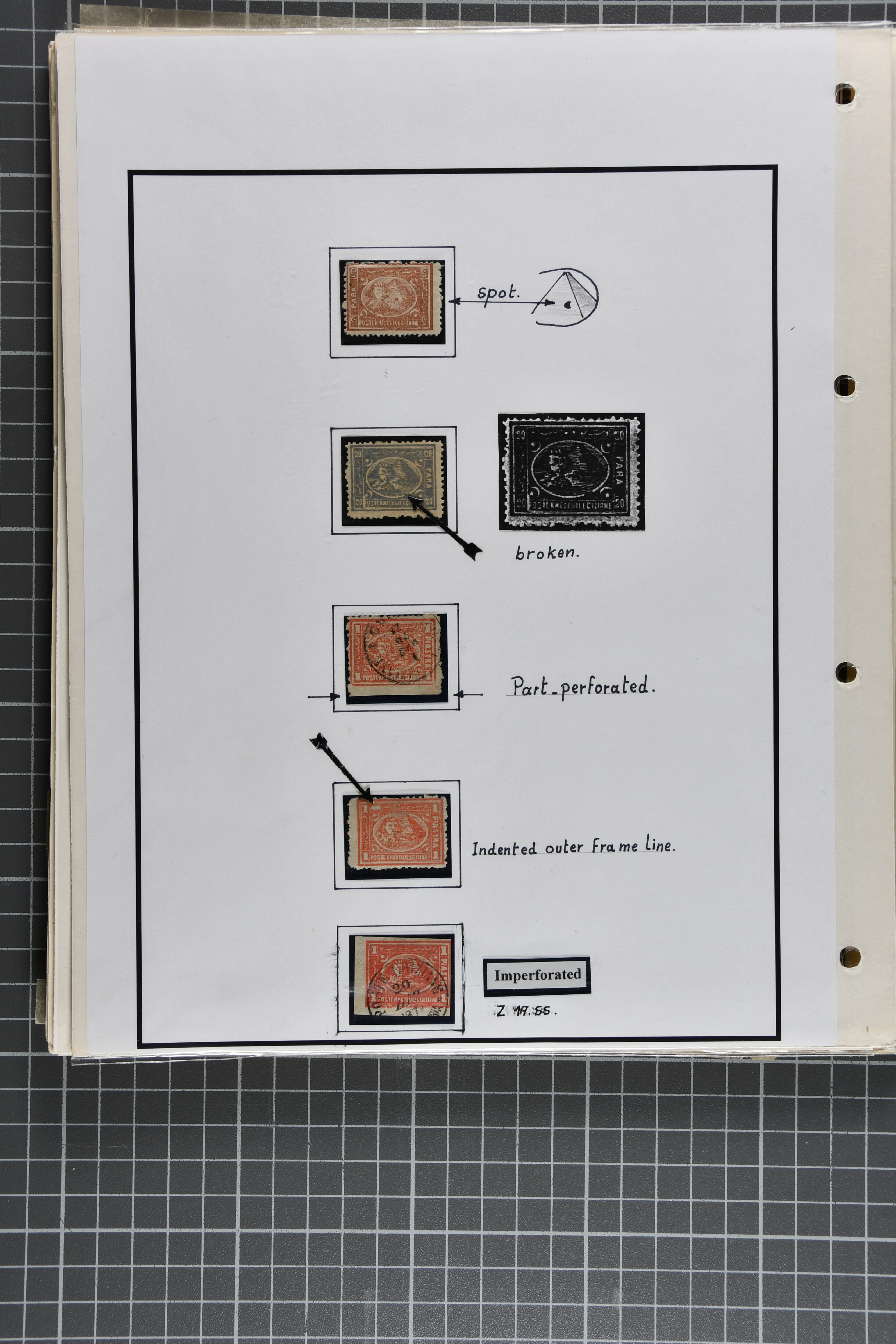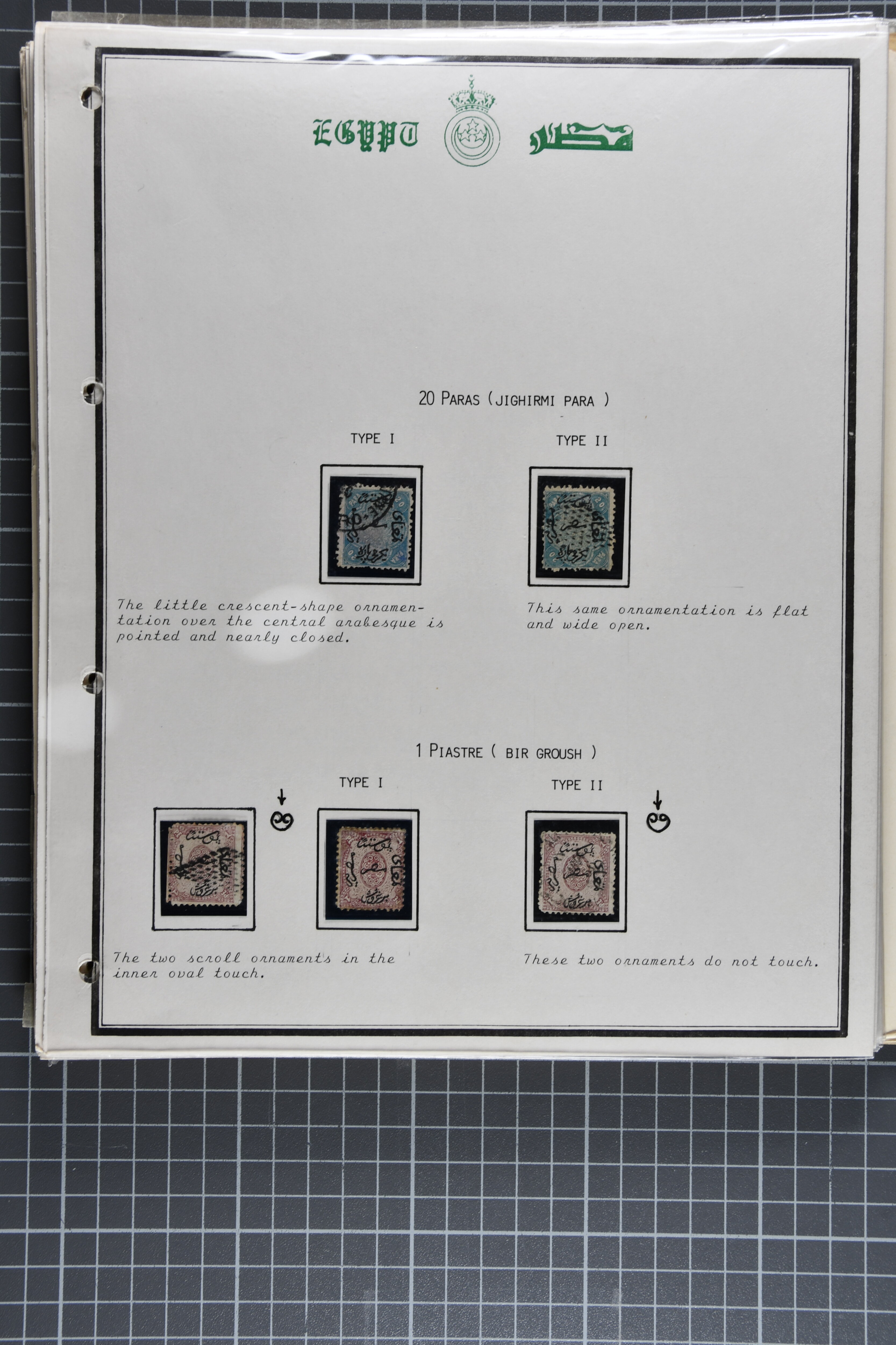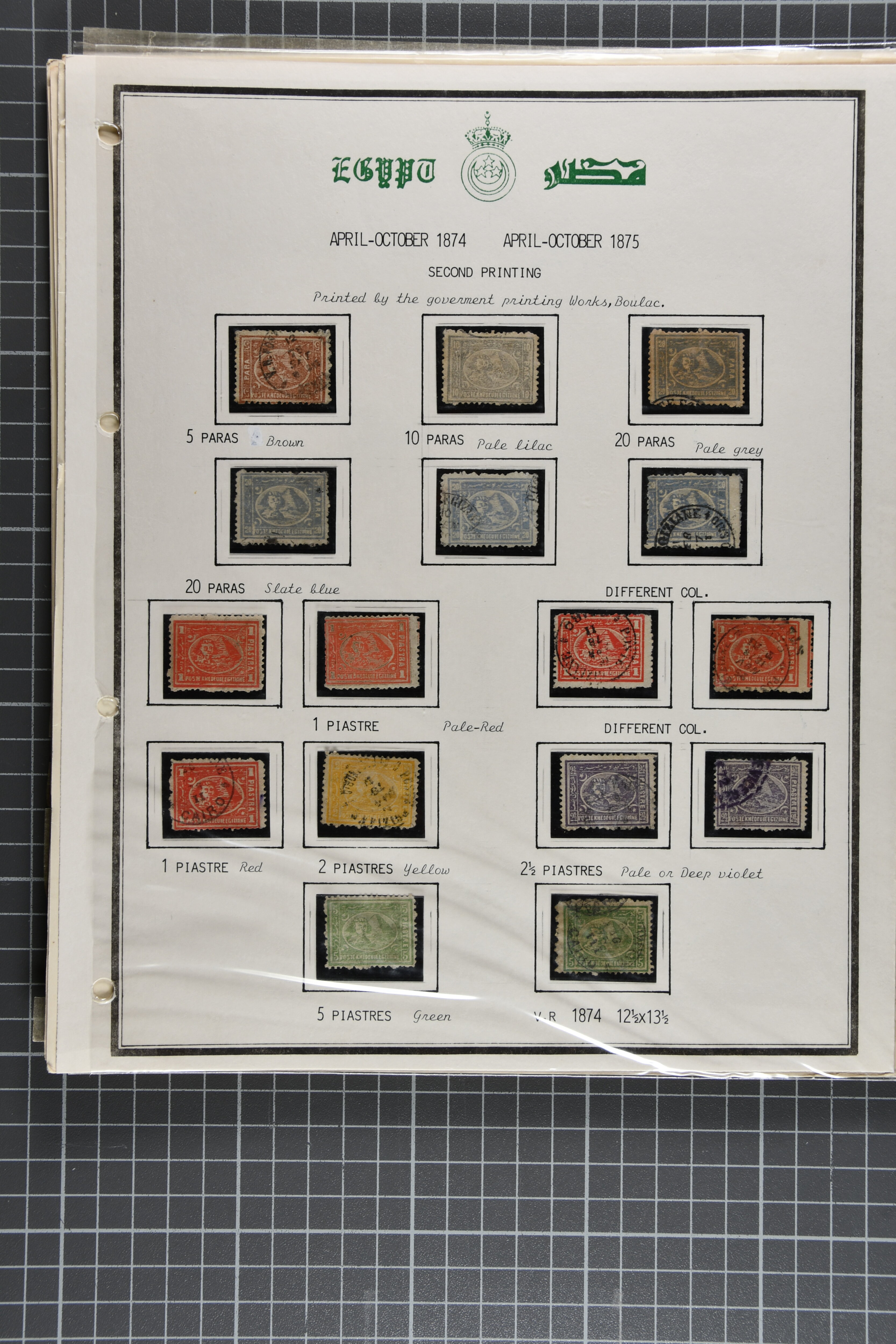 1098 bof image1866/1879: Collection on leaves with set of seven imperf. Pellas Proofs for the first issue, 10 pi. slate background only Proof on wmk'd paper, 1866 First issue 5 pa. unused (2), 10 pa. brown unused and used, 20 pa. blue used (2), 1 pi with very fine usage on cover from Alexandria, 2 pi. used (2), 5 pi. rose unused (cert. BPA), 10 pi. slate unused (cert. RPSL), 1867 range showing the types incl. 1 pi. unused block, 5 pi. brown used, 1872/75 issue used, and unused Bulaq 5 pa. brown block showing two tête-bêche's, 20 pa. grey block, 2 pi. yellow block of four, theerafter large range with cancellation interest etc. (324 items). (Image 1) (Image 2) (Image 3) (Image 4) (Image 5) (Image 6) (Image 7) (Image 8) (Image 9) (Image 10) (Image 11) (Image 12) (Image 13) (Image 14) (Image 15) (Image 16) (Image 17) (Image 18) (Image 19) (Image 20) (Image 21) (Image 22) (Image 23) (Image 24) (Image 25) (Image 26) (Image 27) (Image 28) (Image 29) (Image 30) (Image 31) (Image 32) (Image 33) (Image 34) (Image 35) (Image 36)