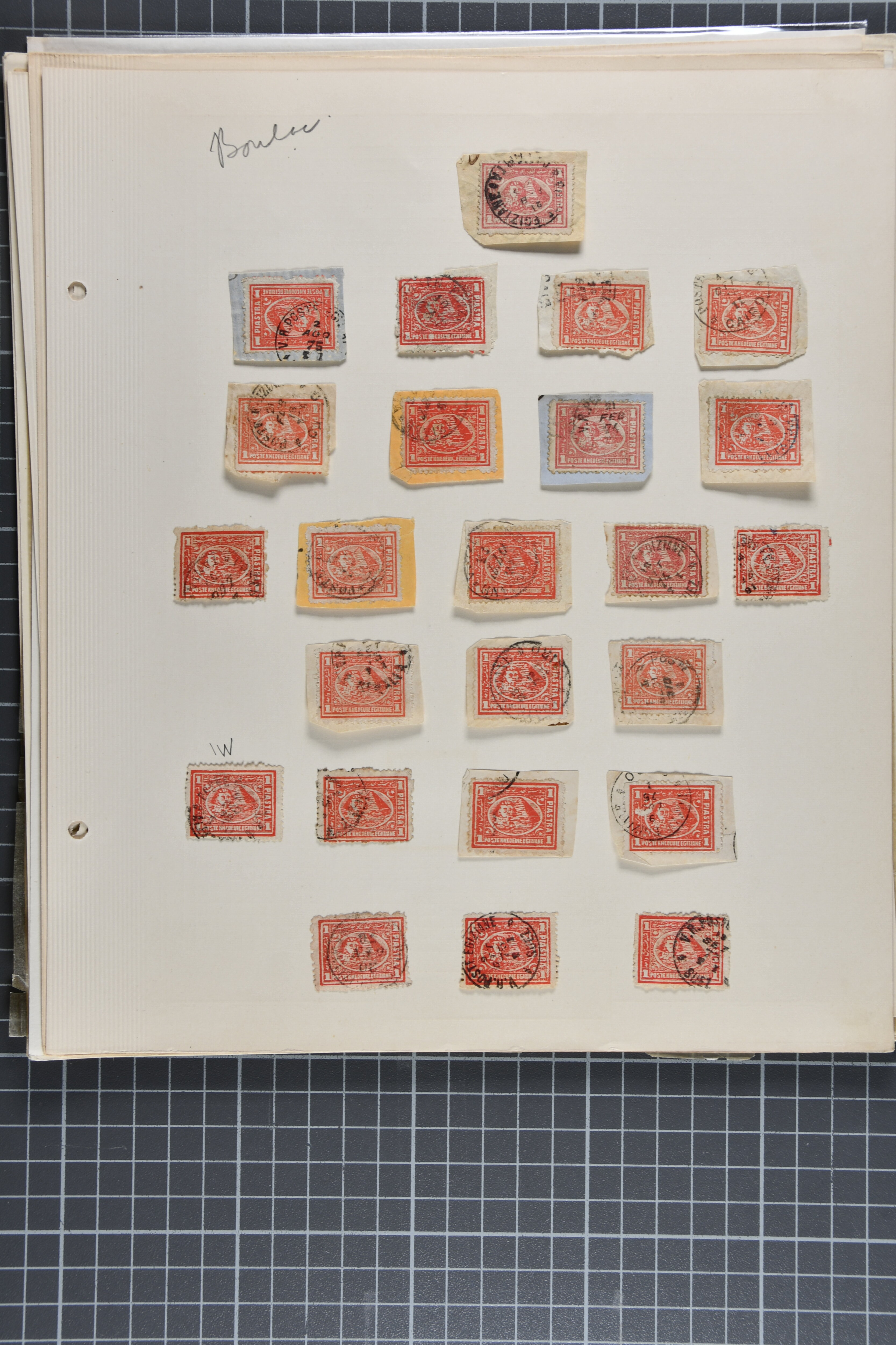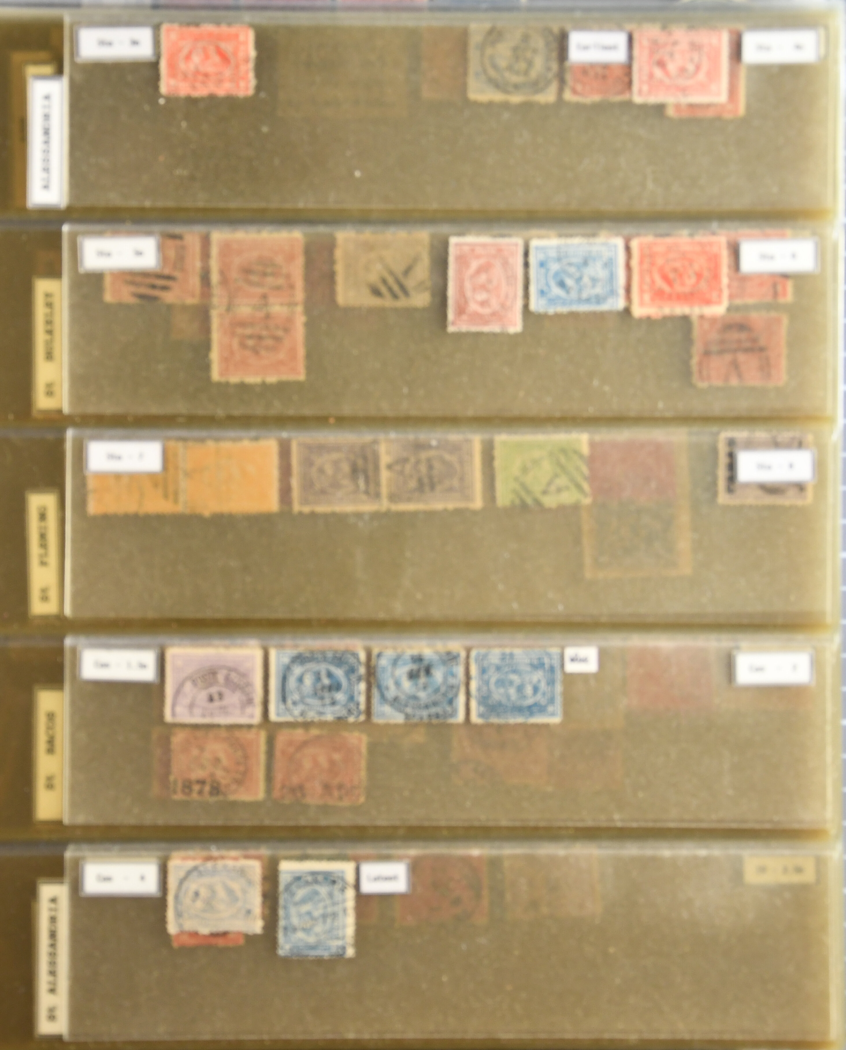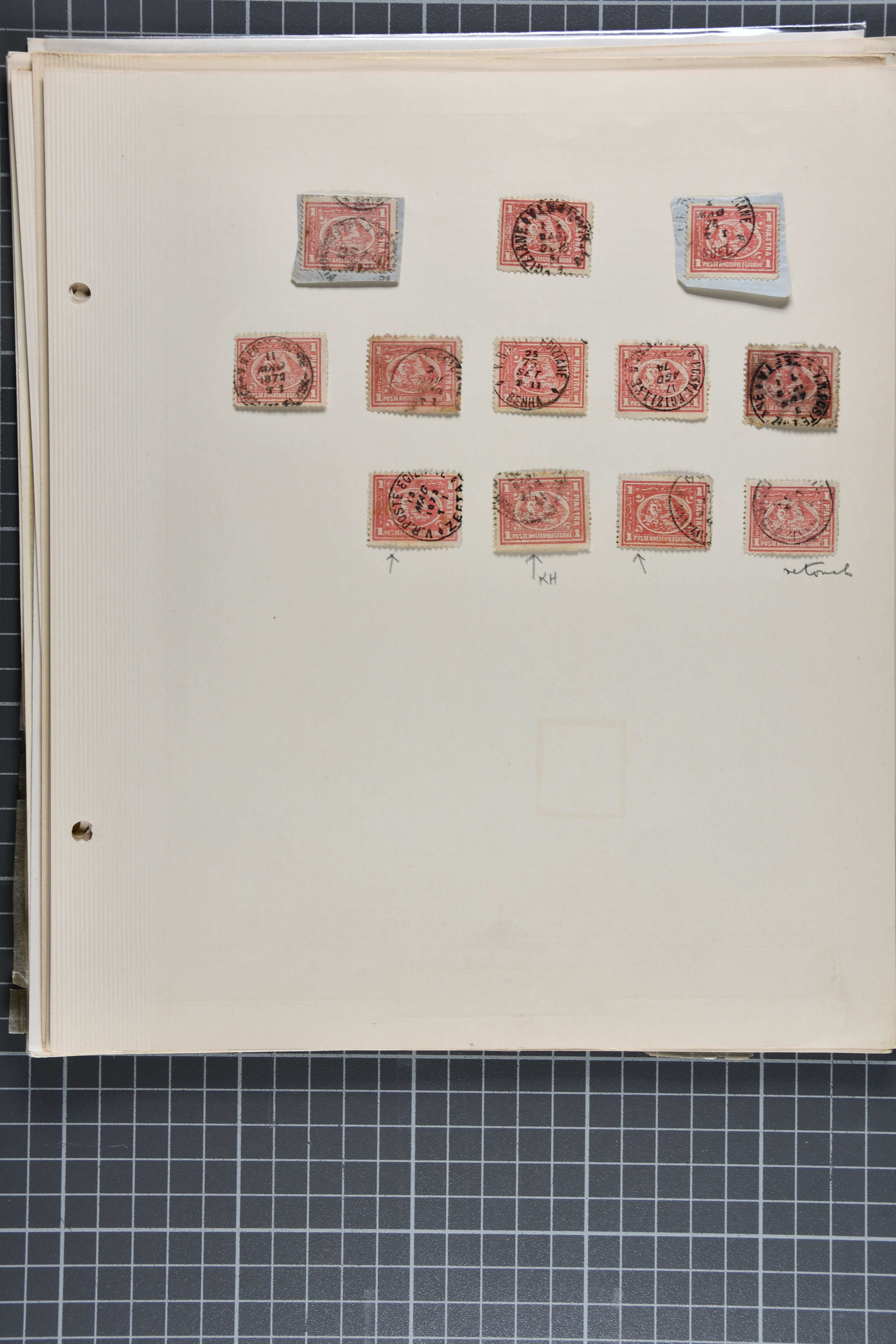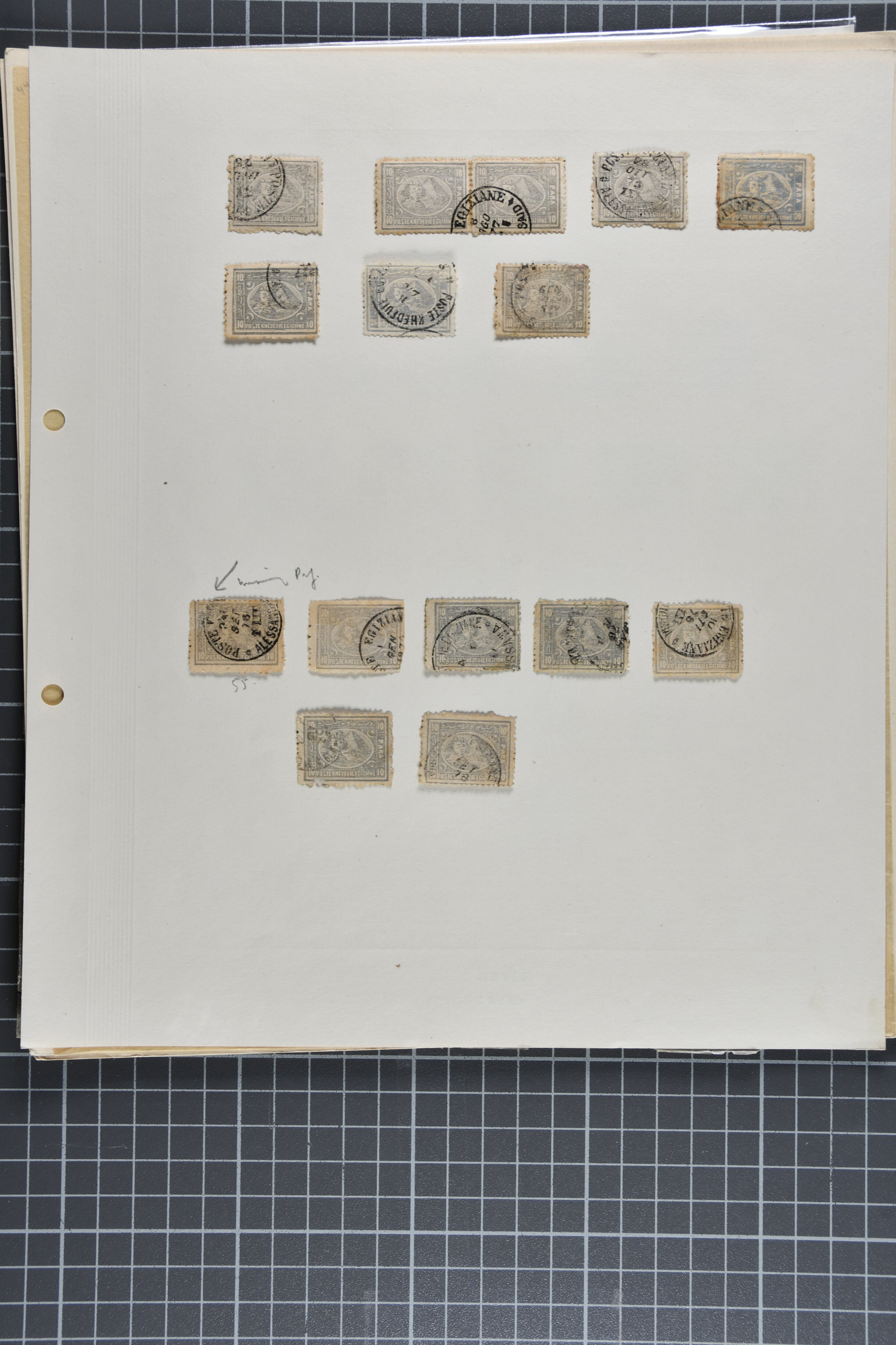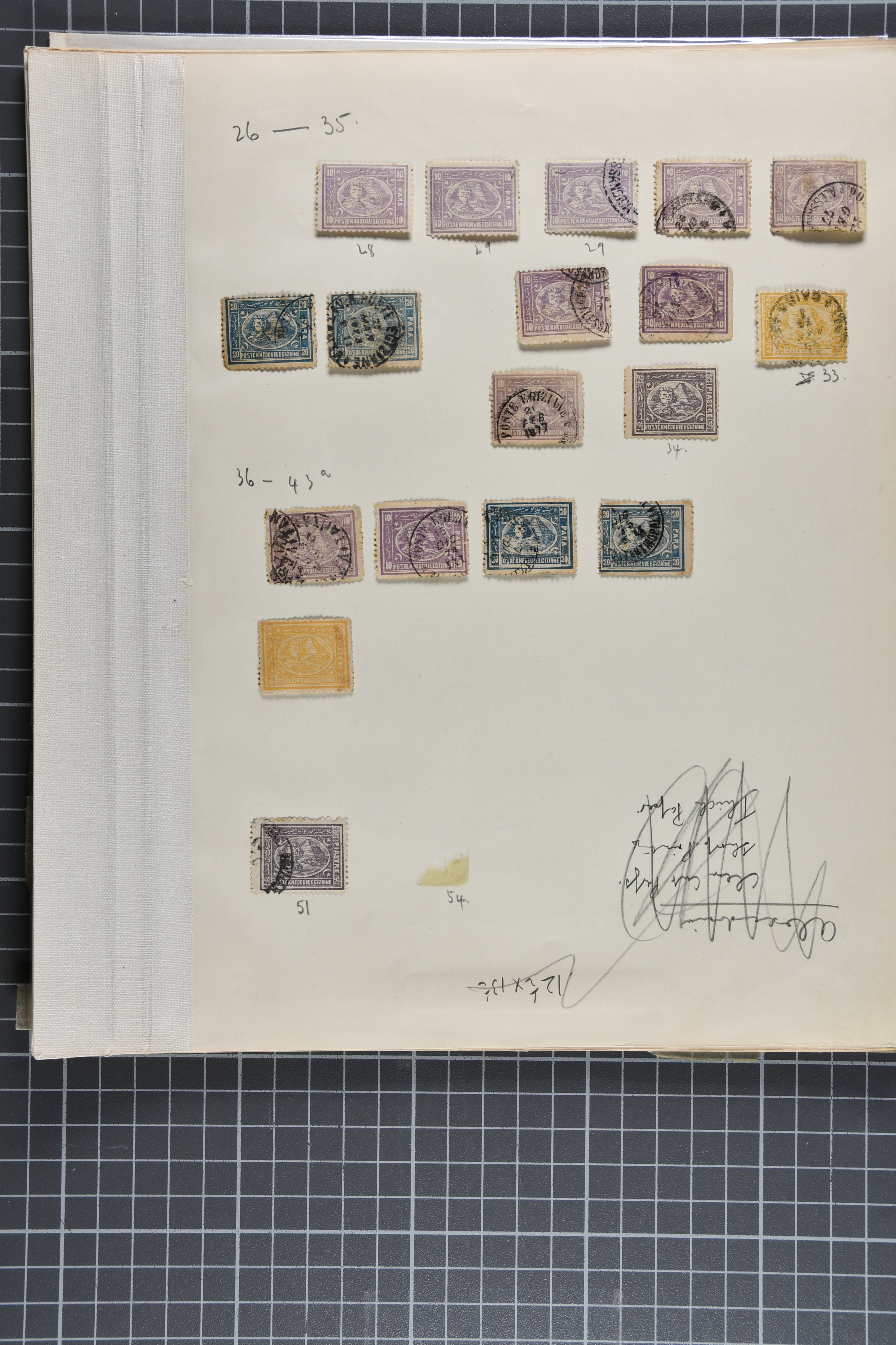 1100 image1867/75: Penasson & Bulâq, the extraordinary cancellation study on the issues with all values represented, from Alexandria incl. 1874 5 pa. tête-bêche pairs (3), 1 pi. red in blocks of four; rare Mailboat "ALES / UFIZIO NATANTE" cds's on 20 pa. and 1 pi. (2); rare "ST. BULKELEY", ST. BACOS and ST. SCHUTZ mostly on 1 pi., Cairo with "Ambulante / Cairo - Ales" cds's on 5 pa. and 1 pi., "Cairo / Stazione" on 5 pa. brown tête-bêche pair; rare ABE star and crescent (3), range of cancels from ABU HOMUS, ASSOUAN incl. a cover, ATFE, BENHA, BENI SUEF, rare BILBES usage, BIRKET EL SAB, rare BULAH DACRUR (2), DAMANHOUR, DAMIATA, DESUK, fine arabic dated ESNA range, FESCNE, rare GAALIUB on 1 pi., GHERGA, rare GHISA on 5 pa. tête-bêche block of four, HELOUAN, ISMAILIA, KAFR DAUAR, KAFR ZAYAT, KENA incl. a cover, LUXOR arabic dated range, MAGAGA, MAHALLET ROH, MANFALOUT, MANSURA, MELLAUI, MEDINET EL FAIUM, MEHALLA, MINET EL GAMH, MINIE on 10 pa.grey block of four, MINUF, PORT SAID, RAMSES, RODA, ROSETTA, SAMANUD, SCIBIN EL ANATEUR, SCIBIN EL KOM, SOHAG arabic dated range, SIUT incl. a cover, SUEZ, TEH EL BAROUD, TANTA, rare TOOH with four examples, TEH EL KIBIR, ZAGASIK, ZEFTA; and Station postmnarks, rettas, registration cancels etc., used abroad with 1 pi. used in BARBAR, KARTUM usages, 1 pi. block of four used in KASSALA, fine groups from GEDDA (incl. rare 1867 5 pi. usage) and MASSAWA, SUAKIM in black and in blue, BAIROUT with superb 1872 5 pa. and others, superb CAVALLA (3, one with Hass cert.), large range of CONSTANTINOPLE, GALLIPOLI incl. magnificent strike on 1872 1 pi., LATAKIA on 1867 1 pi. (cert. Hass), 2 pi. yellow used in TRIPOLI, superb group (10) from METELINO incl. 1867 1 pi. used with "Medilli" seal in black; 20 pa. grey-blue in a strip of three, rare RODI cds's (4), SCIO incl. a cover used with 1875/75 20 pa. and 1 pi., DARDANELLI, SMIRNE incl. a cover used with 1875/75 20 pa. and 1 pi., VOLO with 1867 1 pi. red with central datestamp etc. A delightful study (438 items and 17 covers). (Image 1) (Image 2) (Image 3) (Image 4) (Image 5) (Image 6) (Image 7) (Image 8) (Image 9) (Image 10) (Image 11) (Image 12) (Image 13) (Image 14) (Image 15) (Image 16) (Image 17) (Image 18) (Image 19) (Image 20) (Image 21) (Image 22) (Image 23) (Image 24) (Image 25) (Image 26) (Image 27) (Image 28) (Image 29) (Image 30) (Image 31) (Image 32) (Image 33) (Image 34) (Image 35) (Image 36) (Image 37) (Image 38) (Image 39) (Image 40) (Image 41) (Image 42) (Image 43) (Image 44) (Image 45) (Image 46) (Image 47) (Image 48) (Image 49) (Image 50)