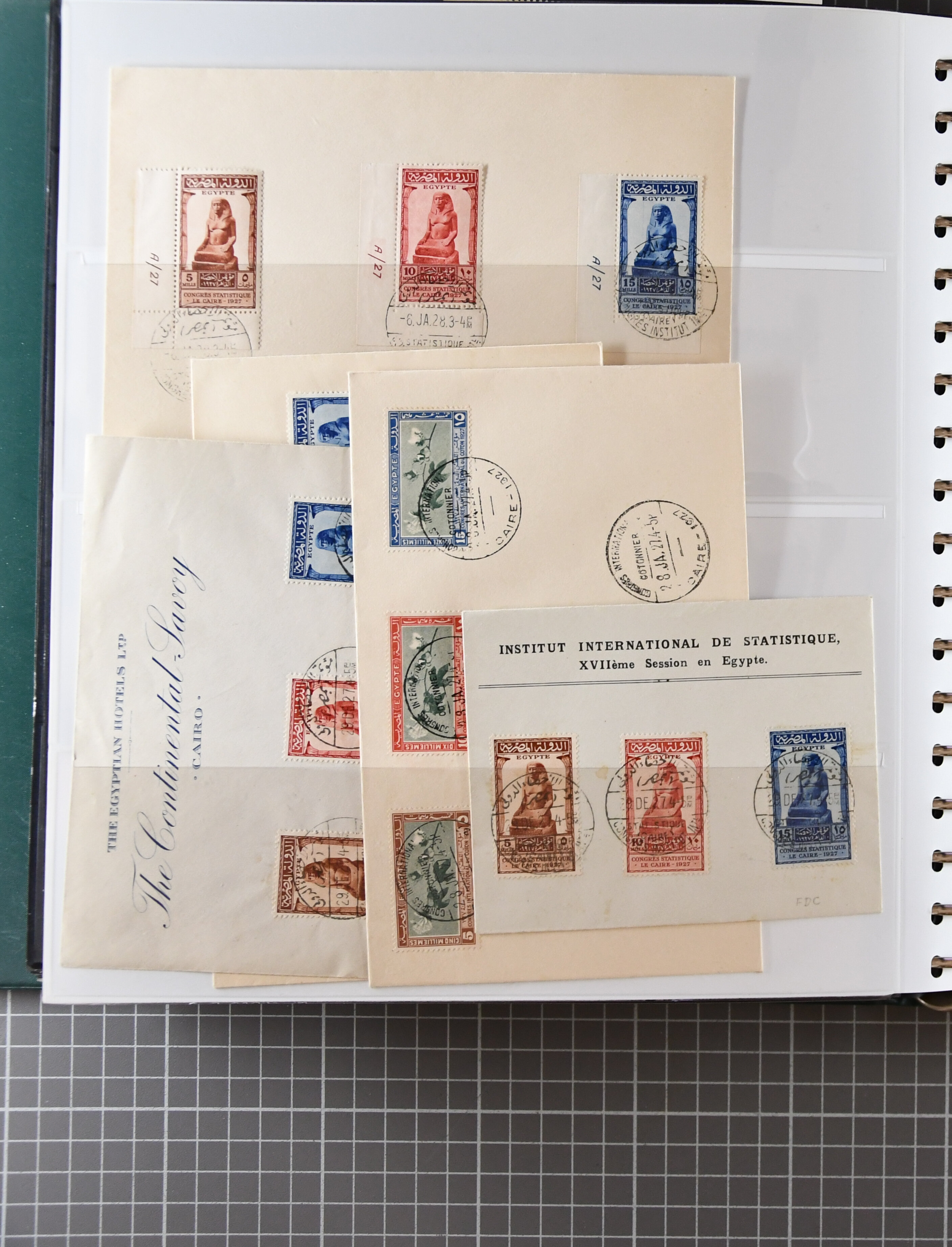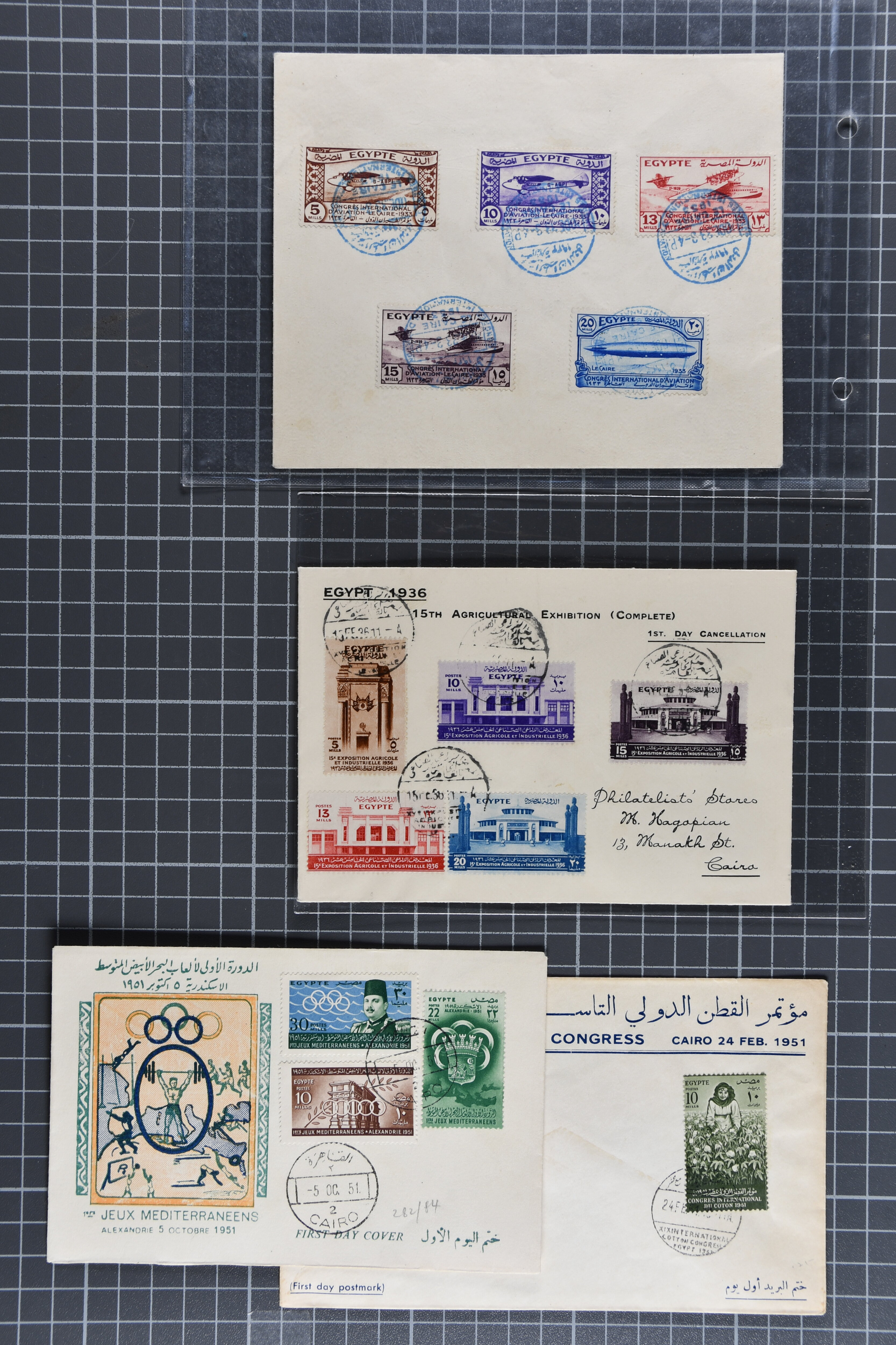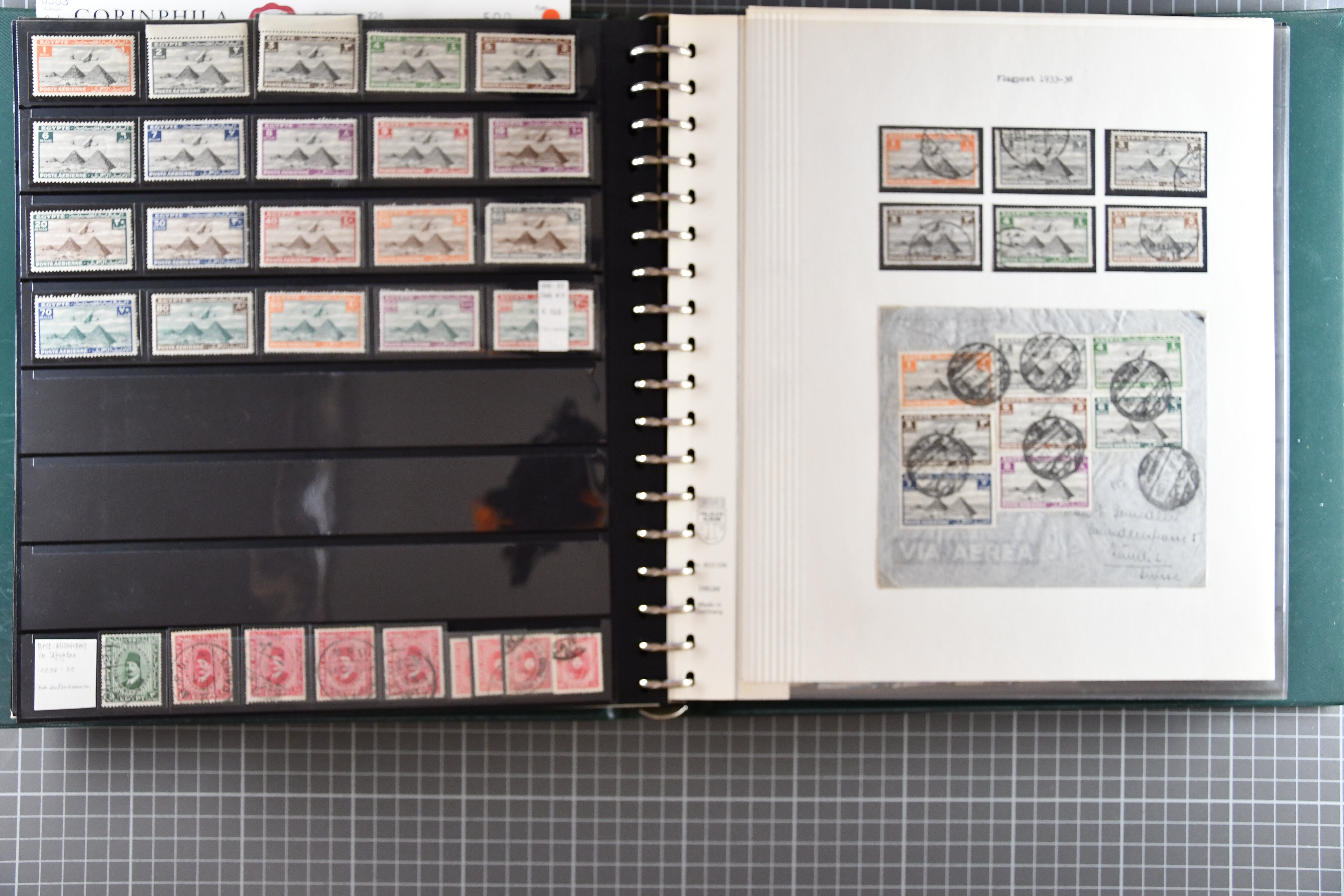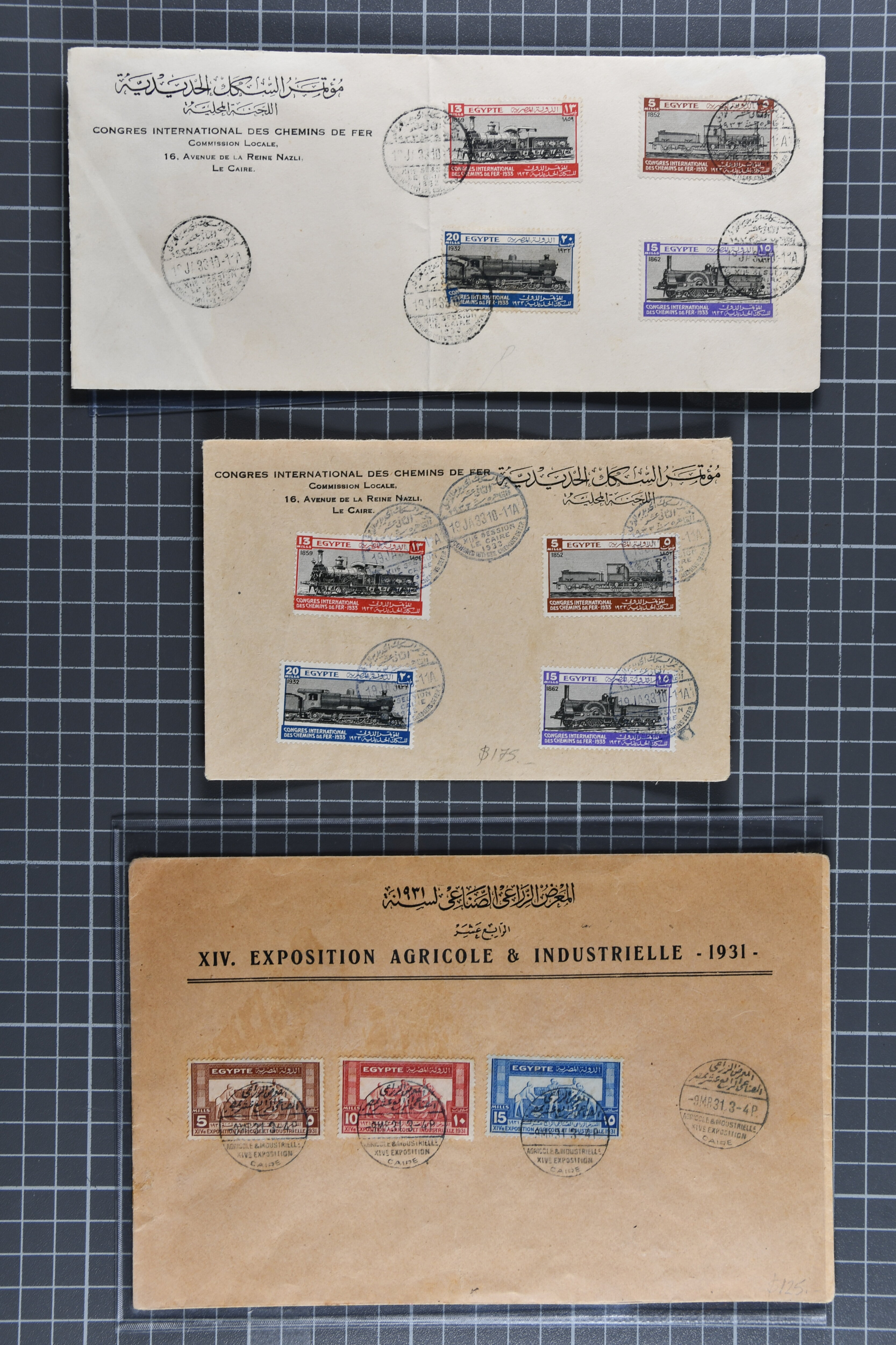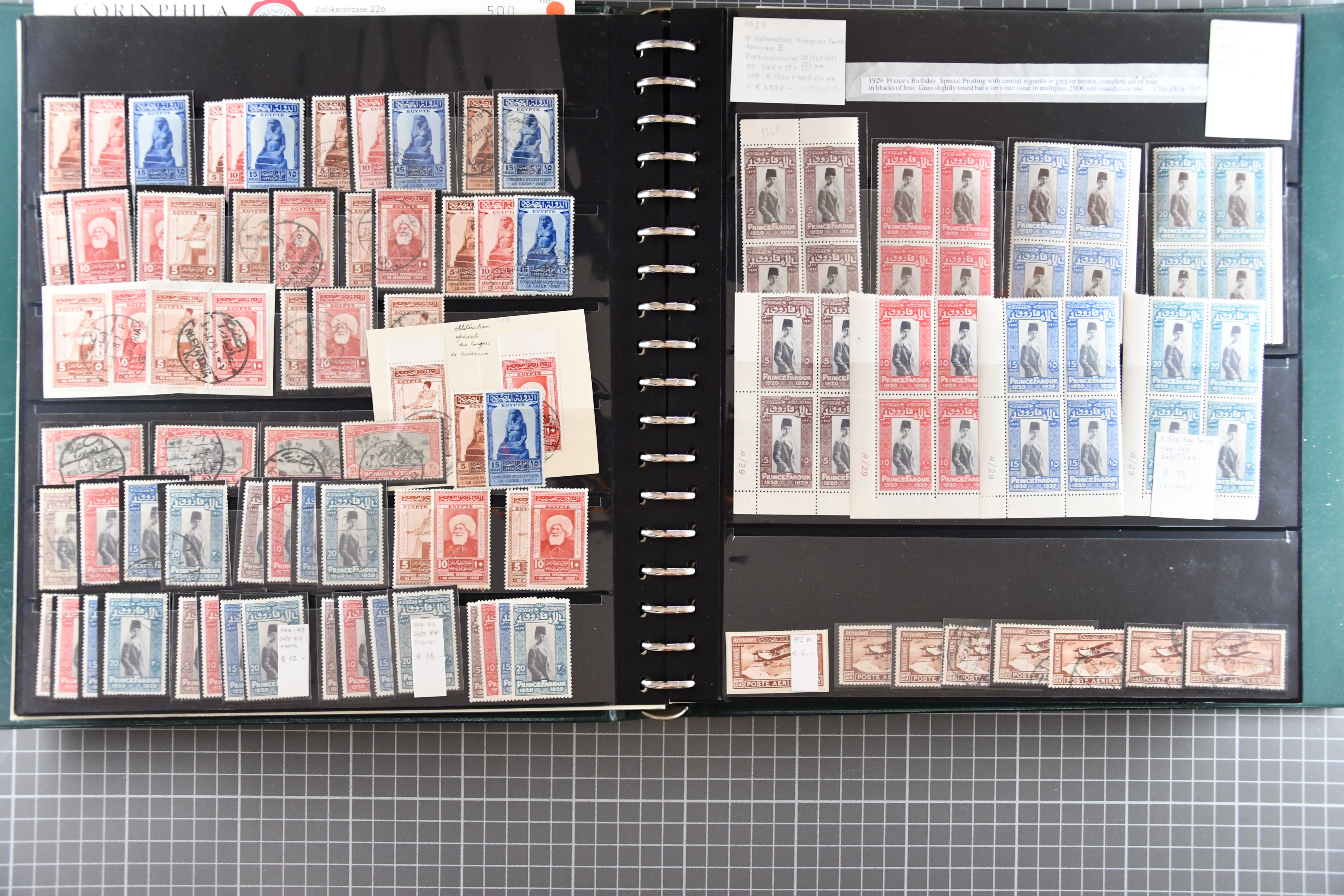 1099 image1866/1950: Fine collection beginning with the first issue, featuring a good range of stamps, often duplicated, both unused and used. Many 20th century sets are included in both unused and used condition and also frequently duplicated, with the used stamps often bearing special event cancellations. The 1929 9th Birthday of Prince Farouk set, with the vignette in grey, is present in unused blocks of four (signed). The 1934 UPU set is included in used condition. The collection also contains covers and a fair quantity of sets on FDCs. (Image 1) (Image 2) (Image 3) (Image 4) (Image 5) (Image 6) (Image 7) (Image 8) (Image 9) (Image 10) (Image 11) (Image 12) (Image 13) (Image 14) (Image 15) (Image 16) (Image 17) (Image 18) (Image 19) (Image 20) (Image 21) (Image 22) (Image 23) (Image 24) (Image 25) (Image 26) (Image 27) (Image 28)