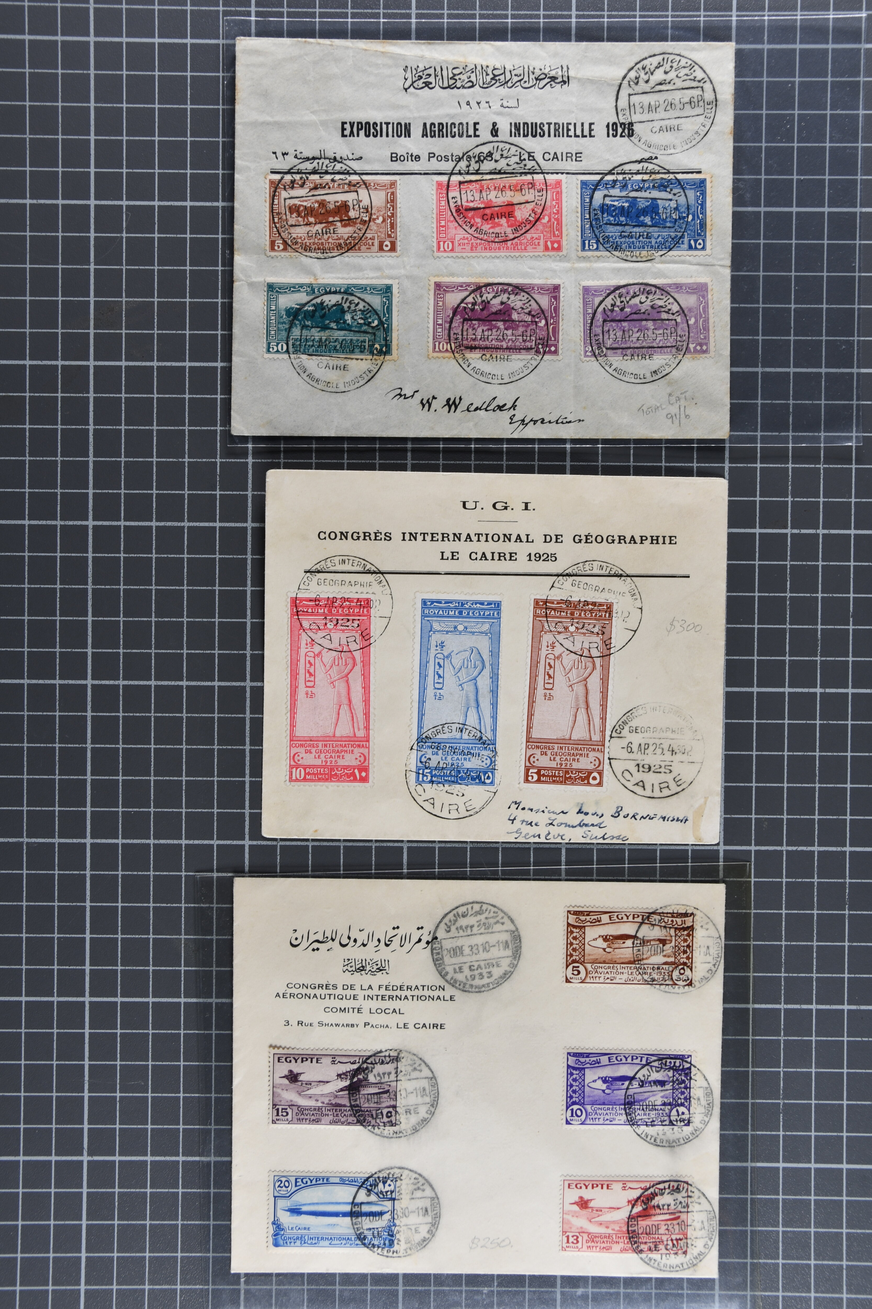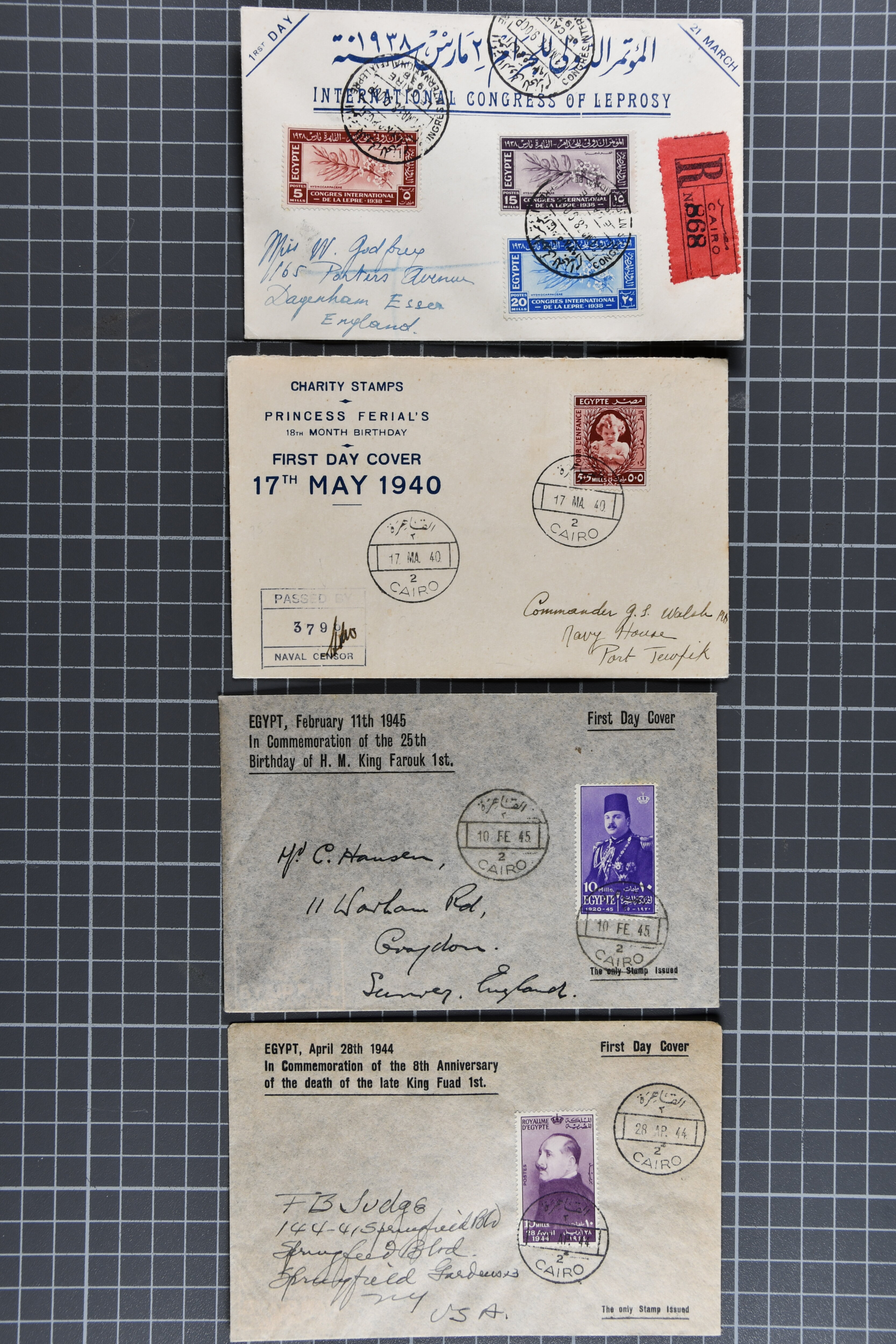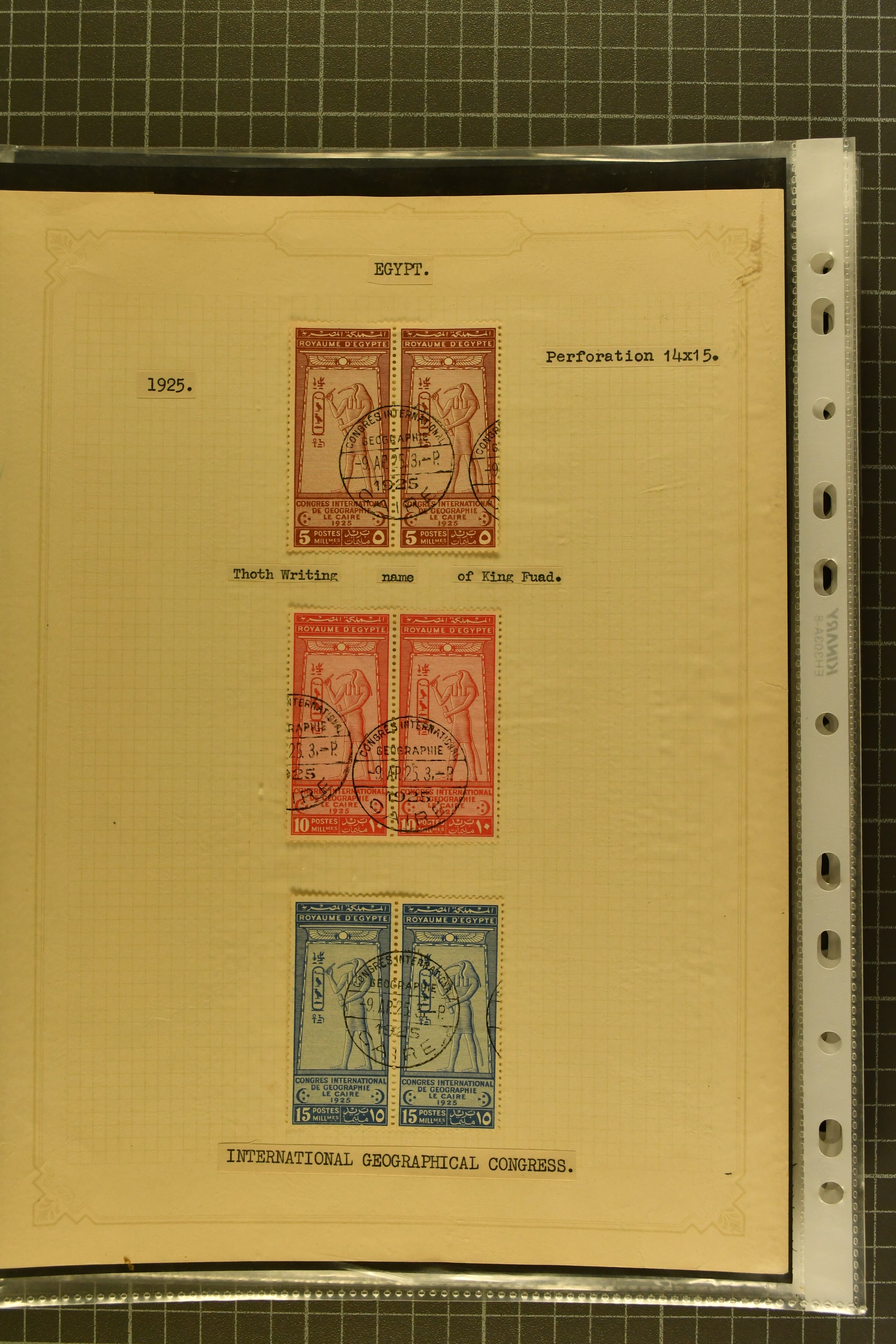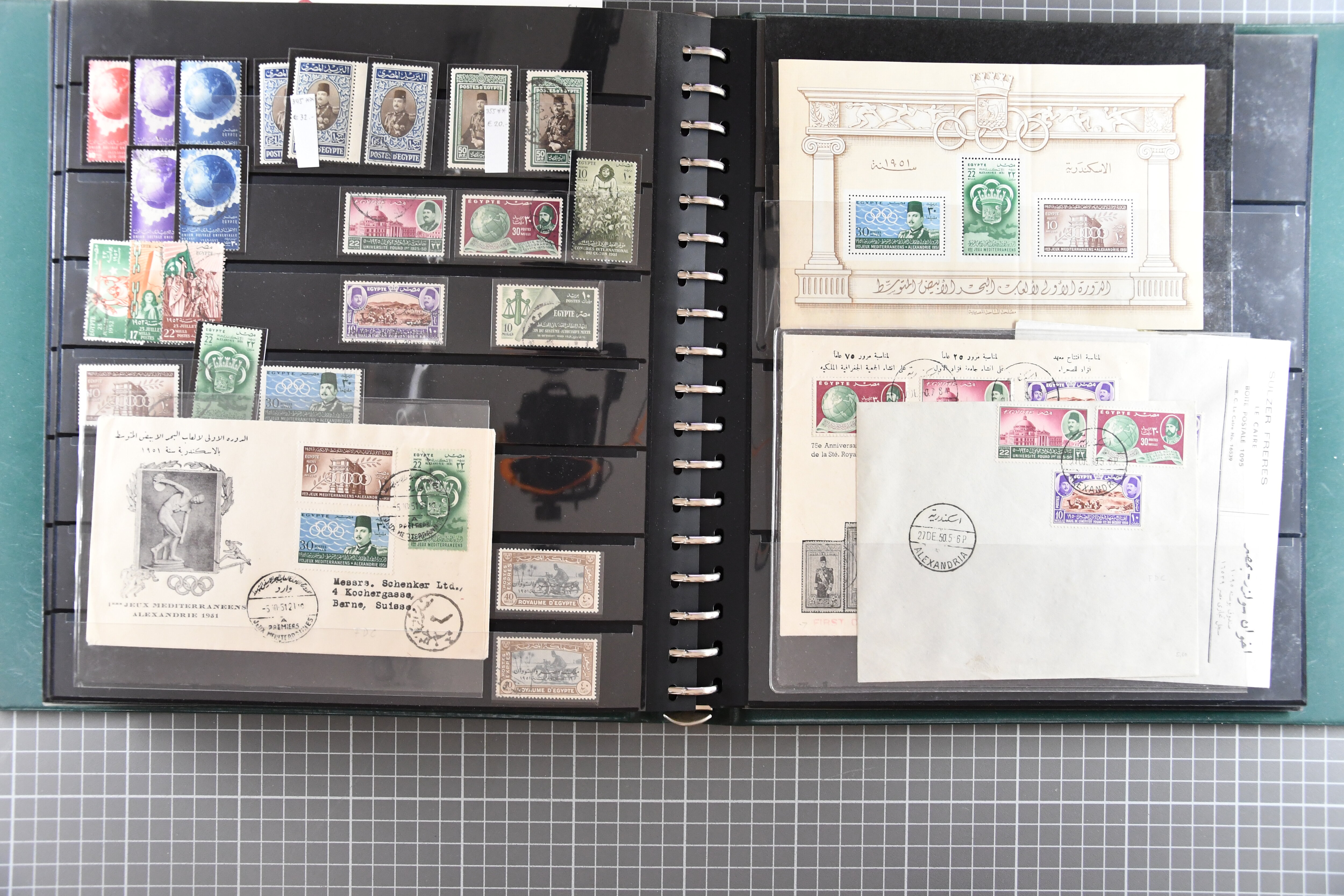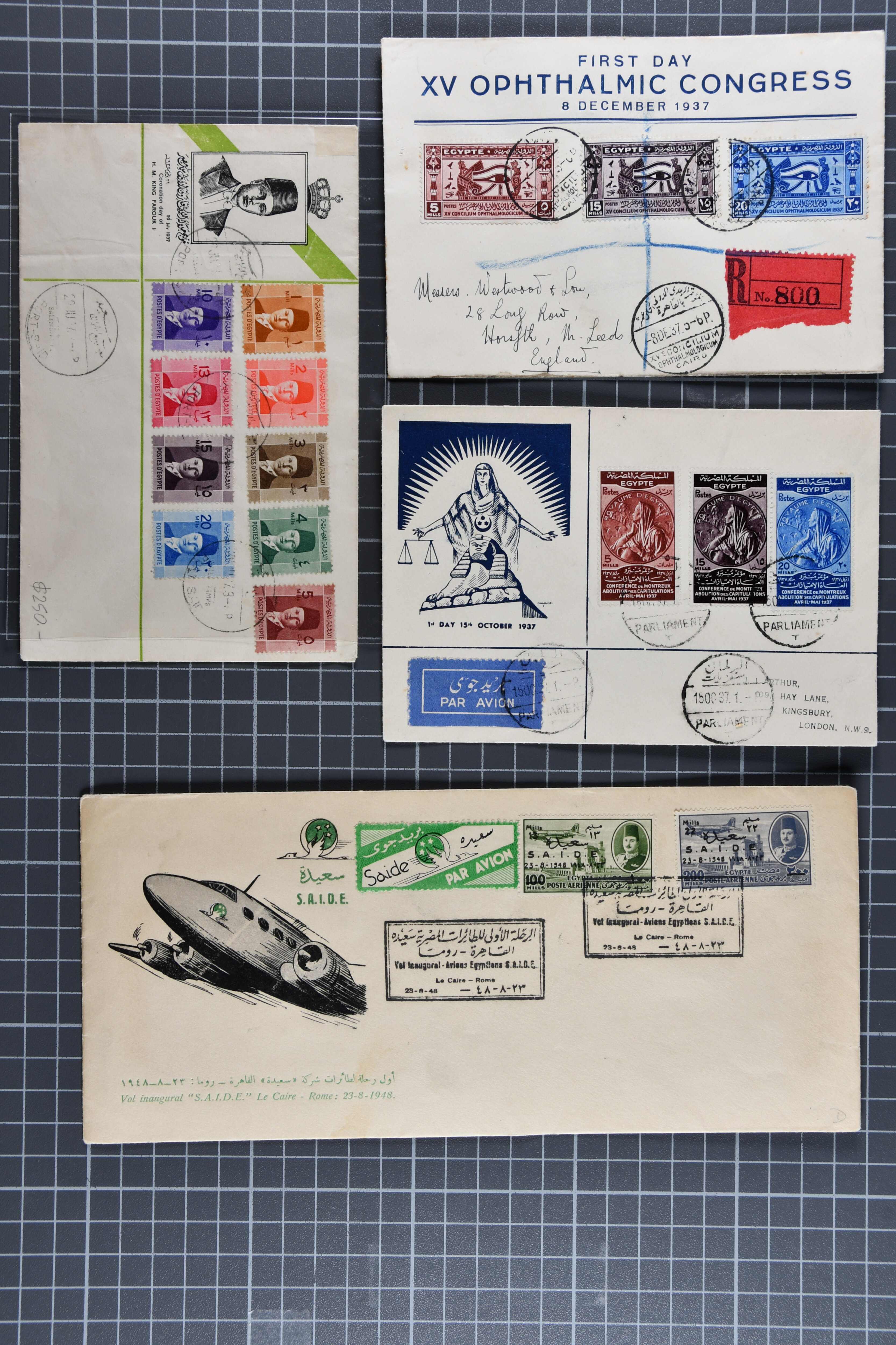1099 image1866/1950: Fine collection beginning with the first issue, featuring a good range of stamps, often duplicated, both unused and used. Many 20th century sets are included in both unused and used condition and also frequently duplicated, with the used stamps often bearing special event cancellations. The 1929 9th Birthday of Prince Farouk set, with the vignette in grey, is present in unused blocks of four (signed). The 1934 UPU set is included in used condition. The collection also contains covers and a fair quantity of sets on FDCs. (Image 1) (Image 2) (Image 3) (Image 4) (Image 5) (Image 6) (Image 7) (Image 8) (Image 9) (Image 10) (Image 11) (Image 12) (Image 13) (Image 14) (Image 15) (Image 16) (Image 17) (Image 18) (Image 19) (Image 20) (Image 21) (Image 22) (Image 23) (Image 24) (Image 25) (Image 26) (Image 27) (Image 28)