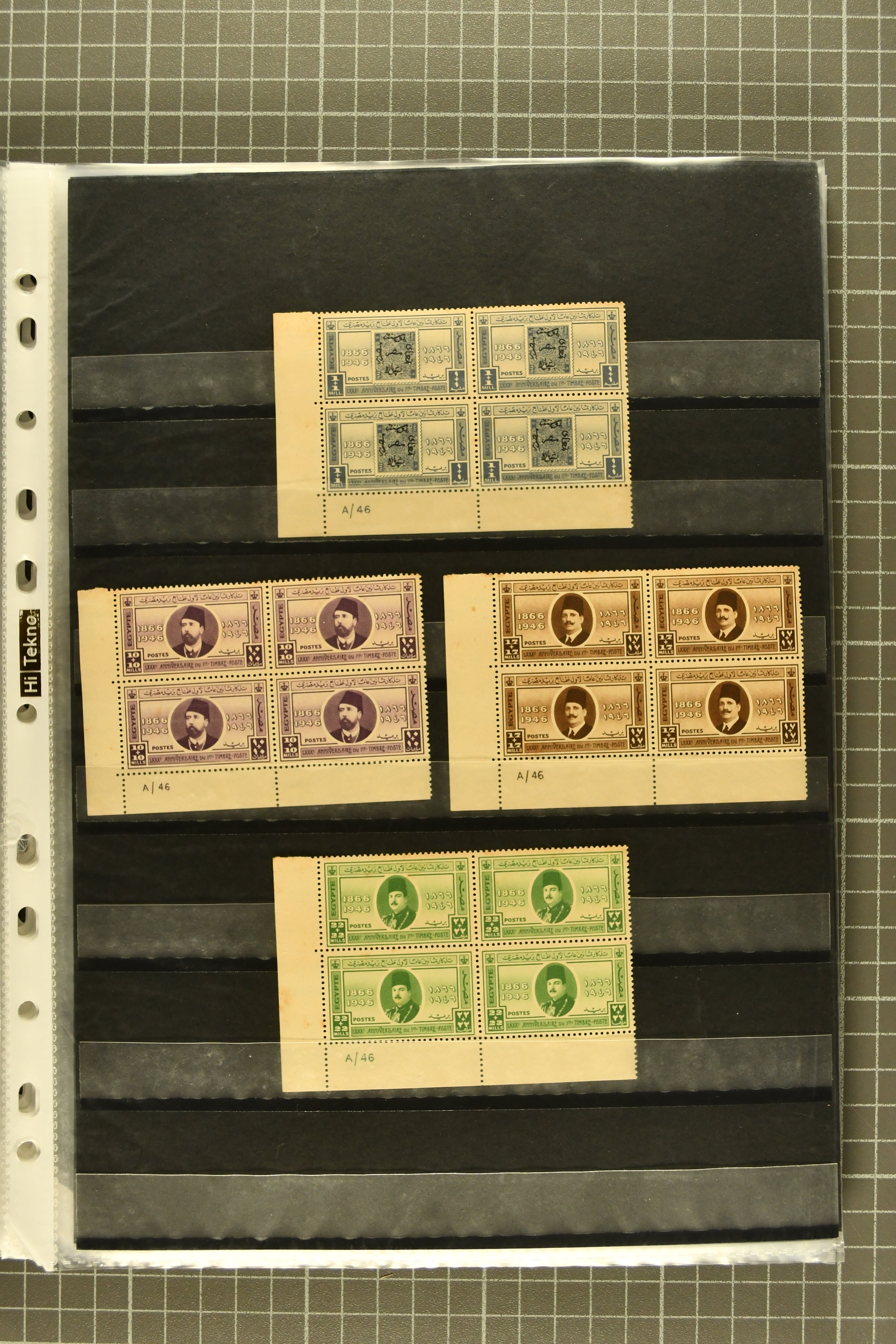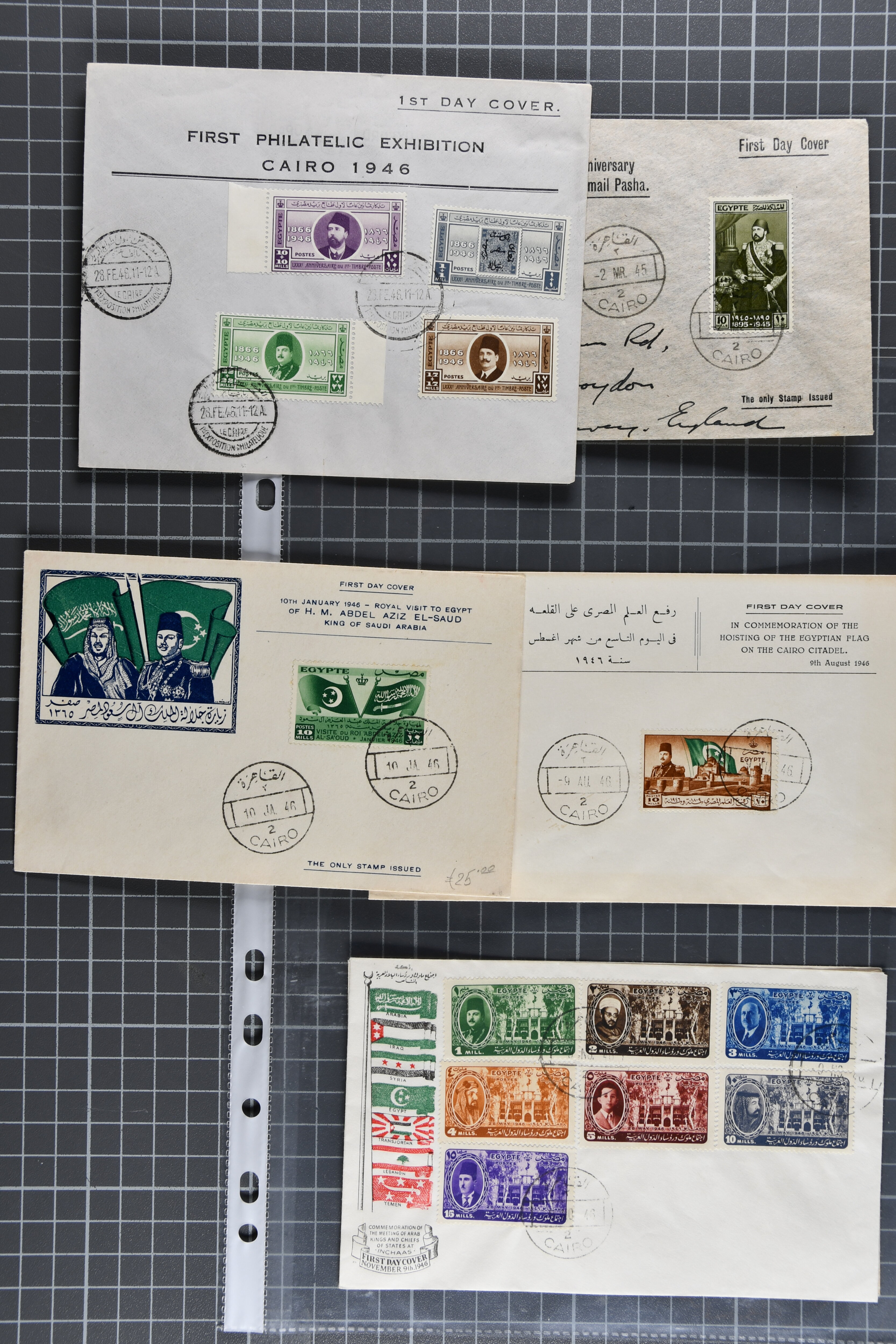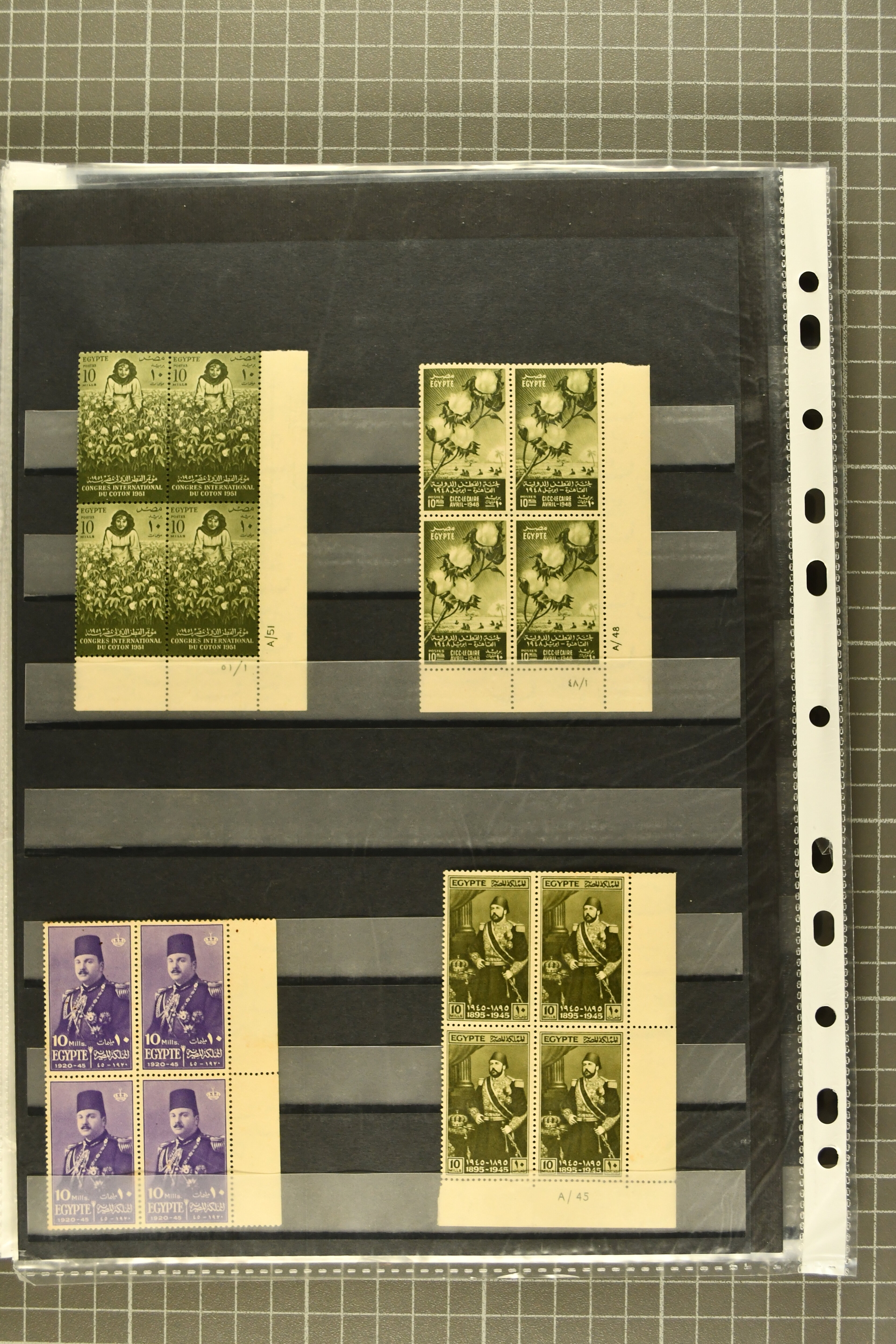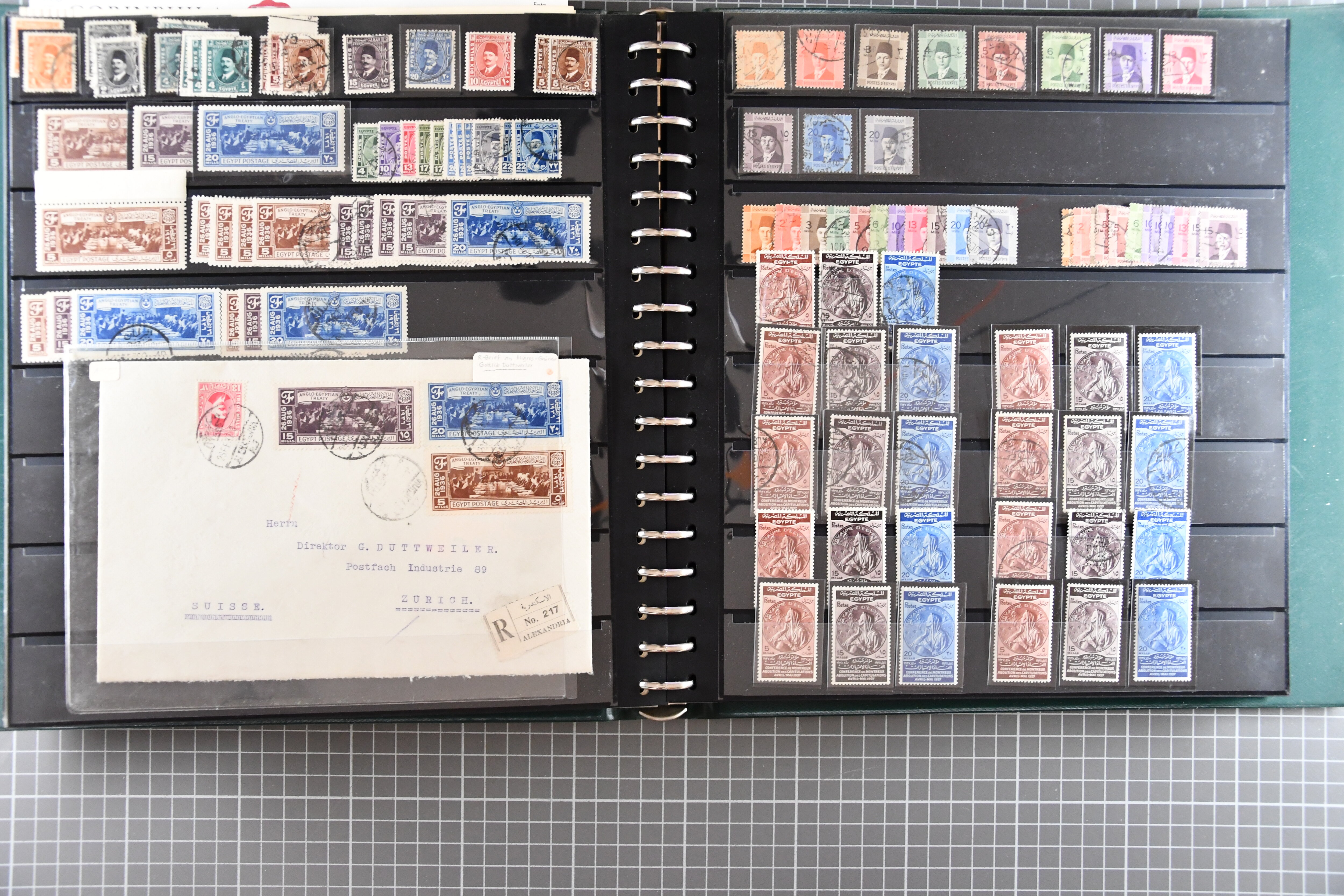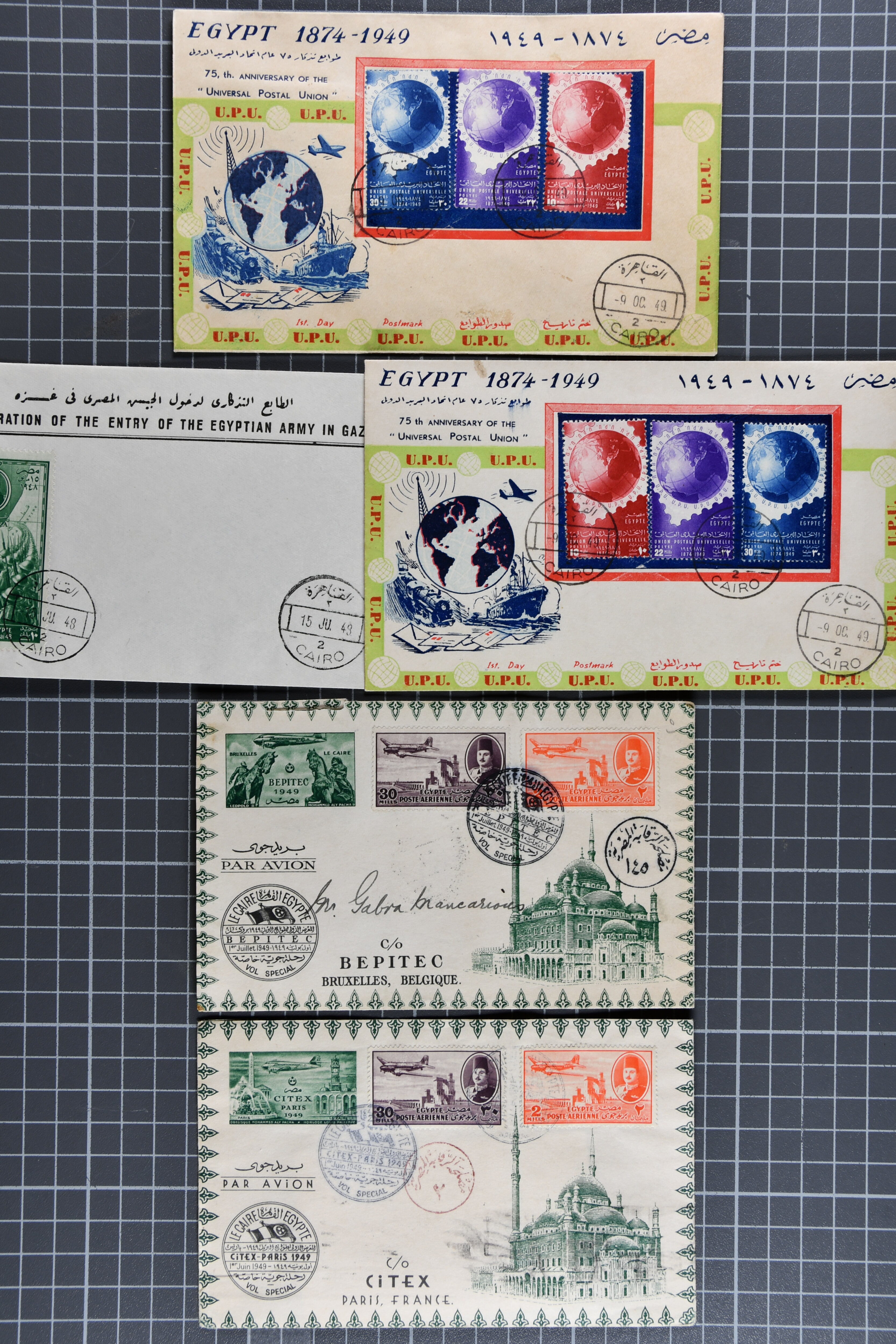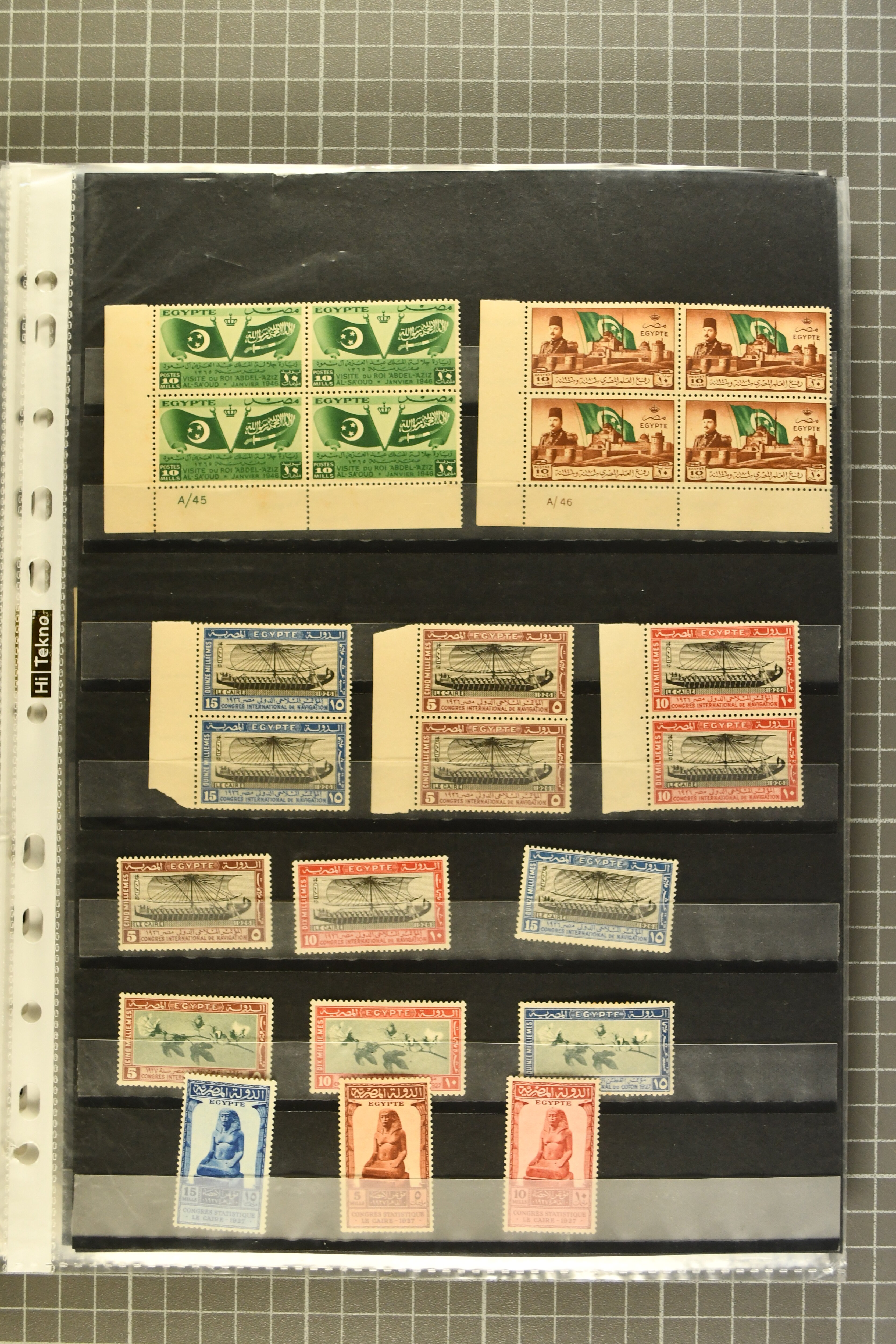 1099 image1866/1950: Fine collection beginning with the first issue, featuring a good range of stamps, often duplicated, both unused and used. Many 20th century sets are included in both unused and used condition and also frequently duplicated, with the used stamps often bearing special event cancellations. The 1929 9th Birthday of Prince Farouk set, with the vignette in grey, is present in unused blocks of four (signed). The 1934 UPU set is included in used condition. The collection also contains covers and a fair quantity of sets on FDCs. (Image 1) (Image 2) (Image 3) (Image 4) (Image 5) (Image 6) (Image 7) (Image 8) (Image 9) (Image 10) (Image 11) (Image 12) (Image 13) (Image 14) (Image 15) (Image 16) (Image 17) (Image 18) (Image 19) (Image 20) (Image 21) (Image 22) (Image 23) (Image 24) (Image 25) (Image 26) (Image 27) (Image 28)