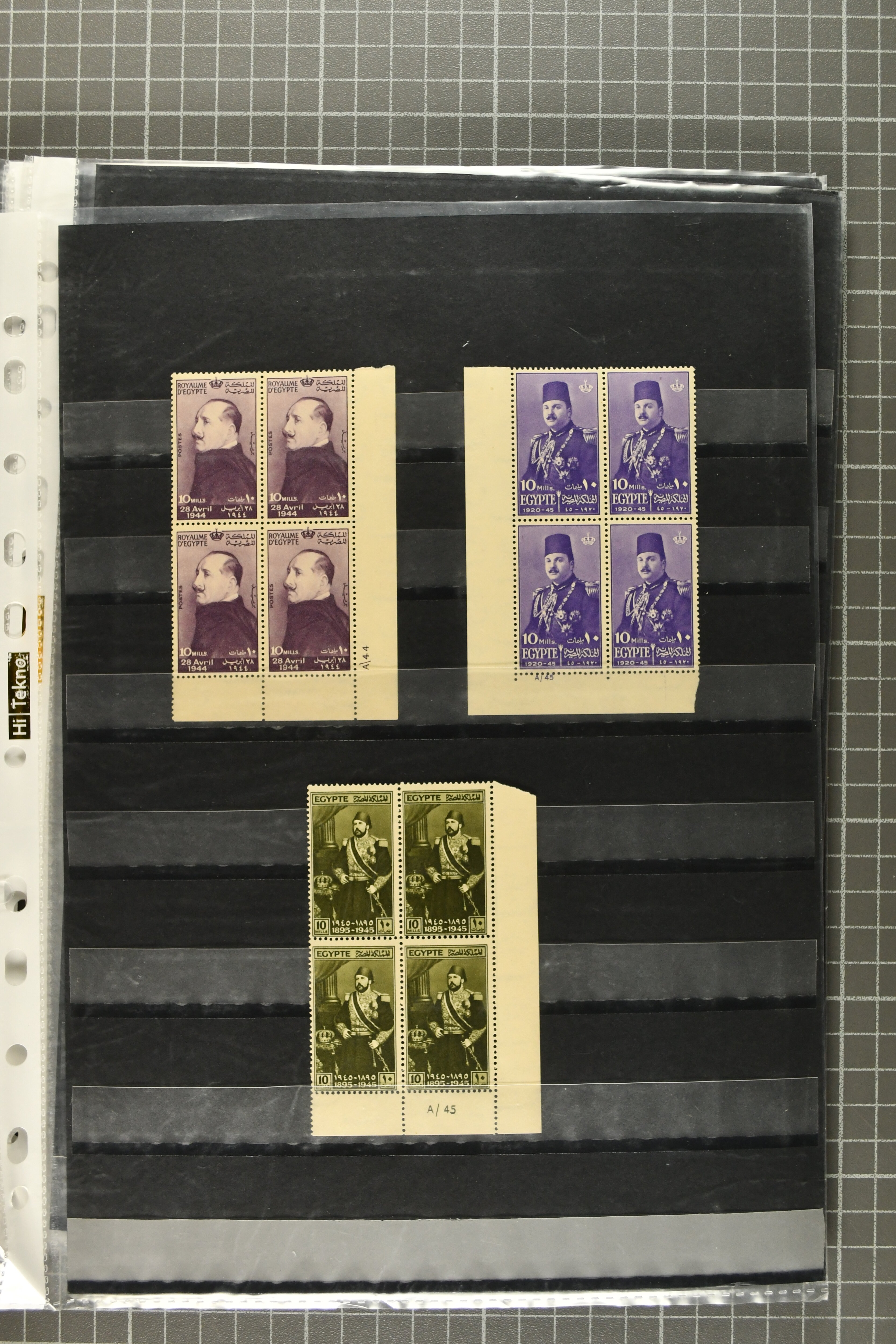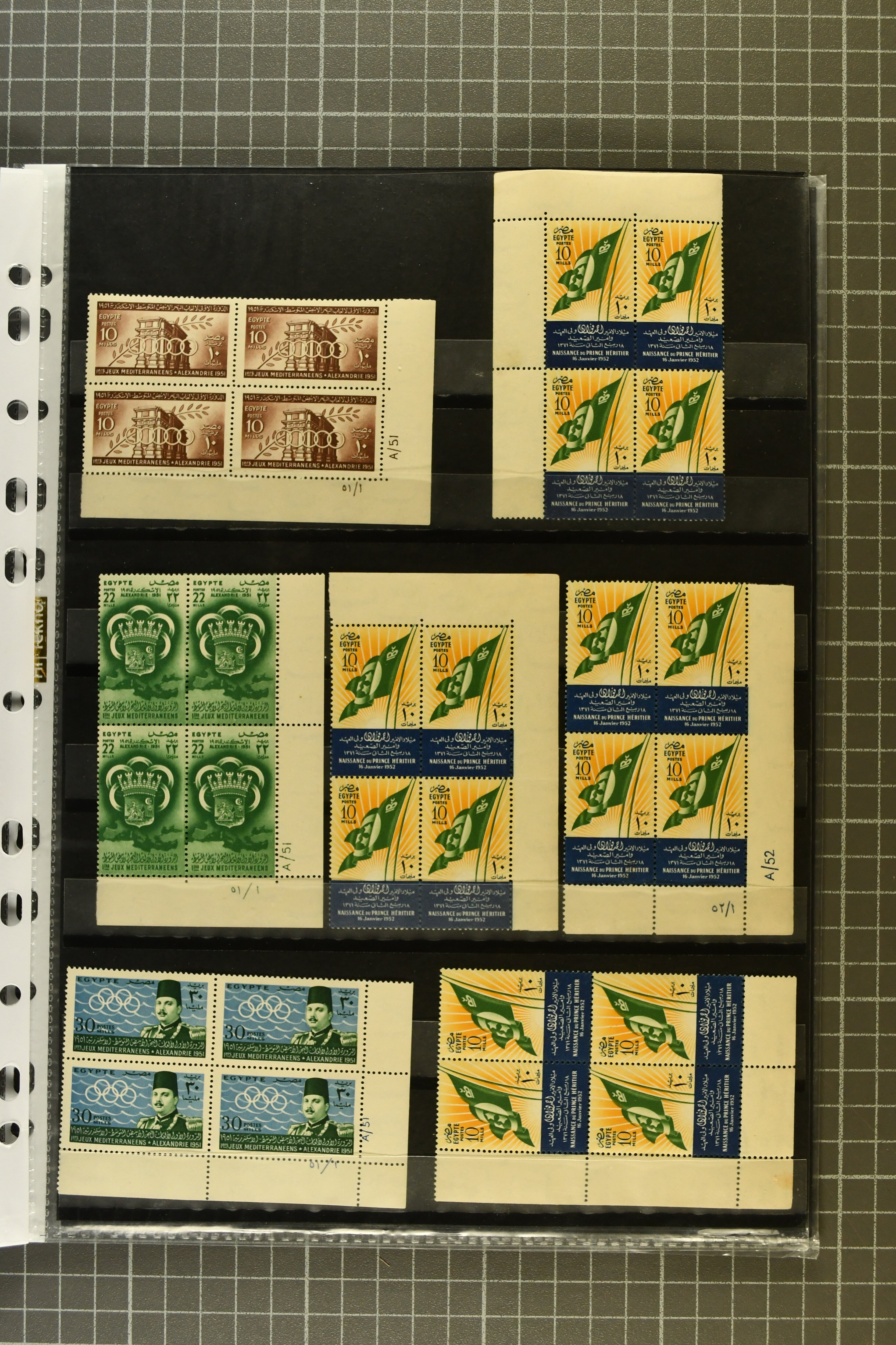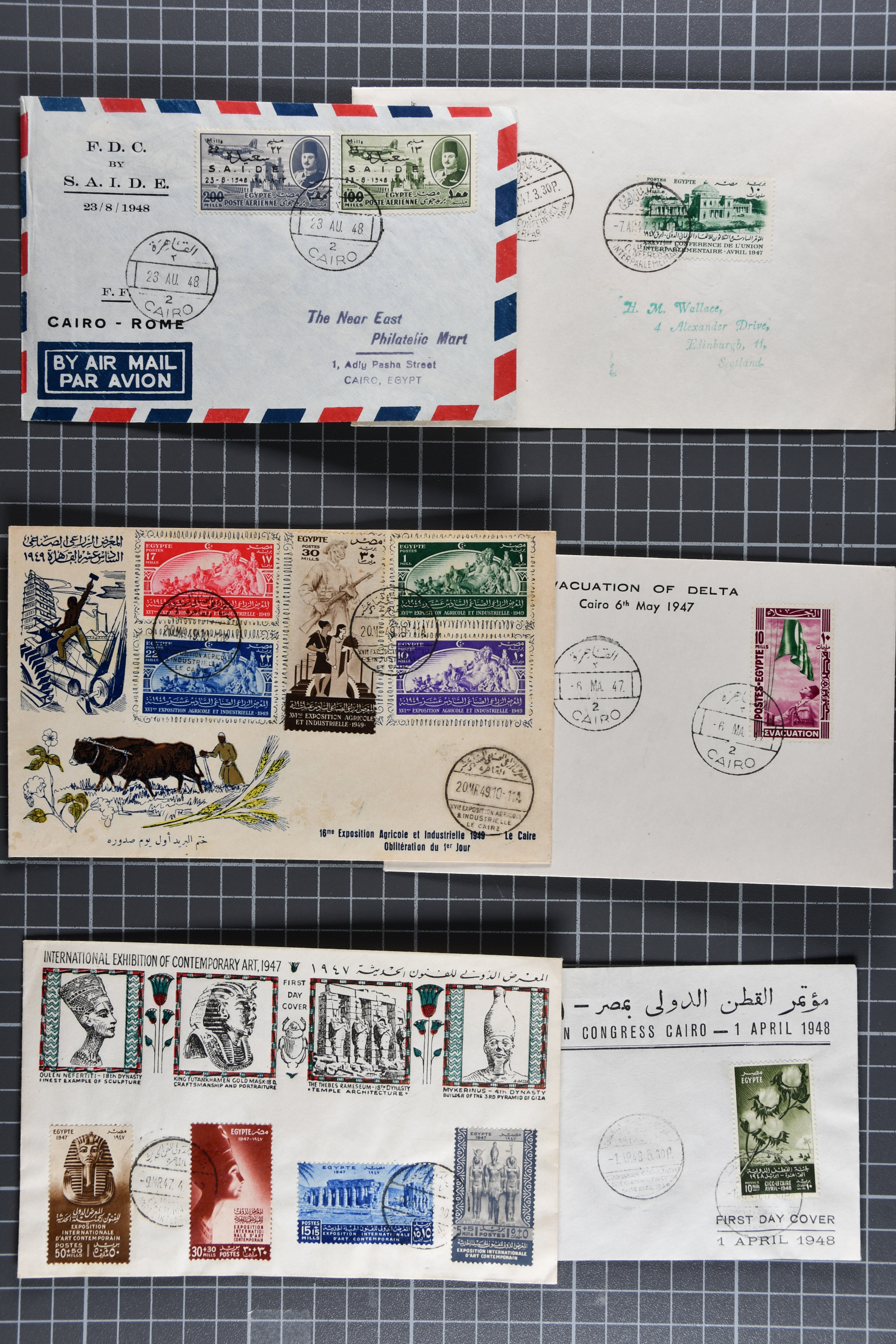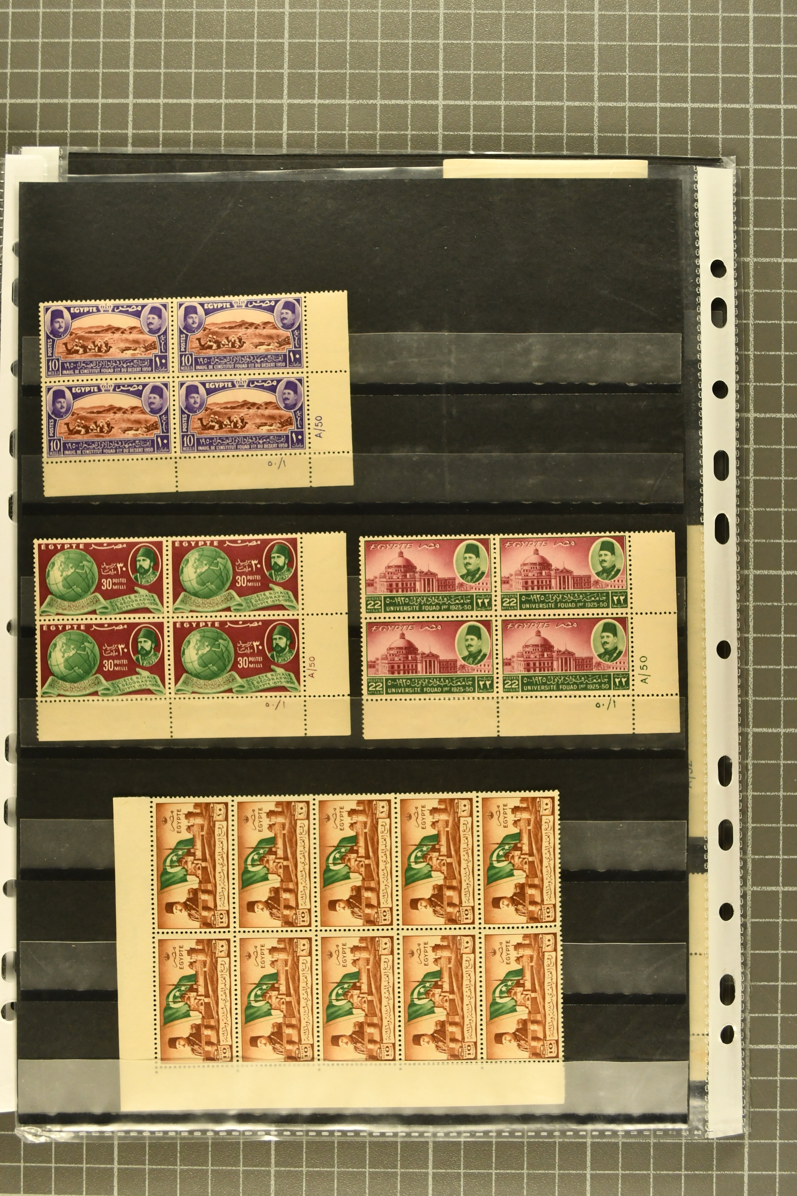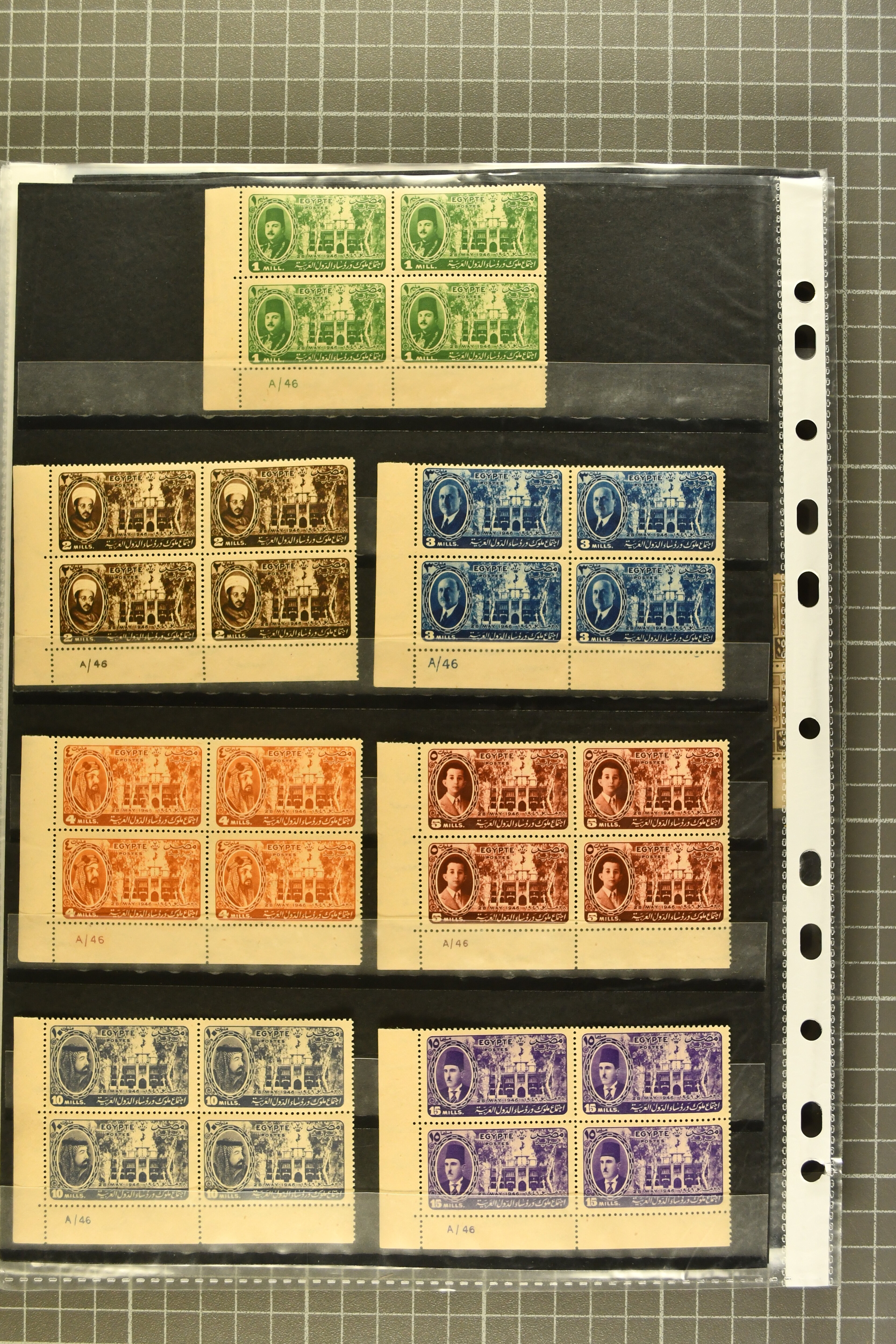 1099 image1866/1950: Fine collection beginning with the first issue, featuring a good range of stamps, often duplicated, both unused and used. Many 20th century sets are included in both unused and used condition and also frequently duplicated, with the used stamps often bearing special event cancellations. The 1929 9th Birthday of Prince Farouk set, with the vignette in grey, is present in unused blocks of four (signed). The 1934 UPU set is included in used condition. The collection also contains covers and a fair quantity of sets on FDCs. (Image 1) (Image 2) (Image 3) (Image 4) (Image 5) (Image 6) (Image 7) (Image 8) (Image 9) (Image 10) (Image 11) (Image 12) (Image 13) (Image 14) (Image 15) (Image 16) (Image 17) (Image 18) (Image 19) (Image 20) (Image 21) (Image 22) (Image 23) (Image 24) (Image 25) (Image 26) (Image 27) (Image 28)