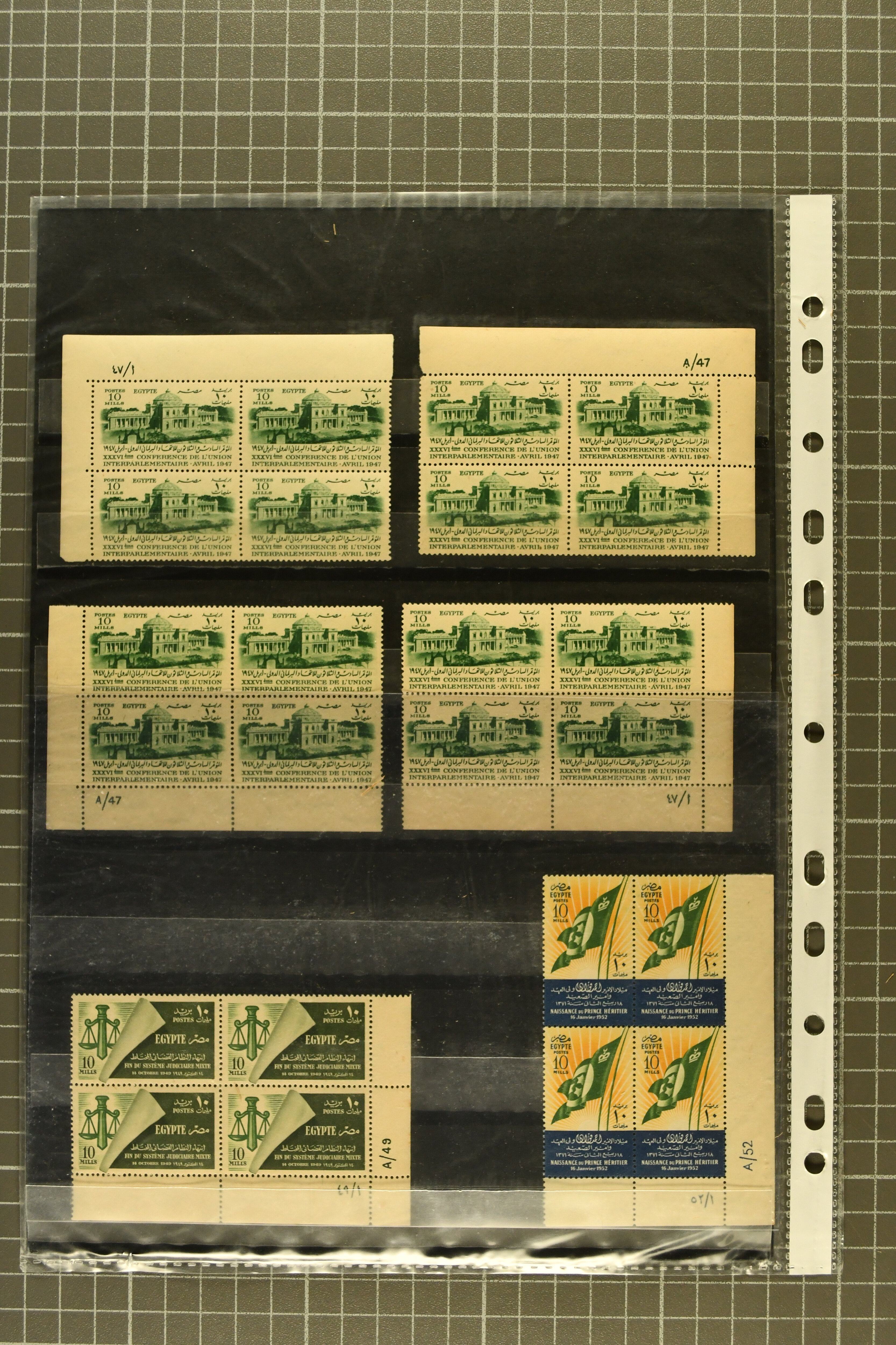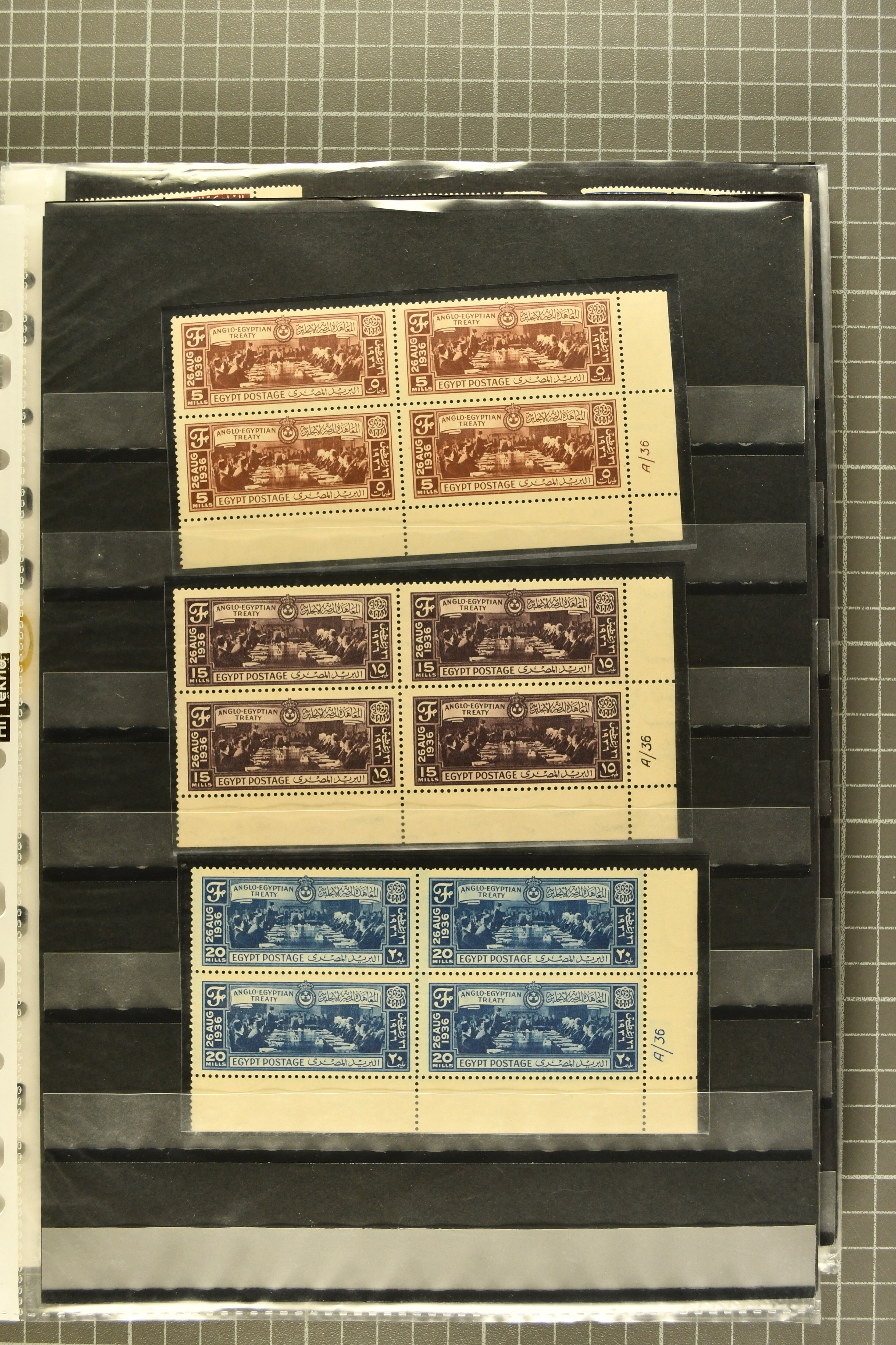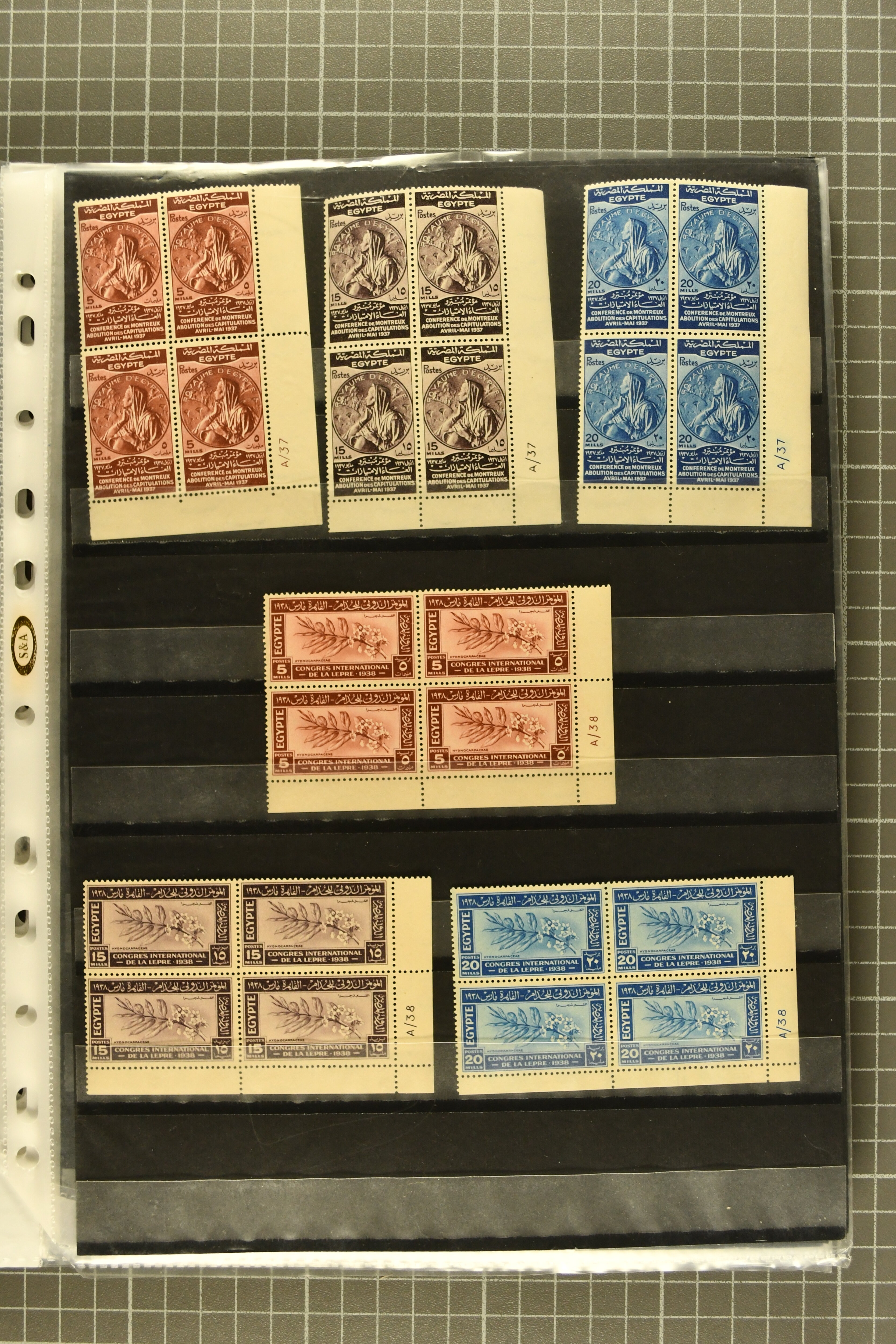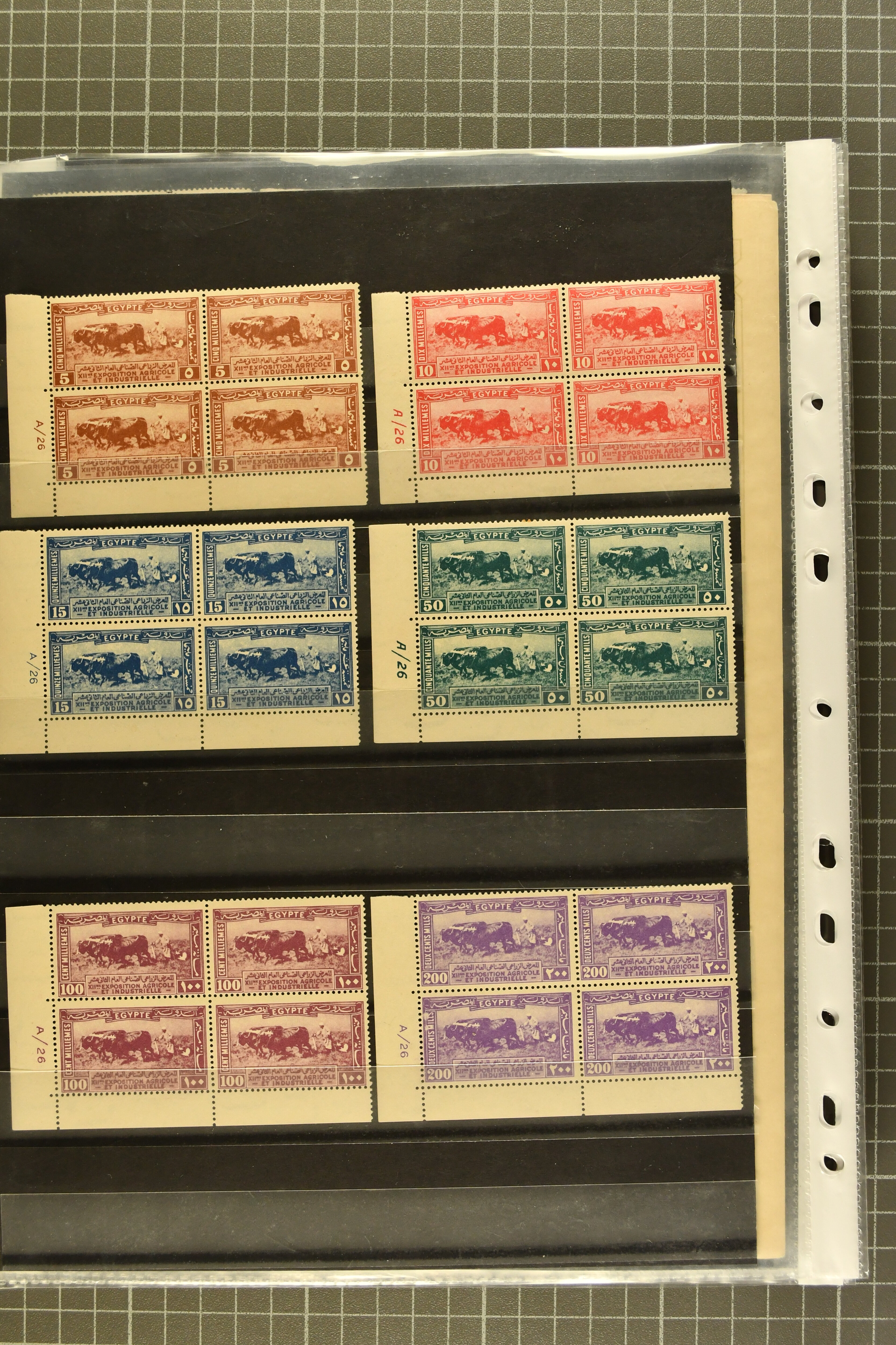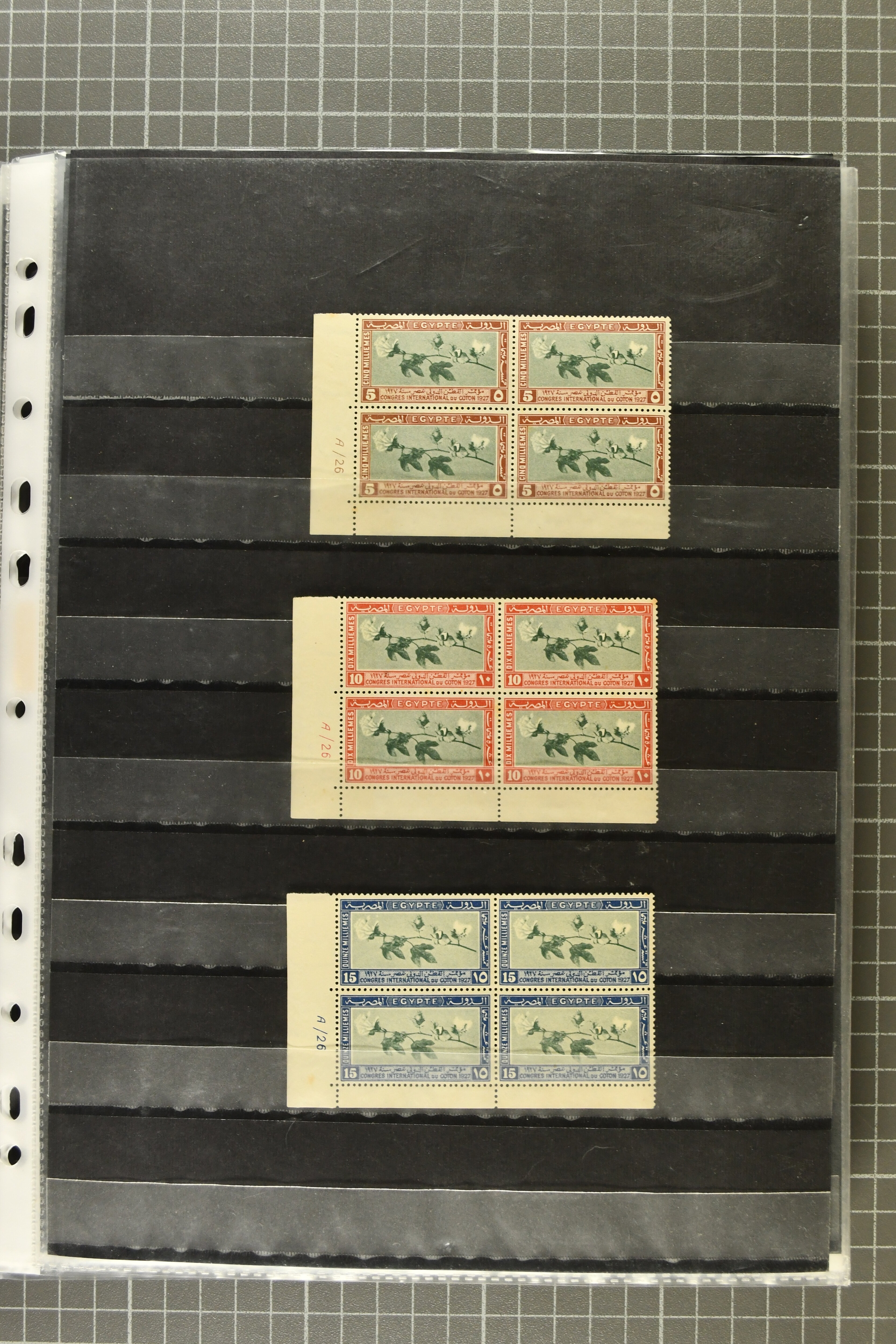 1099 image1866/1950: Fine collection beginning with the first issue, featuring a good range of stamps, often duplicated, both unused and used. Many 20th century sets are included in both unused and used condition and also frequently duplicated, with the used stamps often bearing special event cancellations. The 1929 9th Birthday of Prince Farouk set, with the vignette in grey, is present in unused blocks of four (signed). The 1934 UPU set is included in used condition. The collection also contains covers and a fair quantity of sets on FDCs. (Image 1) (Image 2) (Image 3) (Image 4) (Image 5) (Image 6) (Image 7) (Image 8) (Image 9) (Image 10) (Image 11) (Image 12) (Image 13) (Image 14) (Image 15) (Image 16) (Image 17) (Image 18) (Image 19) (Image 20) (Image 21) (Image 22) (Image 23) (Image 24) (Image 25) (Image 26) (Image 27) (Image 28)