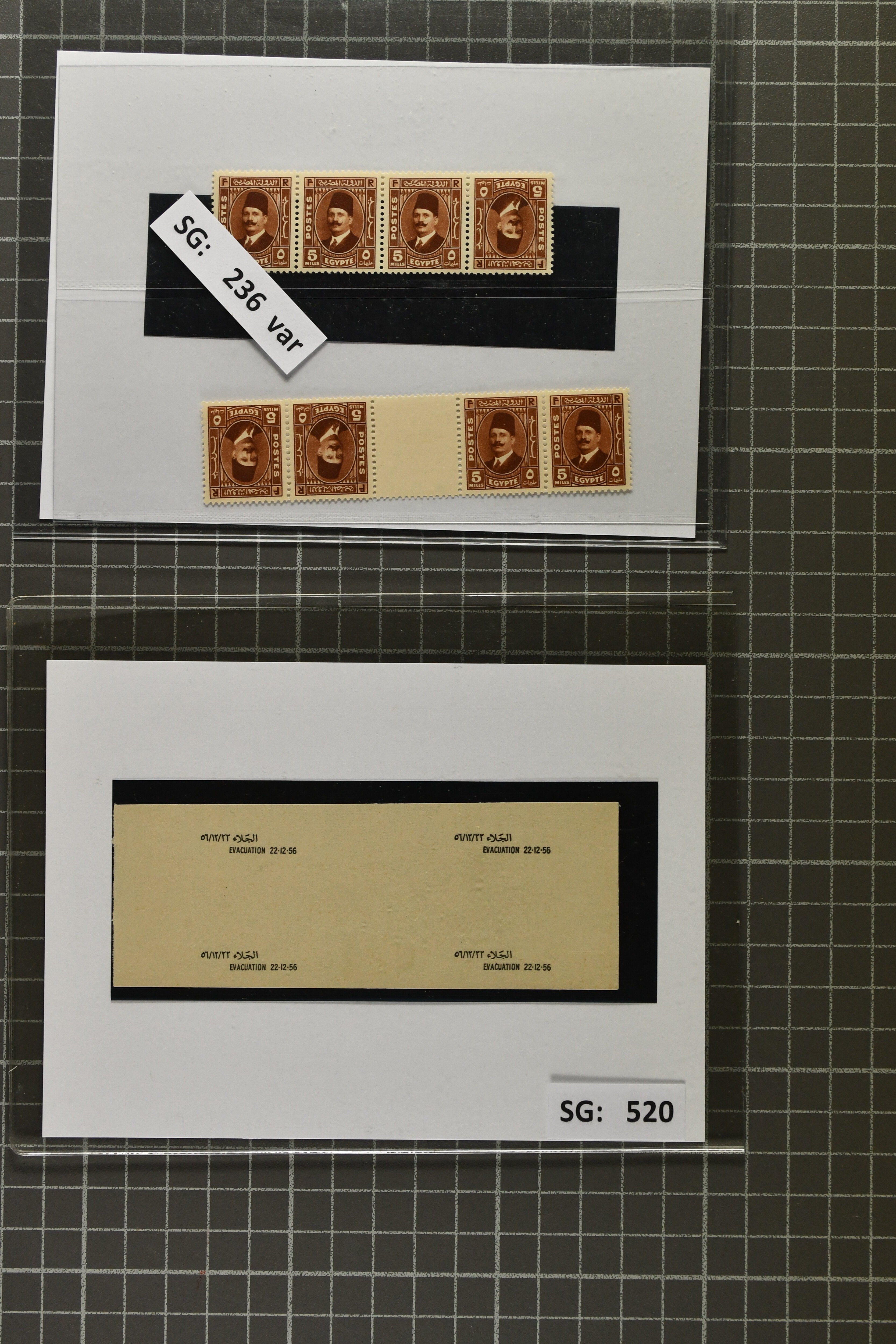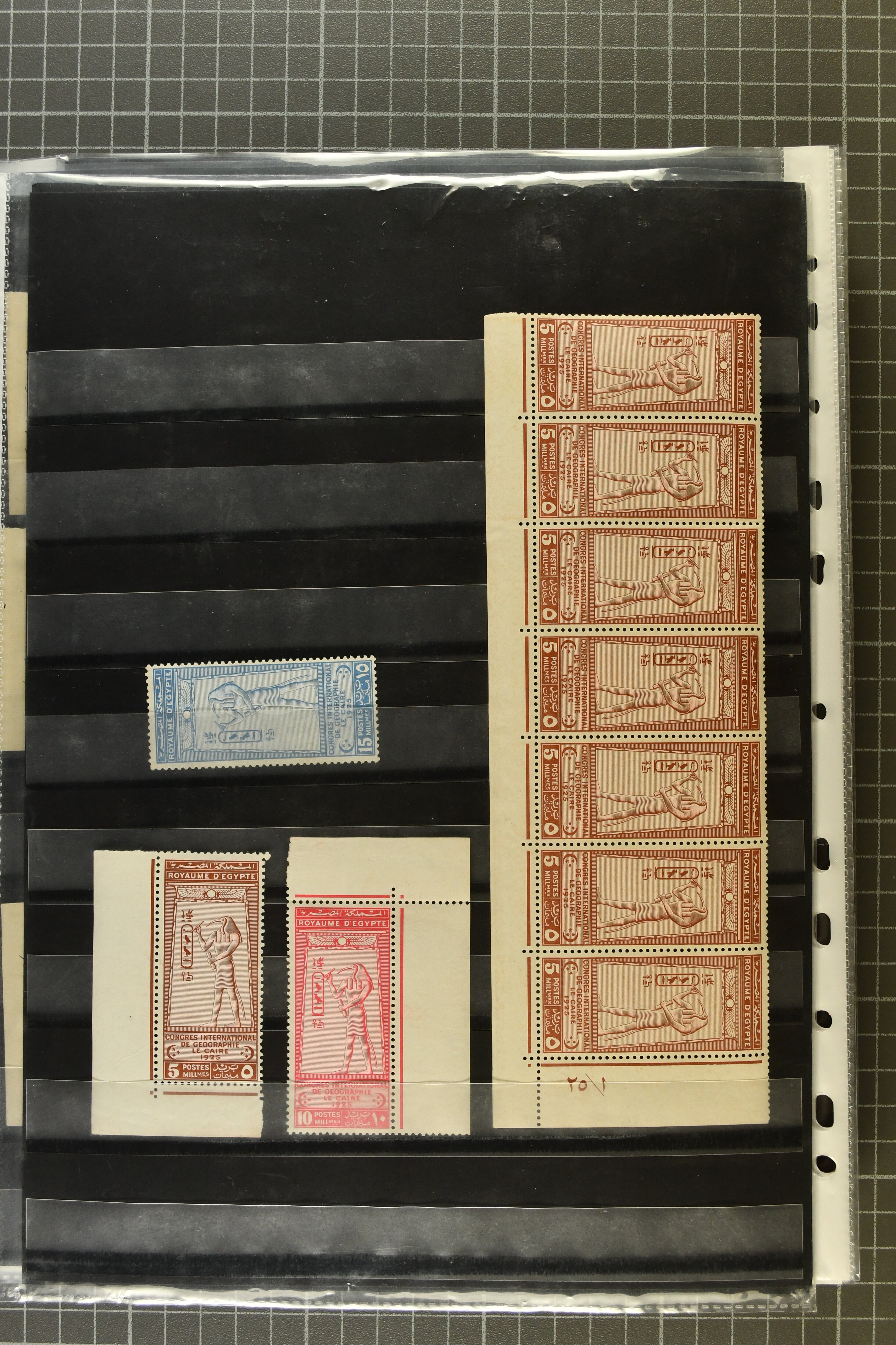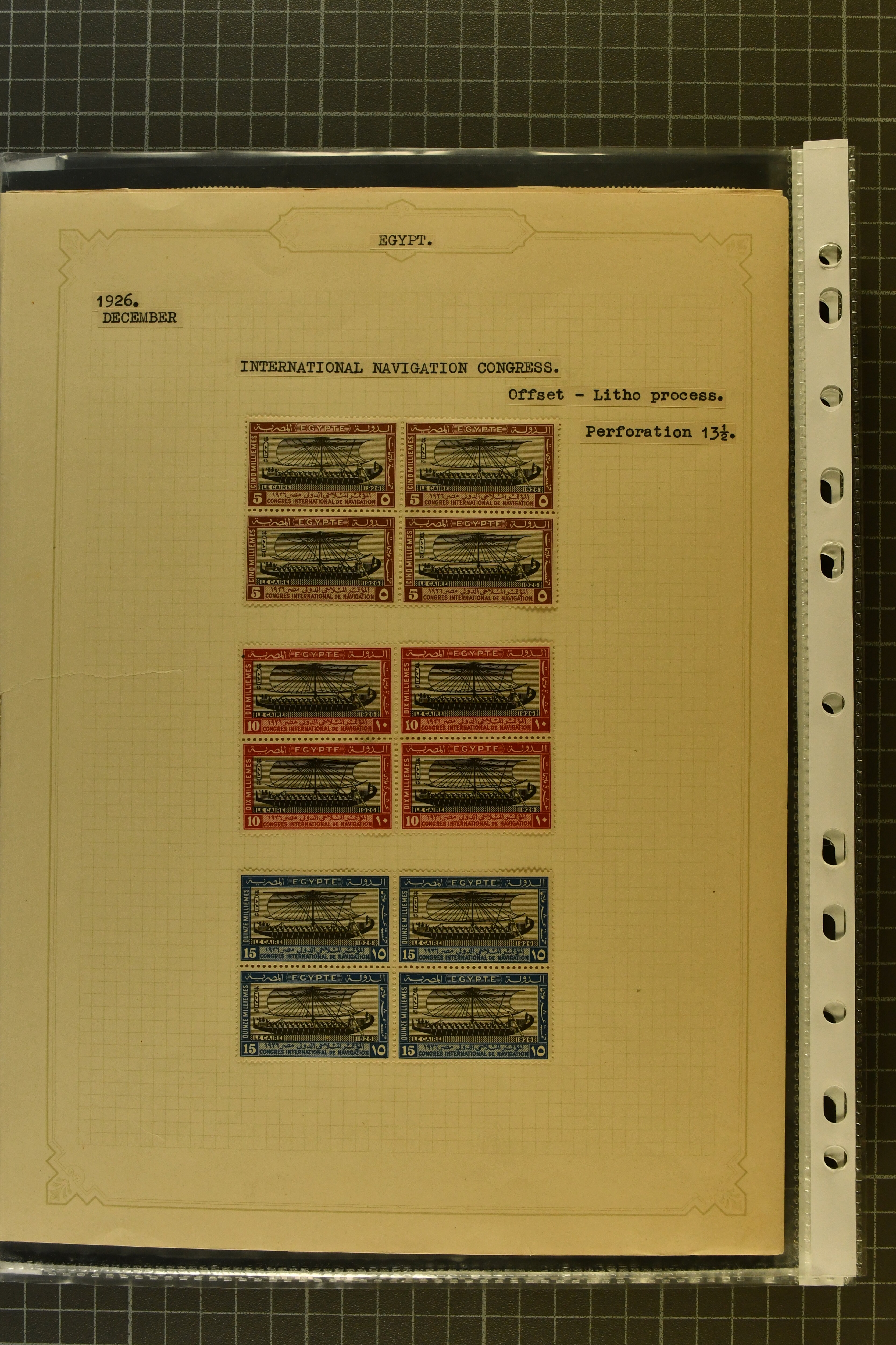1103 ** image1925/: Commemoratives, an outstanding collection with Farouk Oblique perforations and the matching issued adhesives alongside, largely complete with 1925 Geographic 5 m. brown, 1926 Agricultural set of six in horizontal pairs (only 50 sets printed thus = $ 1'500), Navigation set, Cotton Congress set, Statistics set, Medical set, Farouk 9th Birthday, Agricultural set, Locomotives set, Aviation Congress set, 1936 Agricultural set, Anglo-Egyptian Treaty set, Capitulations set, Opthalmological set, Cotton set, Telecommunications set, Leprosy Research set, 1940 Child Welfare 5 m., 1944 Fuad 10 m., Farouk Birthday 10 m., Ismail Pasha 10 m., ACU set, Abdel Aziz visit, 1946 Stamp Centenary set, Citadel 10 m., Arab League set, 1947 Fine Arts set, 1947 Parliamentary 10 m., Withdrawal 10 m., Cotton Congress 10 m., 1948 Gaza 10 m., 1949 Agricultural Expo set, Mohammed Ali 10 m., UPU set, Mixed Courts 10 m., Desert Institute 10 m., Fuad Univ. 10 m., Geographic 10 m., Cotton Congress 10 m., 1951 Medit. Games set, 1952 Abrogation set, Flag 10 m., a marvellous group with one or two more modern errors also noted incl. 1961 Navy Day 10 m. (2) imperforate etc. Nile Post = $ 10'500++. (Image 1) (Image 2) (Image 3) (Image 4) (Image 5) (Image 6) (Image 7) (Image 8) (Image 9) (Image 10) (Image 11) (Image 12) (Image 13) (Image 14) (Image 15)