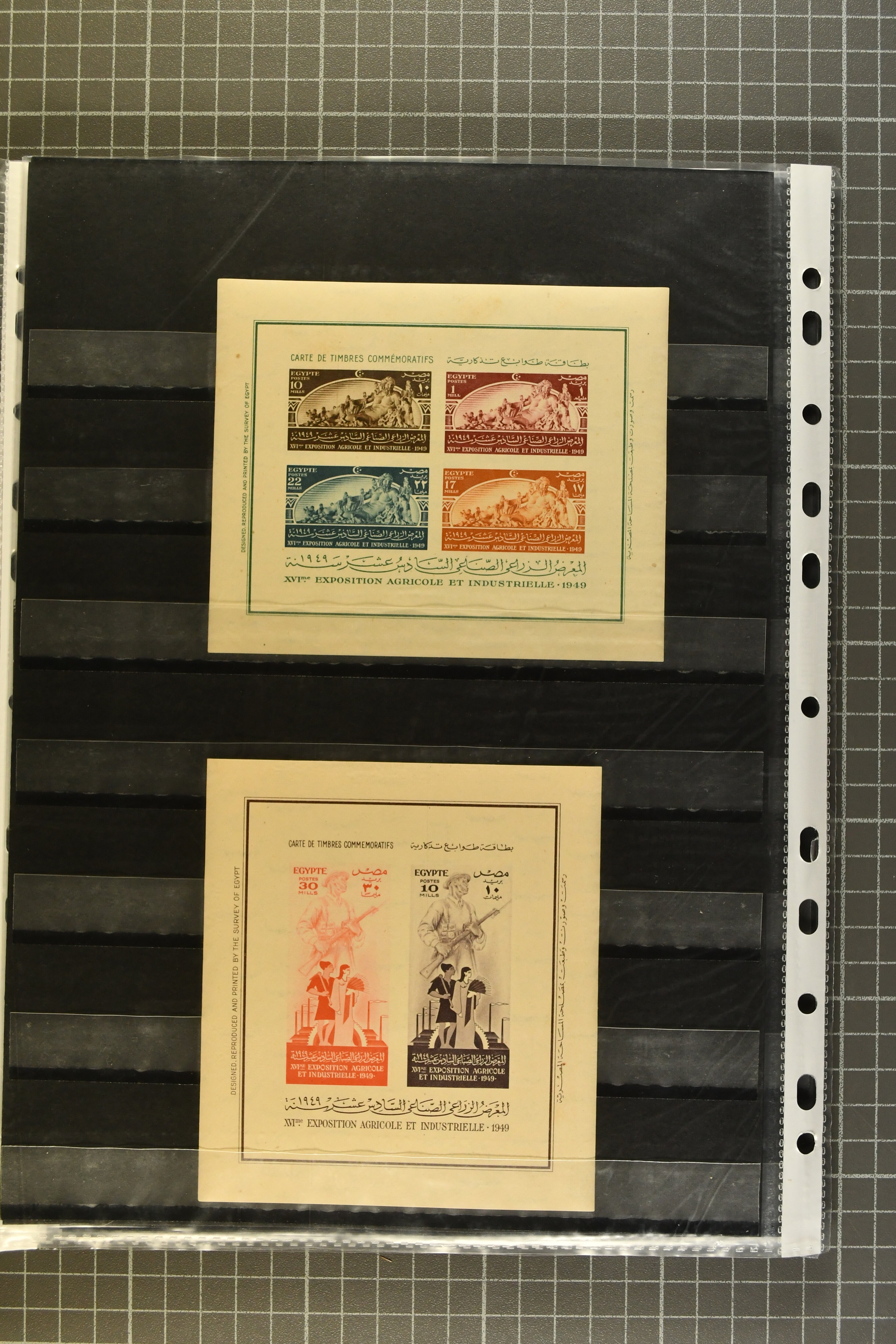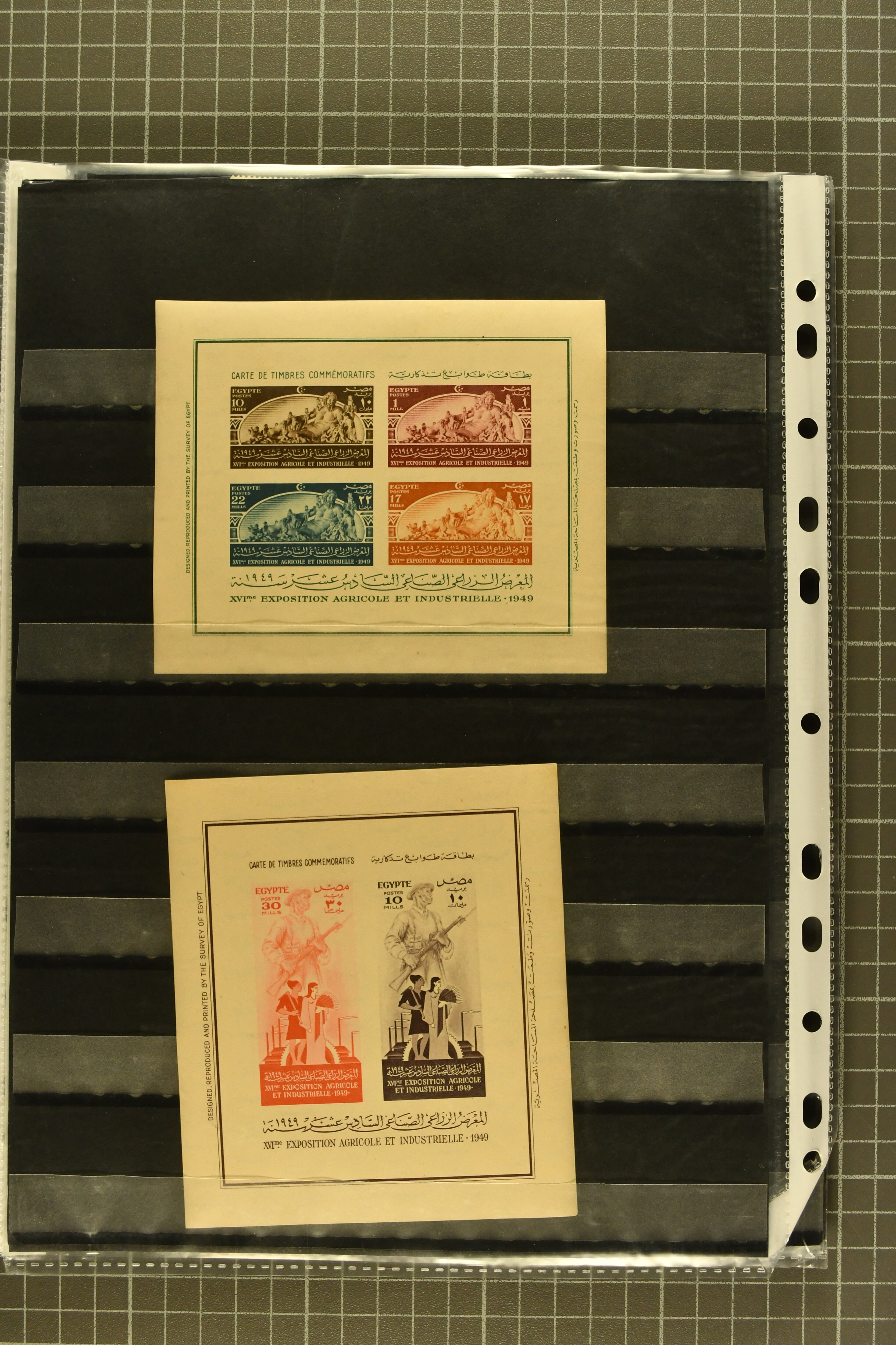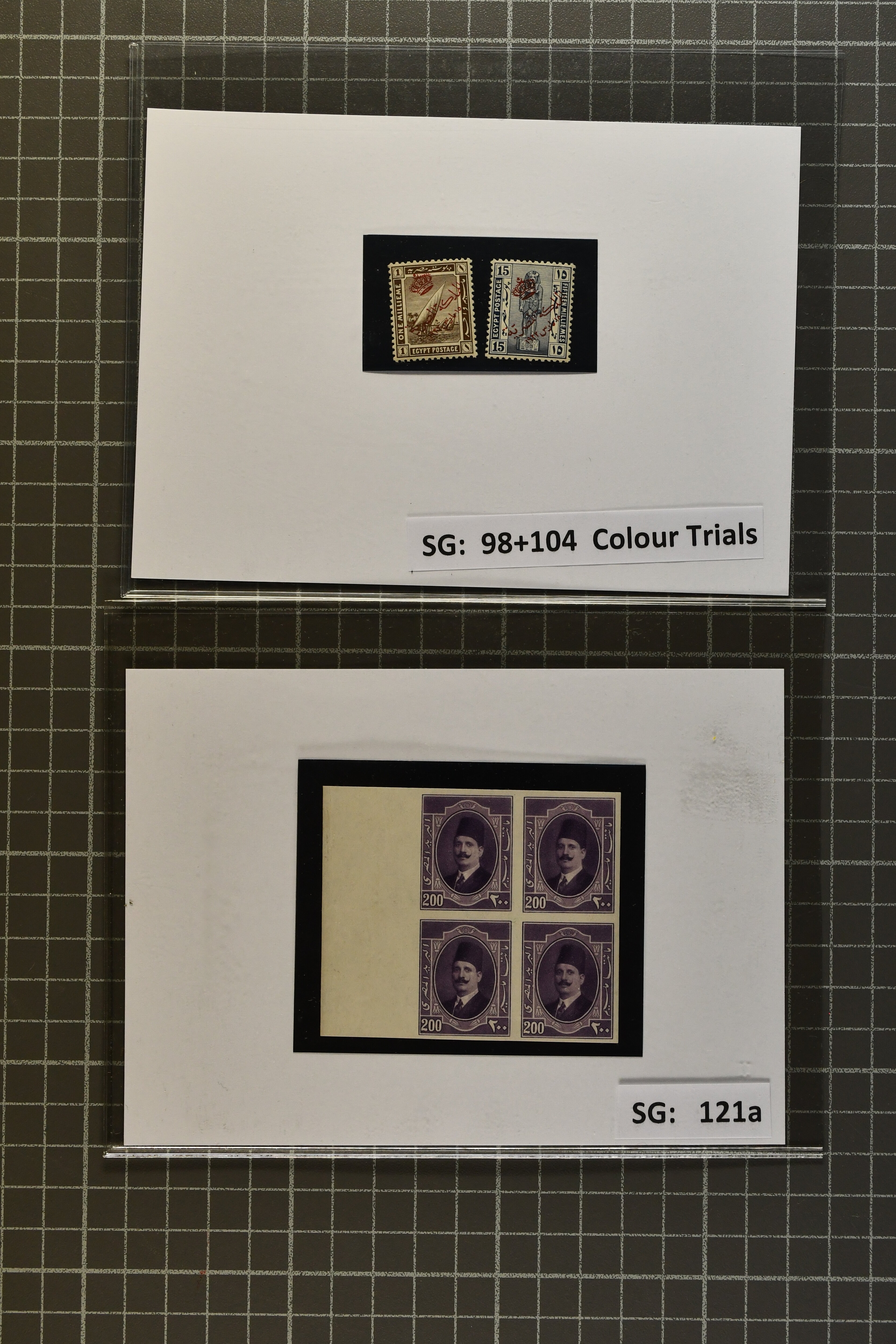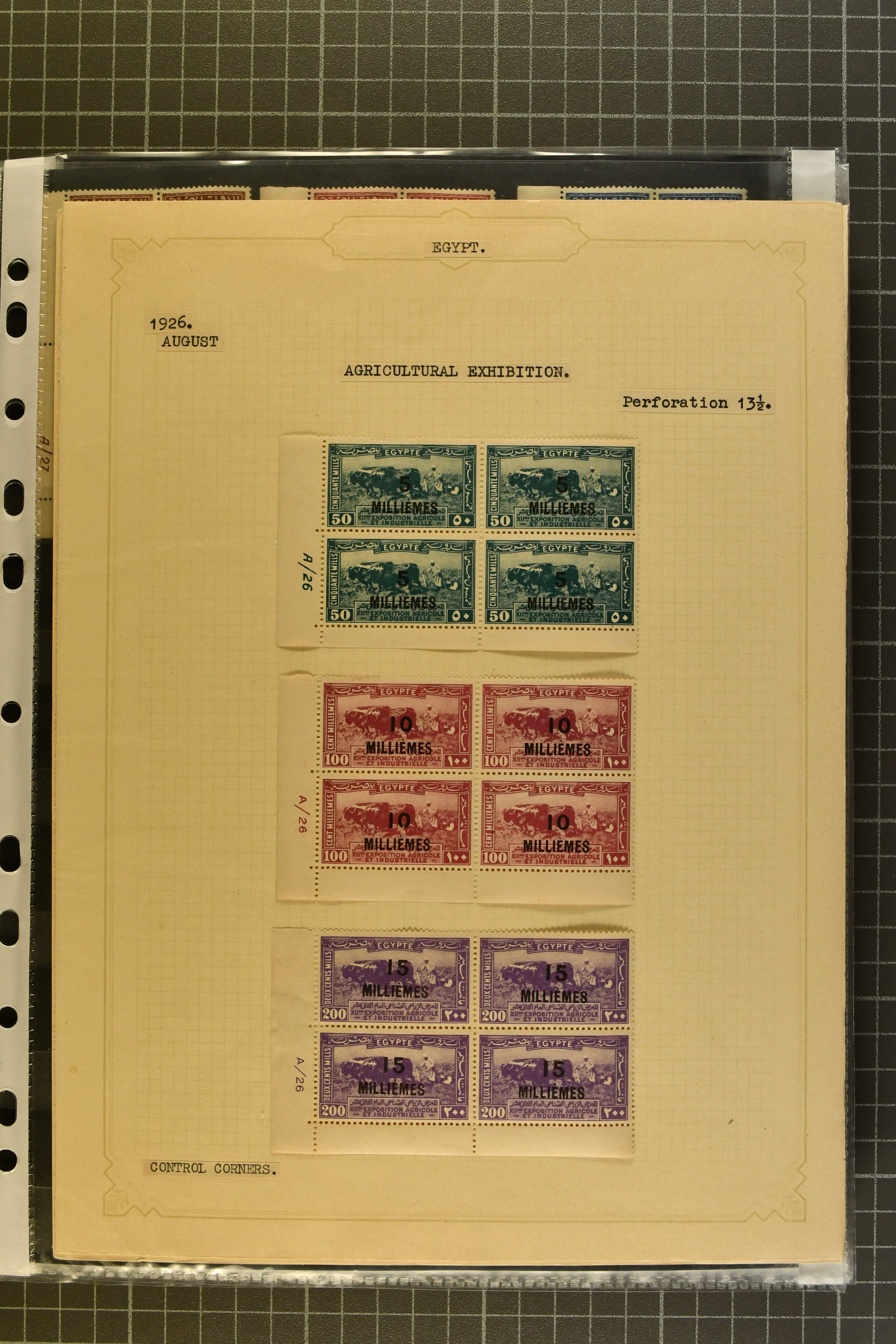 1103 ** image1925/: Commemoratives, an outstanding collection with Farouk Oblique perforations and the matching issued adhesives alongside, largely complete with 1925 Geographic 5 m. brown, 1926 Agricultural set of six in horizontal pairs (only 50 sets printed thus = $ 1'500), Navigation set, Cotton Congress set, Statistics set, Medical set, Farouk 9th Birthday, Agricultural set, Locomotives set, Aviation Congress set, 1936 Agricultural set, Anglo-Egyptian Treaty set, Capitulations set, Opthalmological set, Cotton set, Telecommunications set, Leprosy Research set, 1940 Child Welfare 5 m., 1944 Fuad 10 m., Farouk Birthday 10 m., Ismail Pasha 10 m., ACU set, Abdel Aziz visit, 1946 Stamp Centenary set, Citadel 10 m., Arab League set, 1947 Fine Arts set, 1947 Parliamentary 10 m., Withdrawal 10 m., Cotton Congress 10 m., 1948 Gaza 10 m., 1949 Agricultural Expo set, Mohammed Ali 10 m., UPU set, Mixed Courts 10 m., Desert Institute 10 m., Fuad Univ. 10 m., Geographic 10 m., Cotton Congress 10 m., 1951 Medit. Games set, 1952 Abrogation set, Flag 10 m., a marvellous group with one or two more modern errors also noted incl. 1961 Navy Day 10 m. (2) imperforate etc. Nile Post = $ 10'500++. (Image 1) (Image 2) (Image 3) (Image 4) (Image 5) (Image 6) (Image 7) (Image 8) (Image 9) (Image 10) (Image 11) (Image 12) (Image 13) (Image 14) (Image 15)