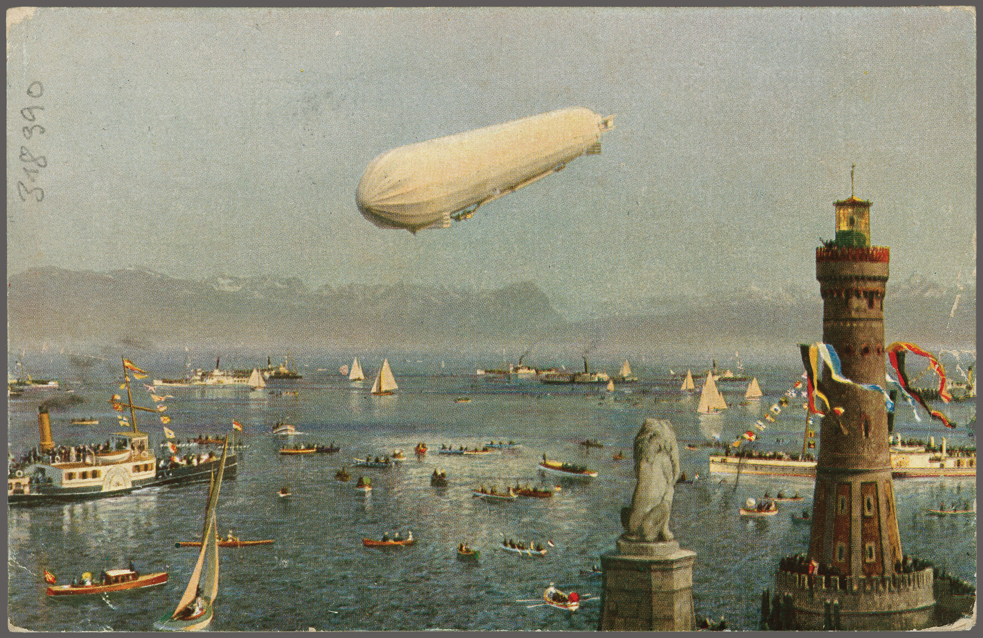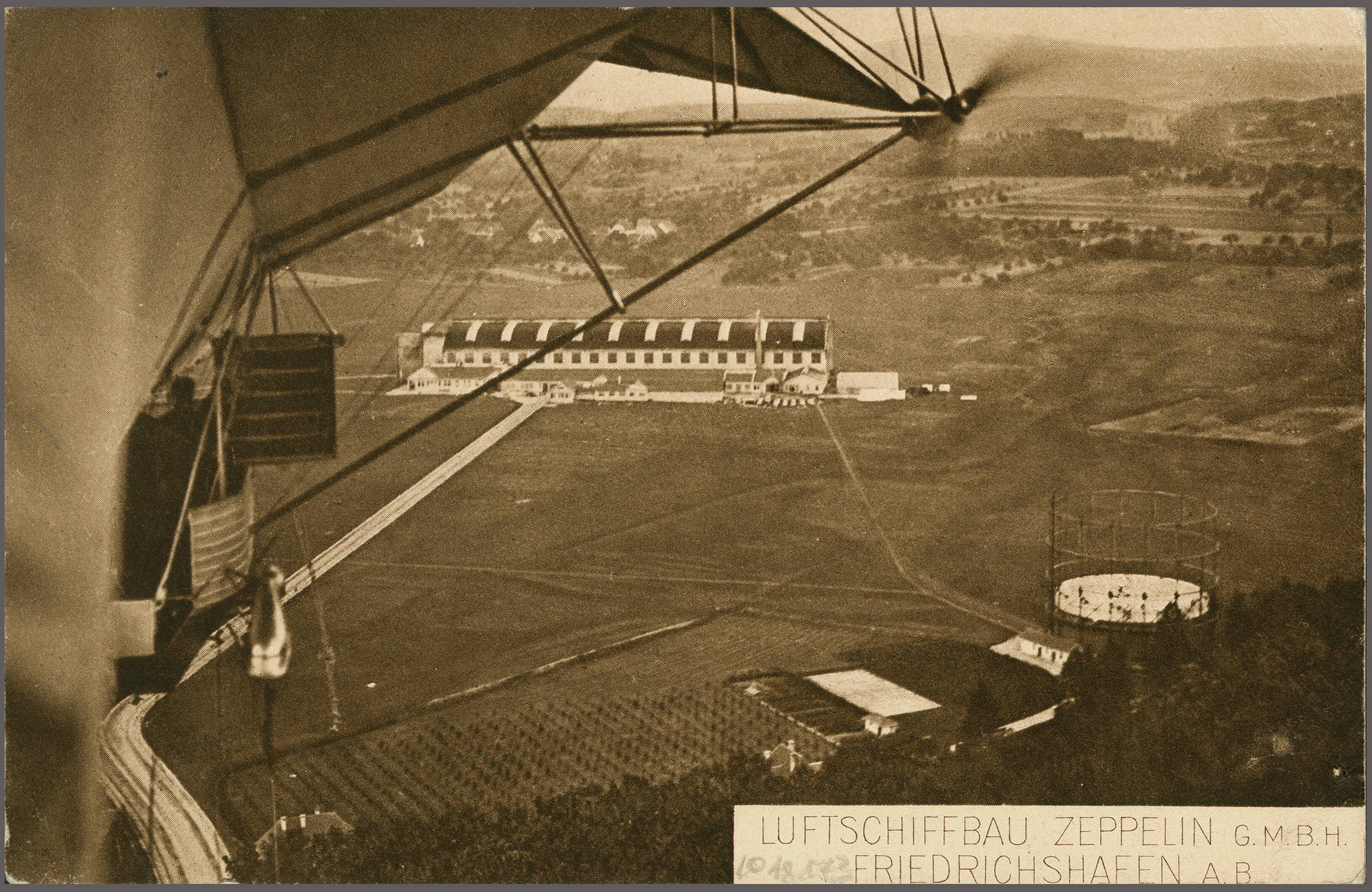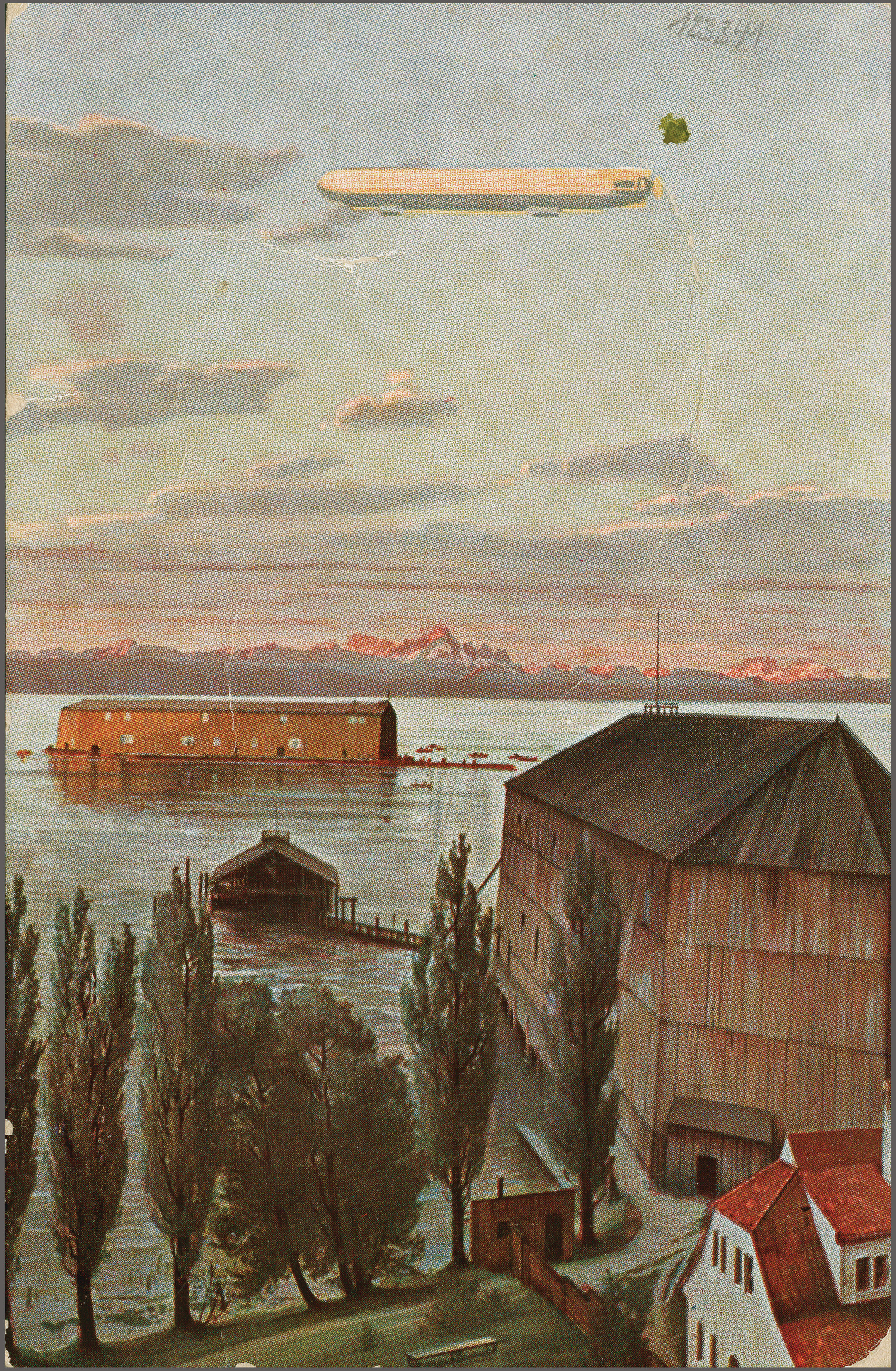 LZ 11 Viktoria Luise - Rundfahrt Friedrichshafen 1914 (29. Mai): Ansichtskarte des Luftschiffbau Zeppelin mit viol. Bordstp., frankiert mit 5 Pfg. vom wilden Abwurf in "Constanz 29.5.14 6-7N". Diese waren nach Eröffnung der