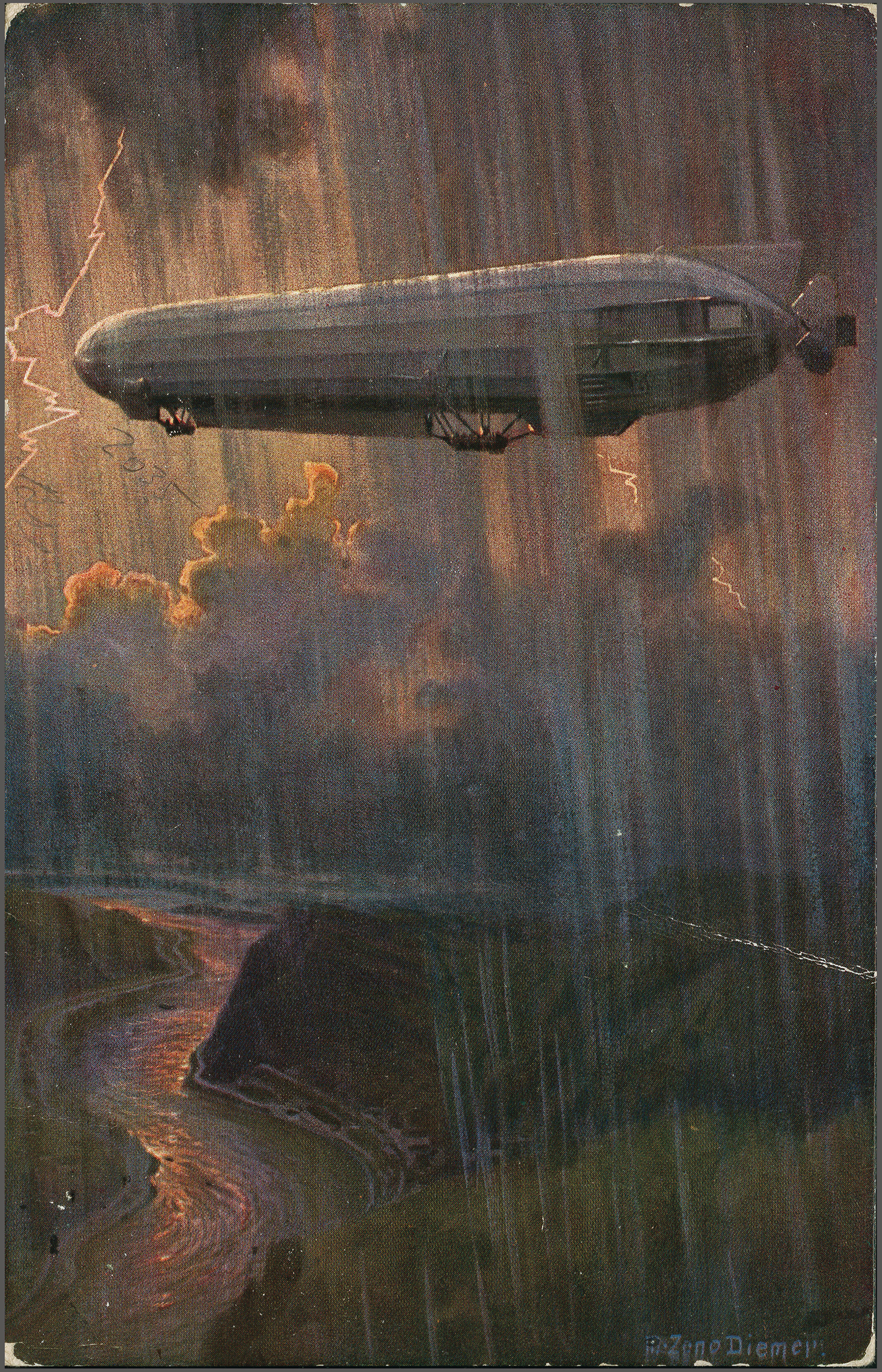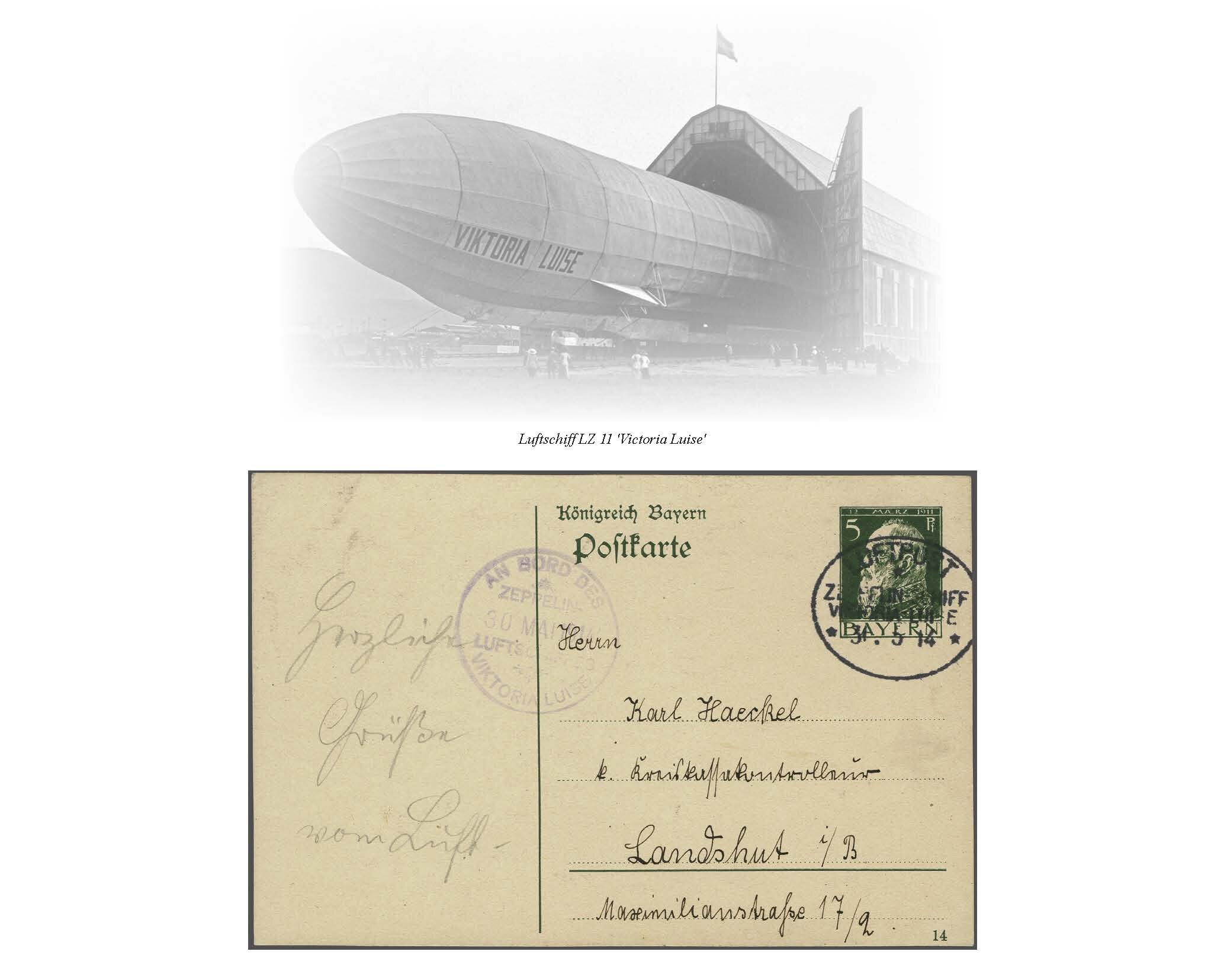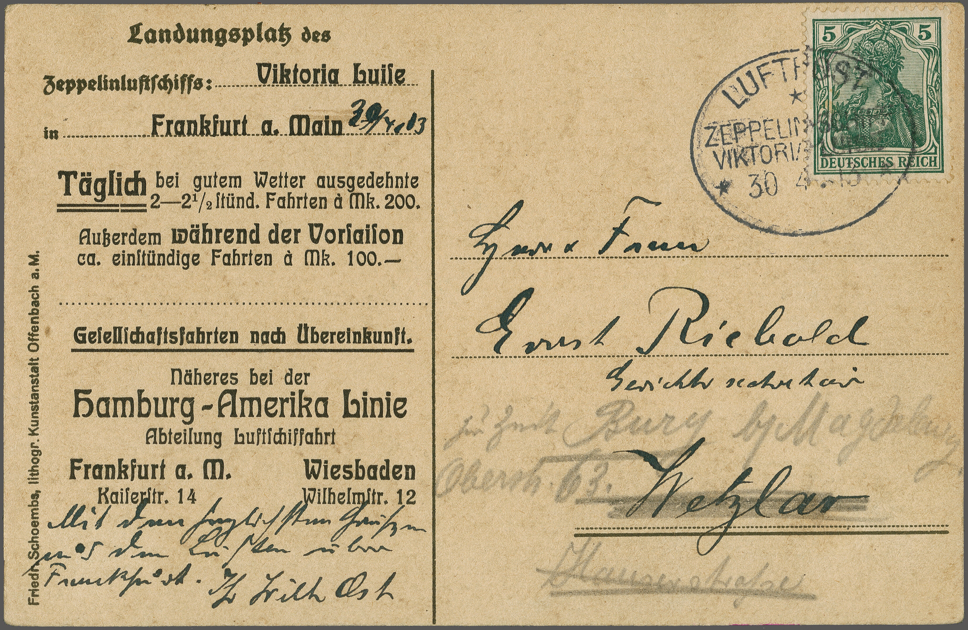 LZ 11 Viktoria Luise - Rundfahrt über Frankfurt 1913 (22. Okt.): Offizielle Luftschiffkarte frankiert mit 5 Pfg., sauber entw. mit schwarzem Bordpoststp., geschrieben von und adressiert an Besatzungsmitglied Franz Wallenstein