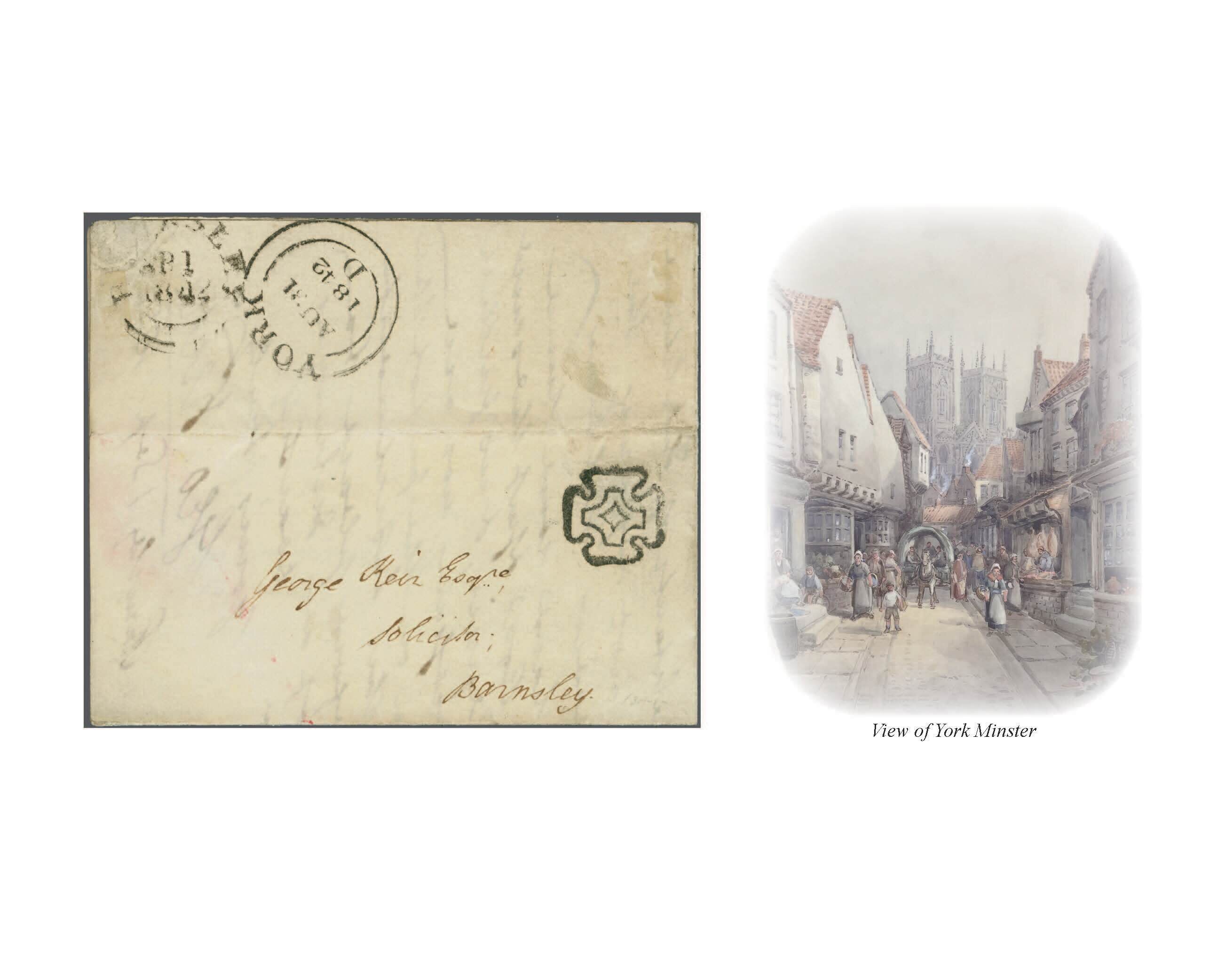 well on flap. The entire with letter from sender and answer. Just two examples are recorded of this stampless usage showing the distinctive YORK Maltese Cross in black (the other ex R.A.G. Lea, Ron Alcock and Trevor Pickering). An exquisite entire of