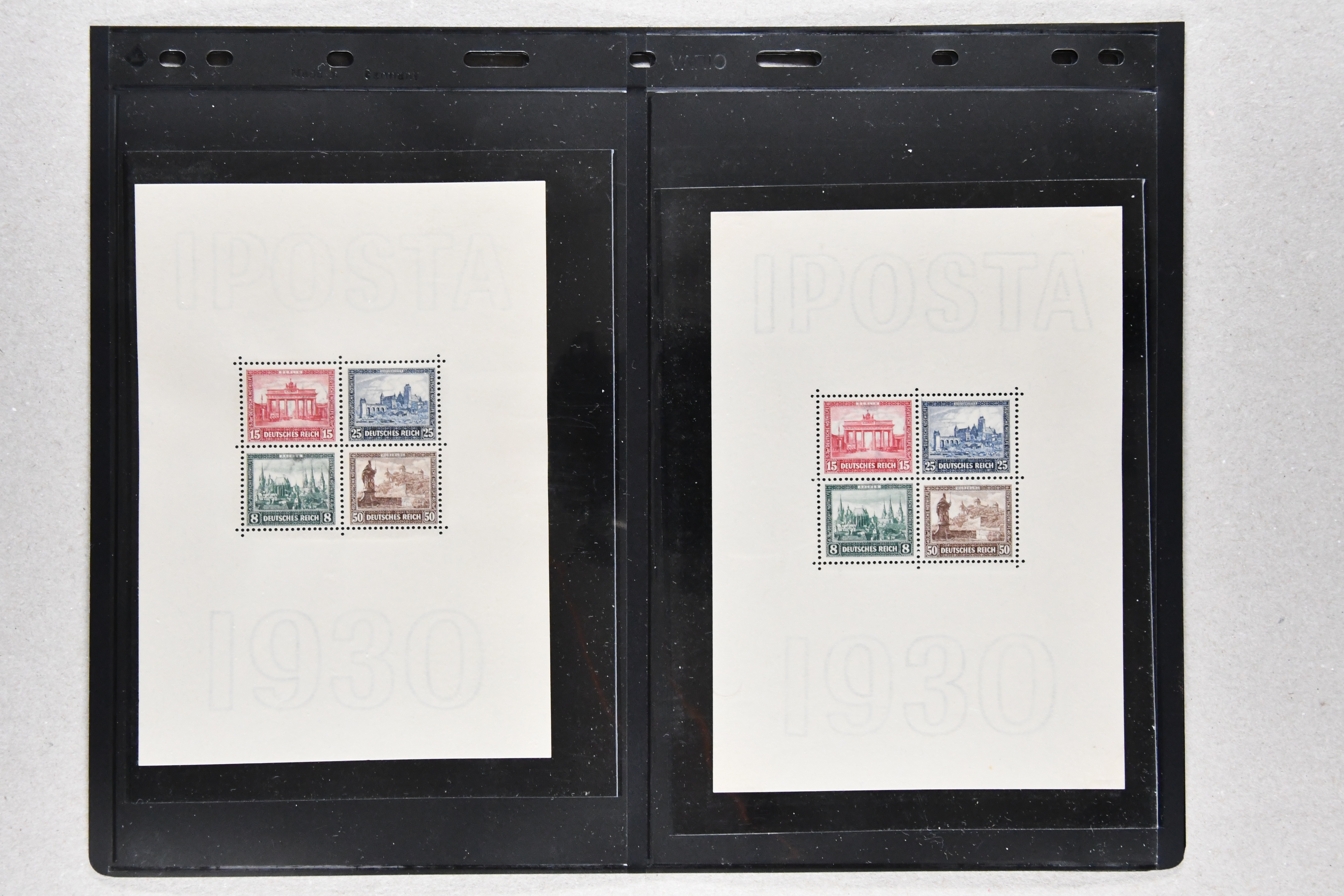 1704 image1930/35: Lot fünf Blocks resp. Block-Herzstücke. Dabei IPOSTA 1930 (Mi. Bl. 1), einmal postfr. und einmal ungebr., Herzstücke aus demselben (2, Mi.446-449) sauber gest. am Ausgabetag mit Ausstellungs-Sonderstp. "BERLIN W62 / IPOSTA / 12.9.30" auf Briefcouvert nach Berlin-Charlottenburg resp. mit sauberem Ausstellungsstp. auf eingeschriebenem Brief nach München sowie Ostropa 1935 (Mi. Bl. 3), ungebr. mit Originalgummierung (Marken postfr.). Gute Erhaltung. Mi = € 4000+ (Image 1) (Image 2) (Image 3) (Image 4)