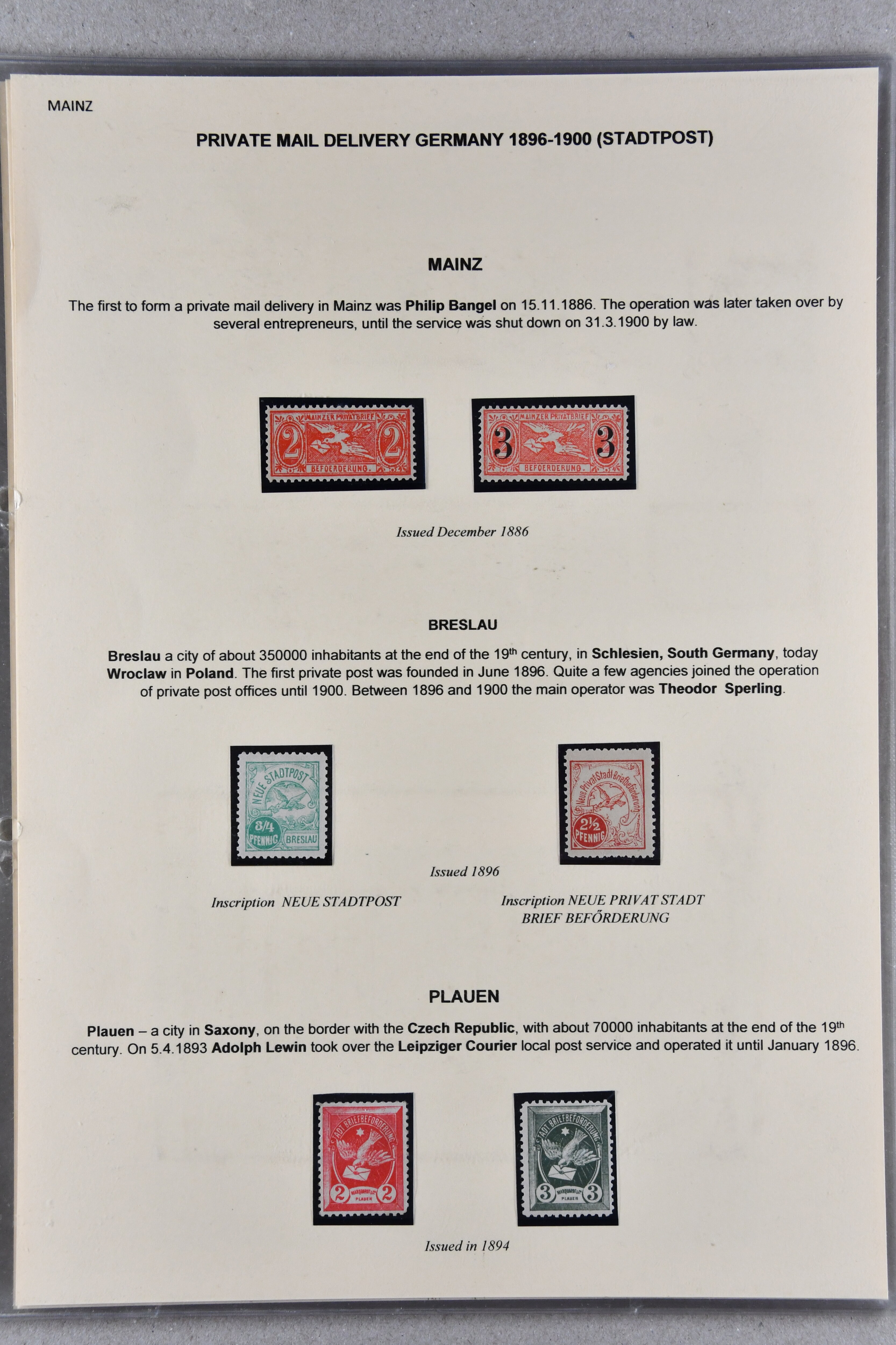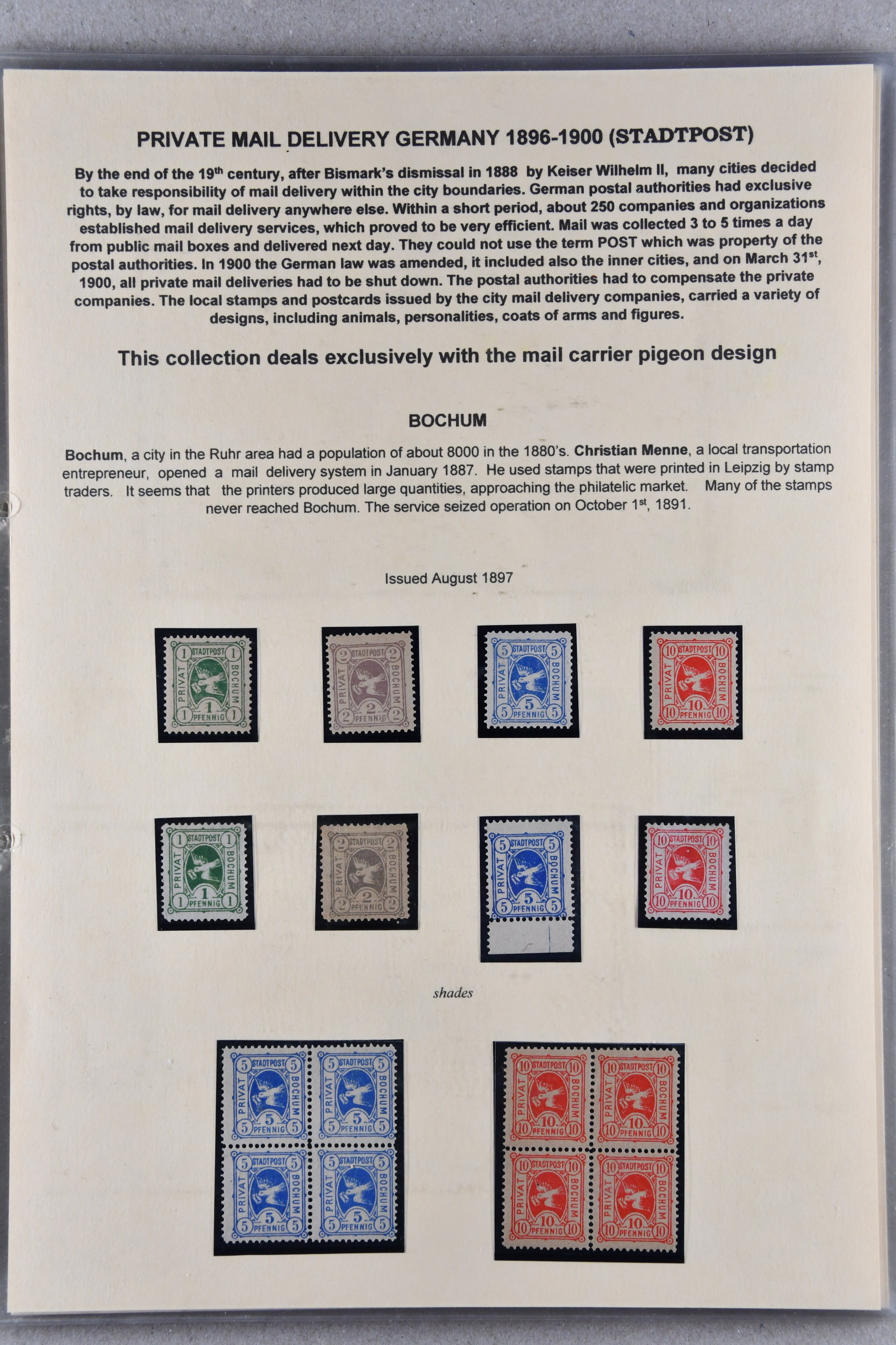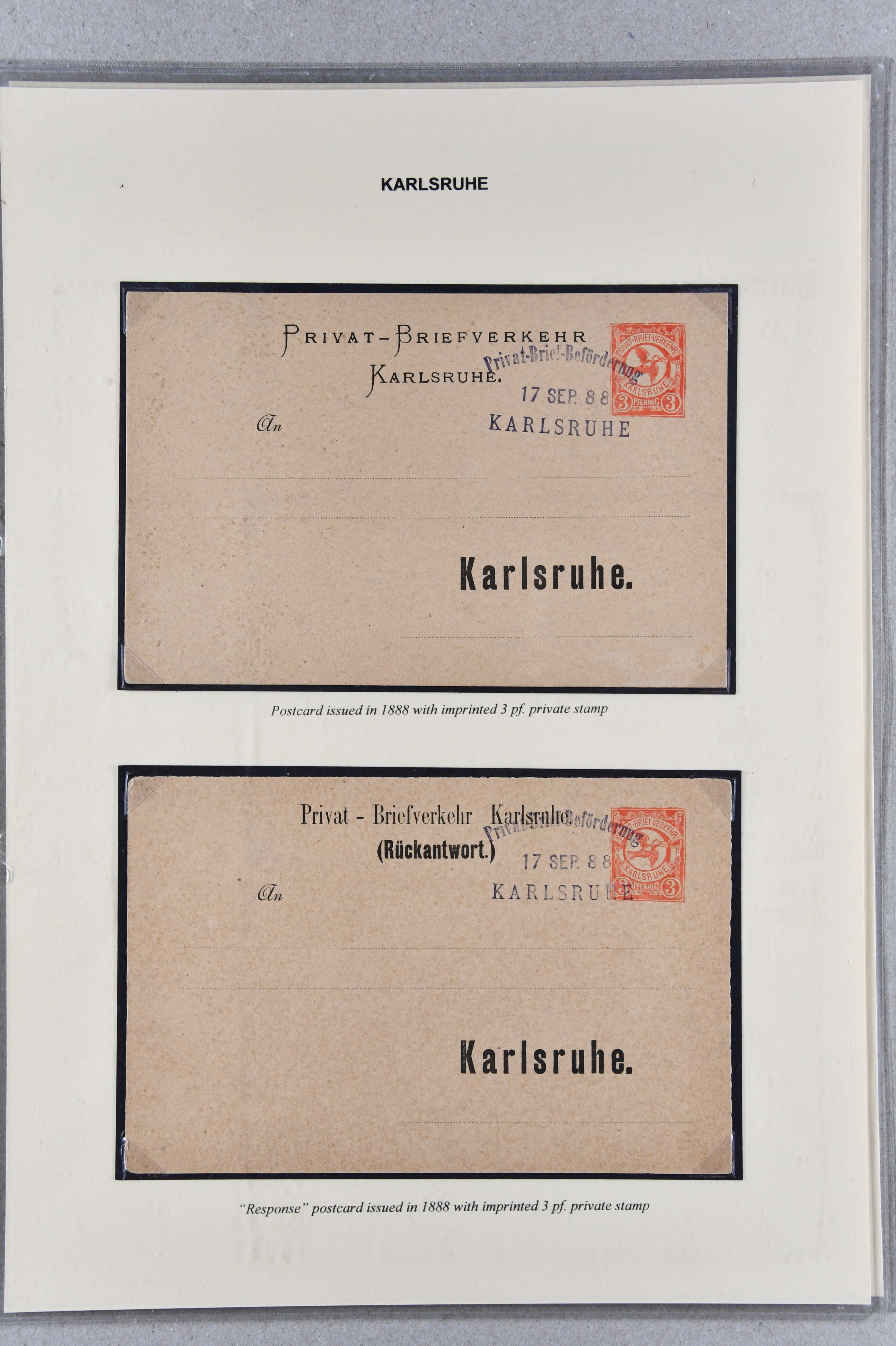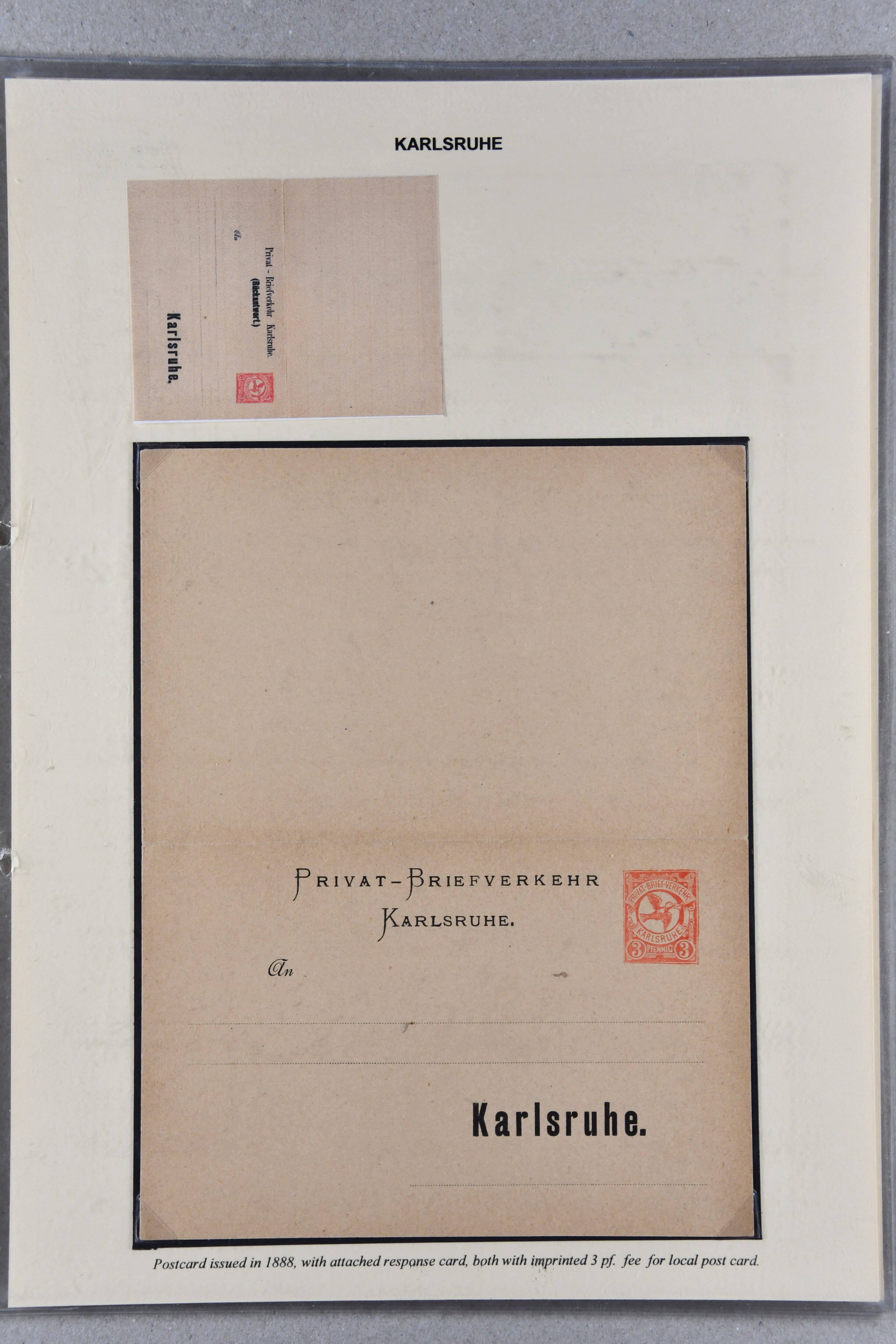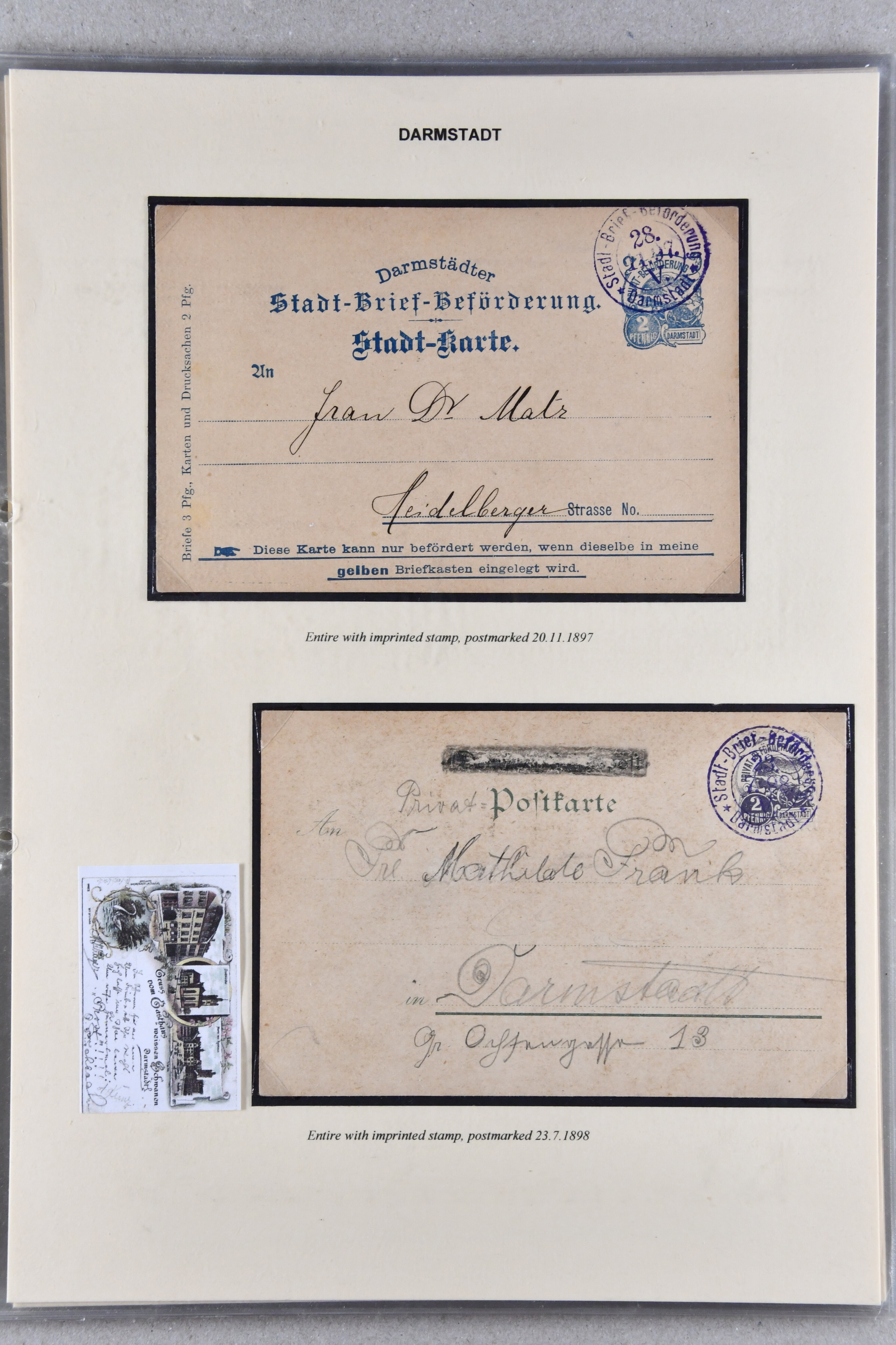 1703 imageDeutsches Reich - Stadtpost 1886/1900: Kl. Sammlung Stadtpostmarken, mehrheitlich ungest. und zwölf Belege von Bochum (1897), Darmstadt mit drei gest. 2 Pfg. 'Darmstädter Stadt-Karte' (1896), Freiburg mit Kartenbrief gest. ud und ungebr. Express-Karte (1897), Stadtpostmarken ungebr. von Mainz, Breslau udn Plauen, weiter mit einer schönen Auswahl Stadtpost Karlsruhe, inkl. 3 Pfg. Ganzsache ungebr., Mitteilungskarte gest., Karte 'Privat-Briefverkehr' ungebr., dazu zwei attraktive Abschieds-Karten gebr. von Zittau und Görlitz. Ex. The ‘Izhak Barak’ Collection: The Development of Aviation and Transportation of Mail by Air until 1914 (Image 1) (Image 2) (Image 3) (Image 4) (Image 5) (Image 6) (Image 7) (Image 8) (Image 9) (Image 10)