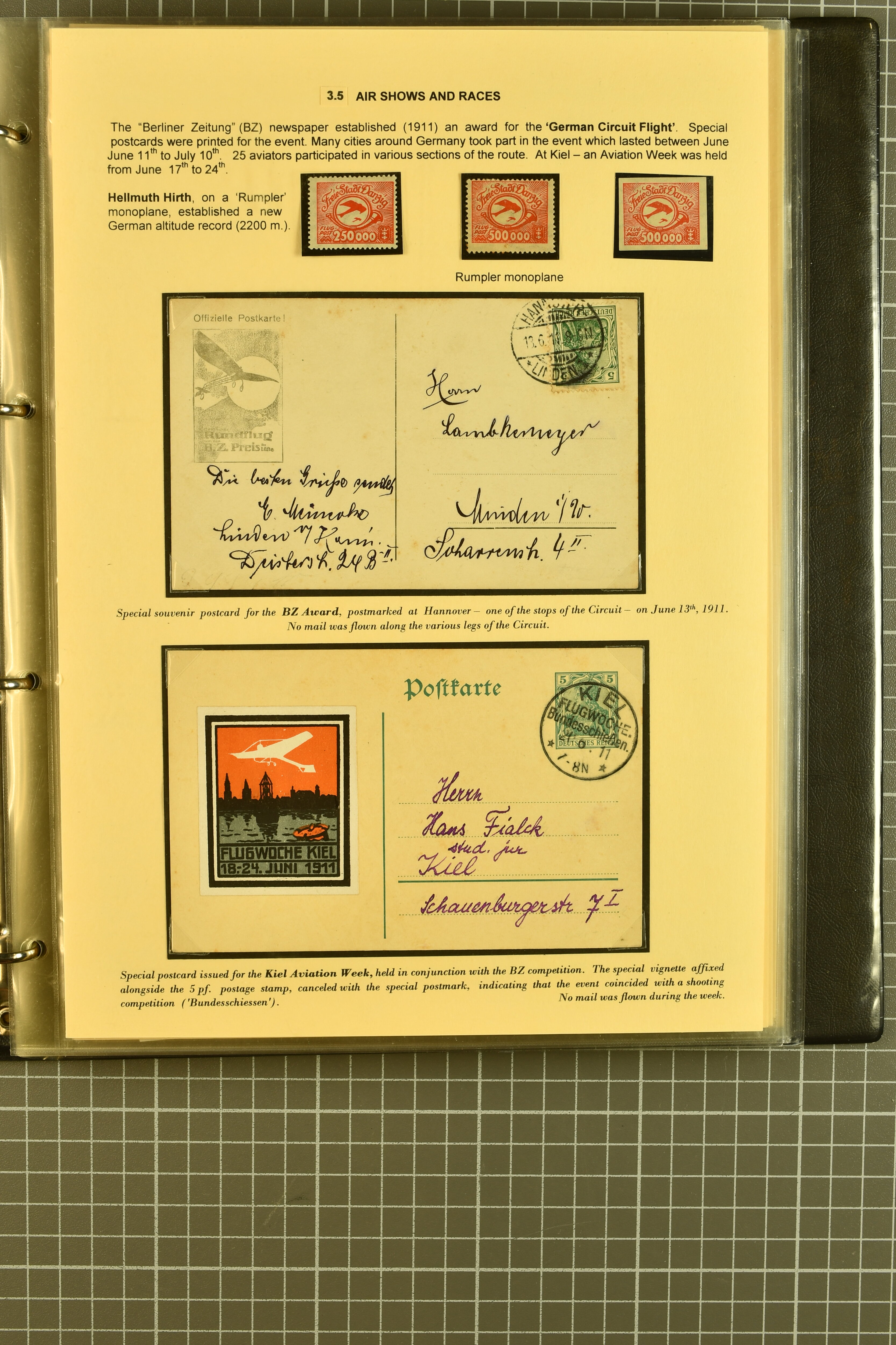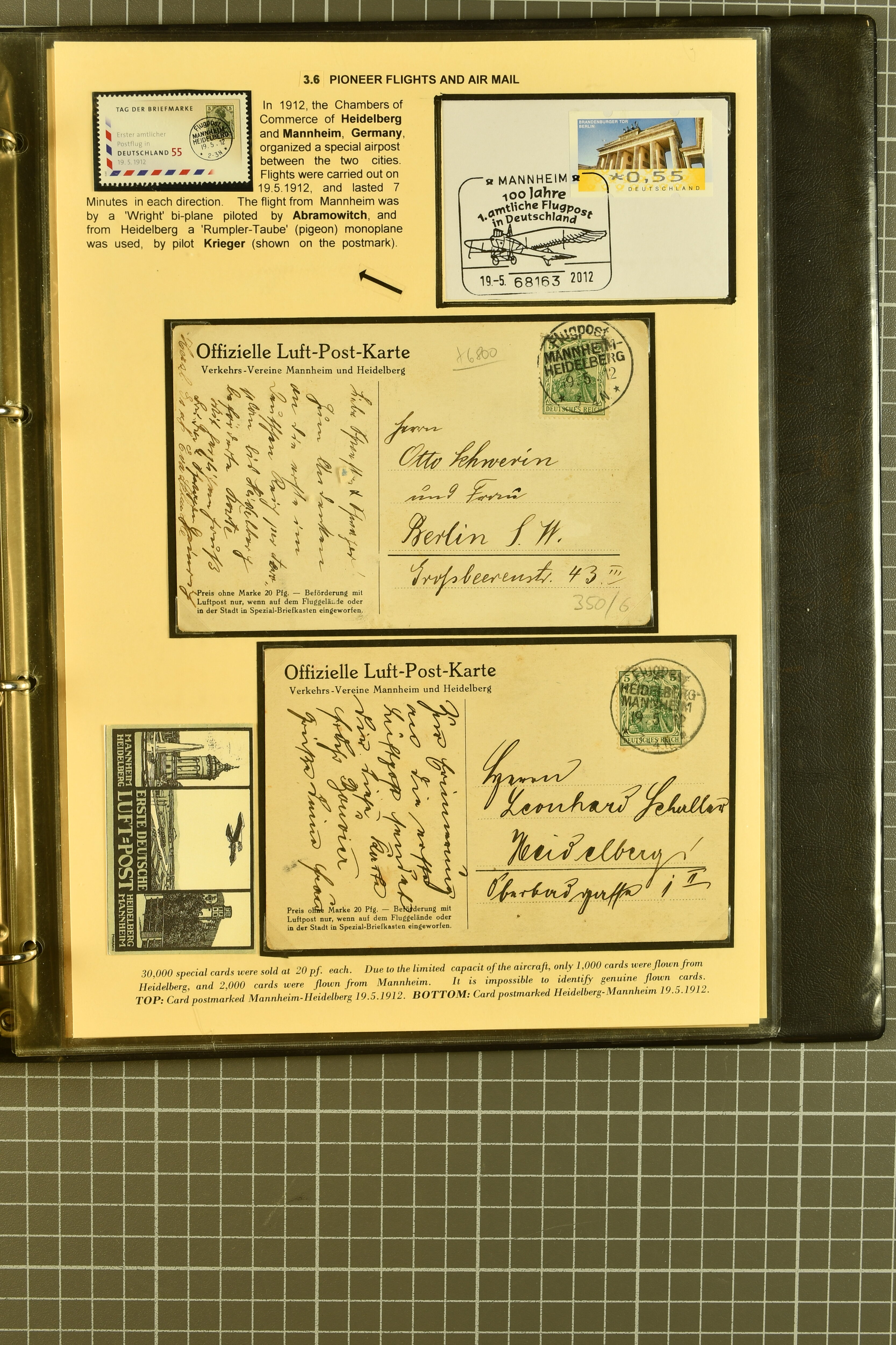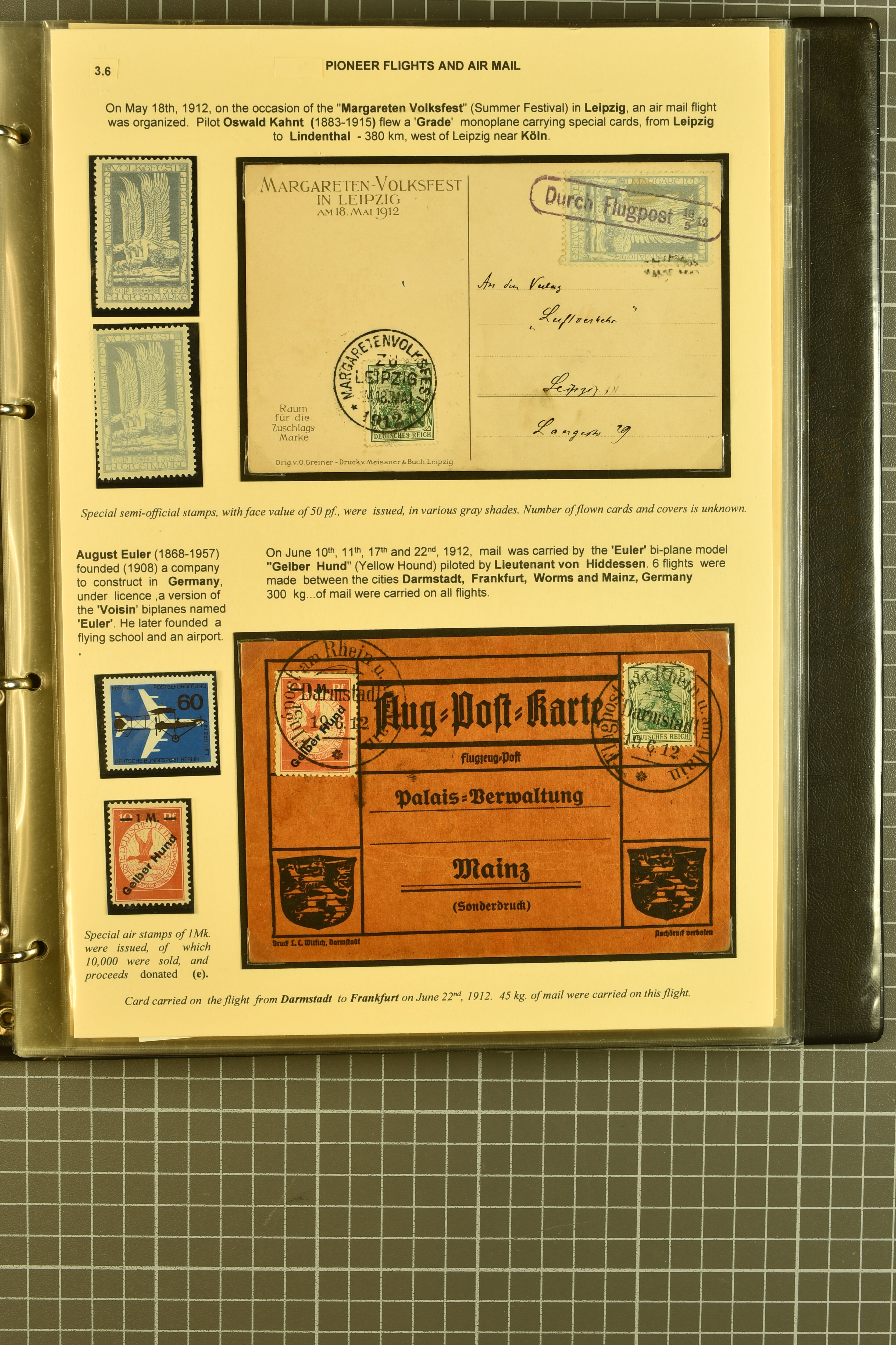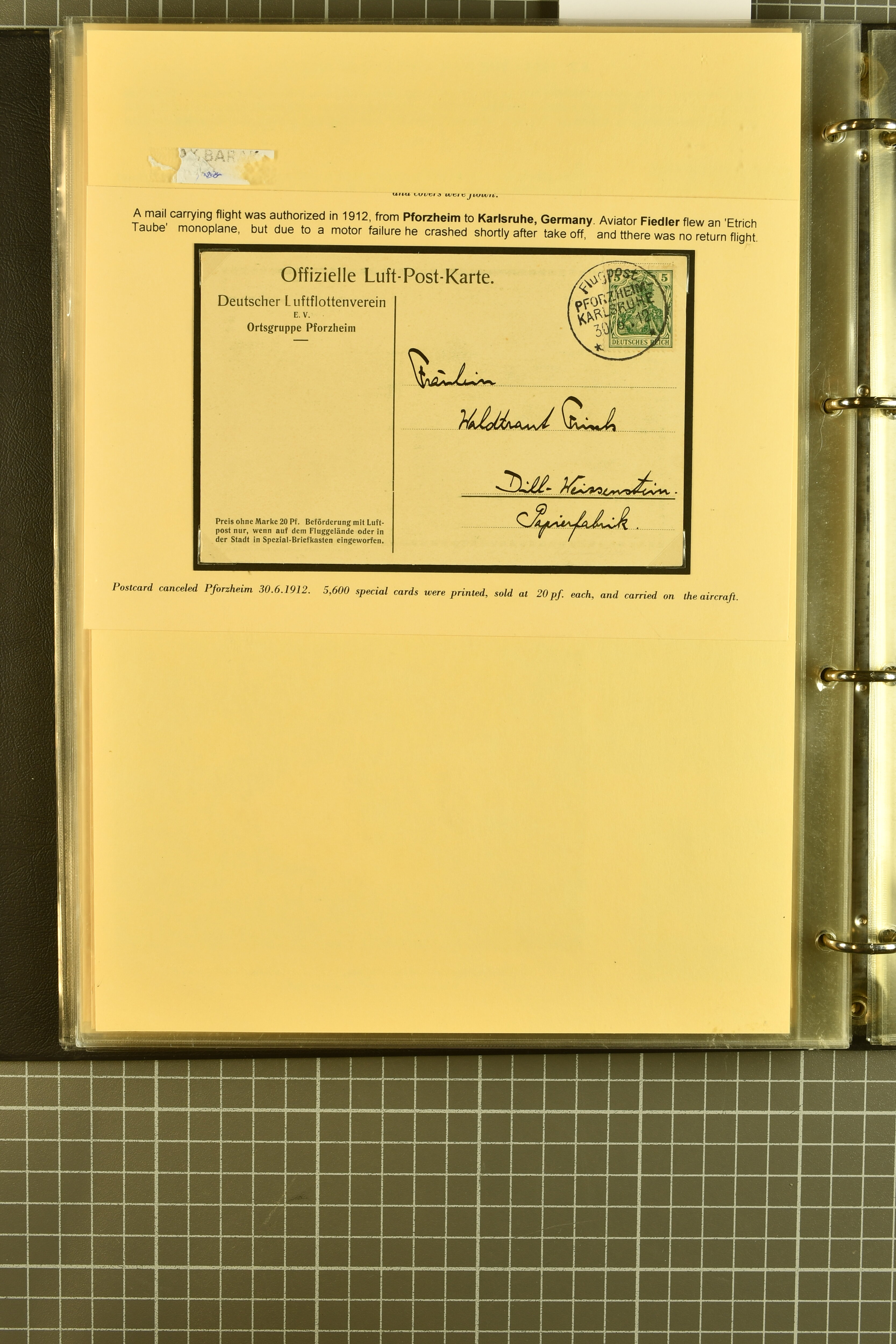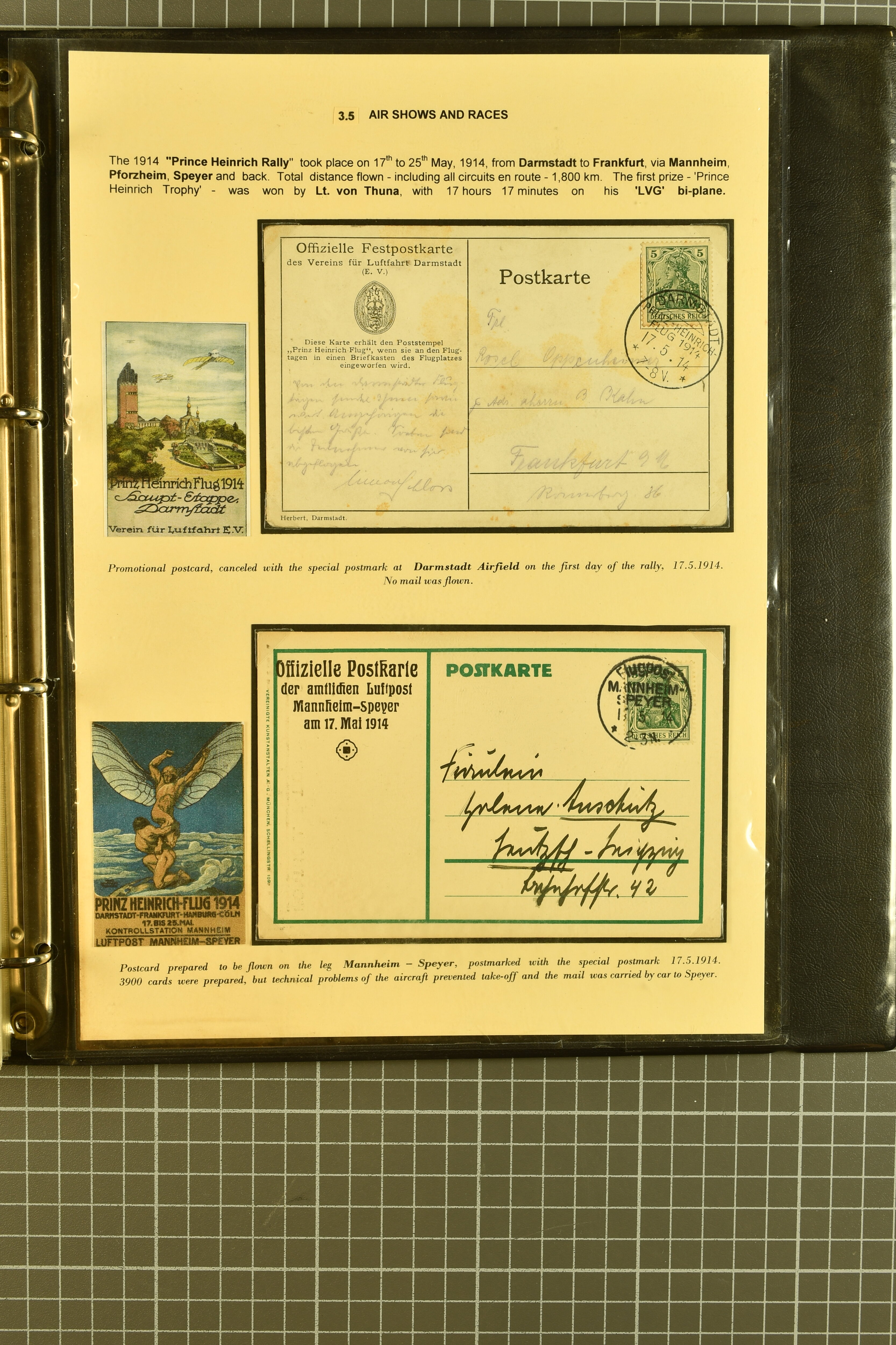 1711 cover imageDeutsche Pionierflüge 1911/23: Sammlung 28 Belege von versch. Pionierflügen, dabei Karte mit Vignette der Flugwoche Kiel, Marken u. Karte zum Margareten Volksfest 1912, Rhein-Main 'Gelber Hund' ungebr. Einzelmarke (Attest Brettl) und gest. auf offiz. Flugpostkarte, weiter 'Schwäbischer Überlandflug', 1.Postflug München (Karten, davon einmal ab Nürnberg), Flugpost Pforzheim-Karlsruhe (Fiedler9 , Mannheim-Heidelberg und zurück,, Prinz Heinrich Flug 1913, Flugpost Dresden 1914 sowie offiz. Karte der amtl. Flugpost Mannheim-Speyer 1914 (17. Mai). Eine schöne Auswahl in vorab guter Erhaltung. Ex. The ‘Izhak Barak’ Collection: The Development of Aviation and Transportation of Mail by Air until 1914 (Image 1) (Image 2) (Image 3) (Image 4) (Image 5) (Image 6) (Image 7) (Image 8) (Image 9) (Image 10) (Image 11) (Image 12) (Image 13) (Image 14) (Image 15) (Image 16) (Image 17) (Image 18)