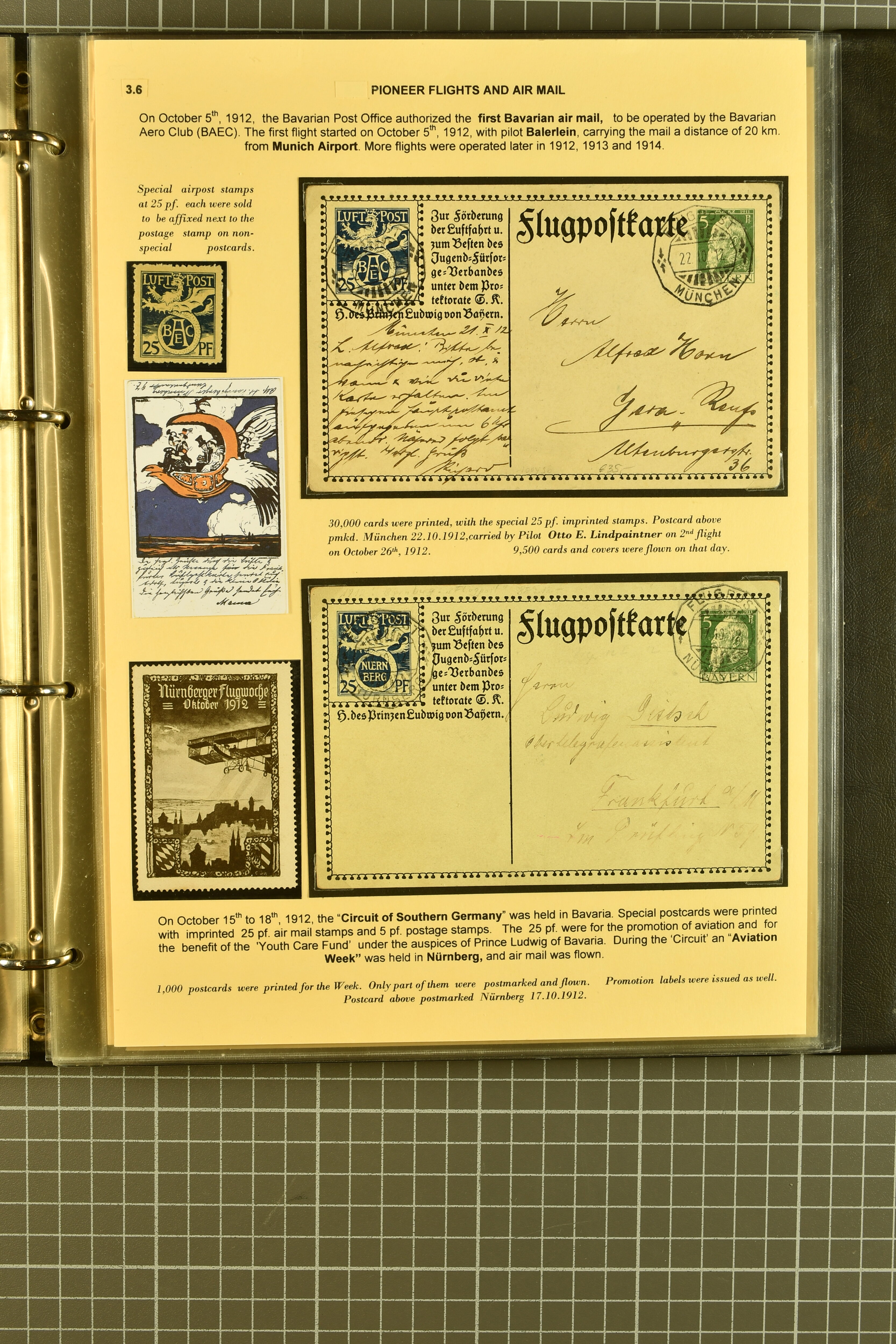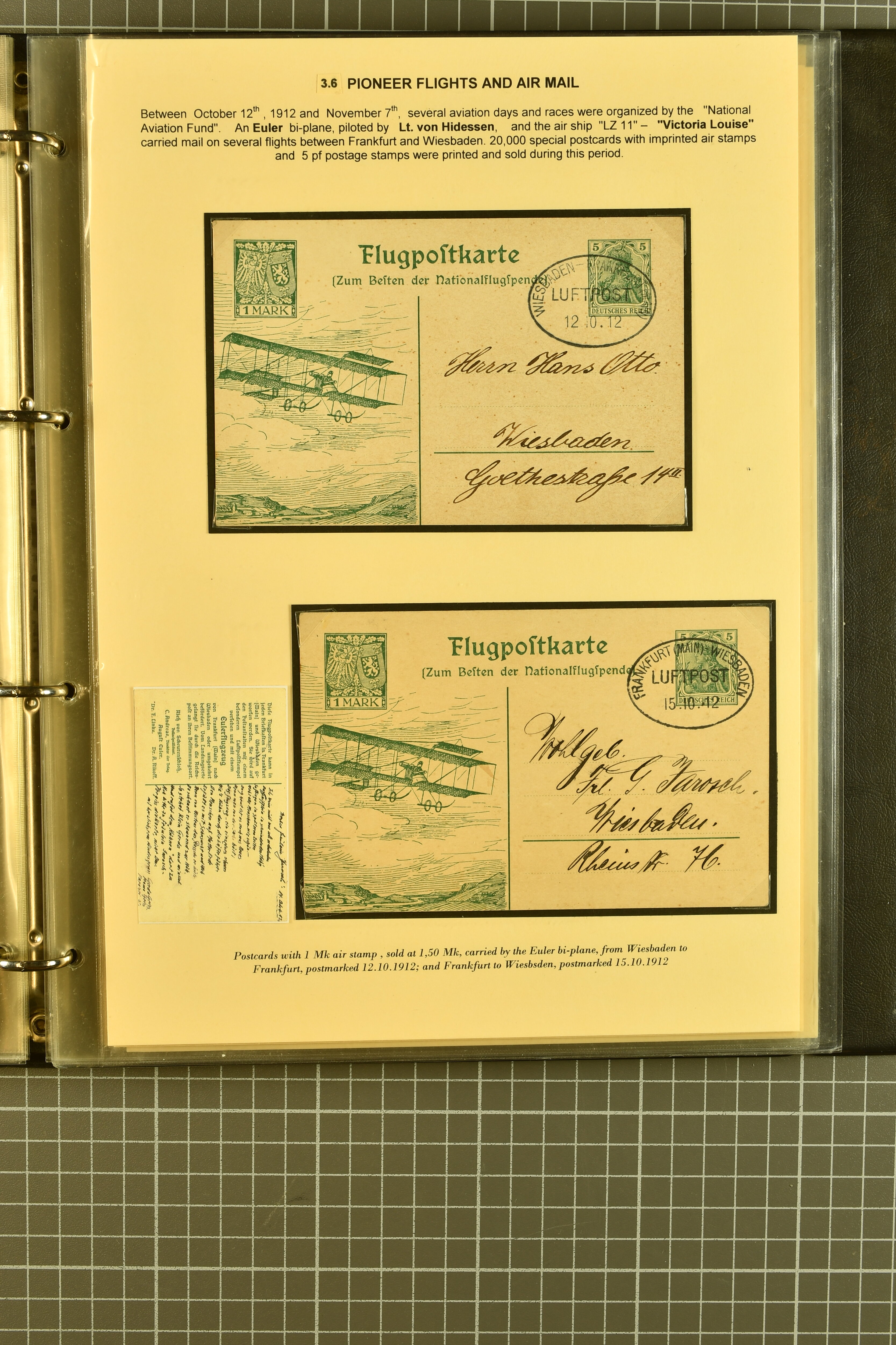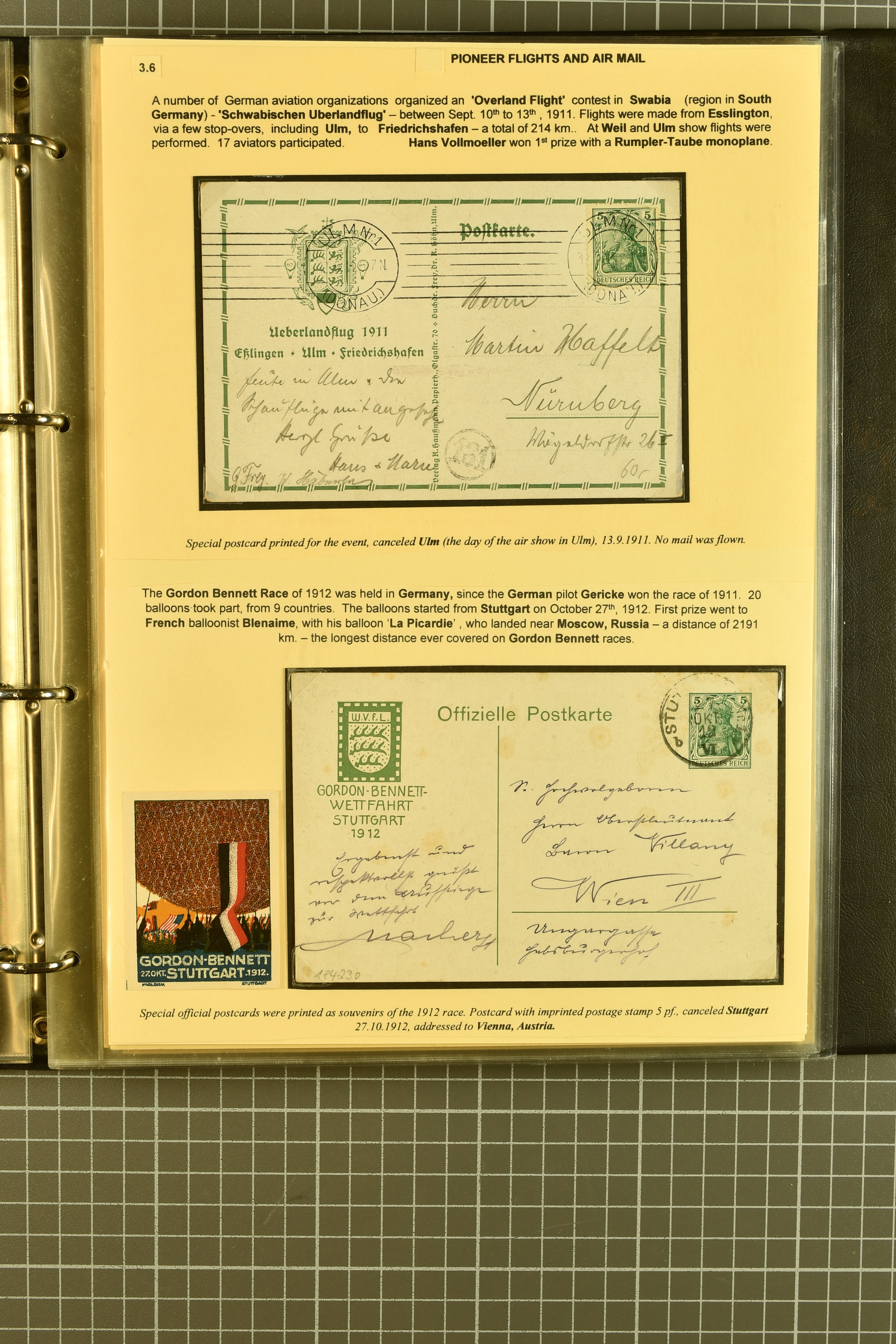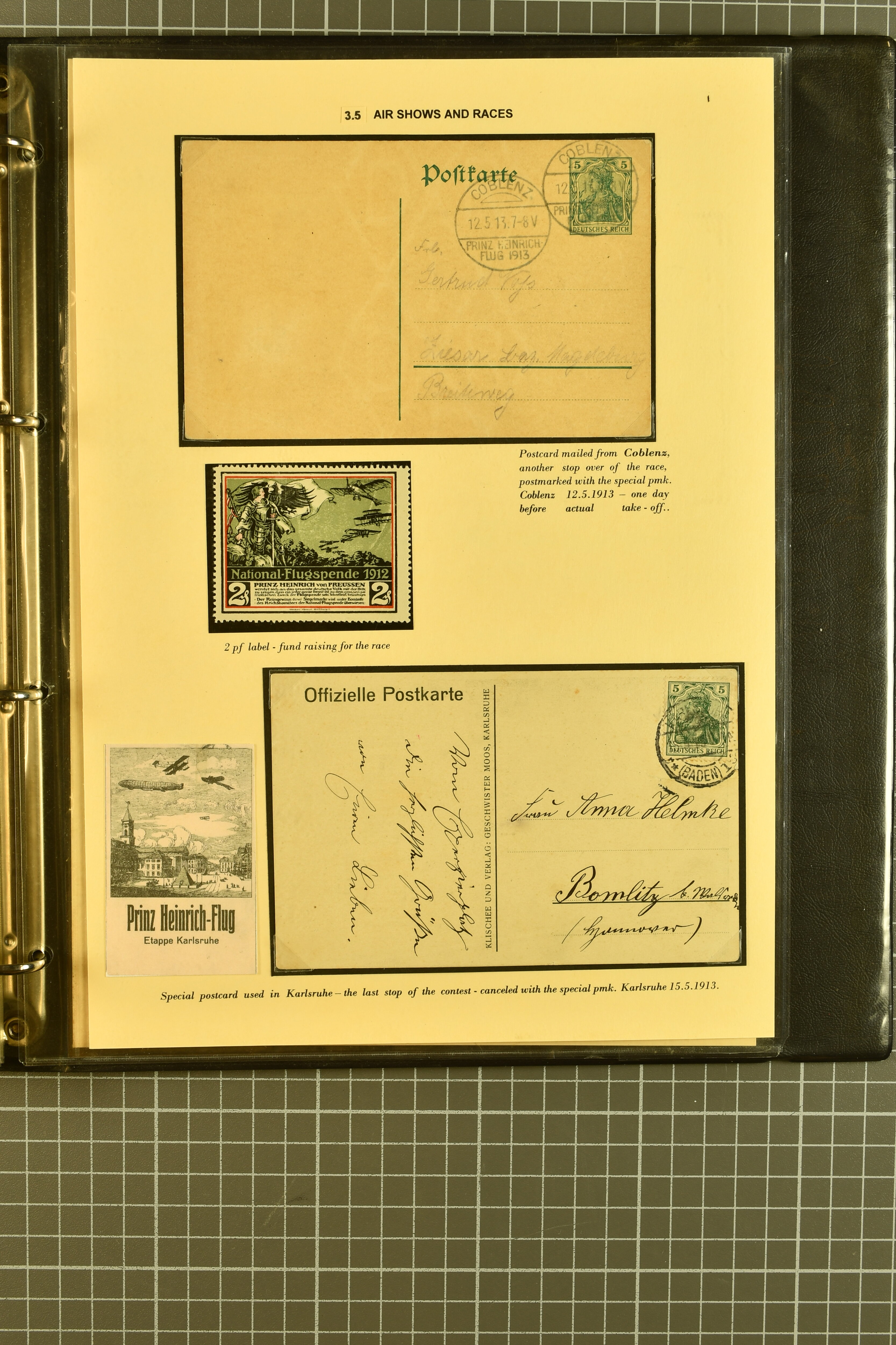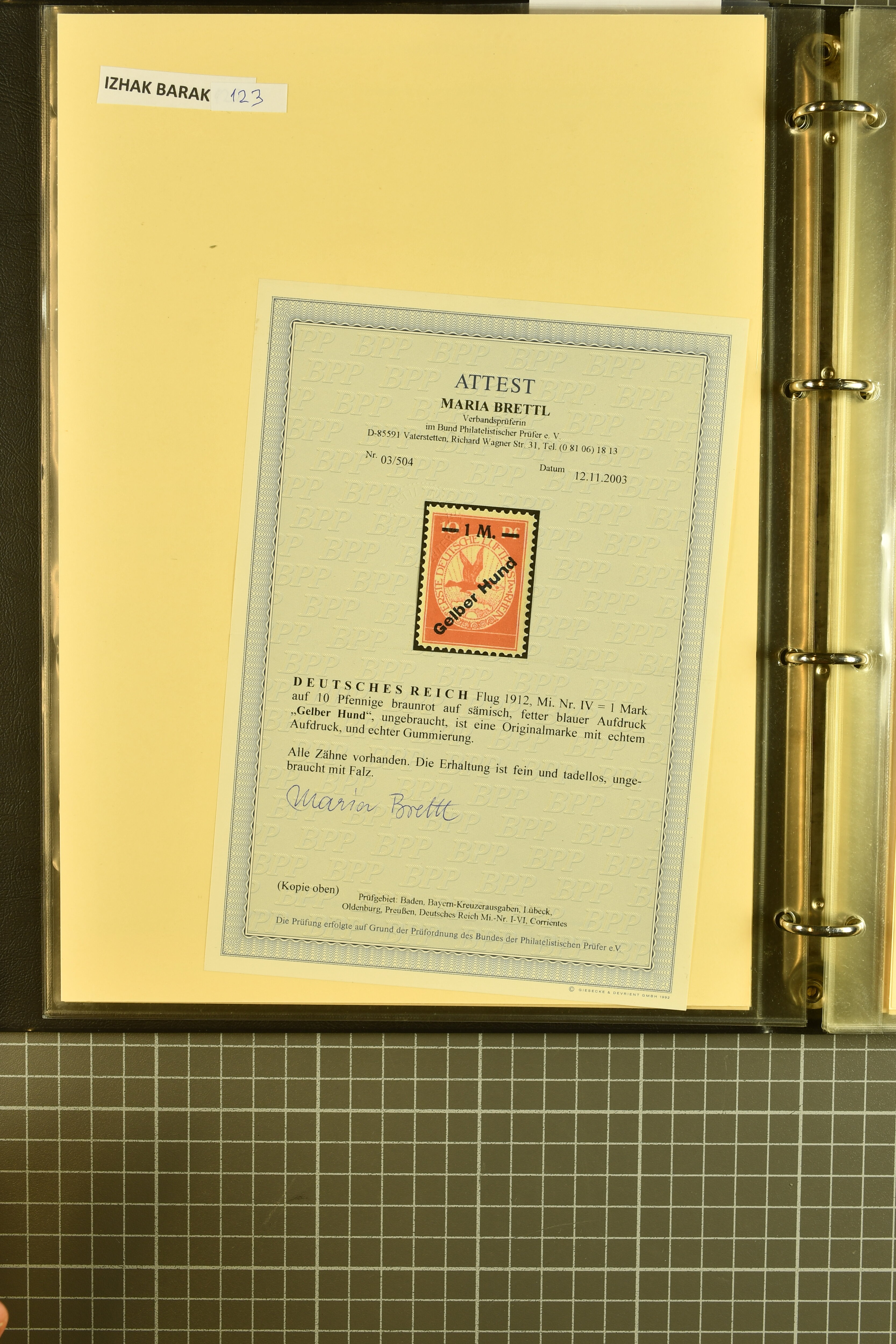 1711 cover imageDeutsche Pionierflüge 1911/23: Sammlung 28 Belege von versch. Pionierflügen, dabei Karte mit Vignette der Flugwoche Kiel, Marken u. Karte zum Margareten Volksfest 1912, Rhein-Main 'Gelber Hund' ungebr. Einzelmarke (Attest Brettl) und gest. auf offiz. Flugpostkarte, weiter 'Schwäbischer Überlandflug', 1.Postflug München (Karten, davon einmal ab Nürnberg), Flugpost Pforzheim-Karlsruhe (Fiedler9 , Mannheim-Heidelberg und zurück,, Prinz Heinrich Flug 1913, Flugpost Dresden 1914 sowie offiz. Karte der amtl. Flugpost Mannheim-Speyer 1914 (17. Mai). Eine schöne Auswahl in vorab guter Erhaltung. Ex. The ‘Izhak Barak’ Collection: The Development of Aviation and Transportation of Mail by Air until 1914 (Image 1) (Image 2) (Image 3) (Image 4) (Image 5) (Image 6) (Image 7) (Image 8) (Image 9) (Image 10) (Image 11) (Image 12) (Image 13) (Image 14) (Image 15) (Image 16) (Image 17) (Image 18)