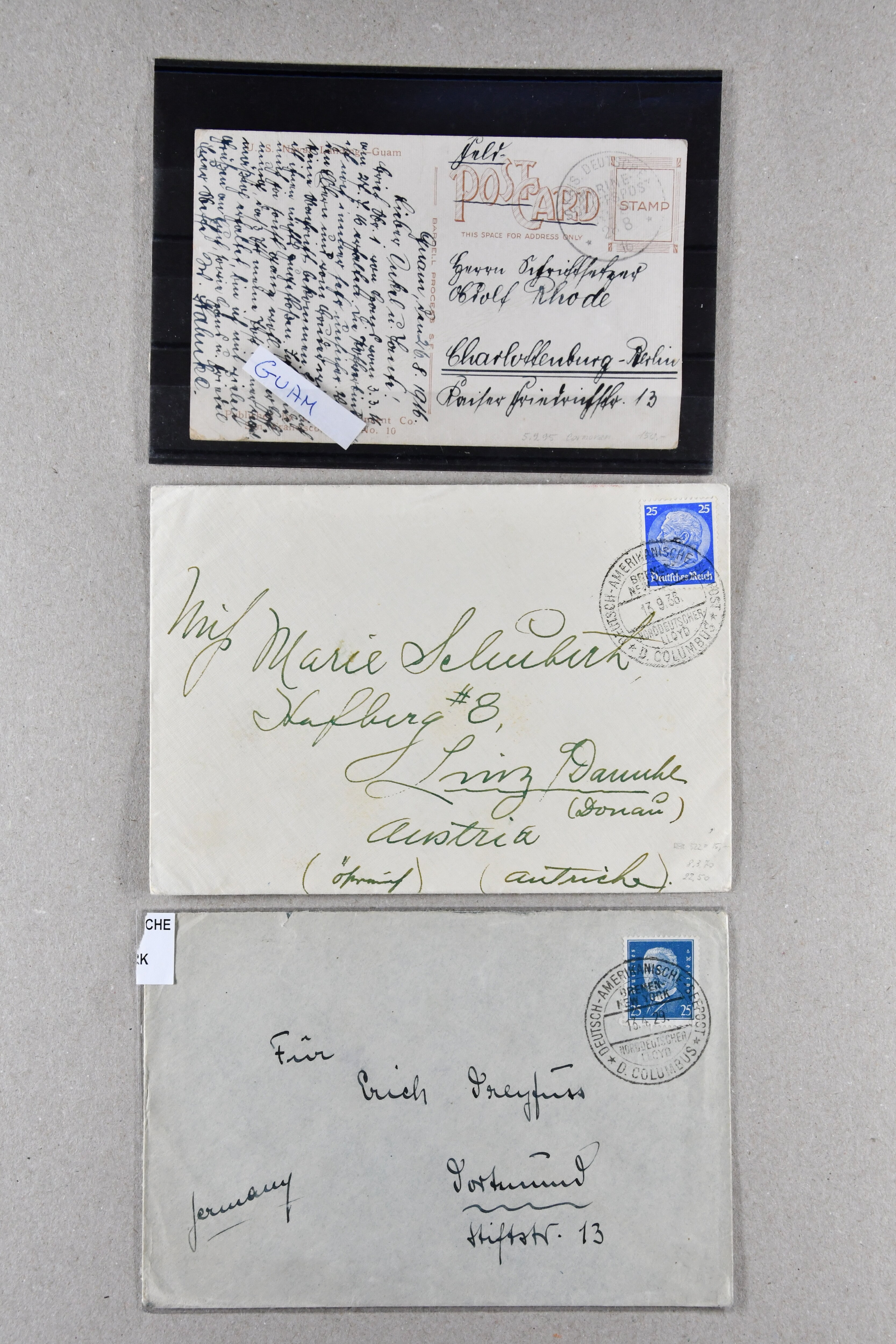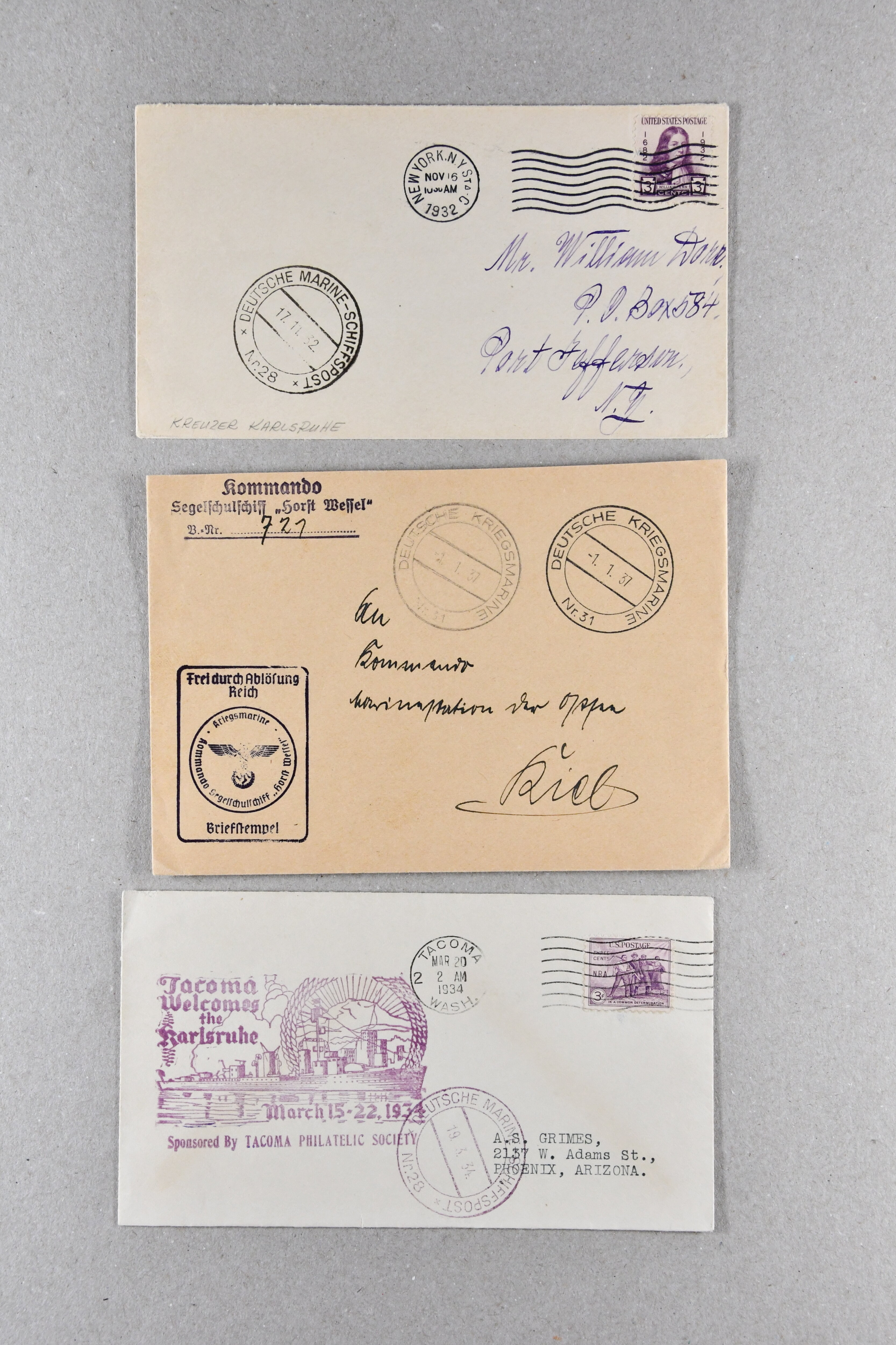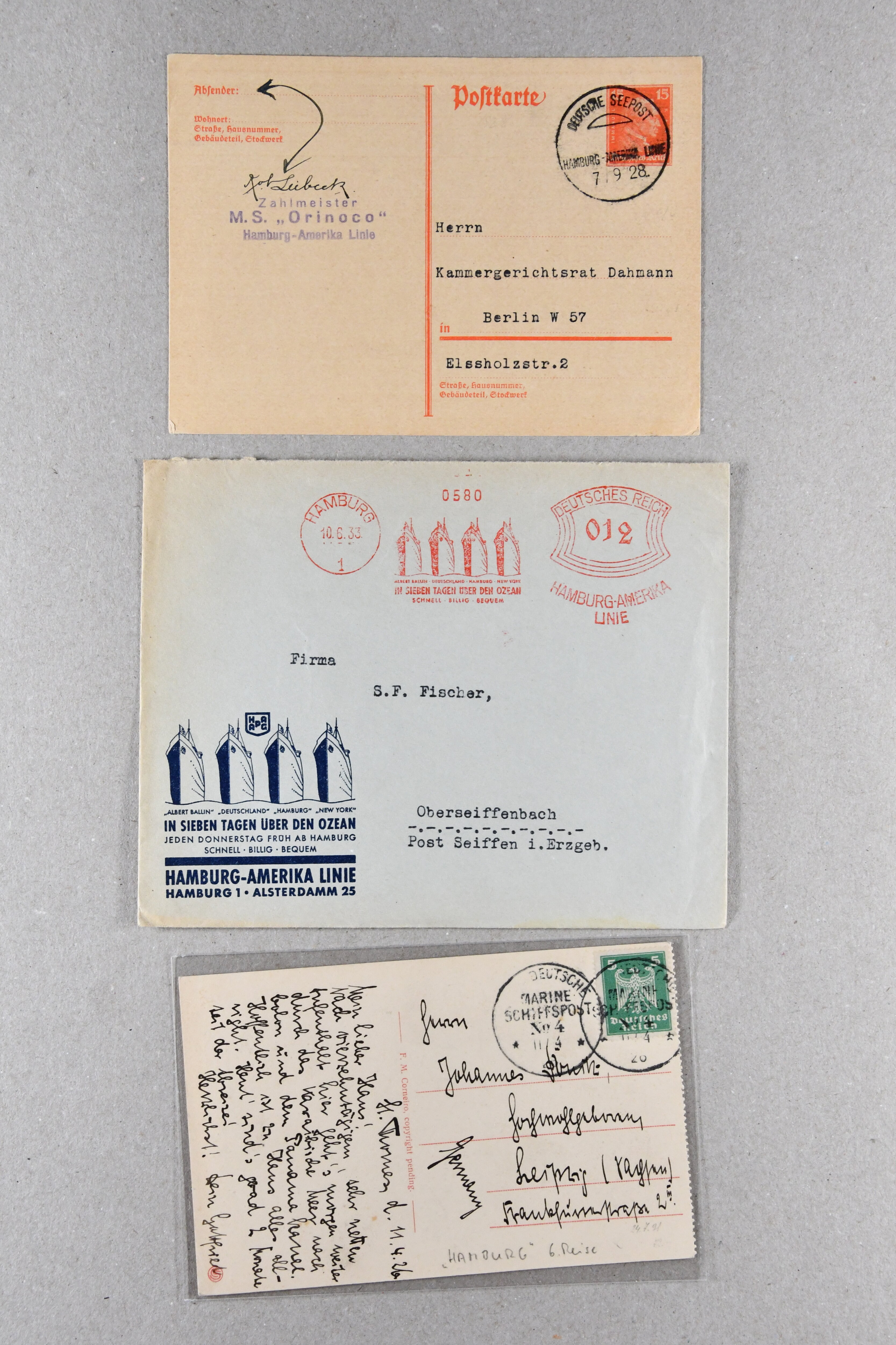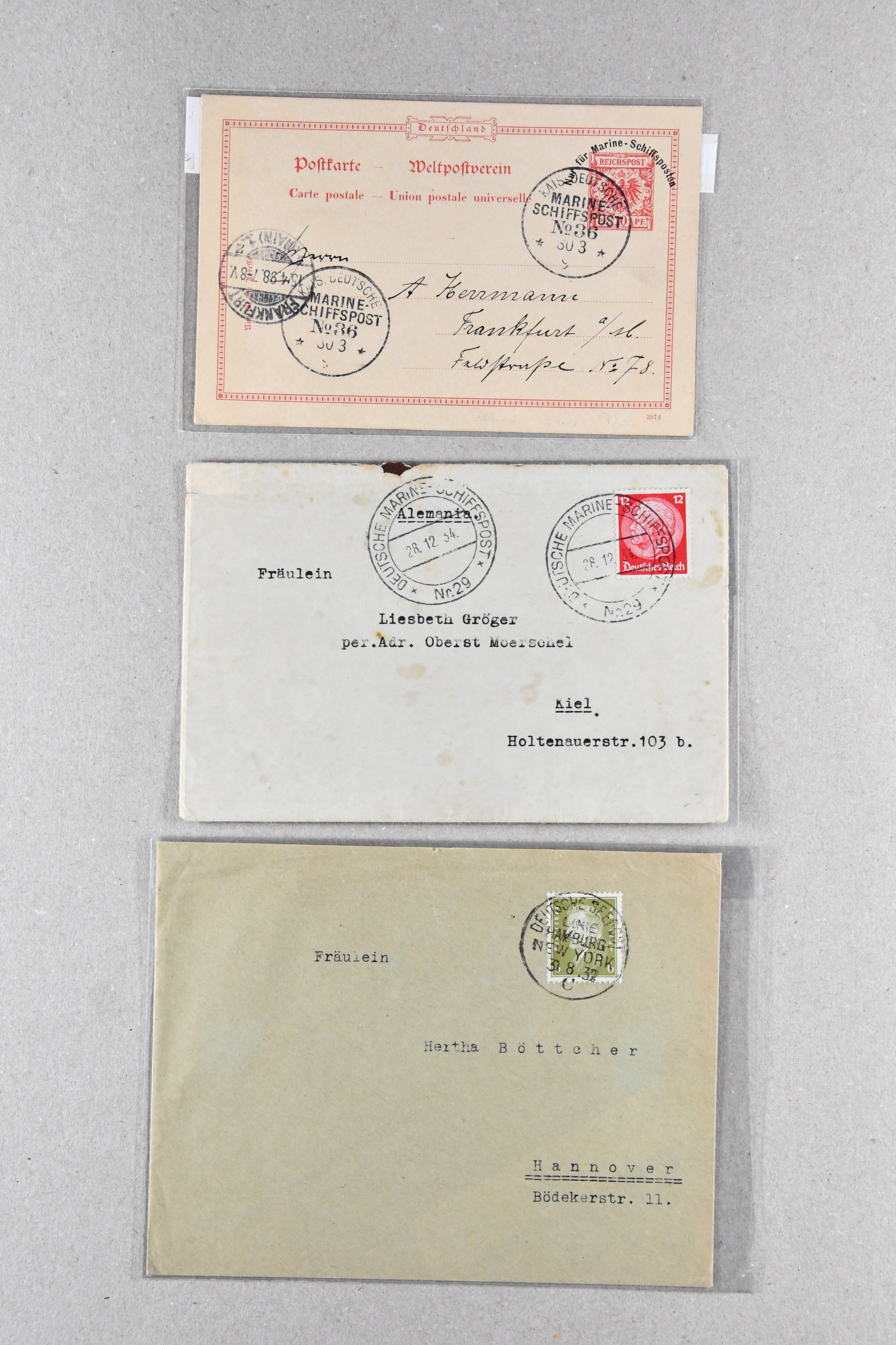 1706 cover image1893/1936ca: Vielfätiges Lot 25 vorab deutsche Schiffspostbelege, dabei 1898 MSP No. 36 ab Trinidad, 1905 Feldpostkarte aus DSWA Windhuk mit Vignette der Hohenzollern, 1926 Deutsche Seepost Bremen - La Plata, MSP ab Guam, Deutsch - Amerikanische Seepost 'Columbus', HAPAG, Deutsche Seepost Hamburg - New York, Hamburg - Amerika Linie, 1937 Segelschulschiff 'Horst Wessel', und 1934 'Tacoma welcomes the Karlsruhe' (Image 1) (Image 2) (Image 3) (Image 4) (Image 5) (Image 6) (Image 7) (Image 8) (Image 9) (Image 10)