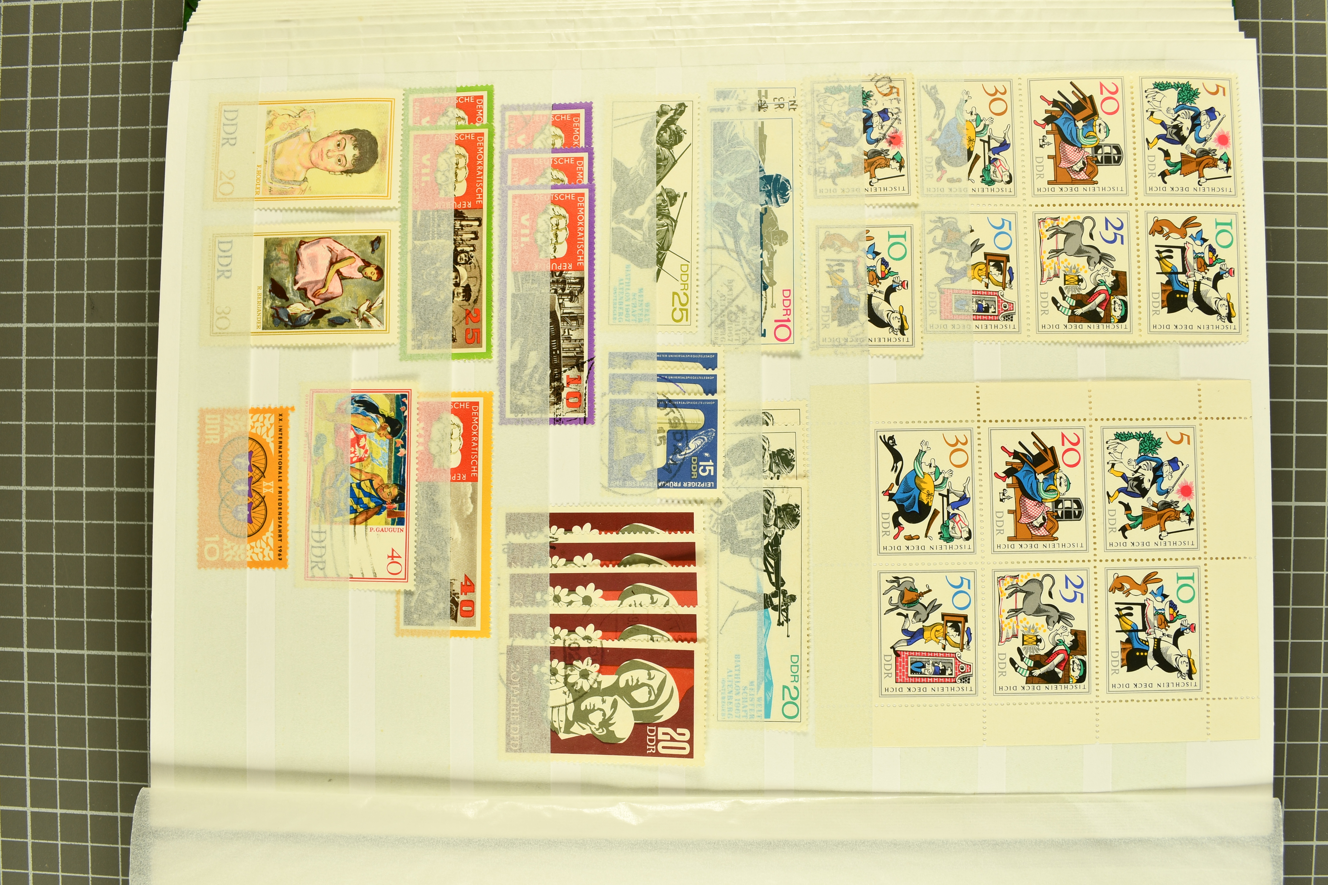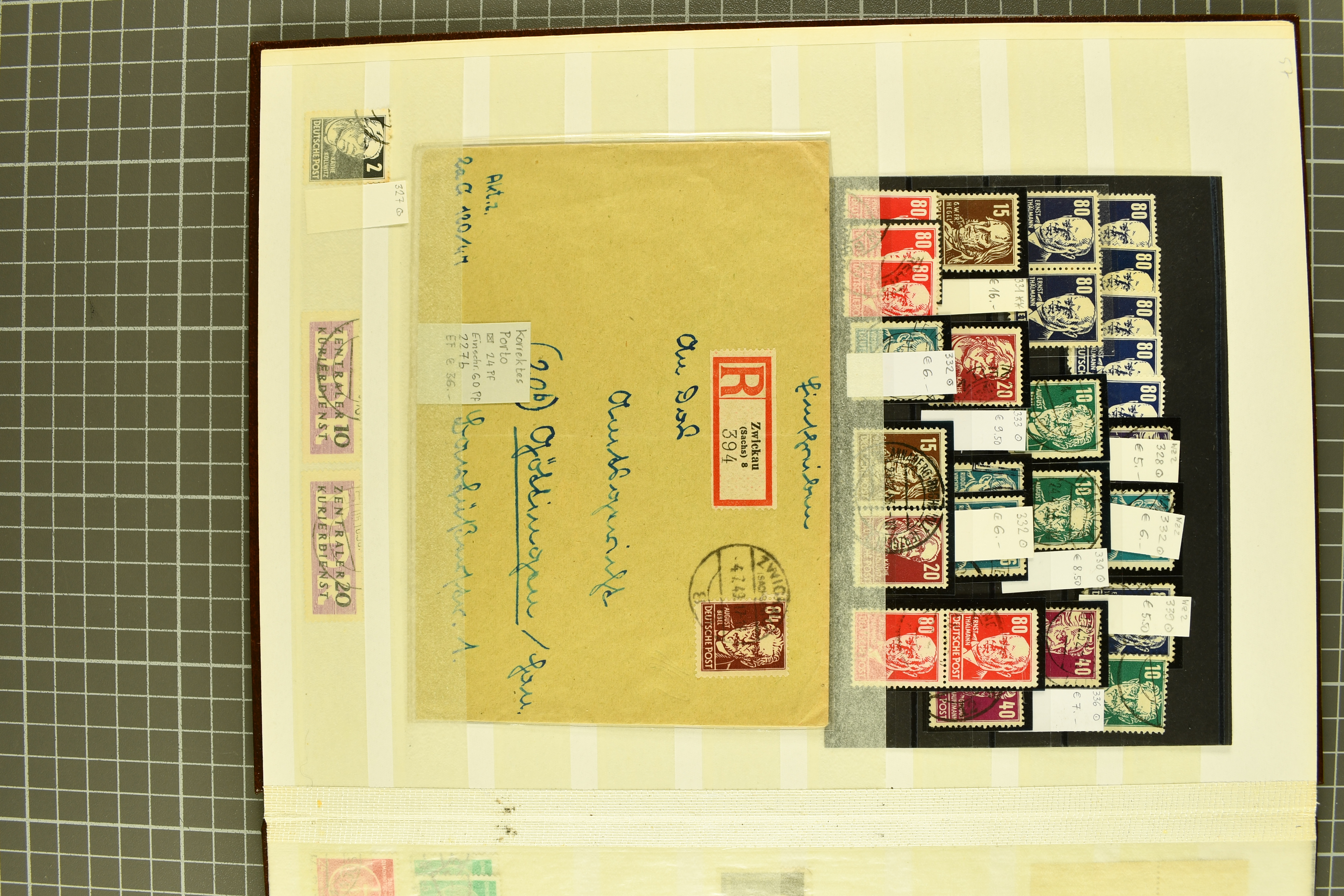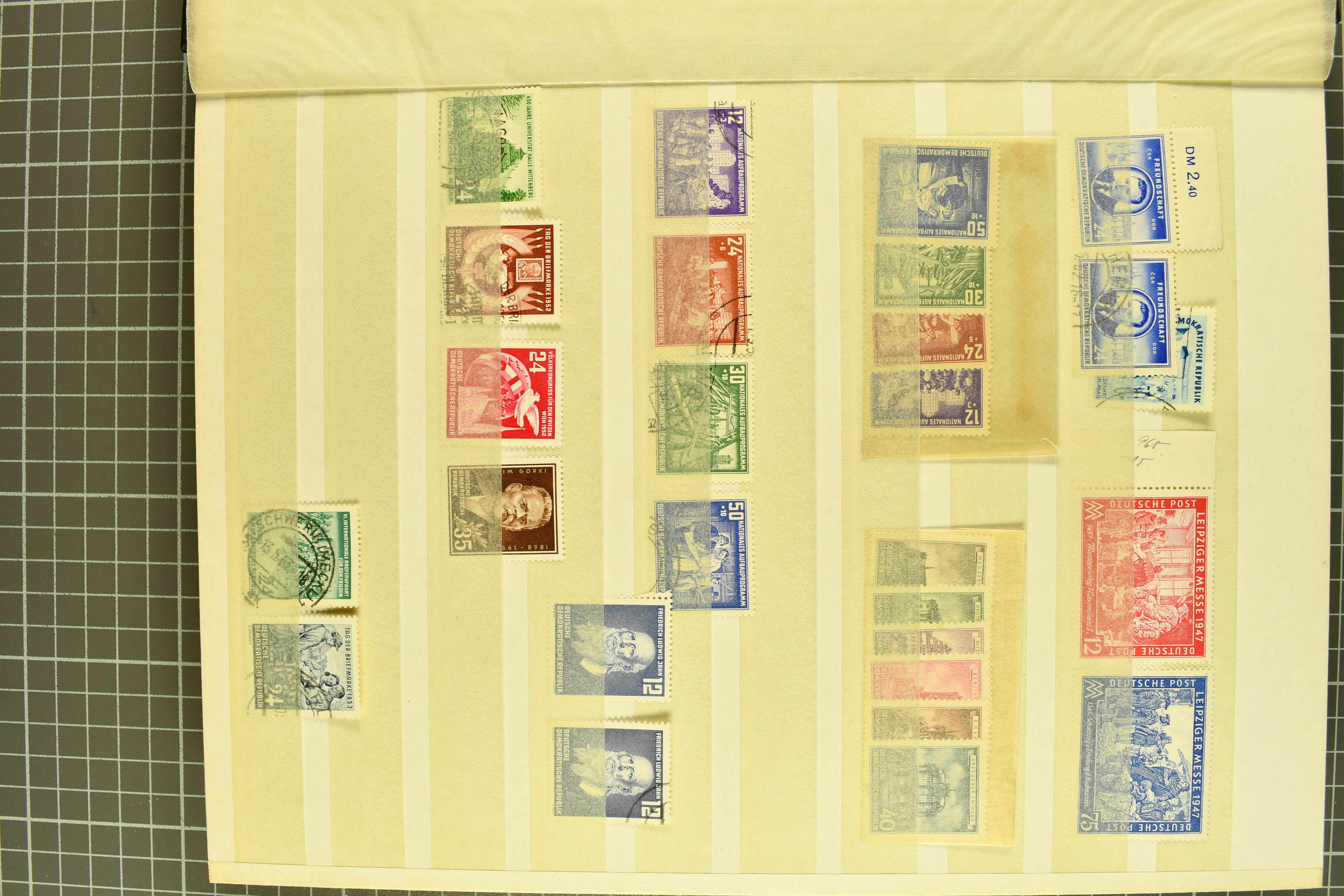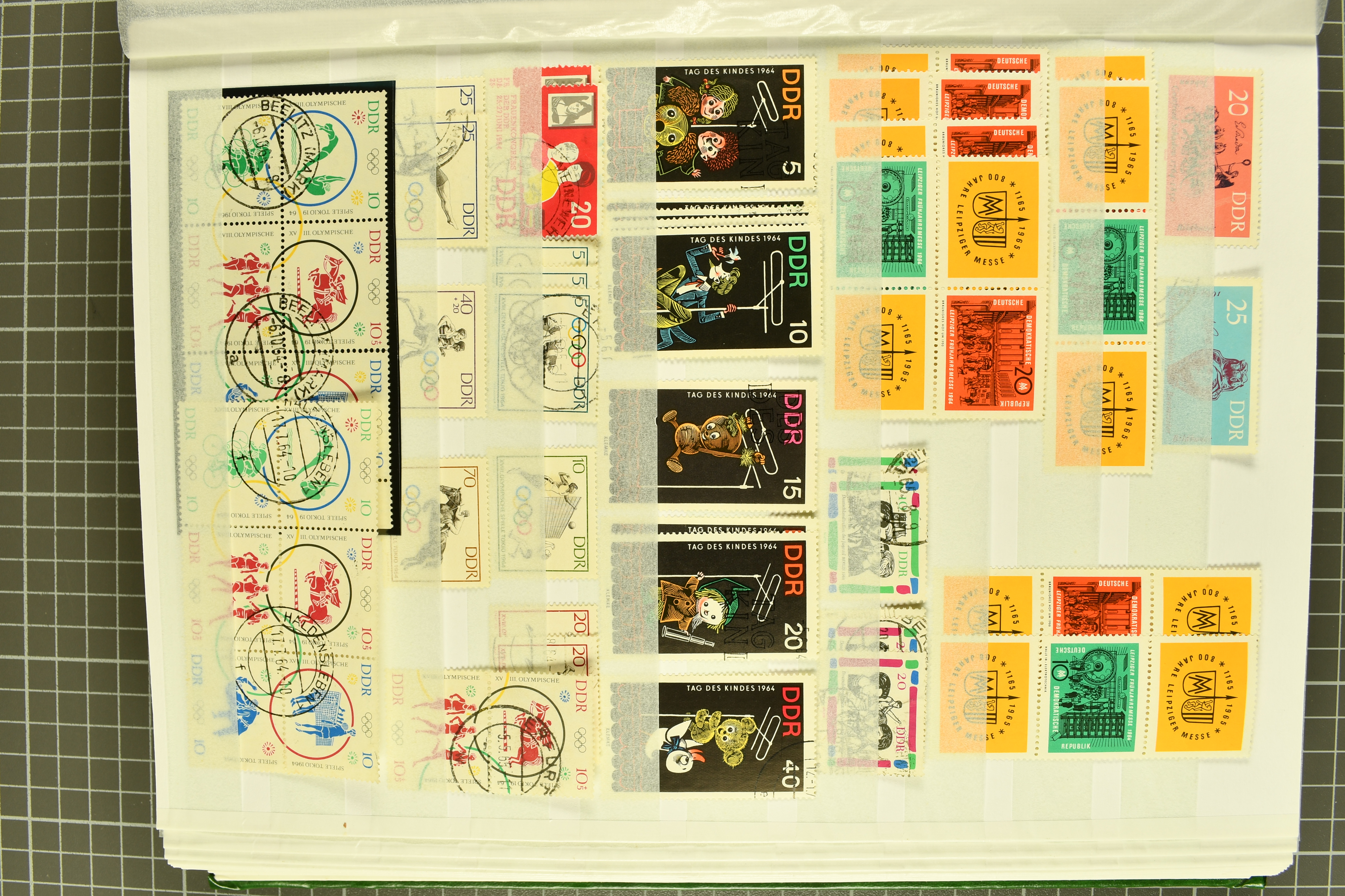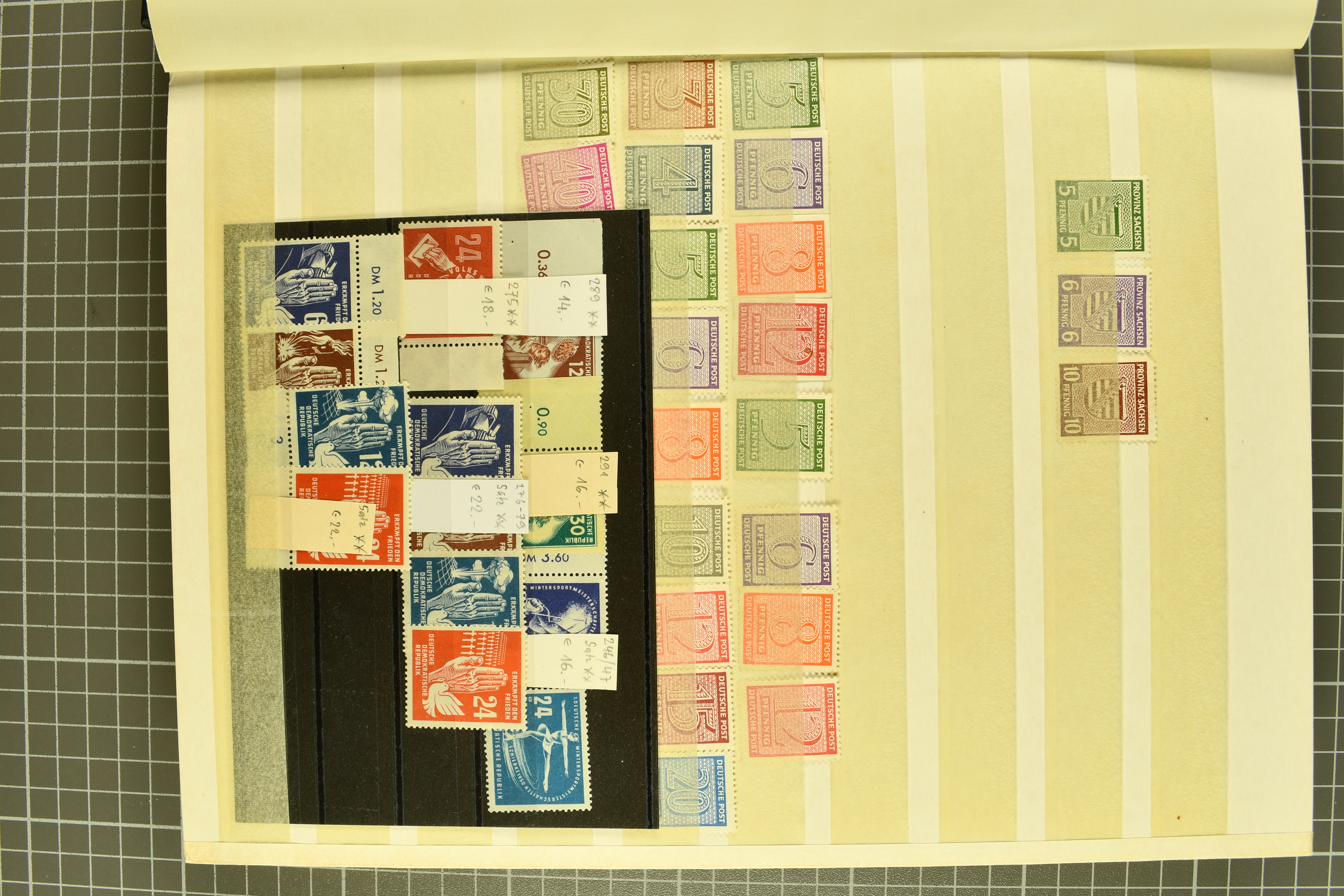 1822 imageDDR, 1945/89: Reichhaltiges Konvolut mit drei Einsteckbüchern, gebraucht und ungebraucht, lagermässig geordnet, dabei zahlreiche bessere Werte, u.a. Marx-Blocks. Weiterhin ein Einsteckalbum mit Ausgaben der Serie 'Köpfe', teils etwas spezialisiert; ein Bogenalbum mit vielen Dienstmarkenbogen sowie maschinengestempelten Bogen von der Versandstelle und einigen Zusammendruckbogen (teils mit hohem Katalogwert). Dazu eine Schachtel mit Steckkarten, Tüten und Briefen, vielfach mit besseren Ausgaben ab SBZ. Abgerundet durch ein Vordruckalbum mit den Ausgaben 1984–87 komplett. Insgesamt sehr gehaltvolle Fundgrube mit hohem Katalogwert (Image 1) (Image 2) (Image 3) (Image 4) (Image 5) (Image 6) (Image 7) (Image 8) (Image 9) (Image 10) (Image 11) (Image 12) (Image 13) (Image 14) (Image 15) (Image 16) (Image 17) (Image 18) (Image 19) (Image 20) (Image 21) (Image 22) (Image 23) (Image 24) (Image 25) (Image 26) (Image 27) (Image 28) (Image 29) (Image 30) (Image 31) (Image 32) (Image 33) (Image 34) (Image 35) (Image 36) (Image 37) (Image 38) (Image 39) (Image 40) (Image 41) (Image 42) (Image 43) (Image 44) (Image 45) (Image 46) (Image 47)