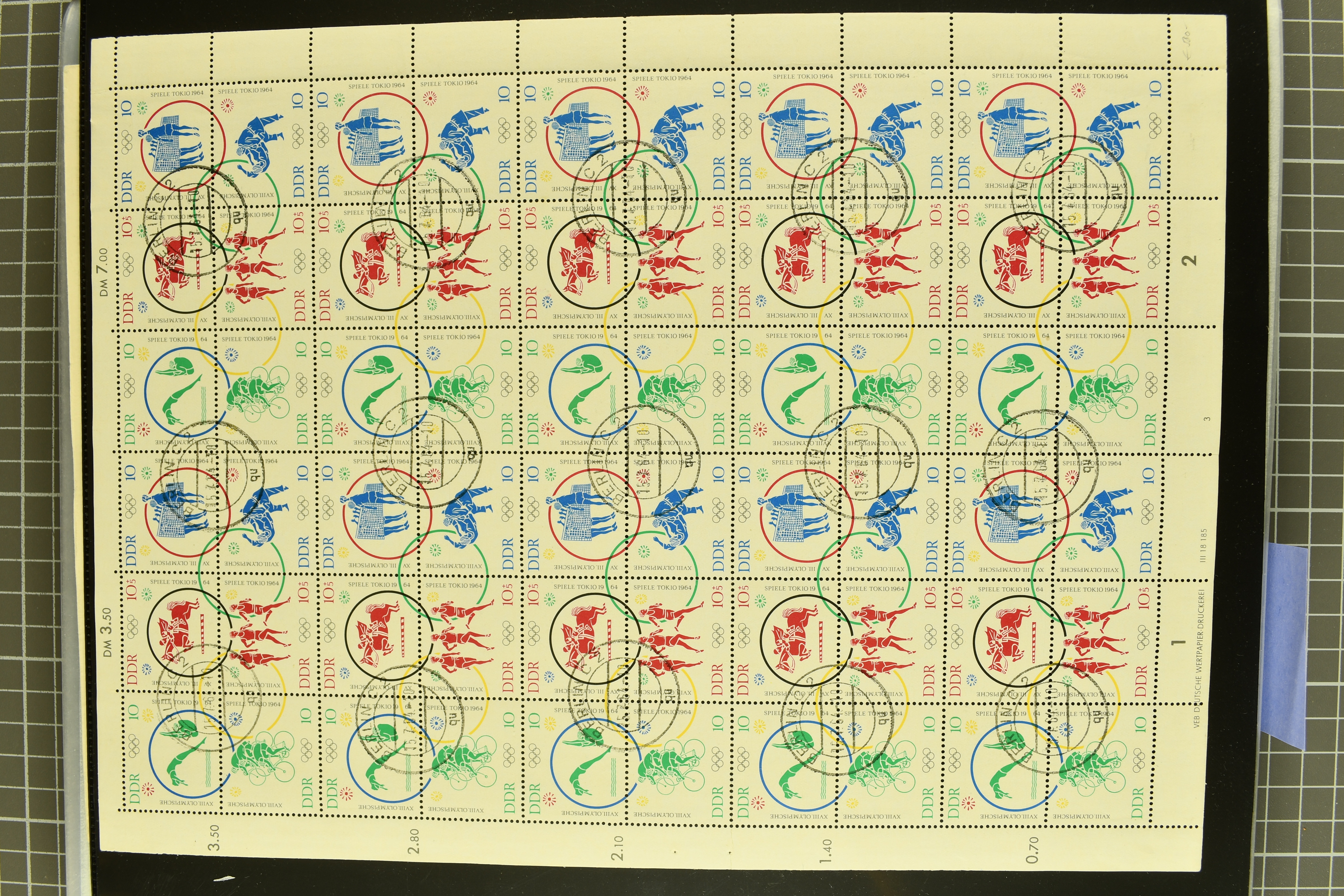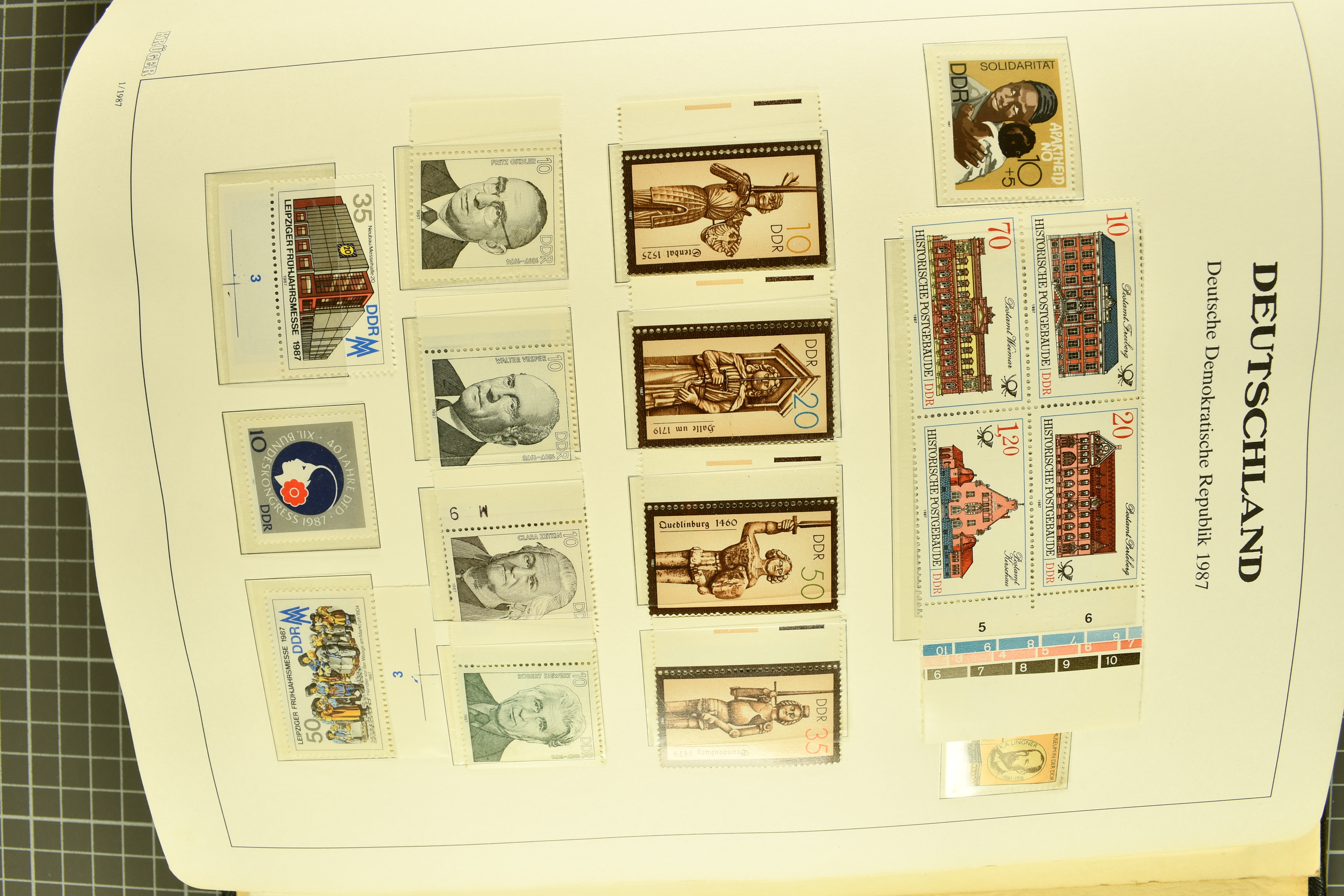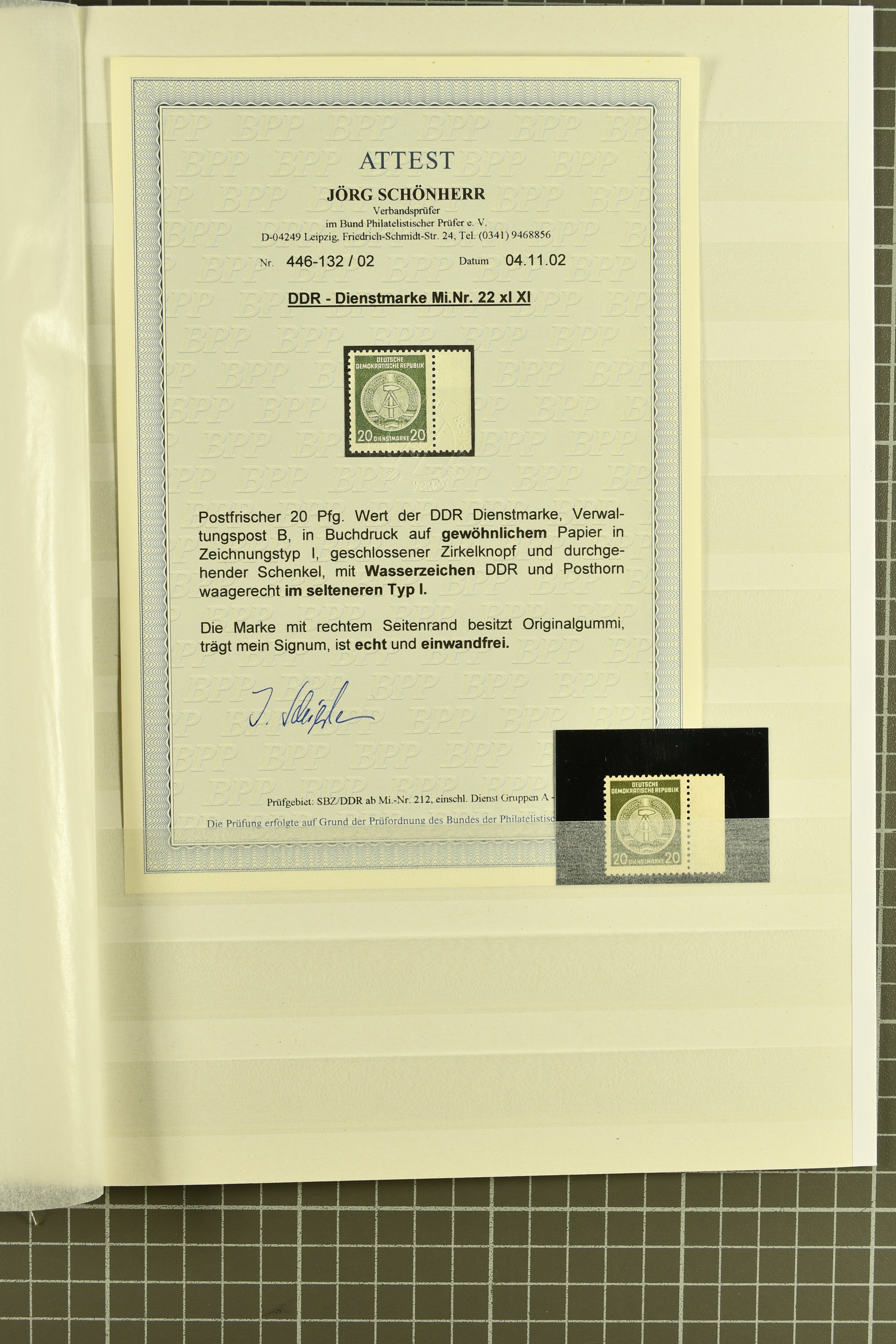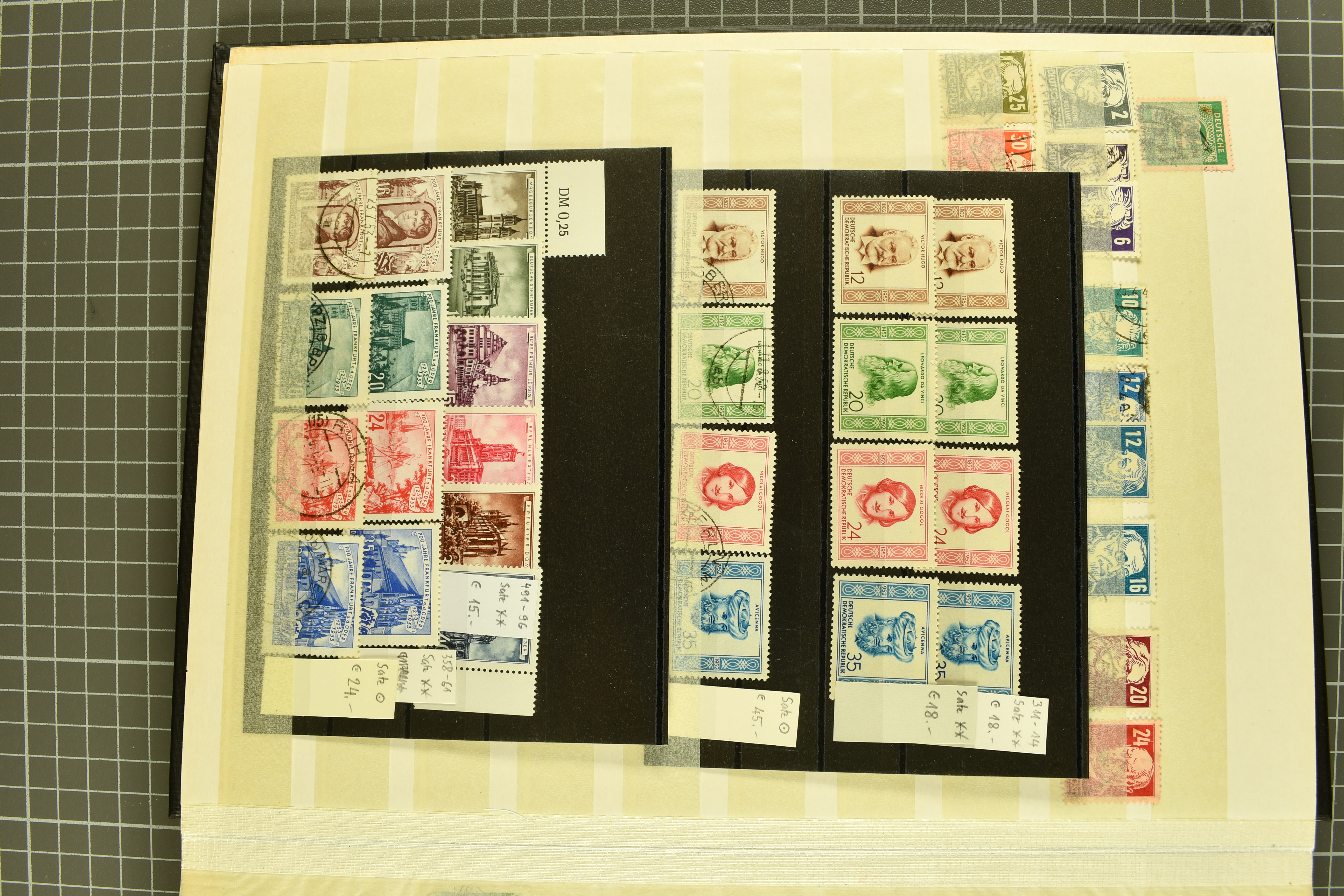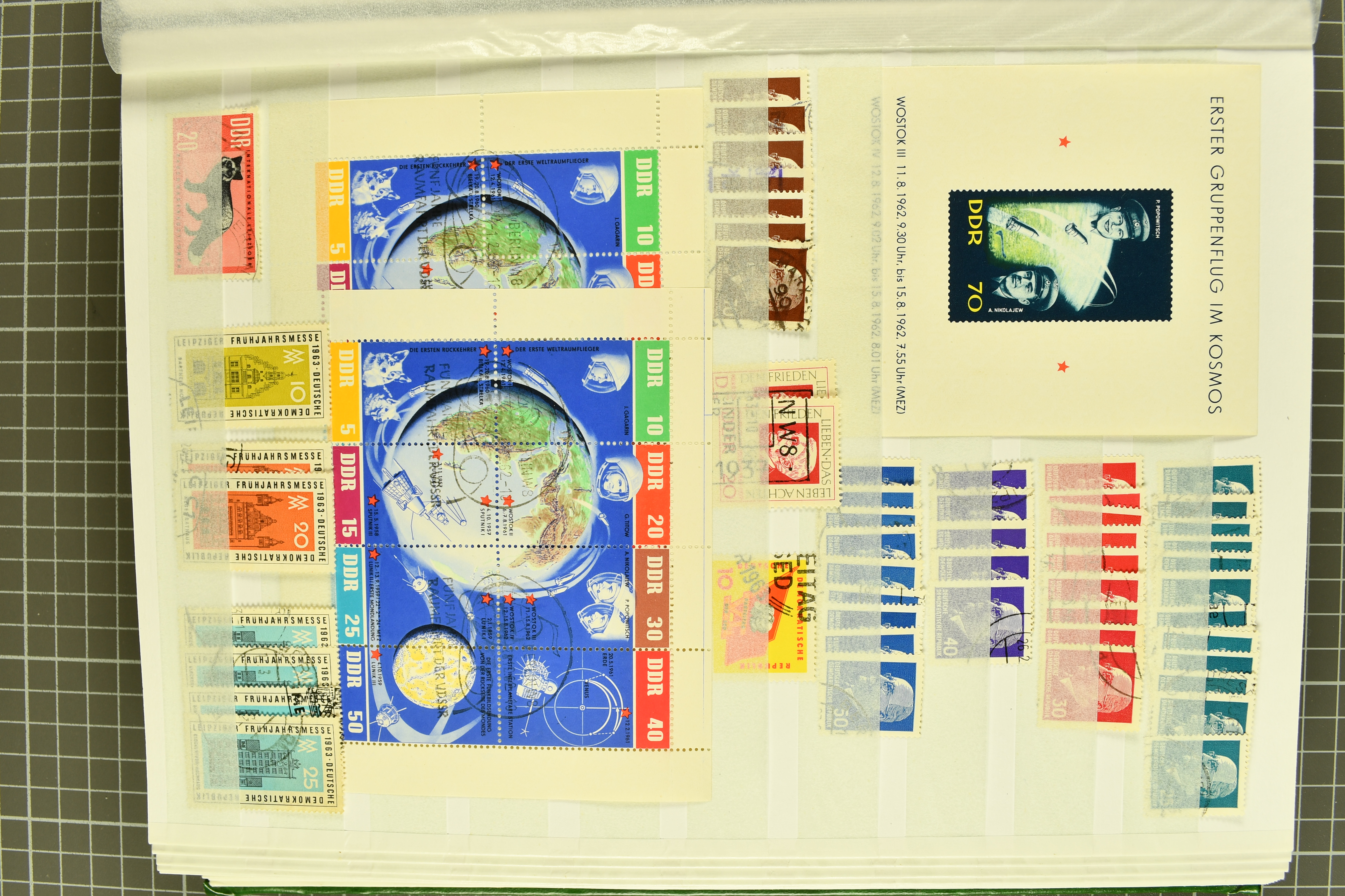 1822 imageDDR, 1945/89: Reichhaltiges Konvolut mit drei Einsteckbüchern, gebraucht und ungebraucht, lagermässig geordnet, dabei zahlreiche bessere Werte, u.a. Marx-Blocks. Weiterhin ein Einsteckalbum mit Ausgaben der Serie 'Köpfe', teils etwas spezialisiert; ein Bogenalbum mit vielen Dienstmarkenbogen sowie maschinengestempelten Bogen von der Versandstelle und einigen Zusammendruckbogen (teils mit hohem Katalogwert). Dazu eine Schachtel mit Steckkarten, Tüten und Briefen, vielfach mit besseren Ausgaben ab SBZ. Abgerundet durch ein Vordruckalbum mit den Ausgaben 1984–87 komplett. Insgesamt sehr gehaltvolle Fundgrube mit hohem Katalogwert (Image 1) (Image 2) (Image 3) (Image 4) (Image 5) (Image 6) (Image 7) (Image 8) (Image 9) (Image 10) (Image 11) (Image 12) (Image 13) (Image 14) (Image 15) (Image 16) (Image 17) (Image 18) (Image 19) (Image 20) (Image 21) (Image 22) (Image 23) (Image 24) (Image 25) (Image 26) (Image 27) (Image 28) (Image 29) (Image 30) (Image 31) (Image 32) (Image 33) (Image 34) (Image 35) (Image 36) (Image 37) (Image 38) (Image 39) (Image 40) (Image 41) (Image 42) (Image 43) (Image 44) (Image 45) (Image 46) (Image 47)