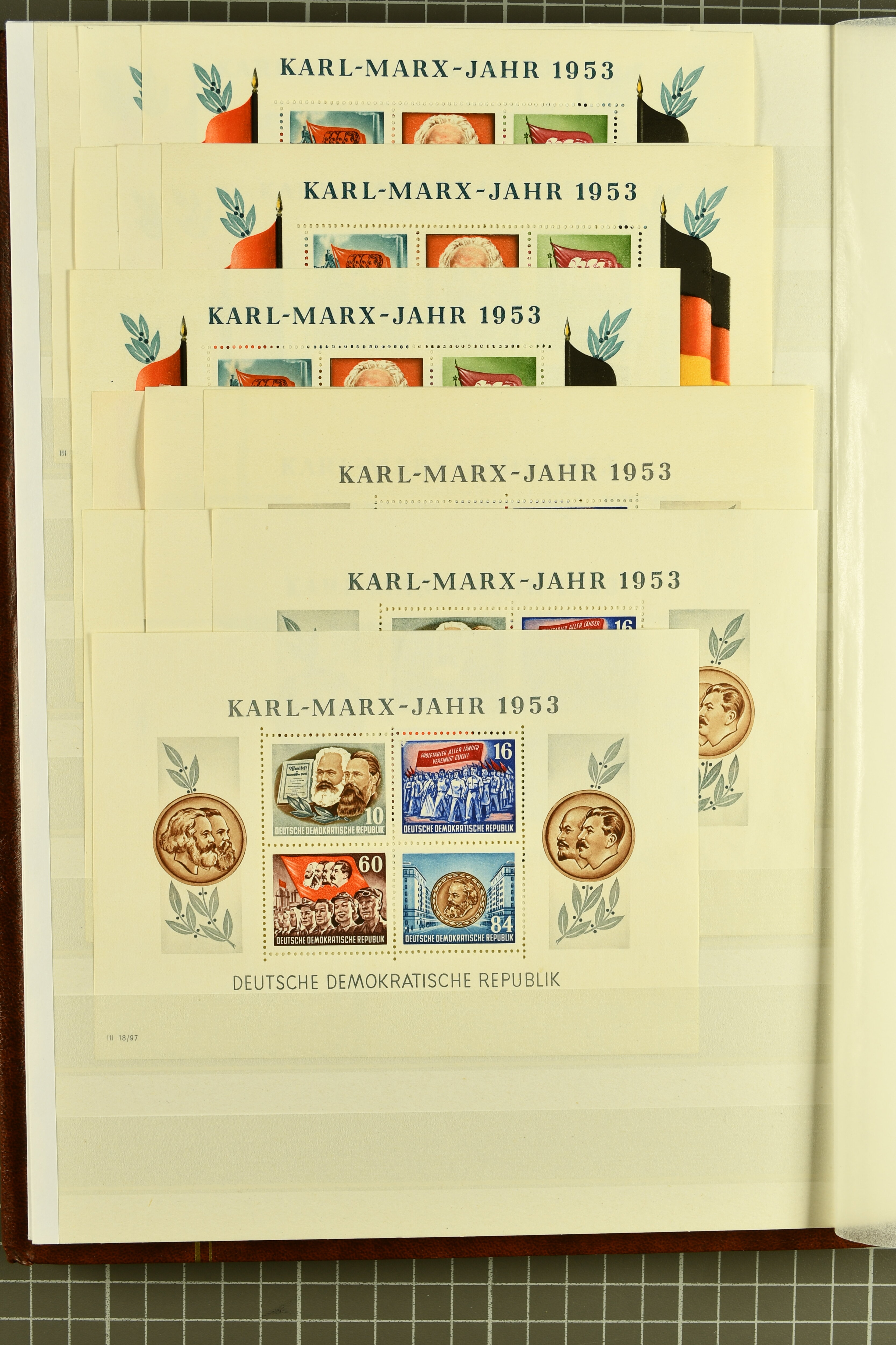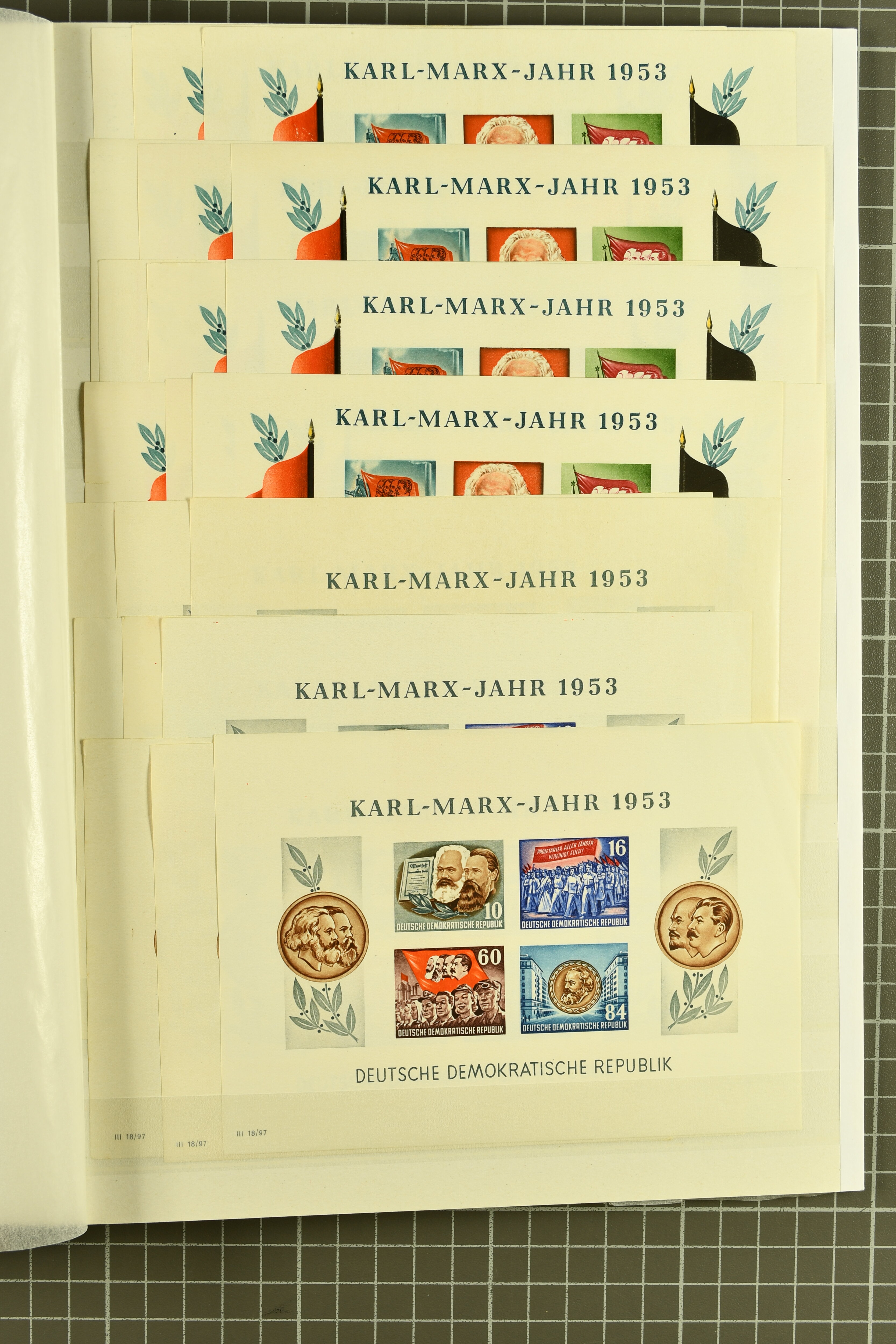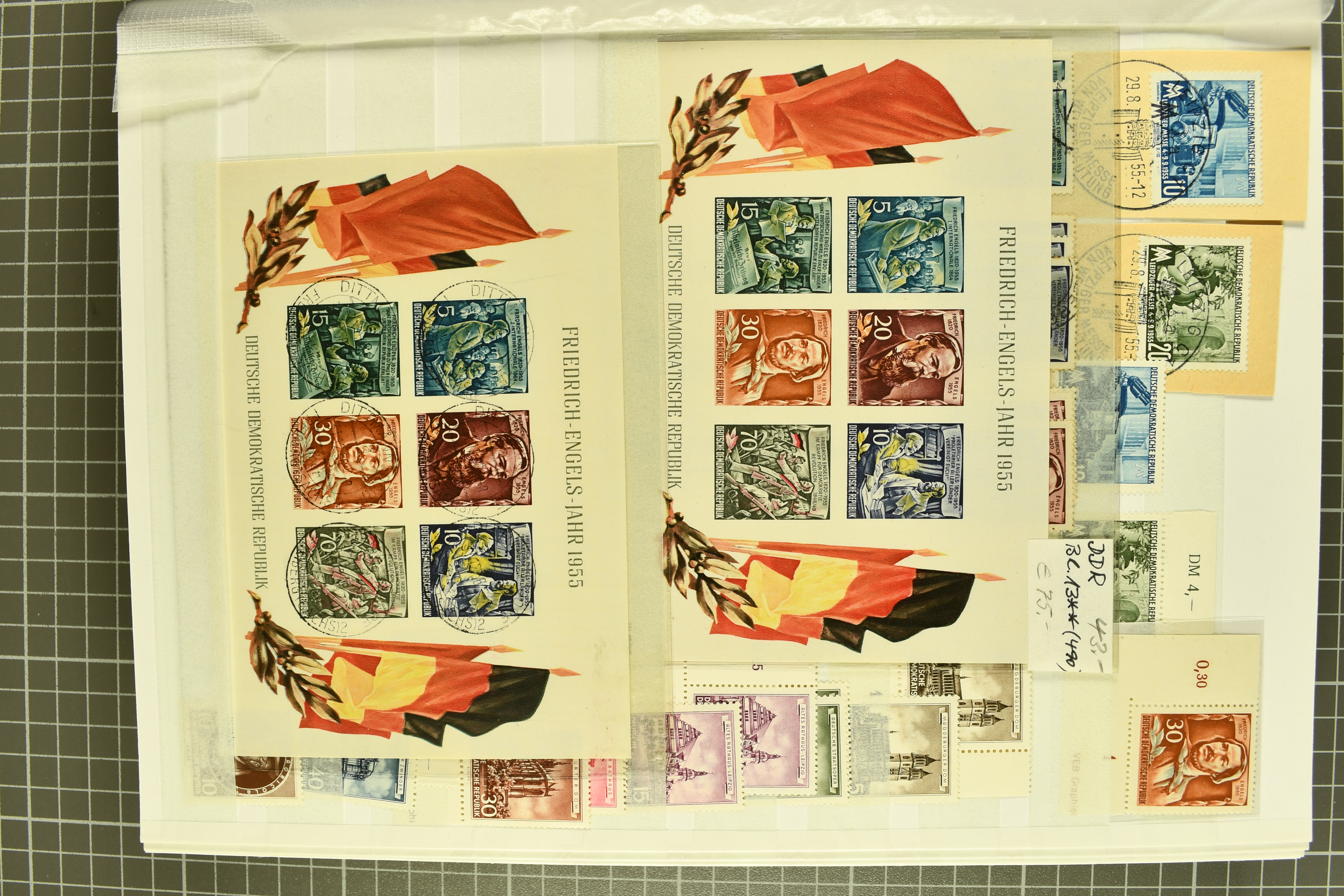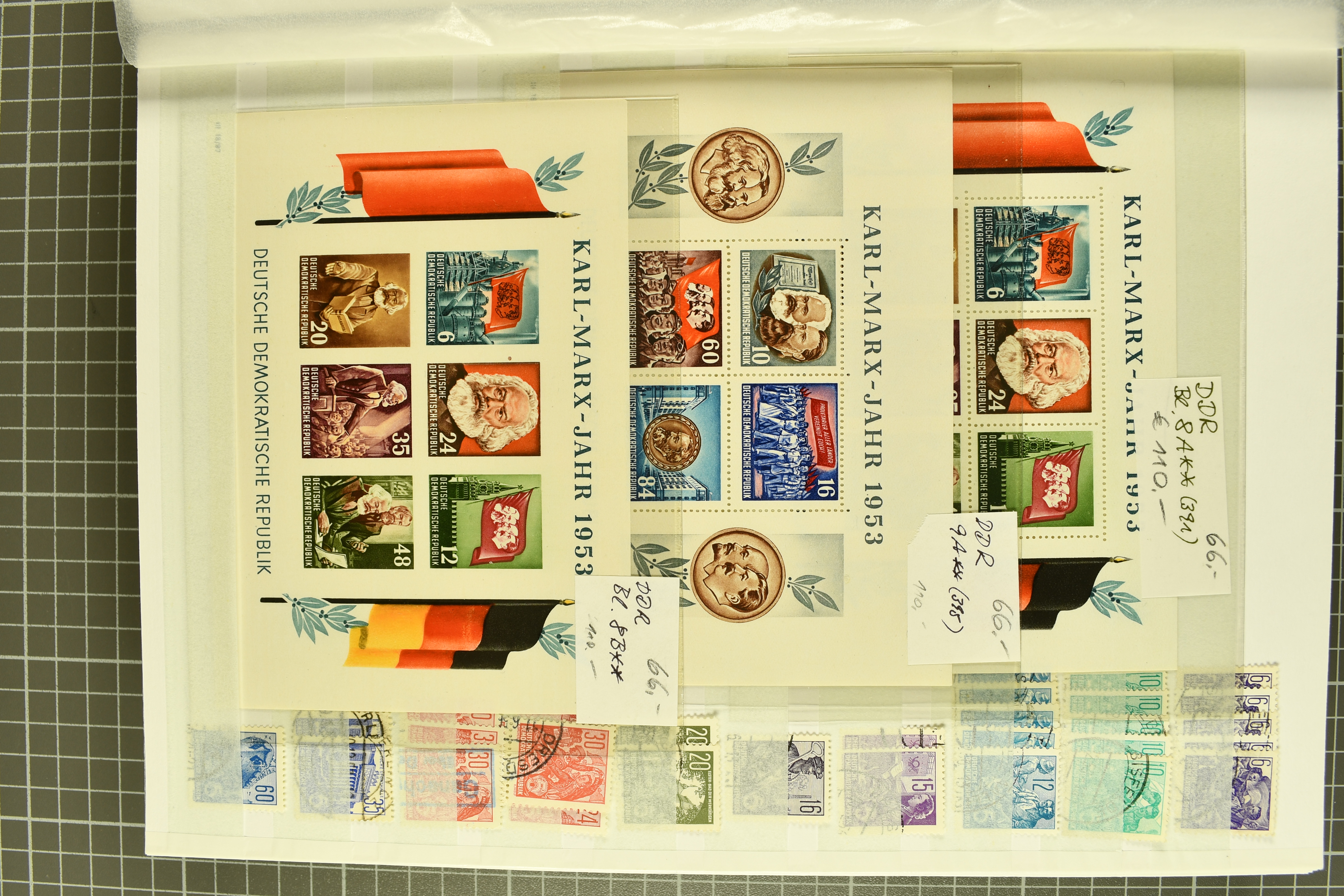 1823 image1950/80ca: Auswahl bessere Ausgaben, auch in Blockform, bessere Werte auch mehrfach, meist in ungebrauchter Erhaltung, nur wenig gestempelt, dabei DEBRIA-Block (9 ungebraucht + Brief), Deutsch-chinesische Freundschaft (4 ungebraucht, 5 gestempelt), Marx-Blöcke gez. (3 ungebraucht & 2 gestempelt) und ungezähnt (9 ungebraucht & 1 gestempelt) sowie Engels-Block (6 ungebraucht). Mi = € 13'500 n. A. des Einlieferers (Image 1) (Image 2) (Image 3) (Image 4) (Image 5) (Image 6) (Image 7) (Image 8) (Image 9) (Image 10) (Image 11) (Image 12) (Image 13) (Image 14) (Image 15) (Image 16) (Image 17) (Image 18) (Image 19) (Image 20)
