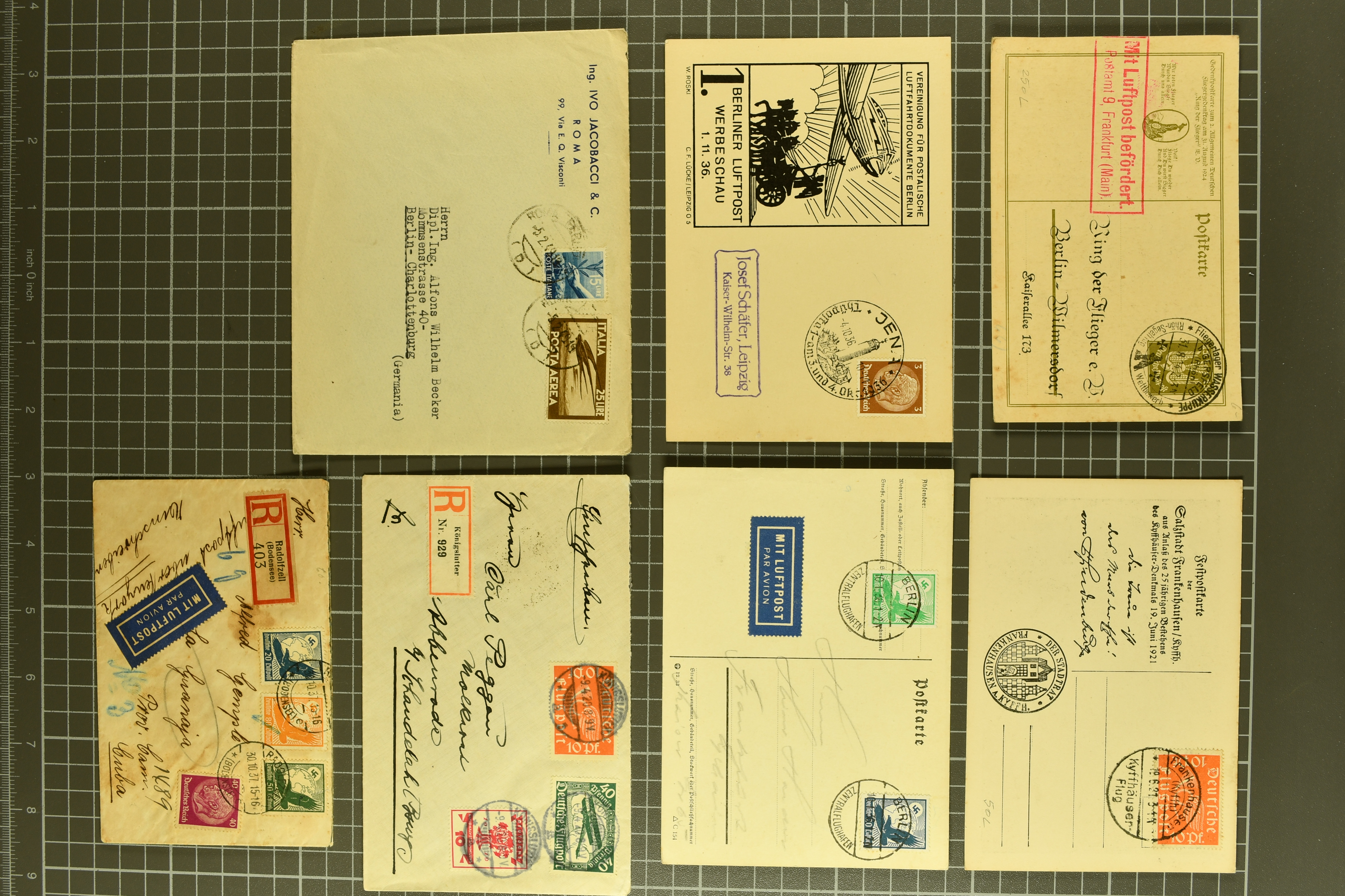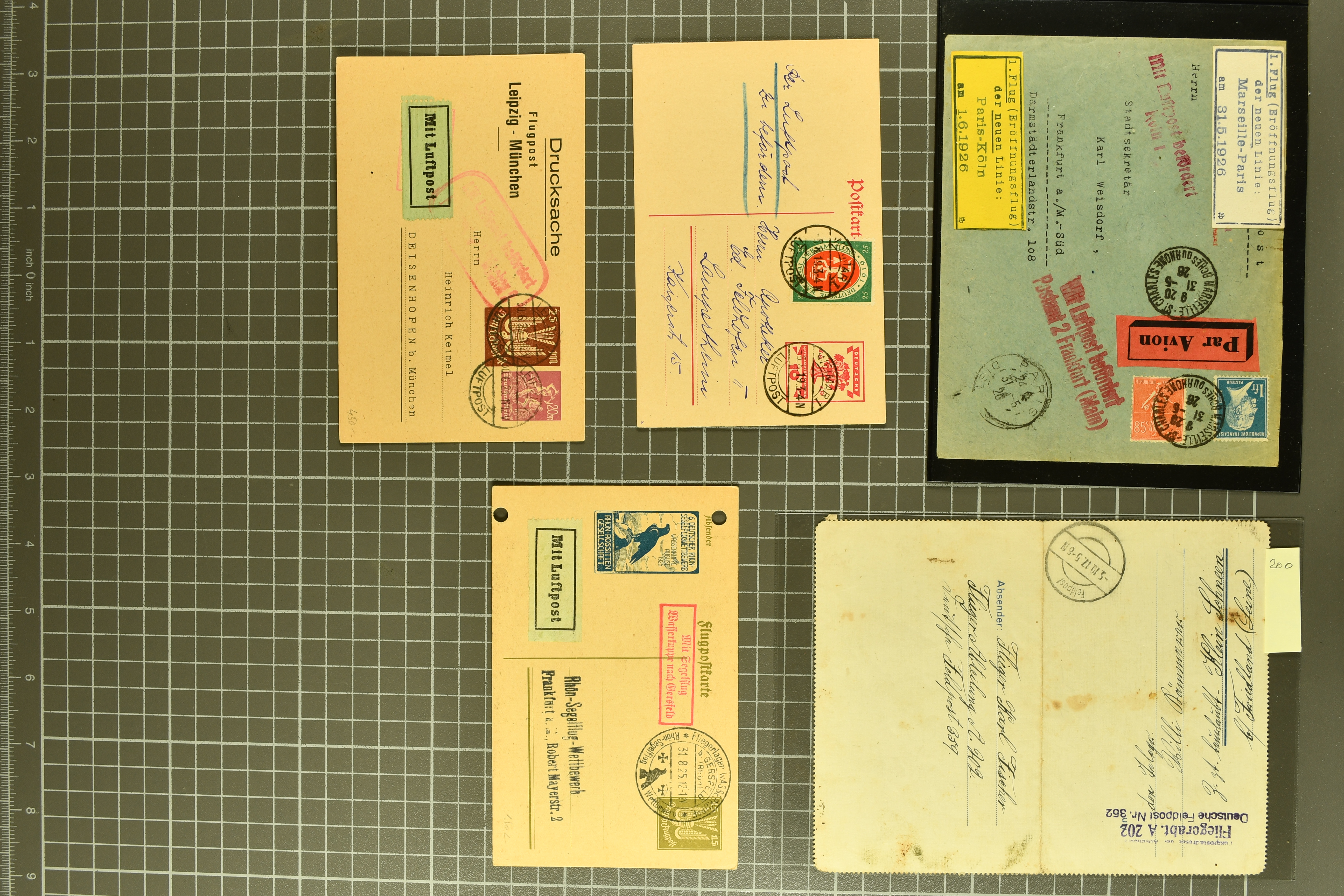 1712 cover image1917/39: Los 18 Luftpostbriefe/Karten von verschiedenen Erst- und Sonderflügen, einschliesslich 1926 Erstflug Marseille-Paris-Köln (31. 5./1. 6.), eingeschriebener Brief von München (14. 6. 23) freigemacht mit Luftpost 180 RM nach Berlin sowie Feldpostkarte (5. 10. 17) gestempelt "Fliegerabt. A202/Deutsche Feldpost Nr. 352" (Image 1) (Image 2) (Image 3)