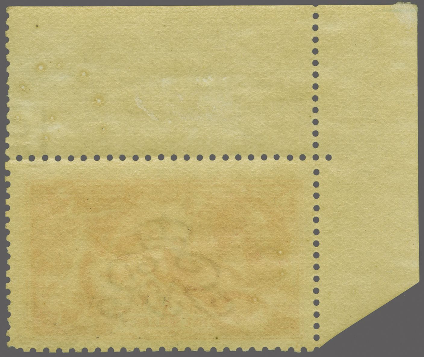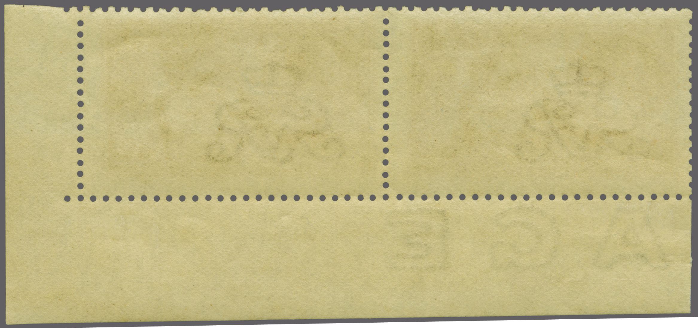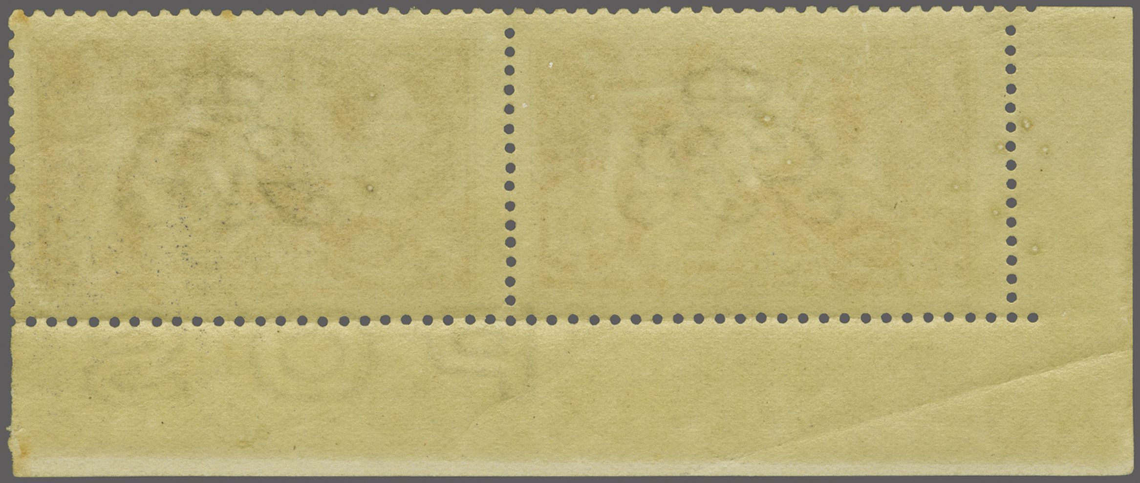 1918/19: Bradbury Wilkinson Seahorse 2 s. 6 d. reddish-brown, an unused horizontal pair, marginal from the lower right corner of the sheet, fine shade, typical minor gum wrinkles on unmounted og. Gi = £ 650+ (Image 1)