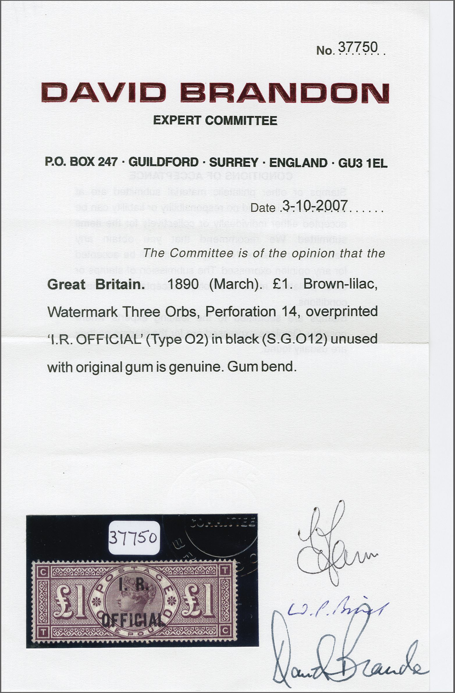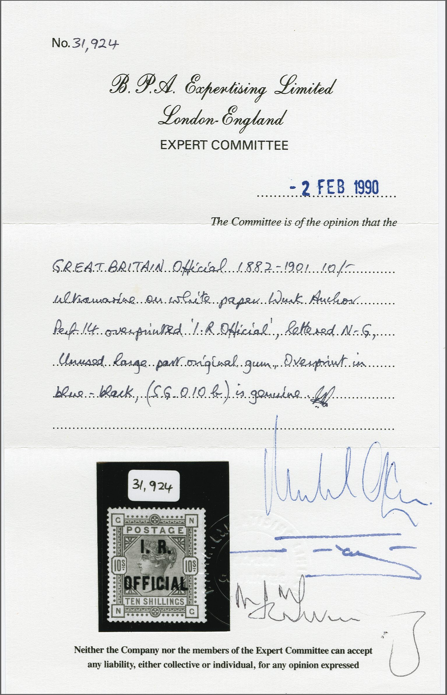 Get Market Data for [Great Britain O10b] Visual Pricing Guide Sample Census