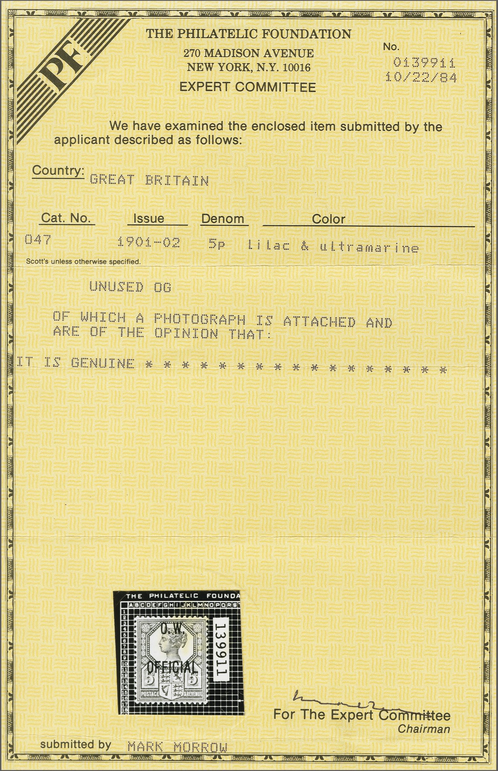 Get Market Data for [Great Britain O52+O49] Visual Pricing Guide Sample Census