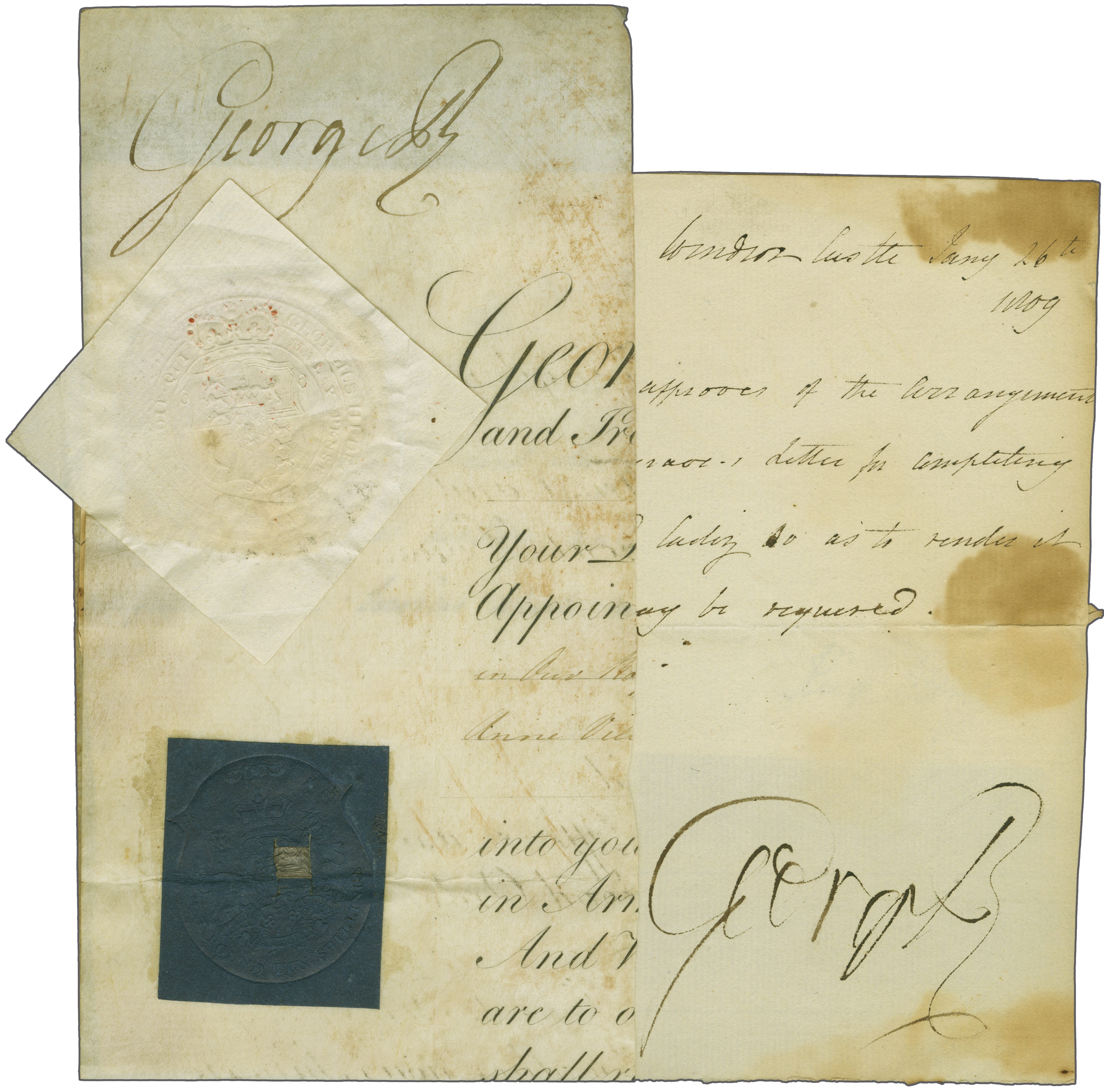 embossed crest, clearly and more boldly signed "George" and thus probably signed some years earlier. George IV was appointed Regent on behalf of his father in 1811 due to the decline of the King's health through Porphyria (Image 1)
