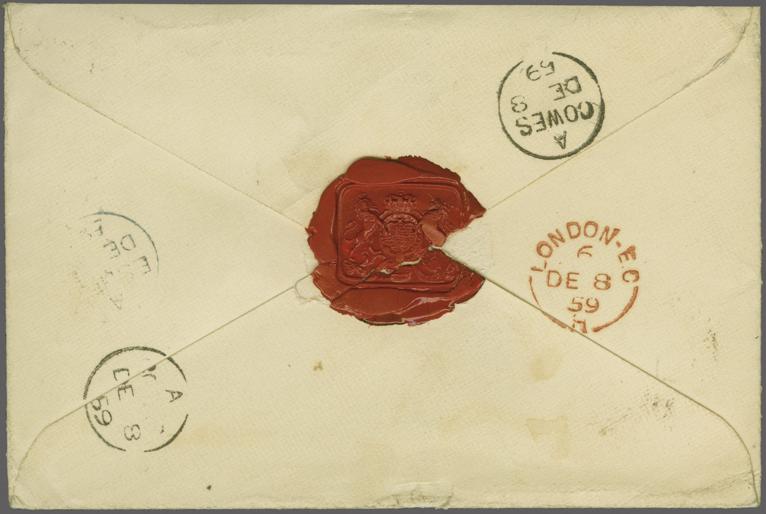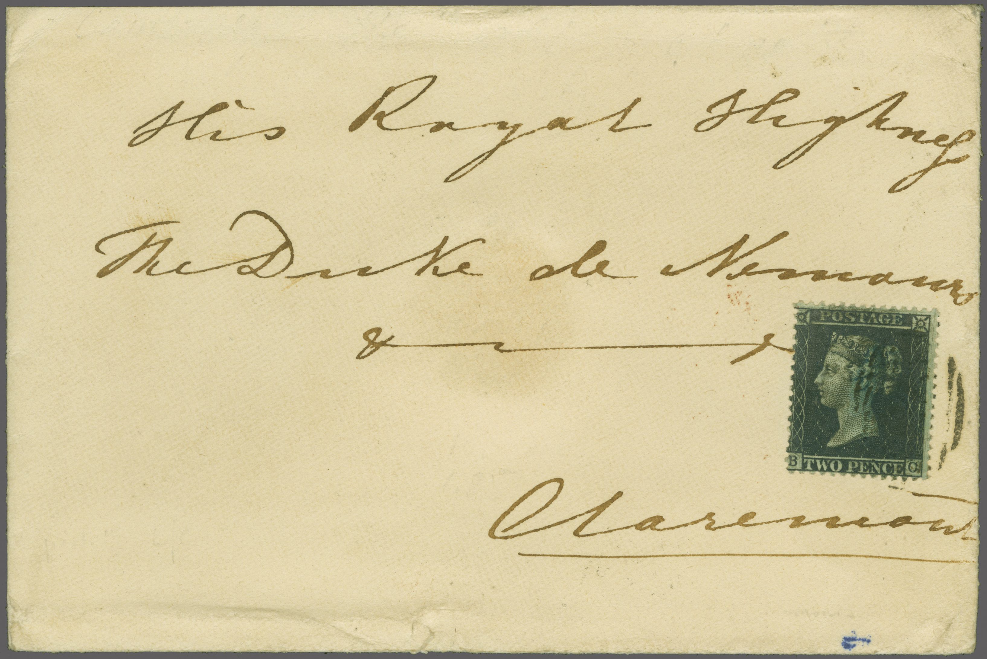 Prince Albert 1857: 2 d. blue, plate 6, perf. 14, a used example on 1859 cover written from Osborne House and addressed in the hand of H.R.H. Prince Albert to "His Royal Highness, the Duke de Nemours, Claremont" tied by Cowes
