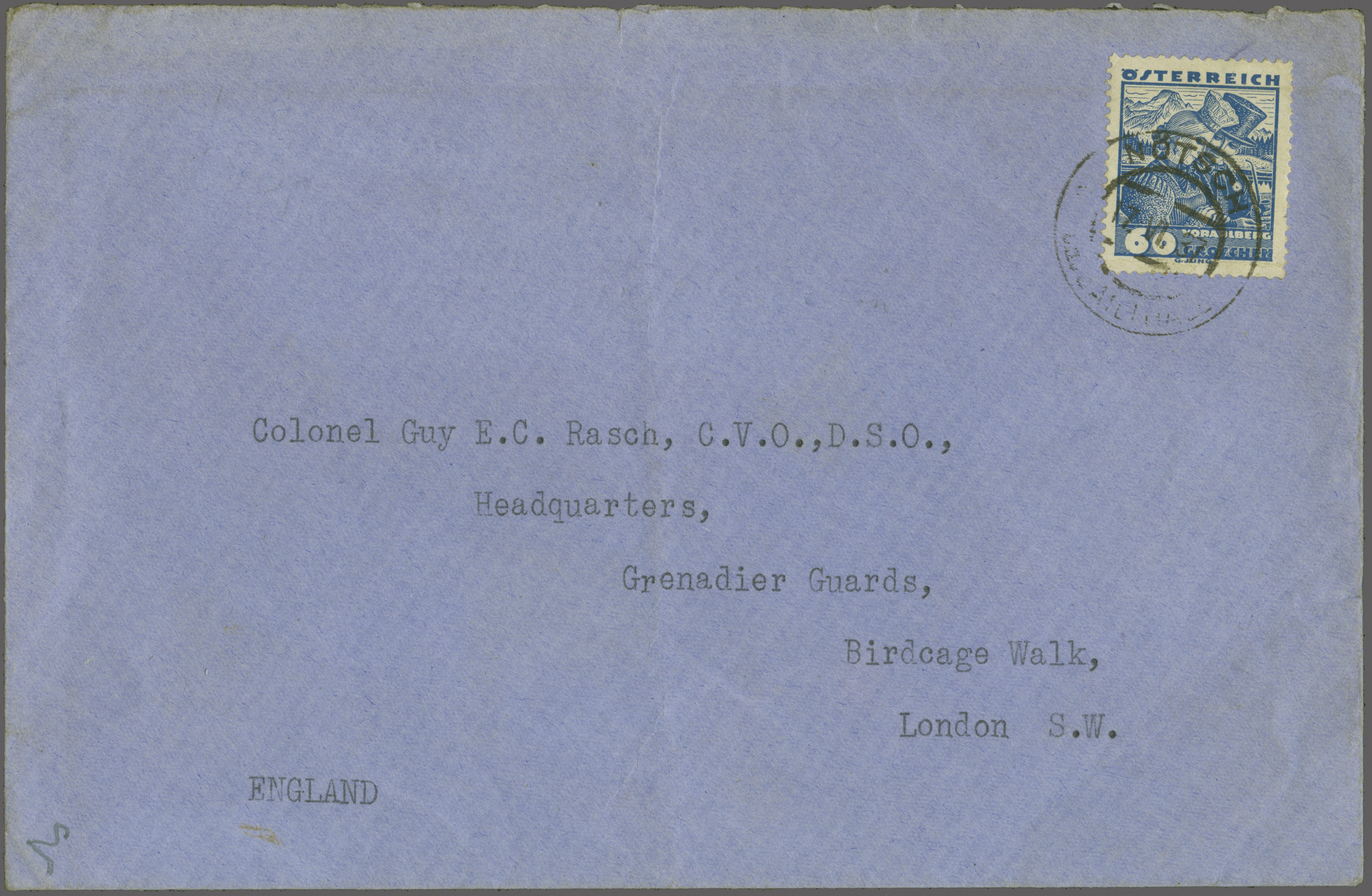 King Edward VIII 1937 (June 17): Envelope from King Edward VIII mailed after his abdication, franked by Austria 60 gr. blue tied by "Nöstsch / Im Galital" datestamp and addressed to Colonel Guy E.C. Rasch CVO, DSO; at the HQ