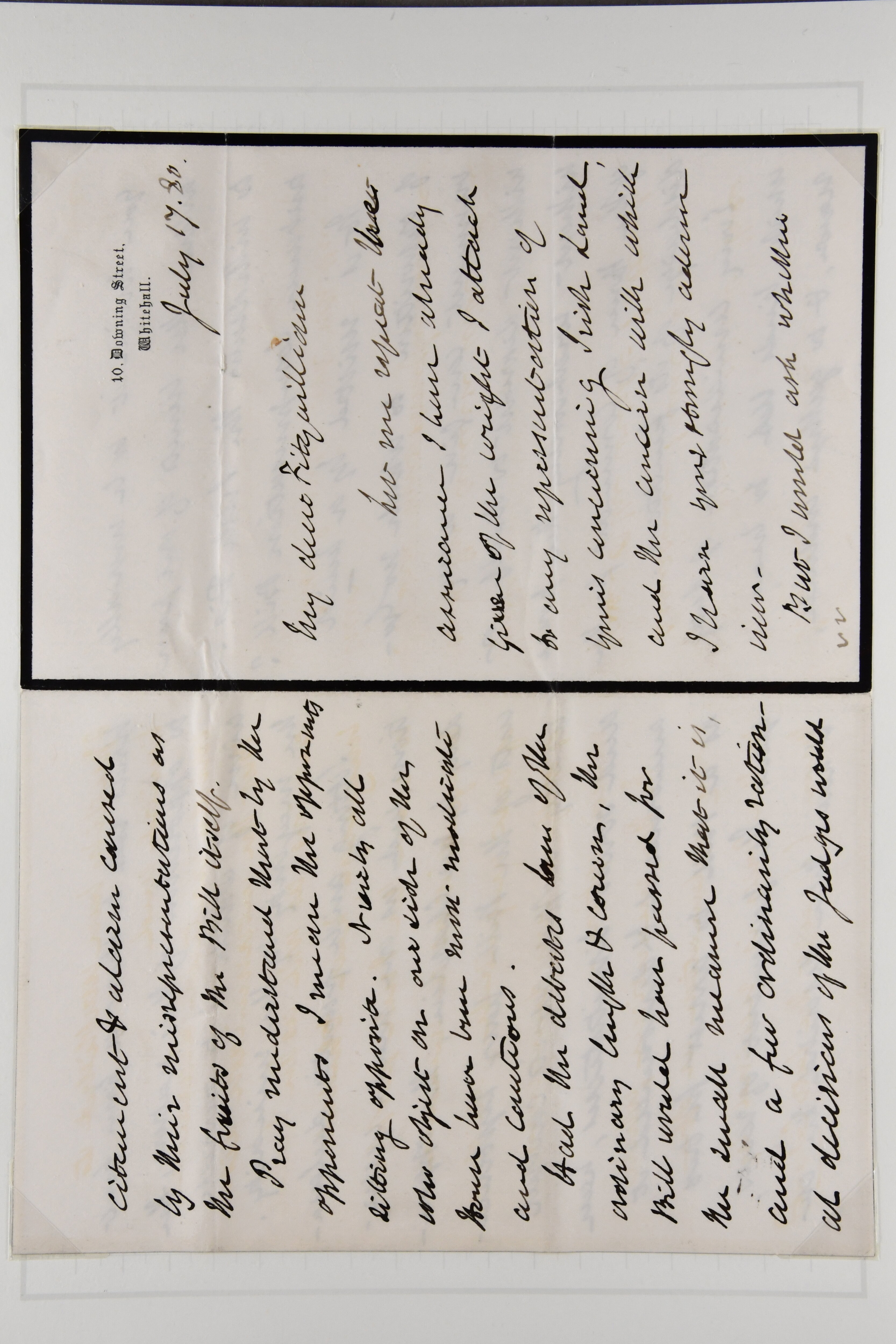 Earl Fitzwilliam in Grosvenor Square, 17 July 1880 signed on envelope from 10 Downing Street by Prime Minister with long contents relating to the Irish Land Act and signed again at base of letter; together with 1882 cover to the MP for Cambridge