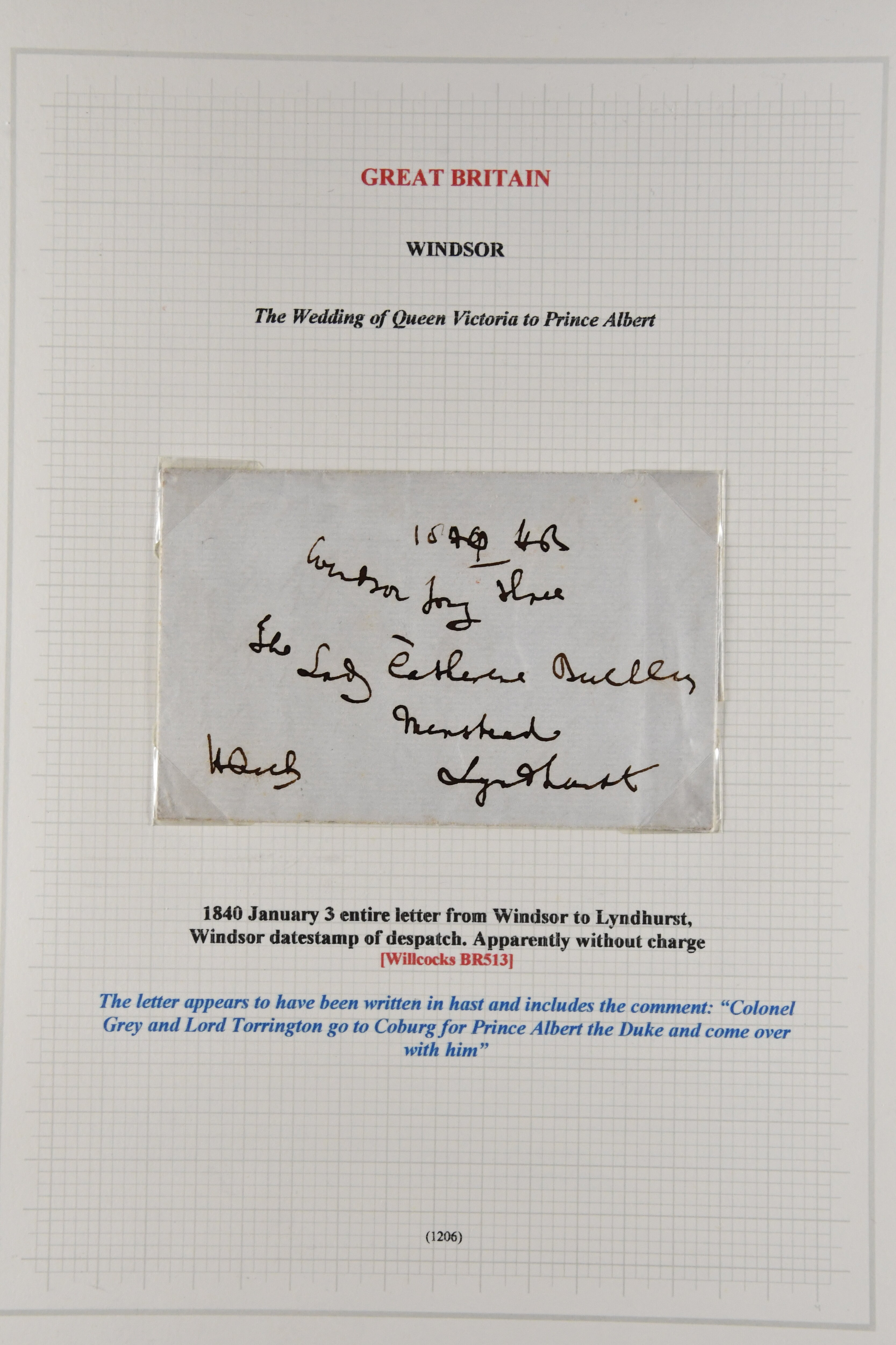 Gloucester in Bagshot with "♚ / FREE" cds endorsed "William Frederick" at lower left, 1840 letter from Windsor to Minstead, Lyndhurst apparently without charge reading "Colonel Grey and Lord Torrington go to Coburg for Prince Albert the Duke and come