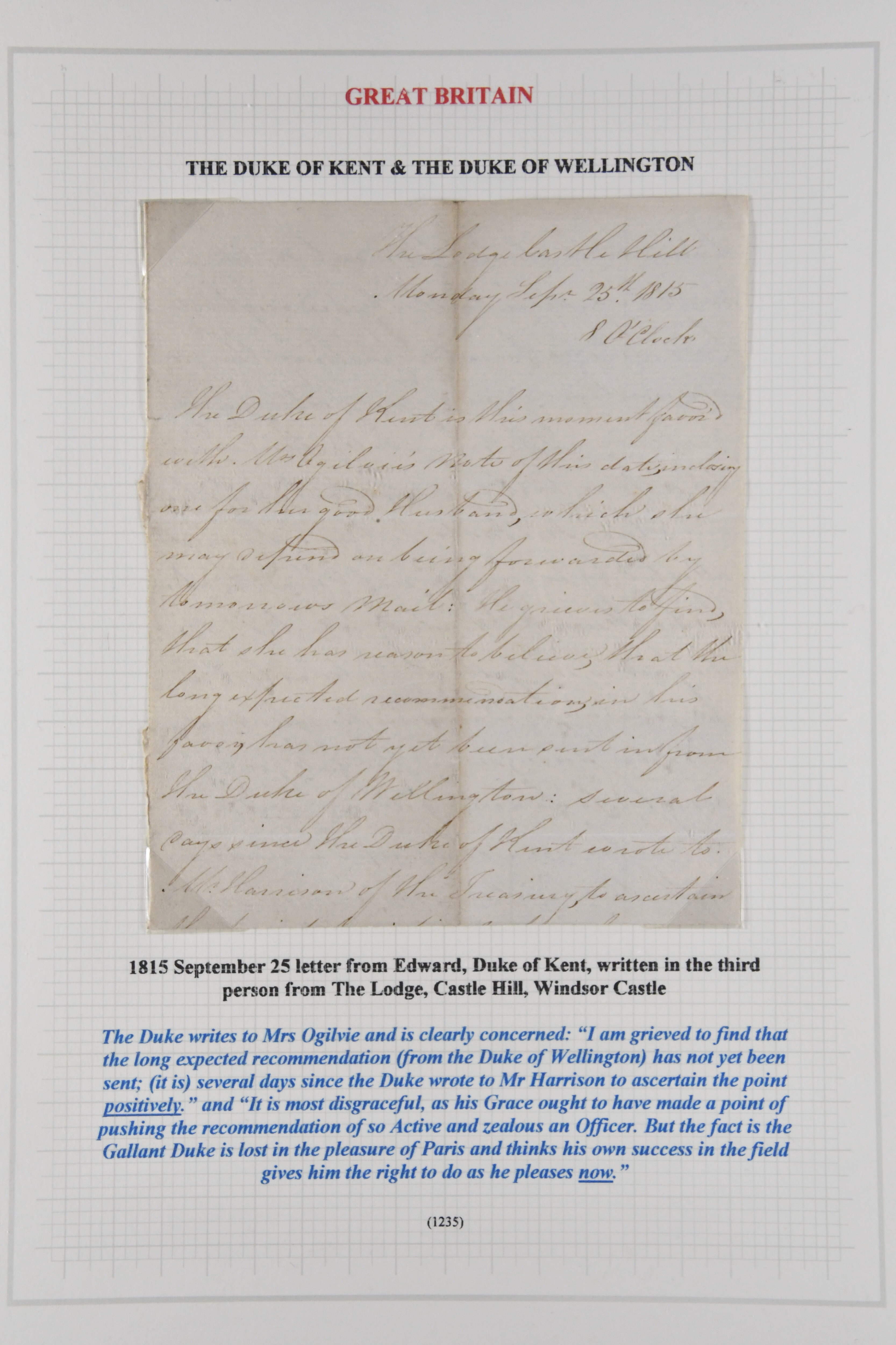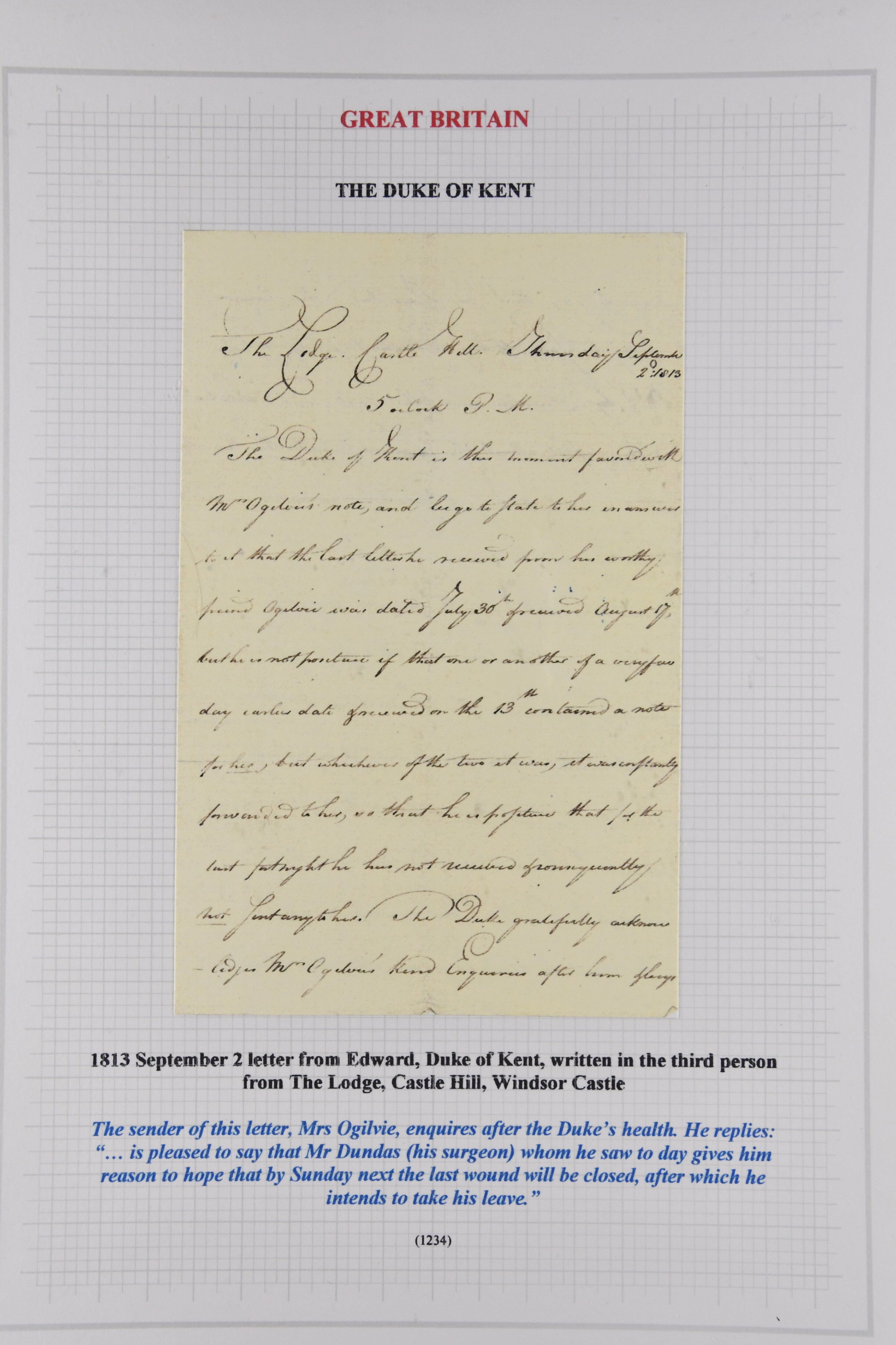 Cambridge with "TUNBRIDGE / WELLS" despatch in black and red circular Free marking, 1813 and 1815 two letters written in the third person from the Duke of Kent each written from the Lodge at Windsor Castle, 1832 Free Frank cover from the Duke of