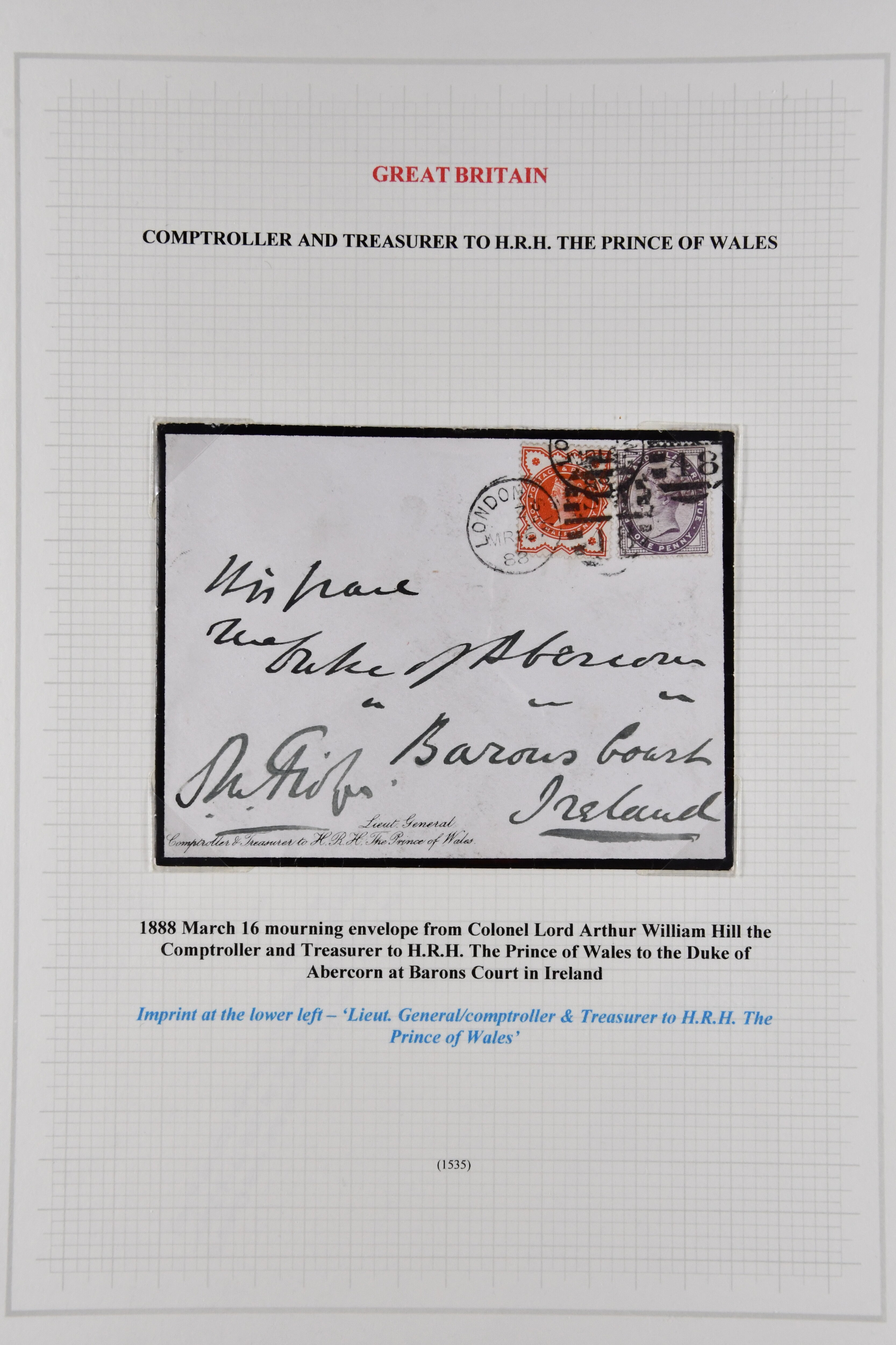 Prince of Wales with ½ d. vermilion and 1 d. lilac used to Ireland, 1892 rare cover from Queen Victoria's private secretary to Portsmouth with 1 d. lilac tied by hooded "LONDON / V.R." datestamp (23 Sept 1892); Notice with black border dated 22