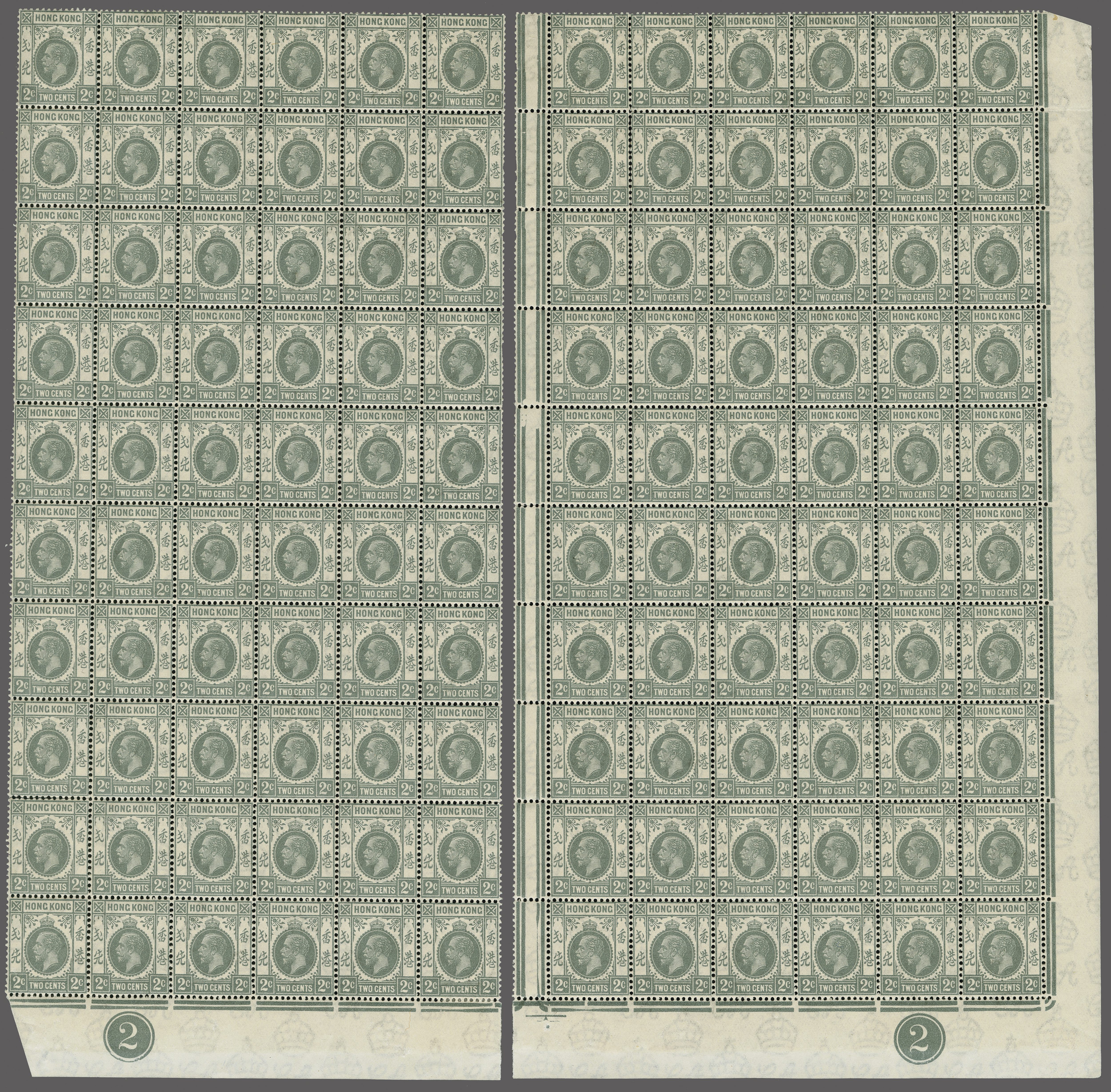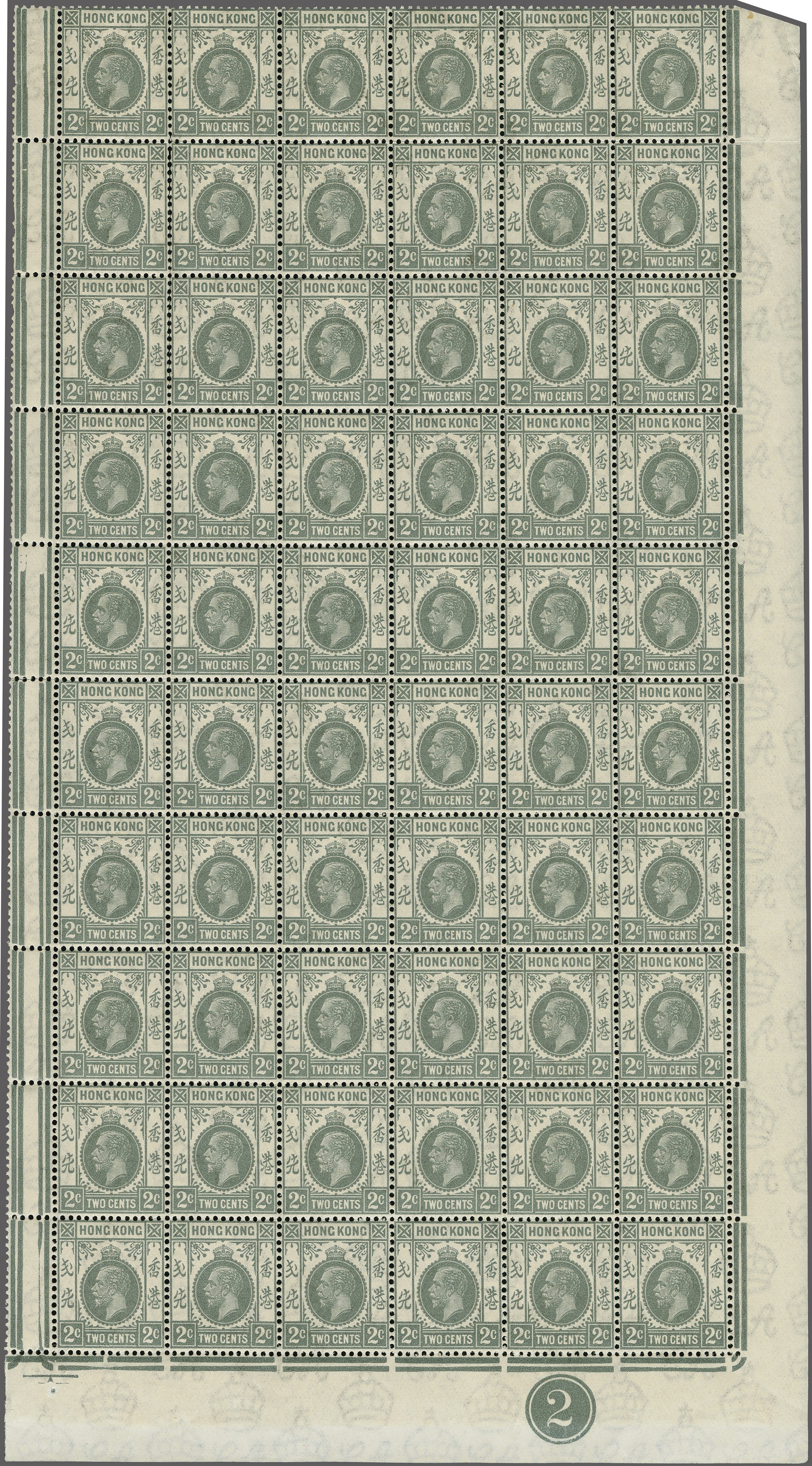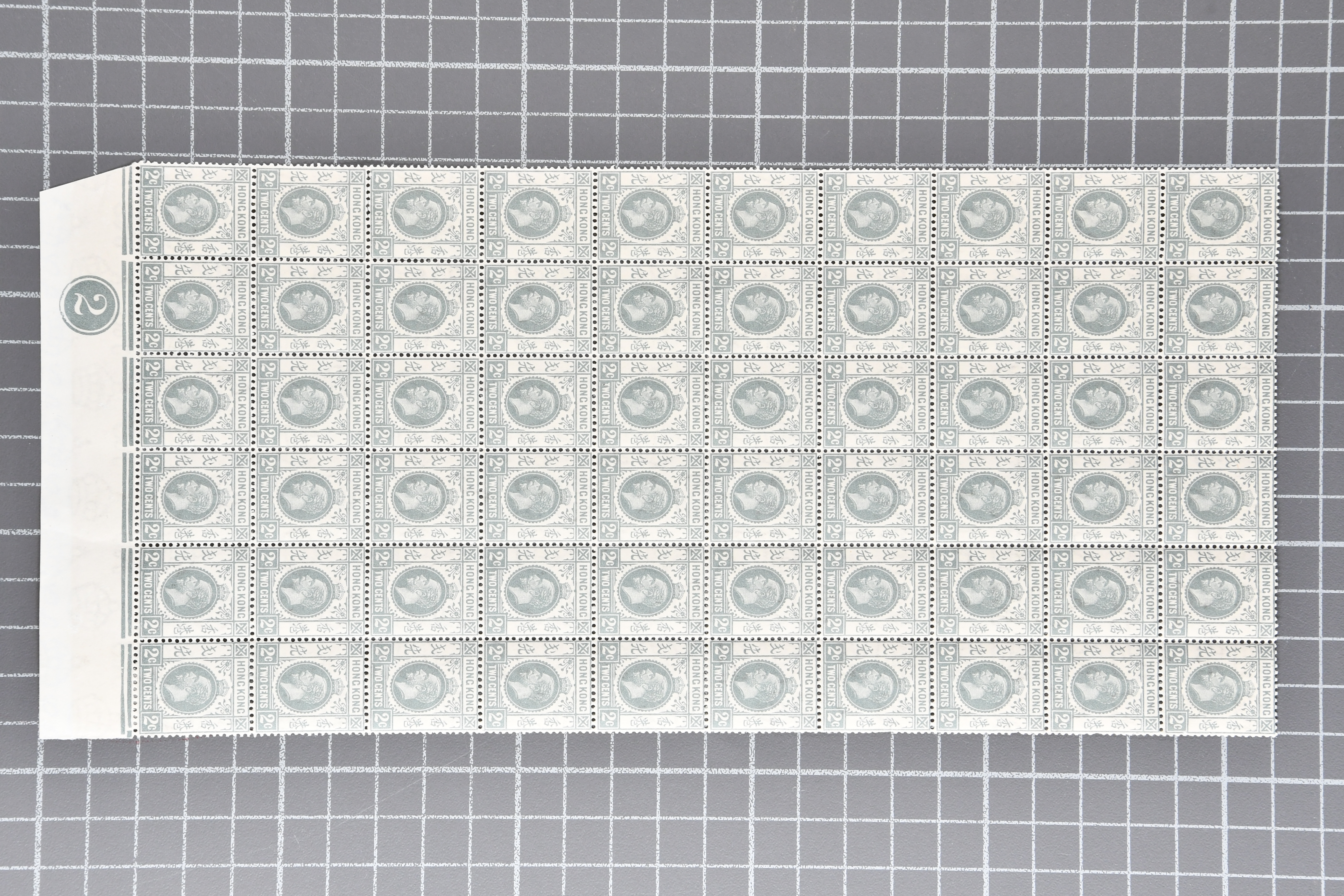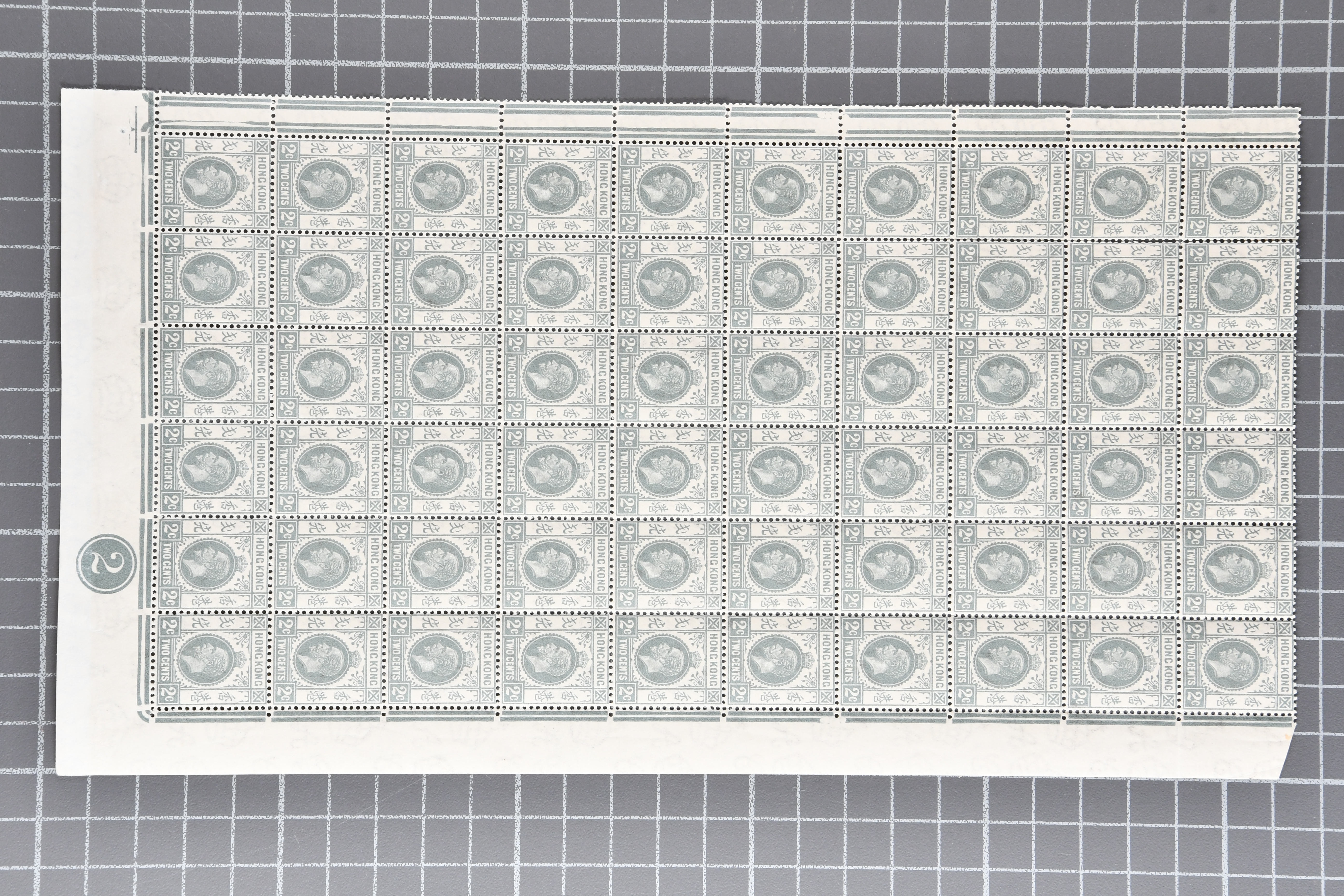 1937 (March 14): 2 c. grey, wmk. Multiple Script CA, an unused pane of 60 subjects from lower right corner of the sheet, Plate Number '2' in margin, with interpanneauu margin at left, some separation; together with the lower