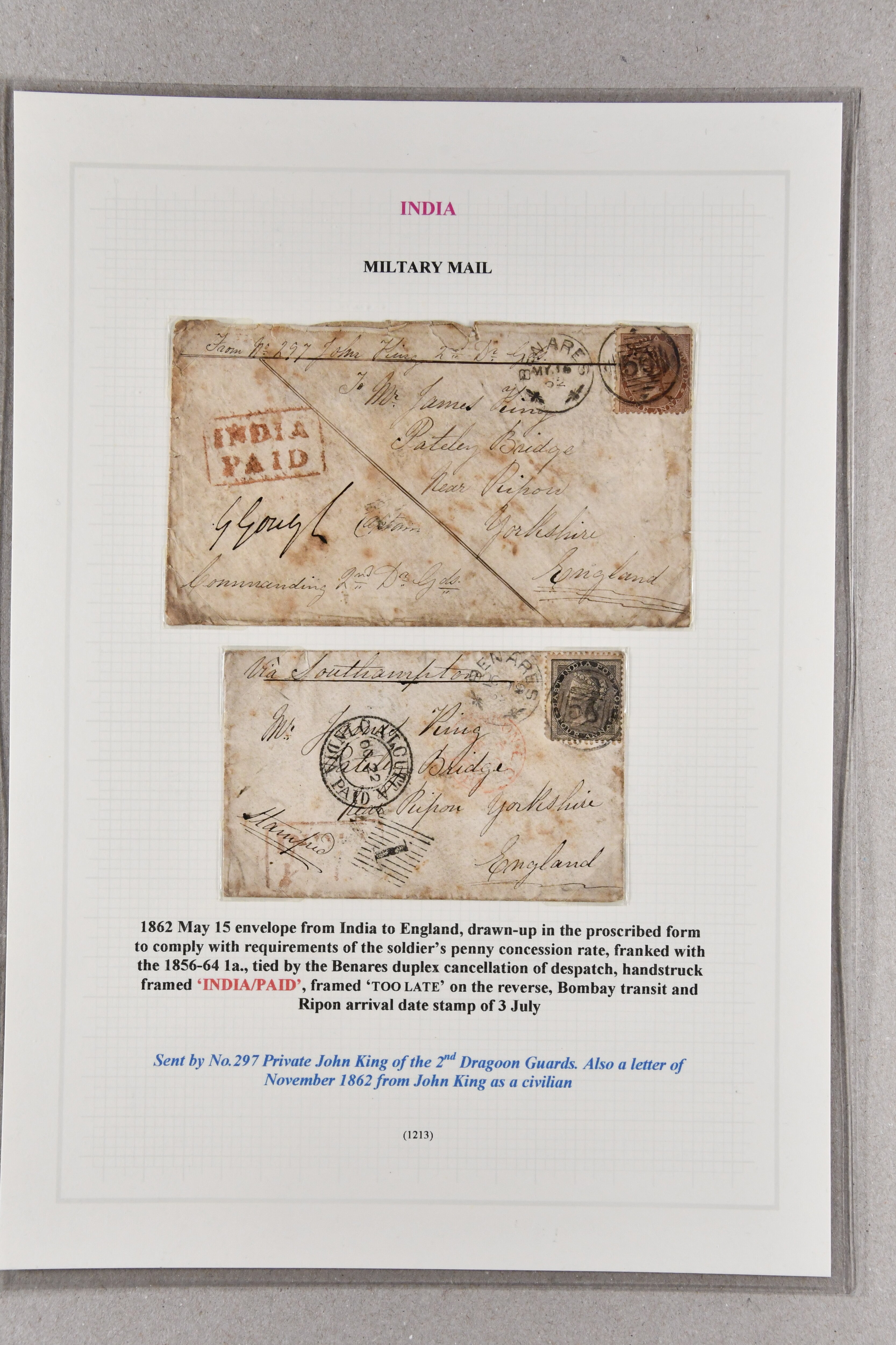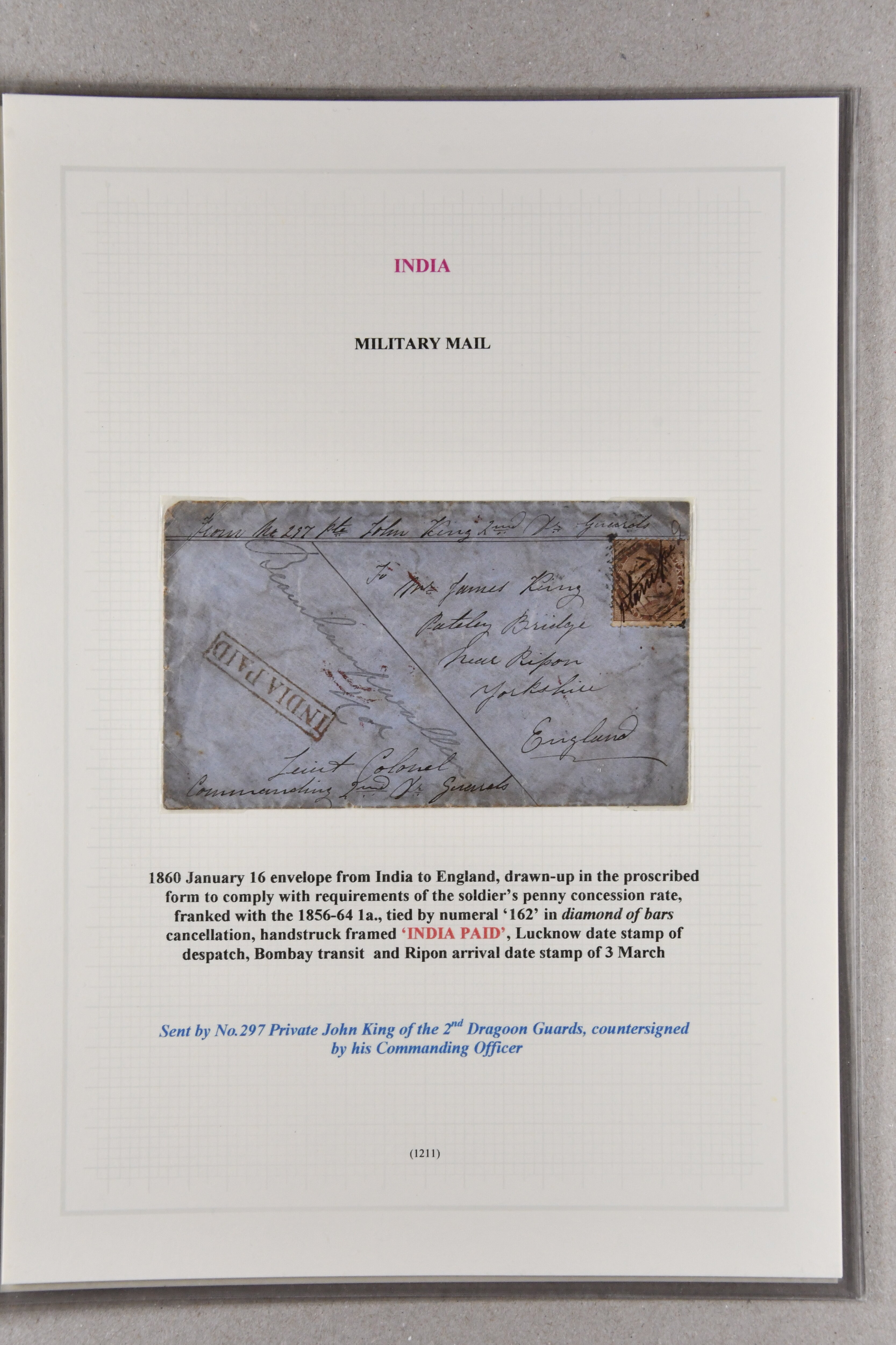 of the 38th Regiment, Singapore tied by lozenge of dots obliterator in black. GPO despatch and curved "INDIA PAID" in red alongside. Minor edge wear but a scarce entire (Image 1)