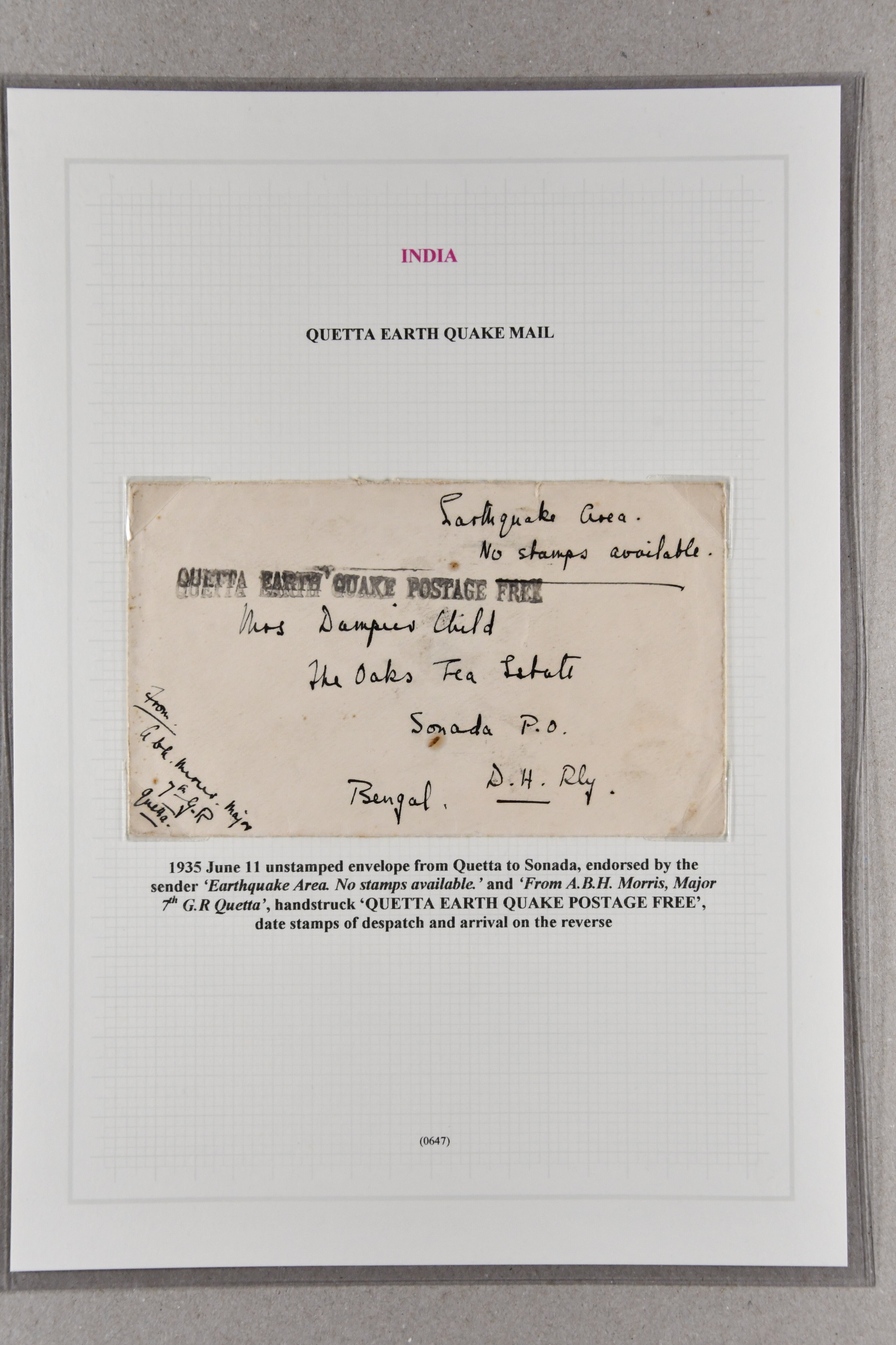 (12) and 1935 endorsed cover with "Quetta Earth Quake Postage Free" handstamp to Sonada, Bengal (Image 1)