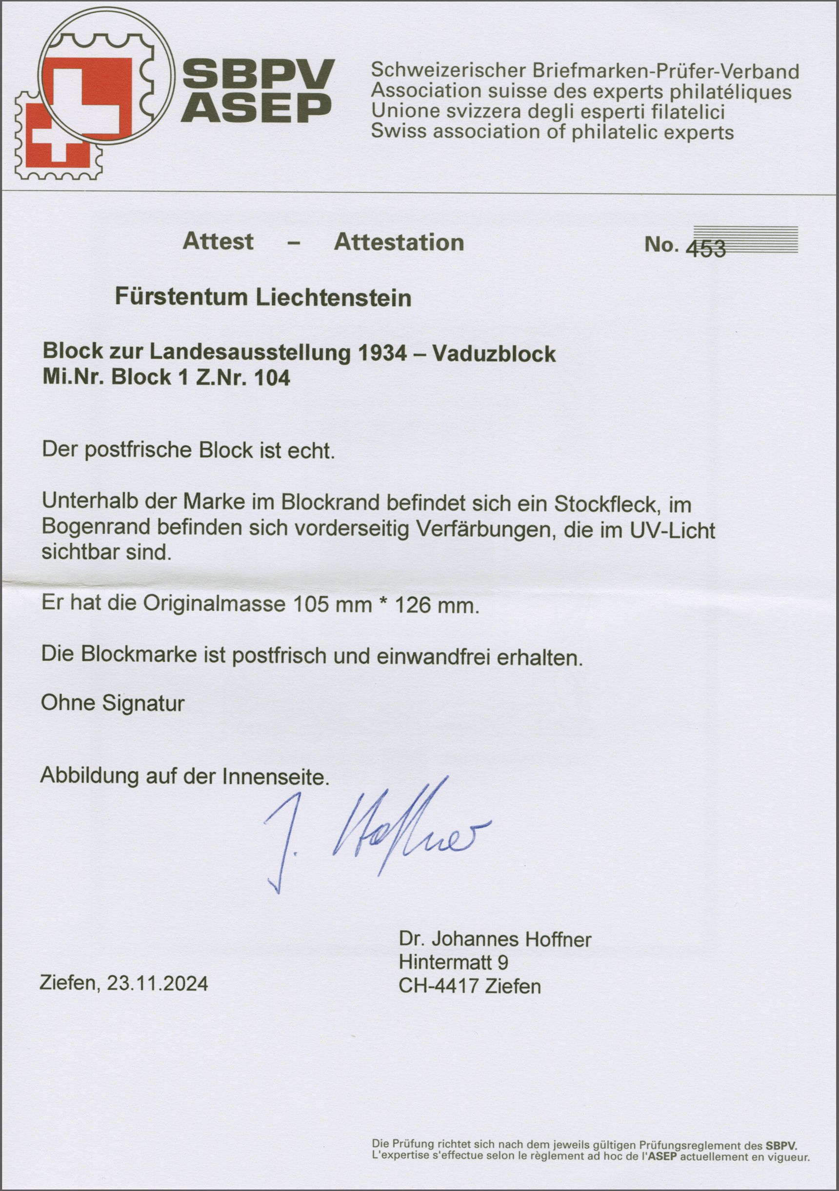 Get Market Data for [Liechtenstein Bl. 29B] Visual Pricing Guide Sample Census