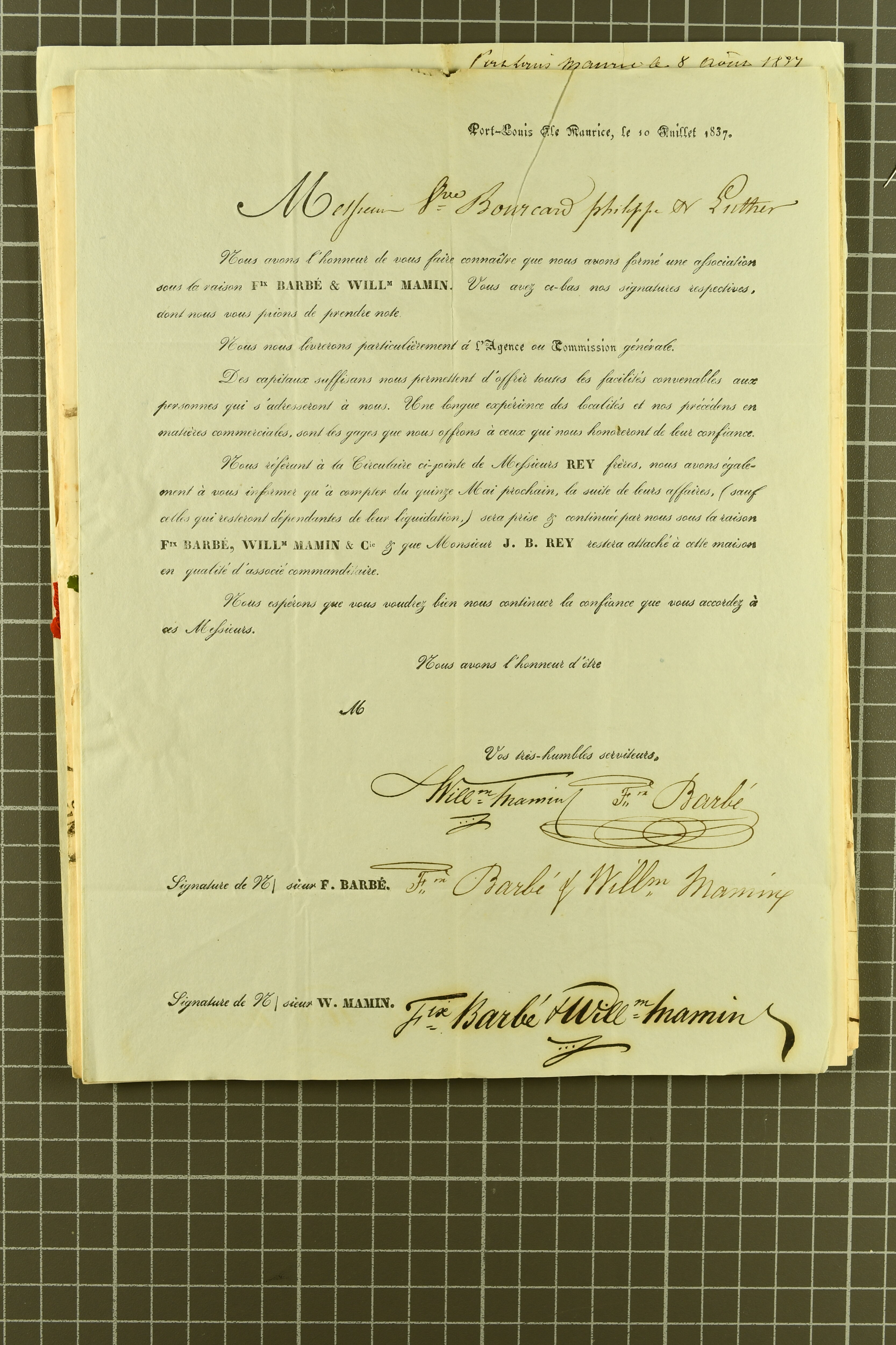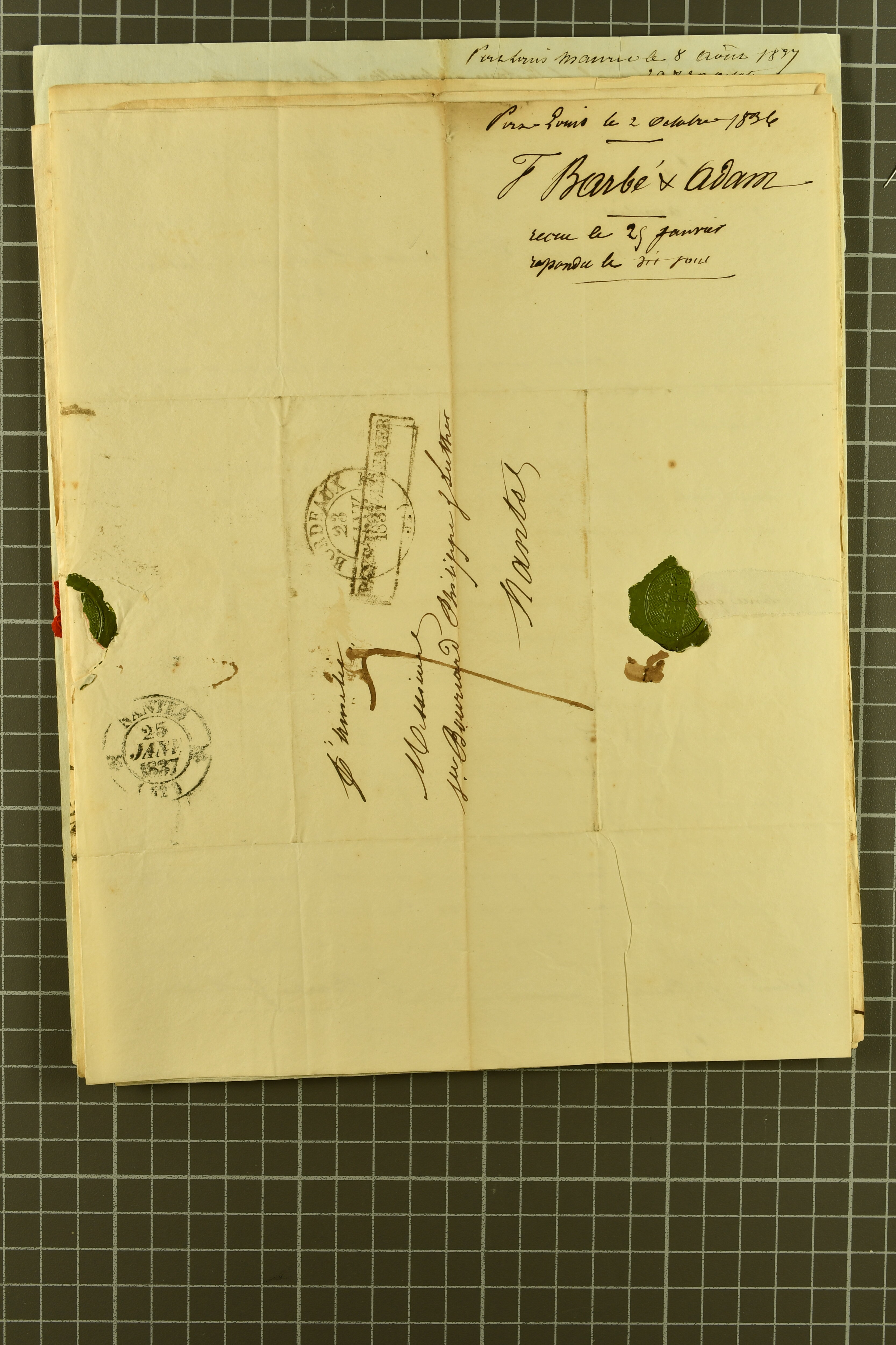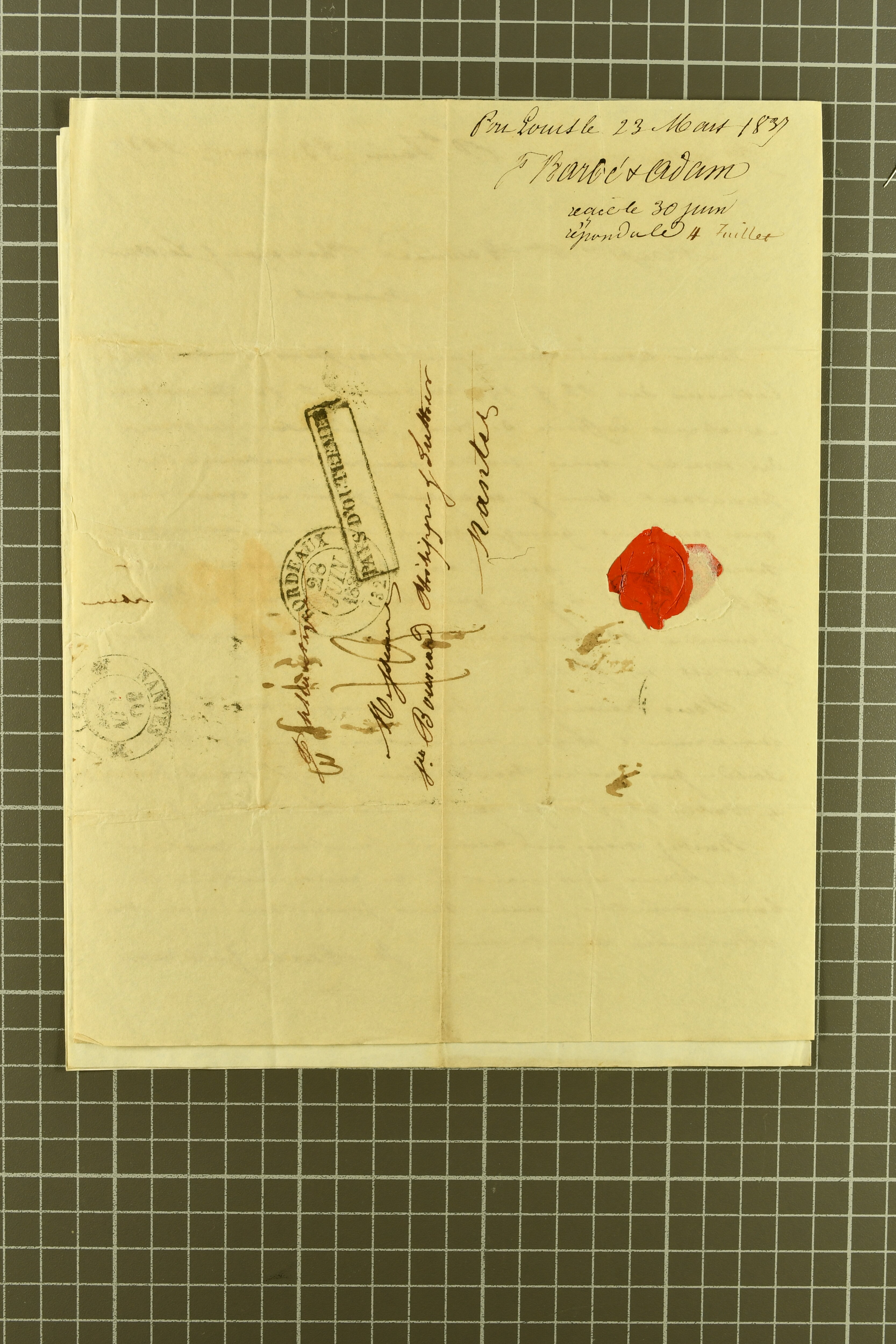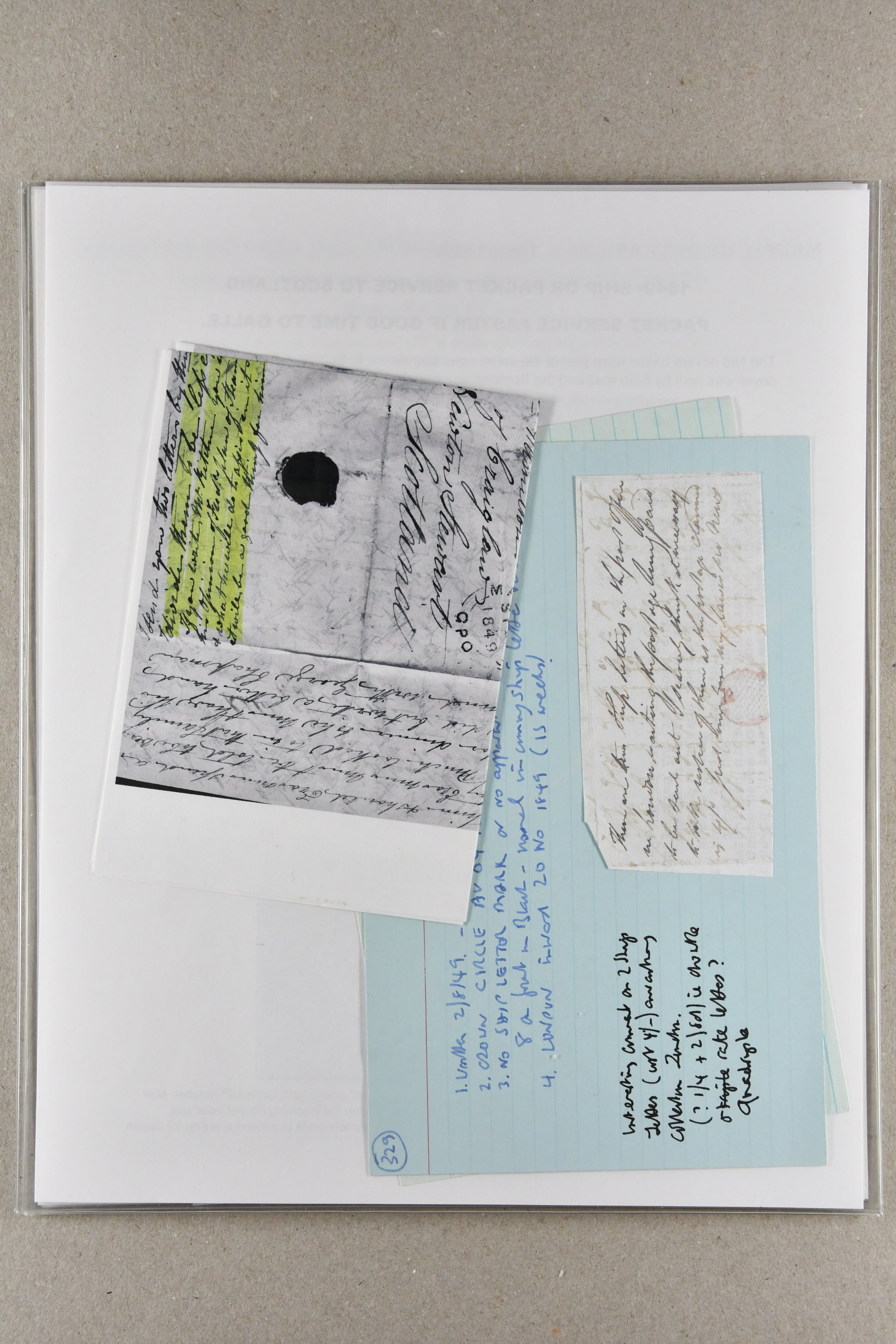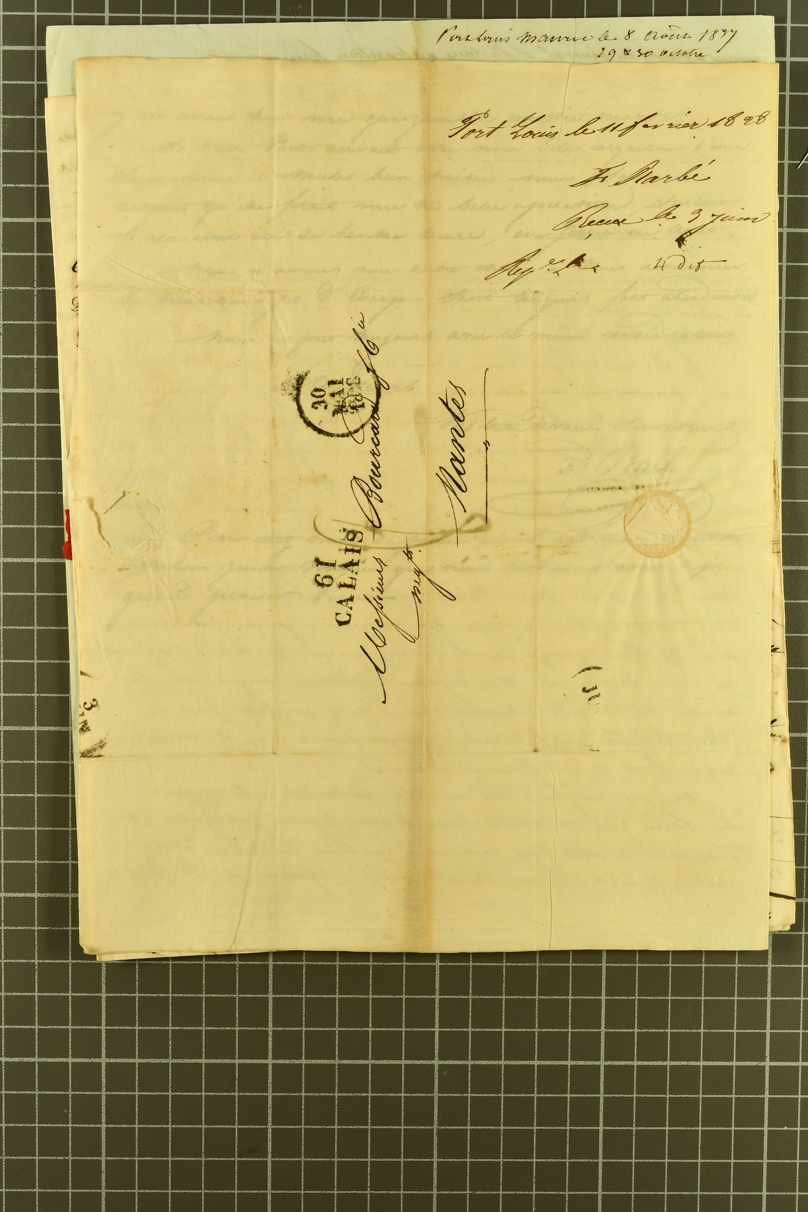 "MAURITIUS / POST OFFICE" cds of receipt in red (both ex Clifford correspondence); 1843 prepaid entire from Aberdeen; 1846 prepaid entire from London also struck with "PAID SHIP LETTER / ♚ / LONDON" in red, this last with "MAURITIUS / POST OFFICE"